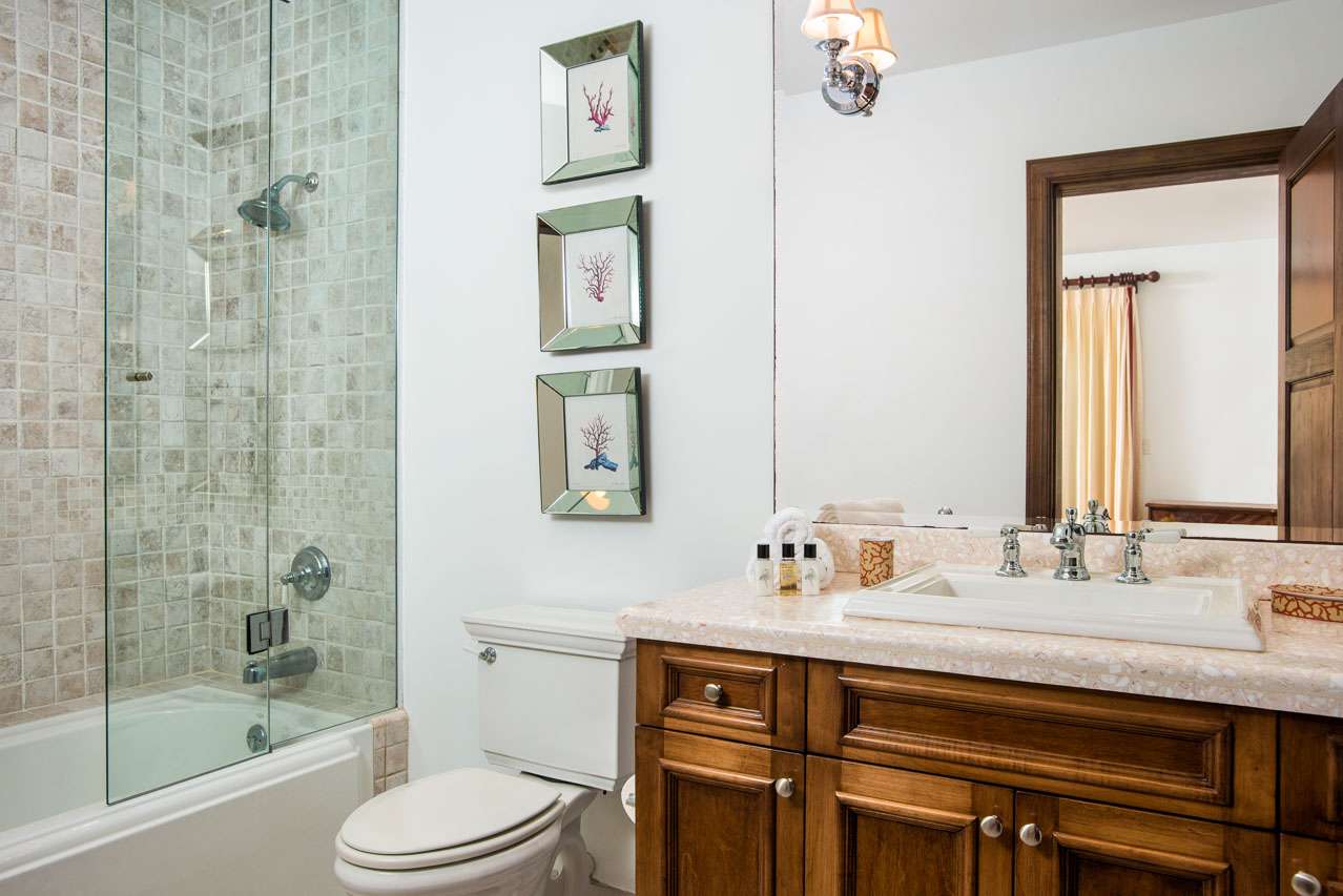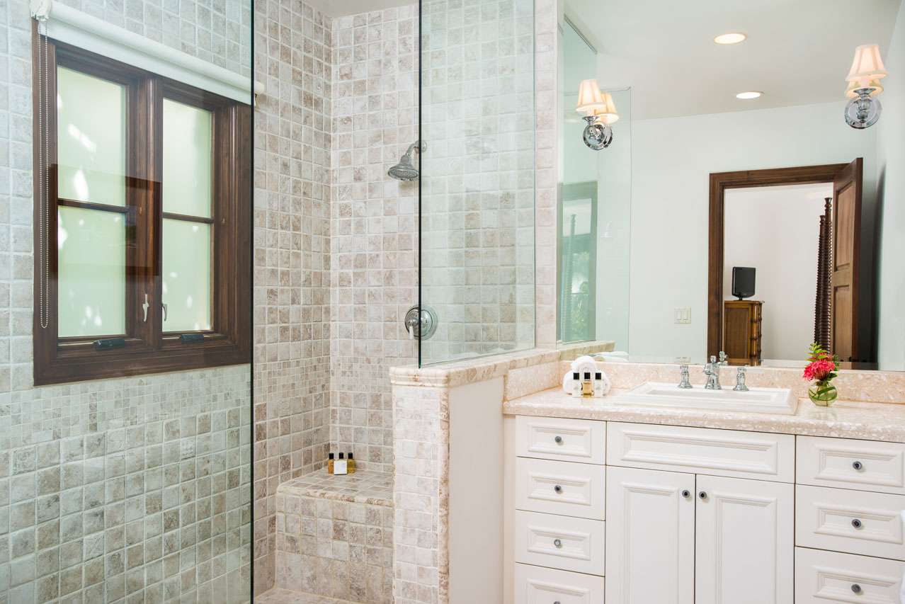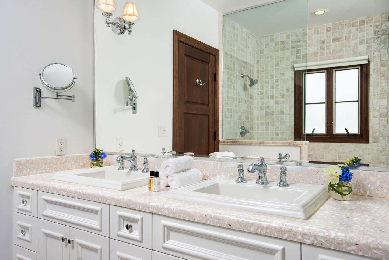 Upstairs, the spacious master suite offers a bar, refrigerator, and a furnished patio with ocean views. An attached nursery is fantastic for those travelers with a newborn baby. Next to the master is the final bedroom, with a pair of twin beds that’s ideal for children. These bedrooms share a large bathroom.