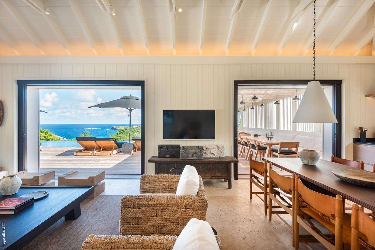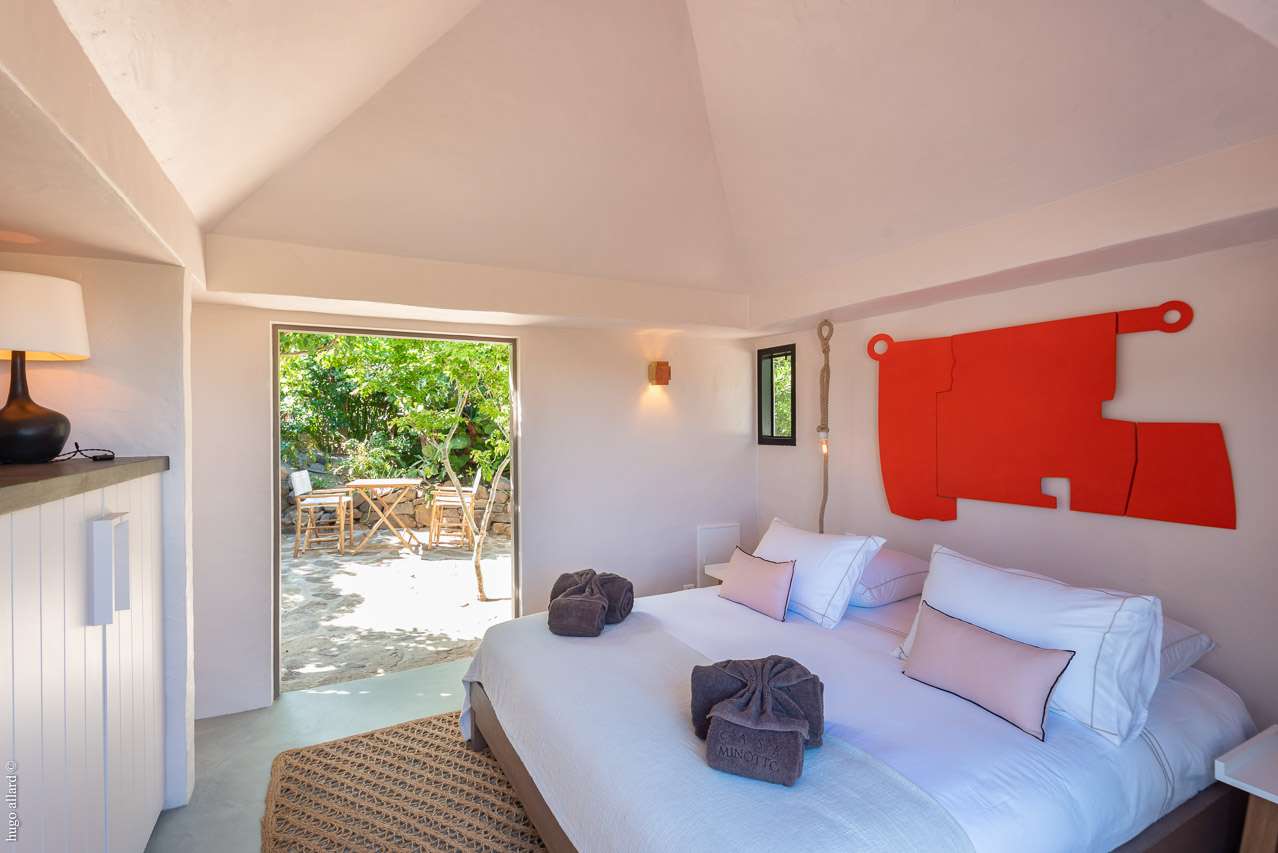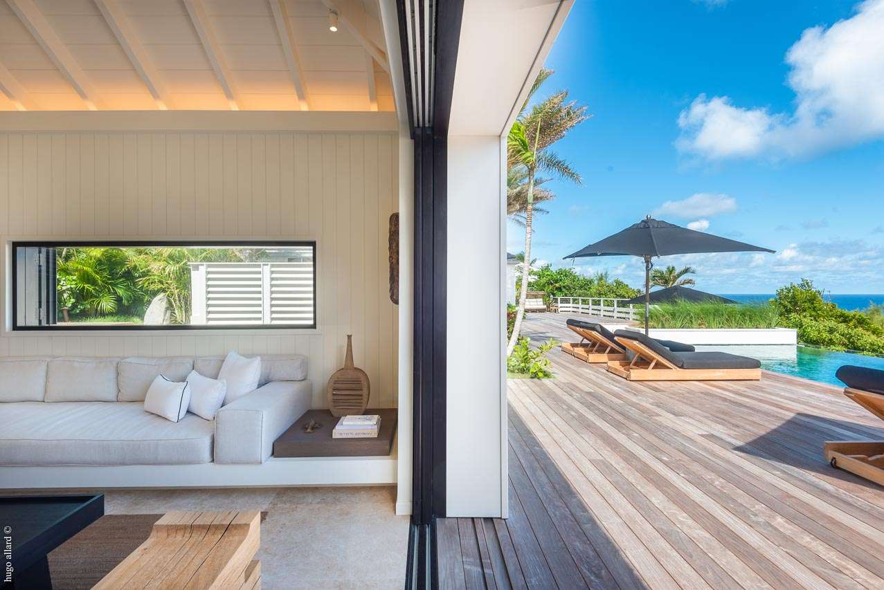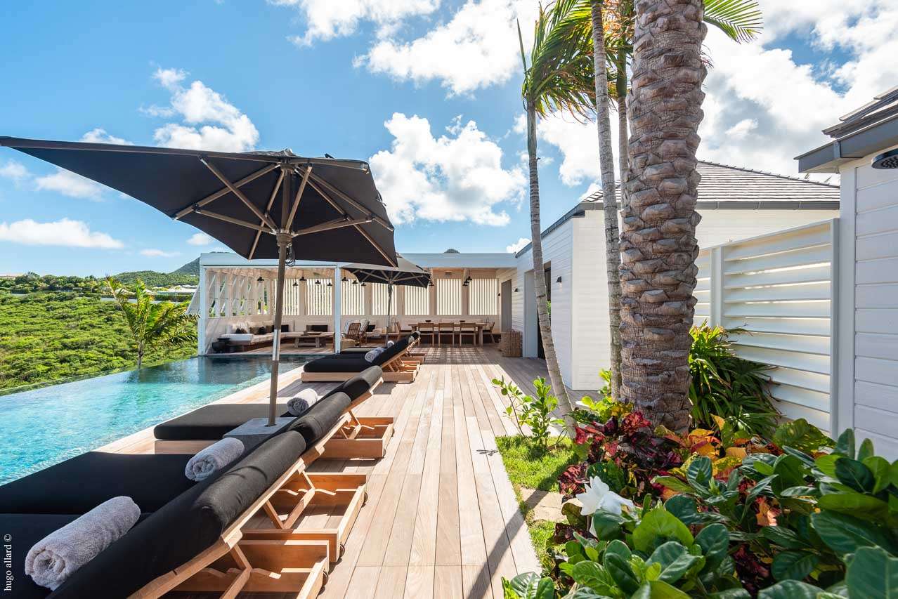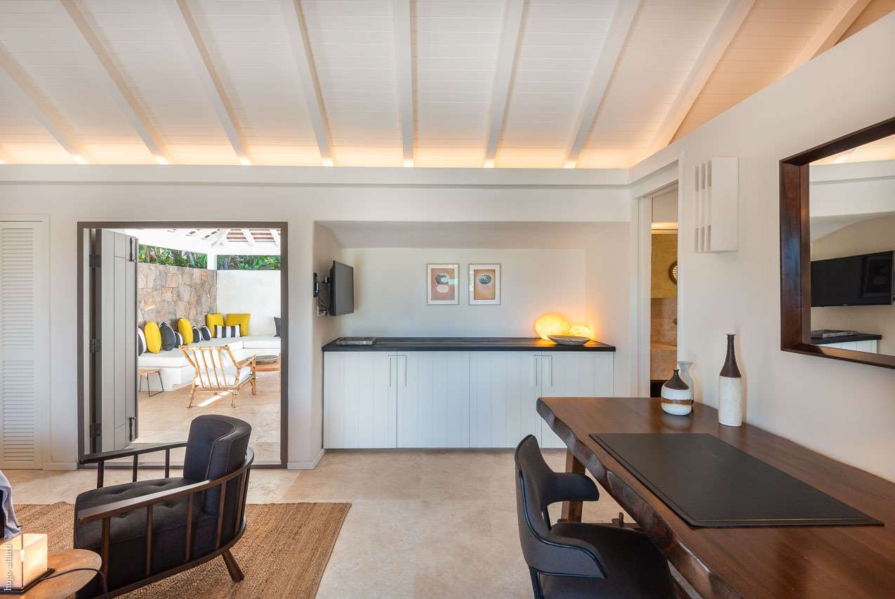 Villa Casa Minotto is a completely redesigned and renovated villa in Pointe Milou, offering 4 individual bedrooms and great ocean views in a luxury setting. Villa Casa Minotto was an existing villa with old St. Barth "cases", which were transformed into a beautifully designed and decorated, contemporary refuge in a lush garden setting, with ocean views and cooling breezes. The villa has 4 bedrooms, each in a separate bungalow, with the main room and its covered terrace as the central gathering space. The main room includes a spacious living room with extra large sofas, a dining area with a table that can seat 10 people, and the modern kitchen on the other side. It opens up to a large, covered section of the terrace with an outdoor dining area and an outdoor living with comfortable benches lined with cushions. The semi-enclosed area has wooden louvres that can be closed off on windier days, and which create a cozy, private atmosphere. The extra-large, heated pool stretches all the way to a sunken open living area with wide benches and daybeds, which is a fabulous spot to sunbathe or take a nap during the day, or to have a cocktail with the entire party before dinner. Over-sized, comfortable loungers are aligned with the pool along the deck with large umbrellas for some shade. The first bungalow houses a comfortable guest room that has a small, but private outdoor garden with seating. The room has ample closet space, and ensuite bathroom with shower. Adjacent to this bungalow, at the far end of the property, is the master bungalow. This is a spacious room with a dressing, ensuite bathroom with shower that can be opened up to the outside, U.S. and French satellite TV, and a large, private outdoor seating area in the rear. One row above the first two bungalows, are bedroom 3 and 4. The second master bedroom is in the bungalow above the main master. It has his-and-hers closets, an ensuite bathroom with shower as well as an outdoor shower, a kitchenette, and a large private patio with seating. The fourth bedroom is in the next bungalow. This is a small bedroom more suitable for teenagers or staff. It is important to know that this bedroom has a very low bathroom ceiling, with a shower head around 5’10" high. All bedrooms have a U.S. king-sized bed. Villa Casa Minotto is a great family villa, but will also serve 2 or 3 couples vacationing together. This villa comes with housekeeping 7 days a week, public holidays included.Please fill out the form to begin your inquiry and we will connect you with a seasoned villa rental specialist.