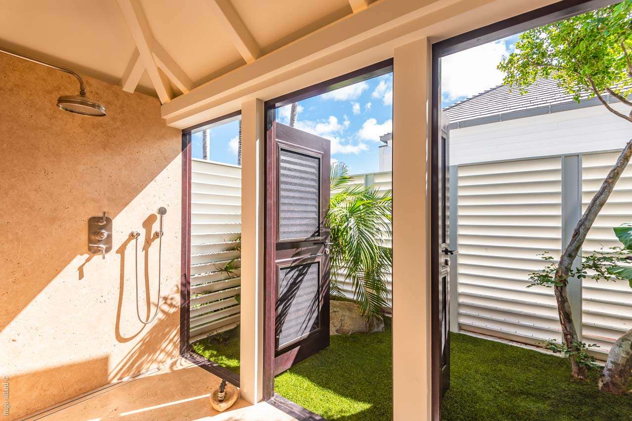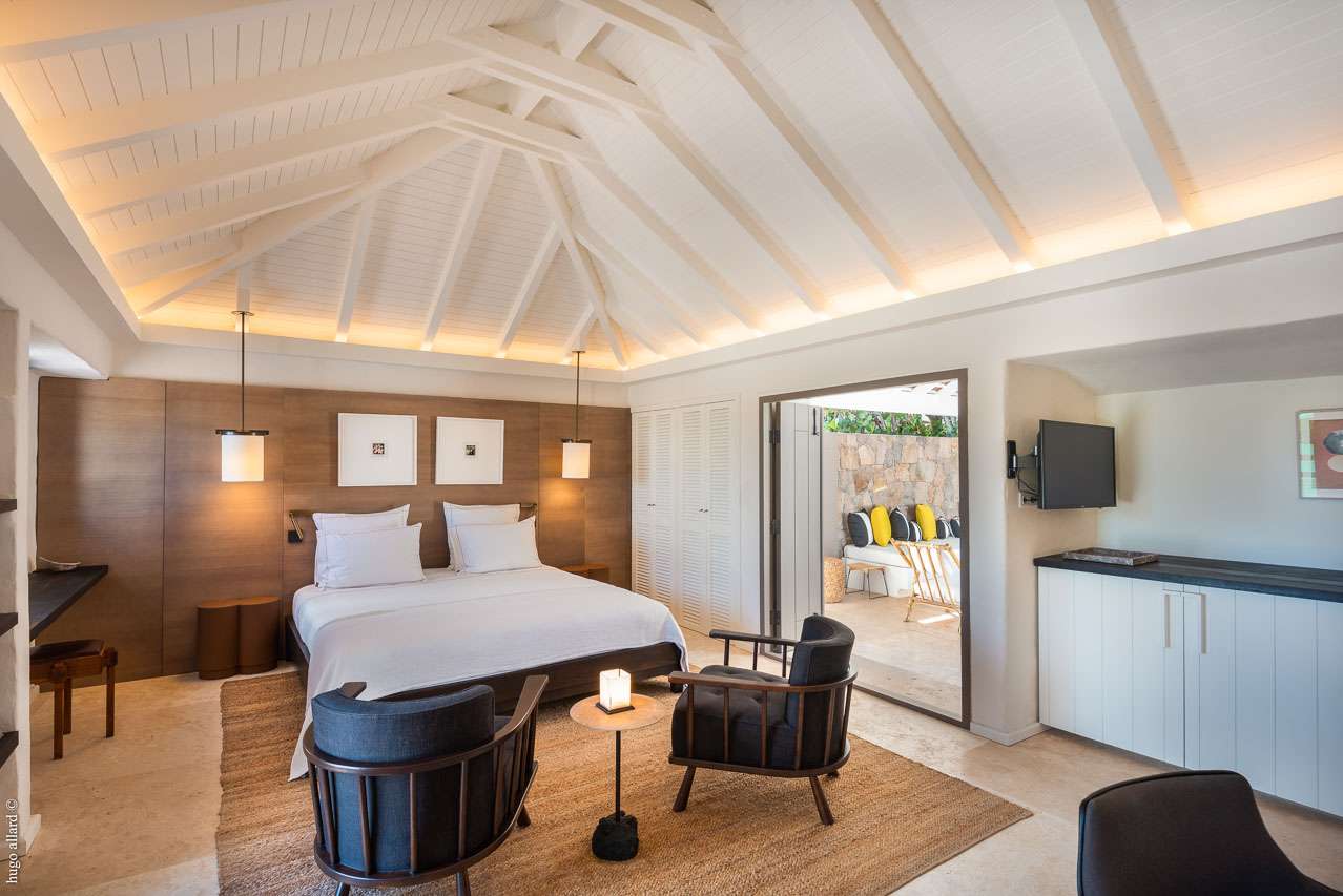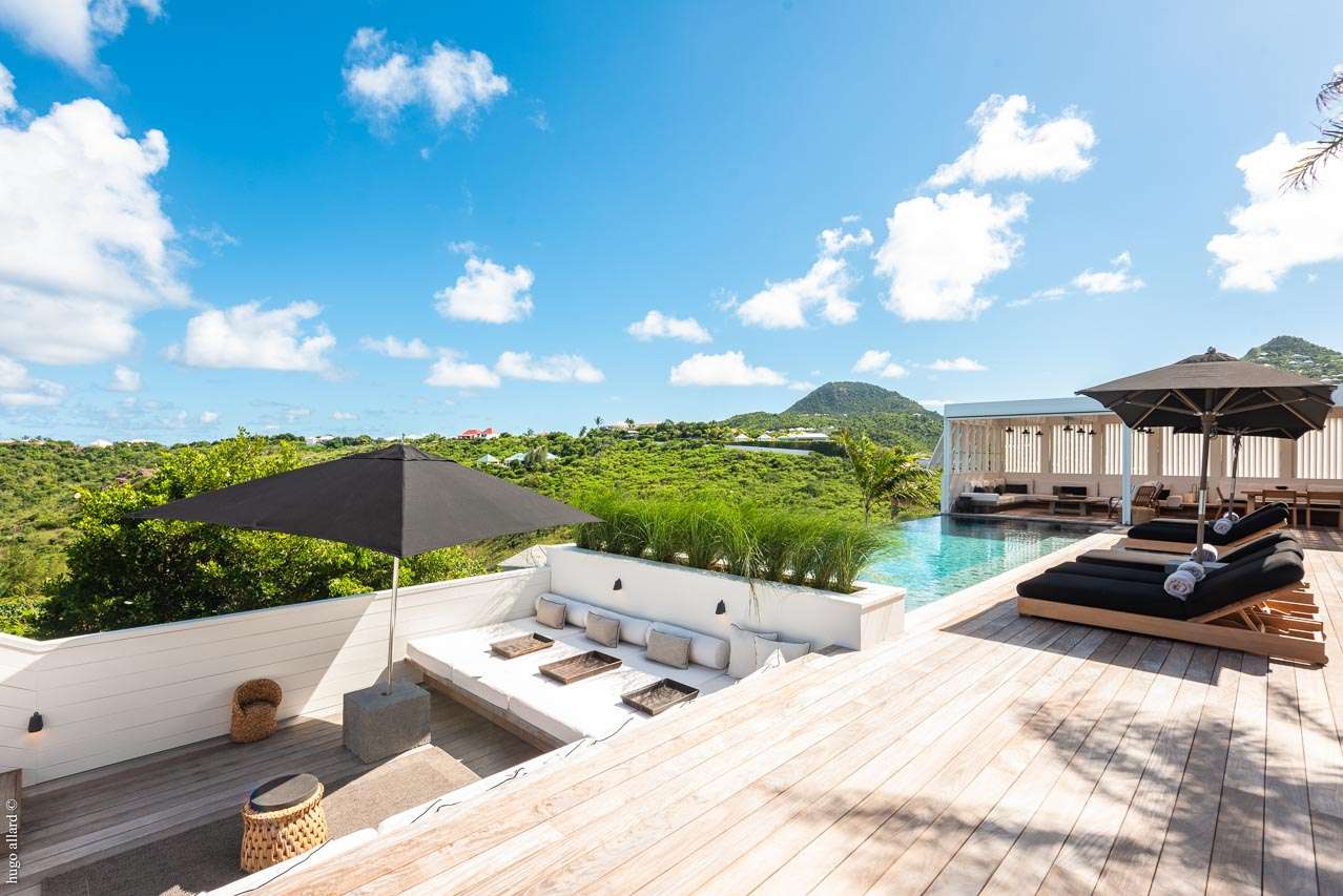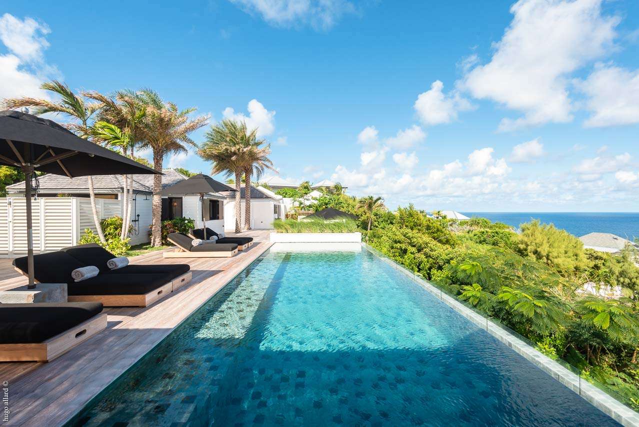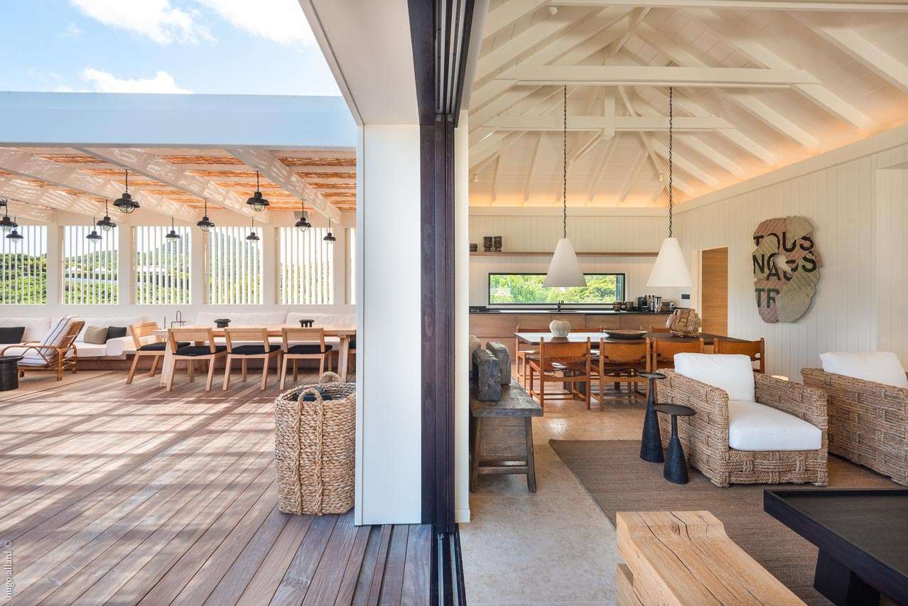 Villa Casa Minotto is a completely redesigned and renovated villa in Pointe Milou, offering 4 individual bedrooms and great ocean views in a luxury setting. Villa Casa Minotto was an existing villa with old St. Barth "cases", which were transformed into a beautifully designed and decorated, contemporary refuge in a lush garden setting, with ocean views and cooling breezes. The villa has 4 bedrooms, each in a separate bungalow, with the main room and its covered terrace as the central gathering space. The main room includes a spacious living room with extra large sofas, a dining area with a table that can seat 10 people, and the modern kitchen on the other side. It opens up to a large, covered section of the terrace with an outdoor dining area and an outdoor living with comfortable benches lined with cushions. The semi-enclosed area has wooden louvres that can be closed off on windier days, and which create a cozy, private atmosphere. The extra-large, heated pool stretches all the way to a sunken open living area with wide benches and daybeds, which is a fabulous spot to sunbathe or take a nap during the day, or to have a cocktail with the entire party before dinner. Over-sized, comfortable loungers are aligned with the pool along the deck with large umbrellas for some shade. The first bungalow houses a comfortable guest room that has a small, but private outdoor garden with seating. The room has ample closet space, and ensuite bathroom with shower. Adjacent to this bungalow, at the far end of the property, is the master bungalow. This is a spacious room with a dressing, ensuite bathroom with shower that can be opened up to the outside, U.S. and French satellite TV, and a large, private outdoor seating area in the rear. One row above the first two bungalows, are bedroom 3 and 4. The second master bedroom is in the bungalow above the main master. It has his-and-hers closets, an ensuite bathroom with shower as well as an outdoor shower, a kitchenette, and a large private patio with seating. The fourth bedroom is in the next bungalow. This is a small bedroom more suitable for teenagers or staff. It is important to know that this bedroom has a very low bathroom ceiling, with a shower head around 5’10" high. All bedrooms have a U.S. king-sized bed. Villa Casa Minotto is a great family villa, but will also serve 2 or 3 couples vacationing together. This villa comes with housekeeping 7 days a week, public holidays included.Please fill out the form to begin your inquiry and we will connect you with a seasoned villa rental specialist.