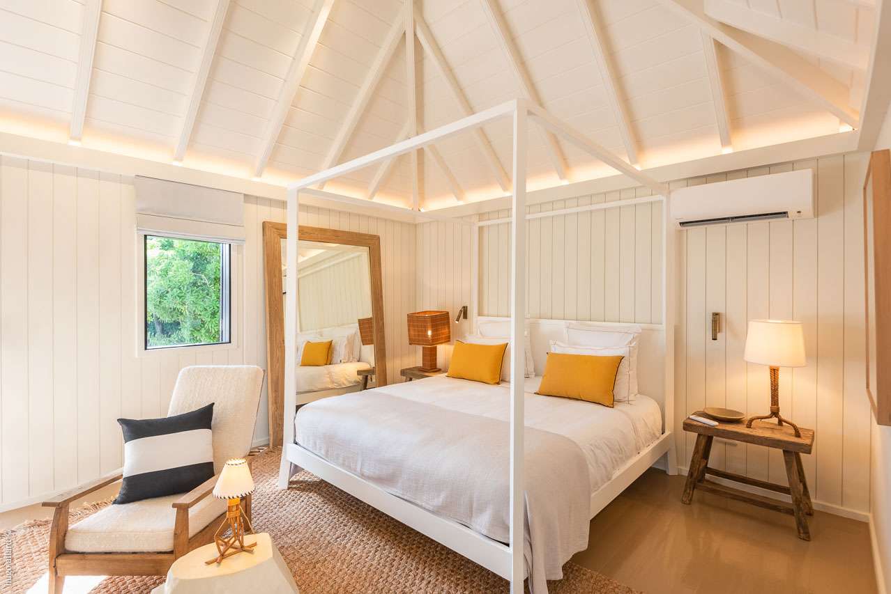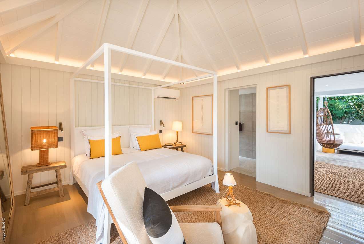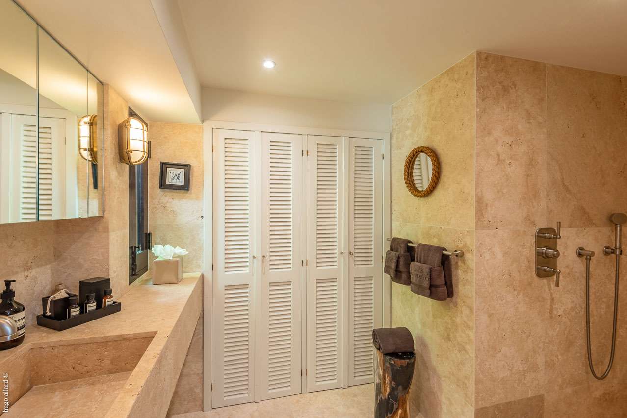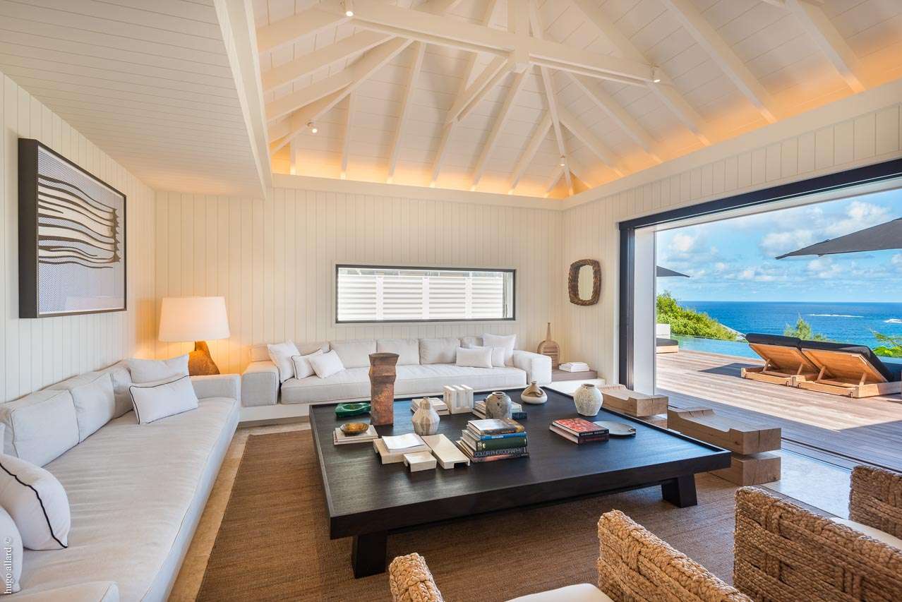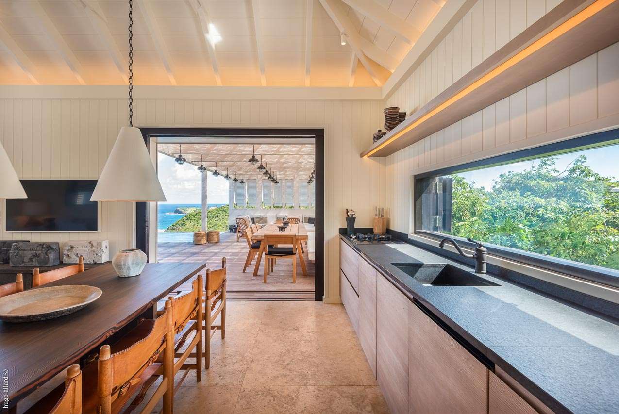 Villa Casa Minotto is a completely redesigned and renovated villa in Pointe Milou, offering 4 individual bedrooms and great ocean views in a luxury setting. Villa Casa Minotto was an existing villa with old St. Barth "cases", which were transformed into a beautifully designed and decorated, contemporary refuge in a lush garden setting, with ocean views and cooling breezes. The villa has 4 bedrooms, each in a separate bungalow, with the main room and its covered terrace as the central gathering space. The main room includes a spacious living room with extra large sofas, a dining area with a table that can seat 10 people, and the modern kitchen on the other side. It opens up to a large, covered section of the terrace with an outdoor dining area and an outdoor living with comfortable benches lined with cushions. The semi-enclosed area has wooden louvres that can be closed off on windier days, and which create a cozy, private atmosphere. The extra-large, heated pool stretches all the way to a sunken open living area with wide benches and daybeds, which is a fabulous spot to sunbathe or take a nap during the day, or to have a cocktail with the entire party before dinner. Over-sized, comfortable loungers are aligned with the pool along the deck with large umbrellas for some shade. The first bungalow houses a comfortable guest room that has a small, but private outdoor garden with seating. The room has ample closet space, and ensuite bathroom with shower. Adjacent to this bungalow, at the far end of the property, is the master bungalow. This is a spacious room with a dressing, ensuite bathroom with shower that can be opened up to the outside, U.S. and French satellite TV, and a large, private outdoor seating area in the rear. One row above the first two bungalows, are bedroom 3 and 4. The second master bedroom is in the bungalow above the main master. It has his-and-hers closets, an ensuite bathroom with shower as well as an outdoor shower, a kitchenette, and a large private patio with seating. The fourth bedroom is in the next bungalow. This is a small bedroom more suitable for teenagers or staff. It is important to know that this bedroom has a very low bathroom ceiling, with a shower head around 5’10" high. All bedrooms have a U.S. king-sized bed. Villa Casa Minotto is a great family villa, but will also serve 2 or 3 couples vacationing together. This villa comes with housekeeping 7 days a week, public holidays included.Please fill out the form to begin your inquiry and we will connect you with a seasoned villa rental specialist.