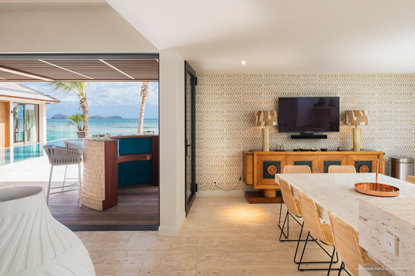Villa Casa Tua, (villa code: WV CTL) is a contemporary, 3-bedroom beachfront sanctuary in Lorient in front of the island’s most popular surf break. Right across the street from the bakery, and right on the beach of Lorient, Villa Casa Tua offers direct beach access as well as freshly baked bread and pastries just steps away. A gate separates the road from the small parking area, but once inside the house, you will feel the world fall off your shoulders as you step through the living room and onto the deck in the rear, where the lapping of the waves will be the only sound you hear unless you're playing music on the villa’s Sonos sound system. Lorient is a popular surfer’s beach, and the main surf break is right in front of the house. The main room has three sections; on one side is a separate media room with comfortable seating. The central area offers two large sectionals with views of the pool and ocean. On the other side is the spacious and fully equipped kitchen with a large natural stone table with seating for 8, and a television. Outside, flanked by the three bedrooms, is the extended pool and deck, and just at the end, above the beach, is a sunken seating area with large benches that can serve as daybeds. Stairs lead down from the deck directly into the sand. The villa sits around 7 feet above water level and offers good privacy. All three bedrooms have a U.S. king-sized bed, ample closet space, and a TV. Both master bedrooms face the ocean but thanks to the double windows, the rooms are quiet havens of peace. The first master has a large open bathroom with a high-tech glass shower that can be fully obscured with the touch of a button. The second master bedroom has a small bathroom with a shower but no window. The last room is poolside and slightly smaller. It has a larger bathroom with a shower and a view of the pool. Villa Casa Tua is a great choice for a family beach vacation, but will also suit couples vacationing together. During the December holidays, the villa rents at the full occupancy rate regardless of how many bedrooms are used.Please fill out the form to begin your inquiry and we will connect you with a seasoned villa rental specialist.