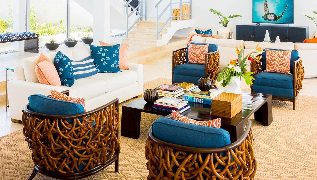 Refurbished in 2018, the design of Villa Champagne Shores embraces the natural beauty of its surroundings. Custom interiors by New York designer Alexis Parent combine tropical details, texture, and color, enhancing those breathtaking ocean views.
