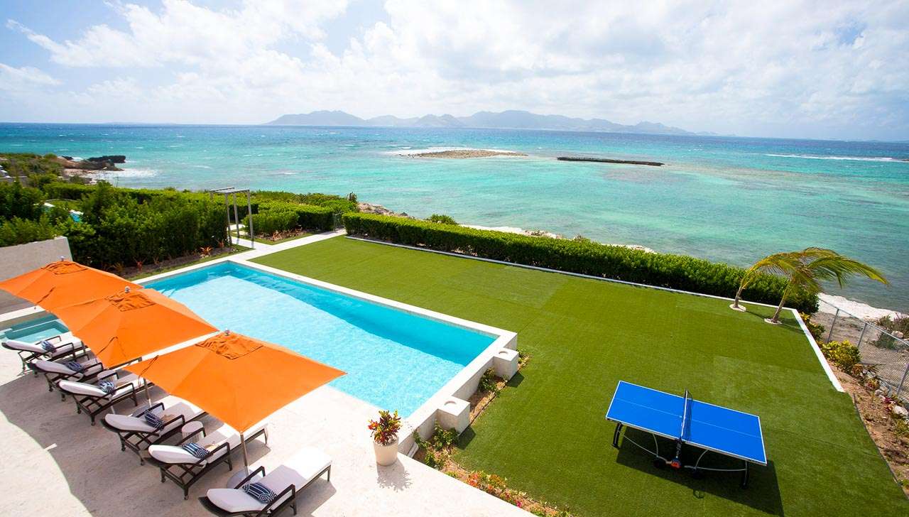 Welcome to Villa Champagne Shores (villa code: AXA CHM), a sophisticated modern 5-bedroom villa in Pelican Bay, Anguilla. The villas has its own small private beach and offer stunning views over nearby St. Martin. This is a luxurious choice for a Caribbean getaway.