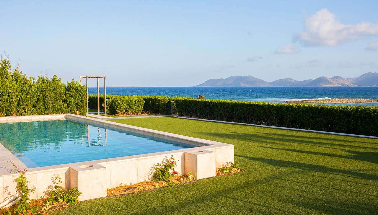 A shallow pool on the covered terrace is ideal for kids, or for those adults who like to lounge in the water with a cocktail in hand. The larger pool is a refreshing spot to cool off during the day. Loungers lining the water let you bask in the island sun, while the entire area is cooled by the lovely Caribbean breeze.