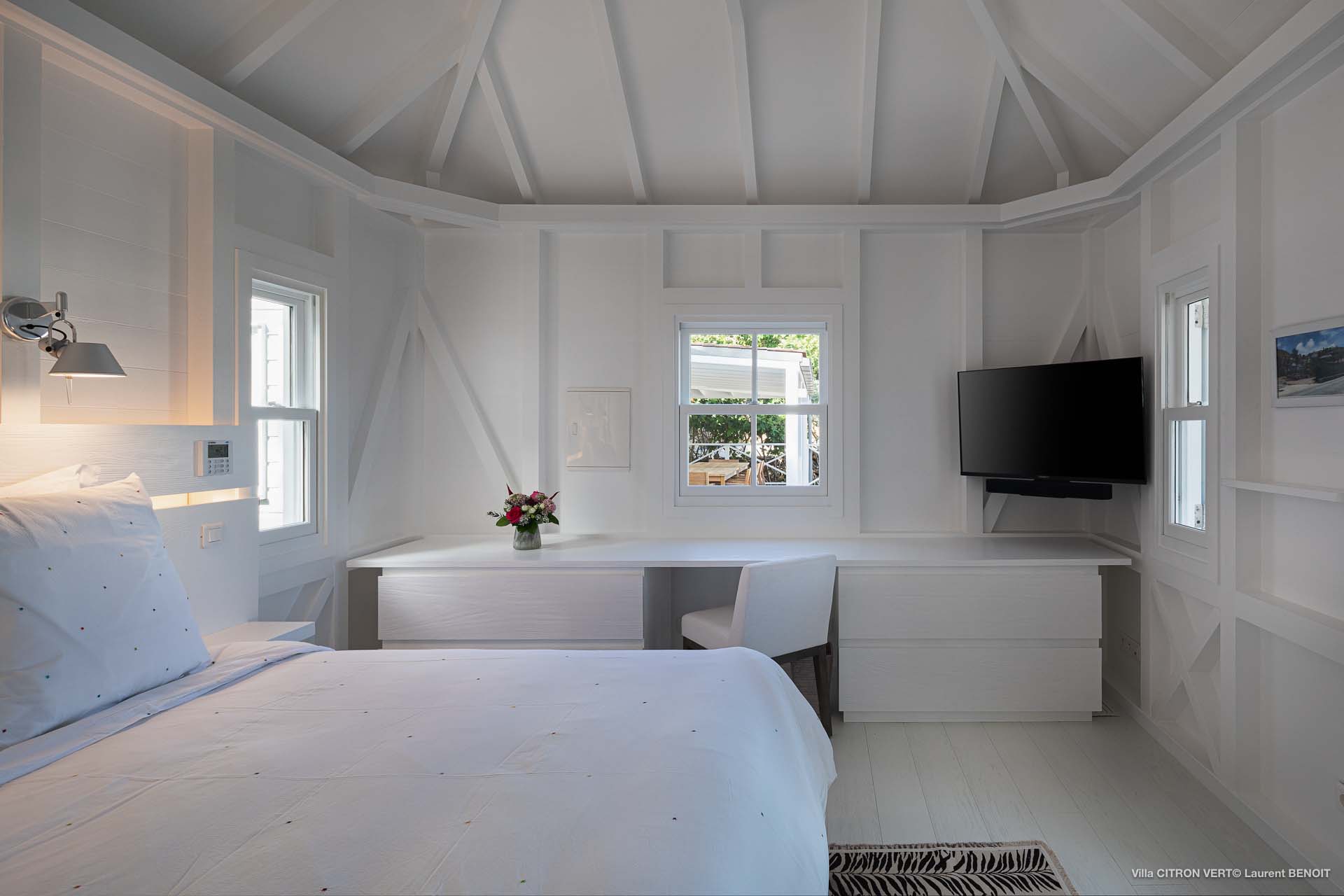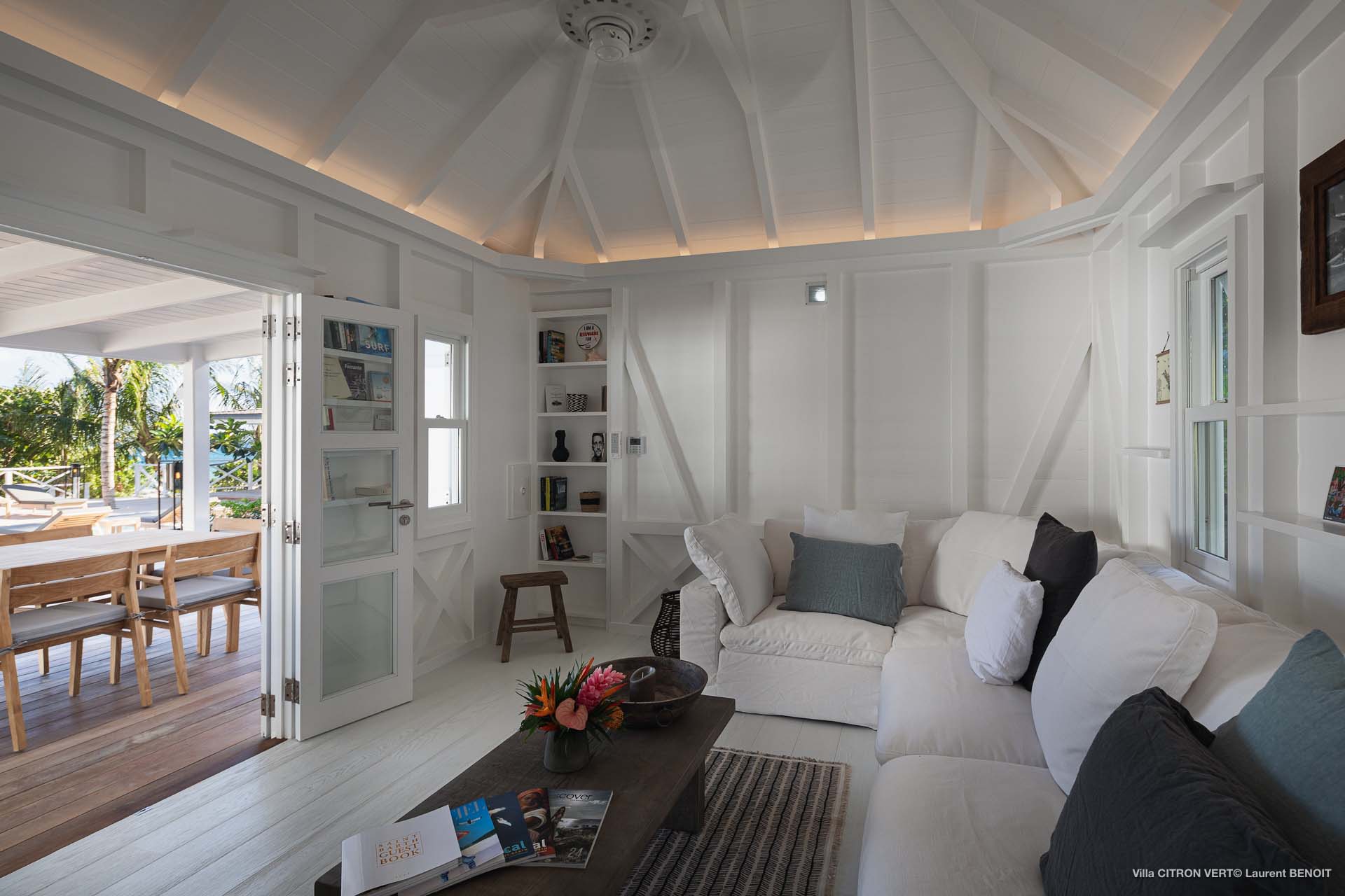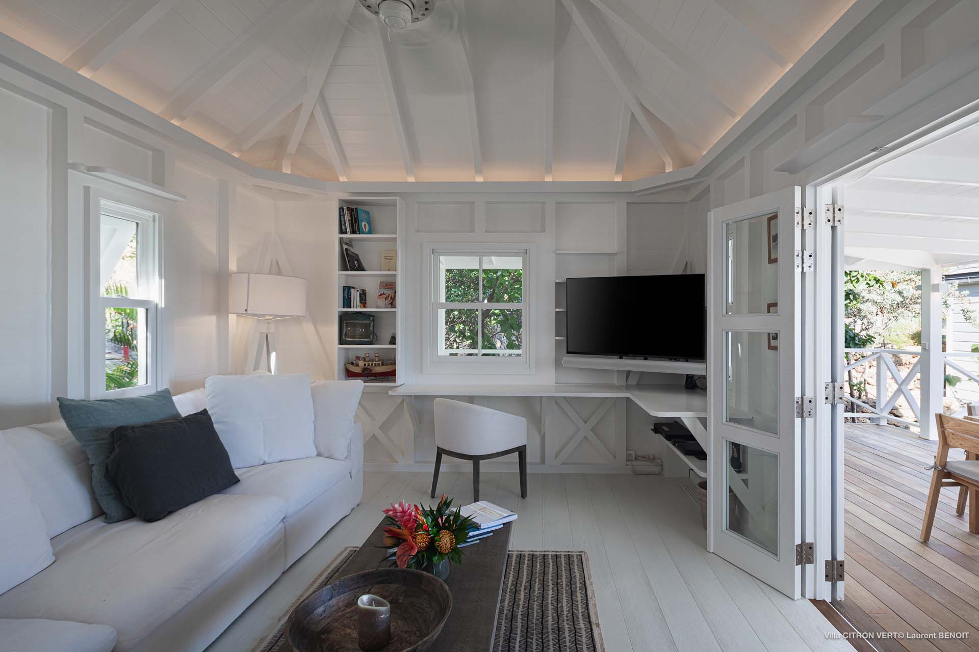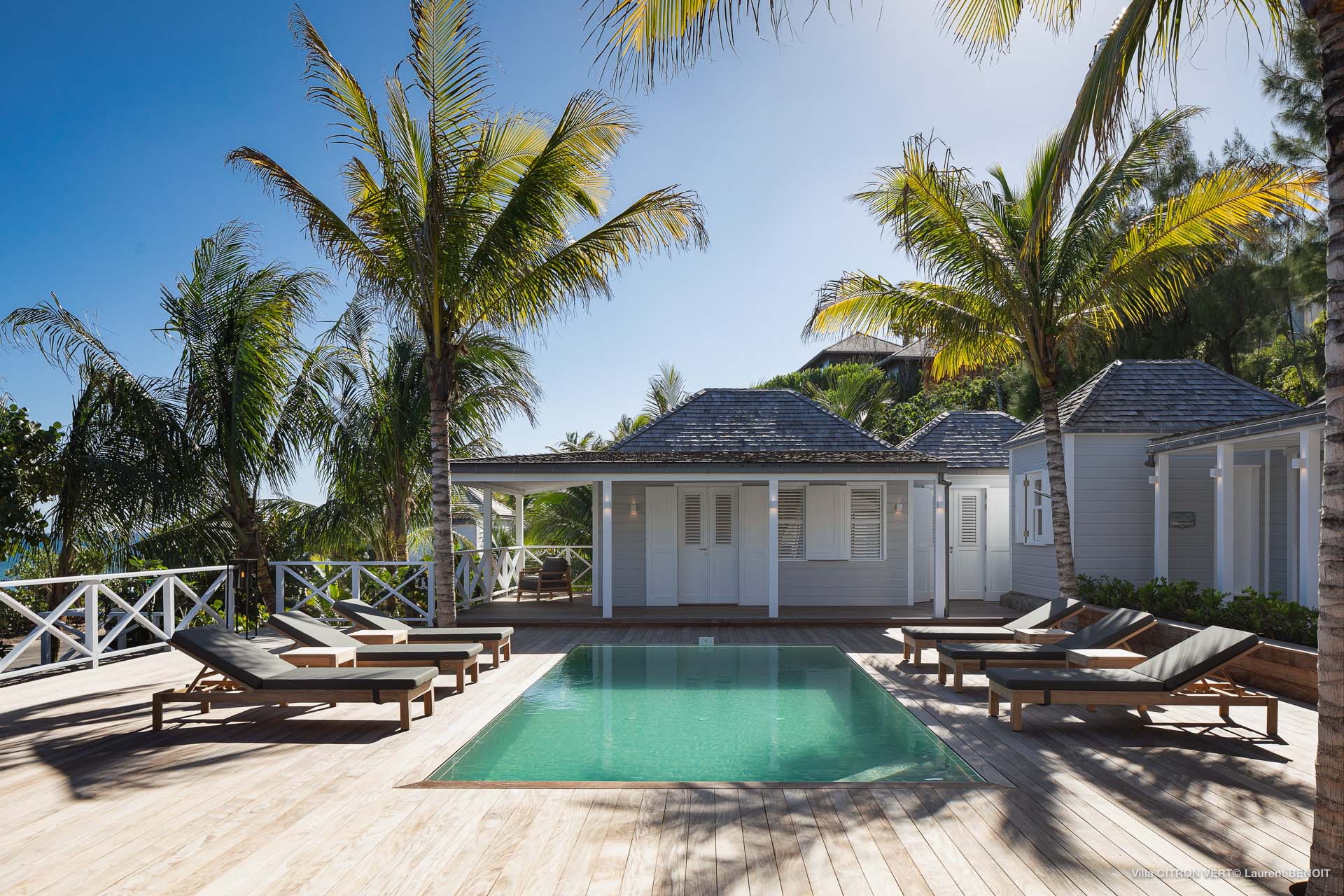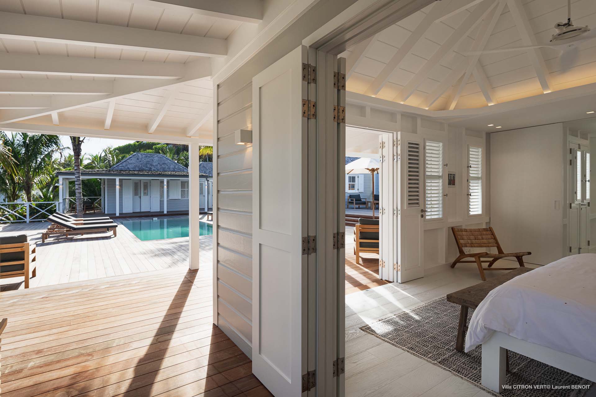 Villa Citron Vert (villa code: WV CIT) is a 3-bedroom situated across from the ocean, and a short walk from the Toiny beach club. It’s composed of several cozy cottages in front of a large sundeck with a sunken pool and pretty ocean views. There’s ample seating in both sun and shade, as well as a dining area with outdoor kitchen and grill. On the higher part of the deck is a small cottage with an air-conditioned living room, which can also serve as an office space. Adjacent, is a small, but cozy open kitchen. The two master bedrooms are on either side of the pool in separate cottages, while a guest room is situated next to the kitchen. All rooms come with a Euro king-sized bed, ensuite bathrooms with shower, his-and-hers closets, U.S. satellite and AppleTV. Villa Citron Vert is a great choice for a family vacation, but can also suit couples vacationing together.Please fill out the form to begin your inquiry and we will connect you with a seasoned villa rental specialist.