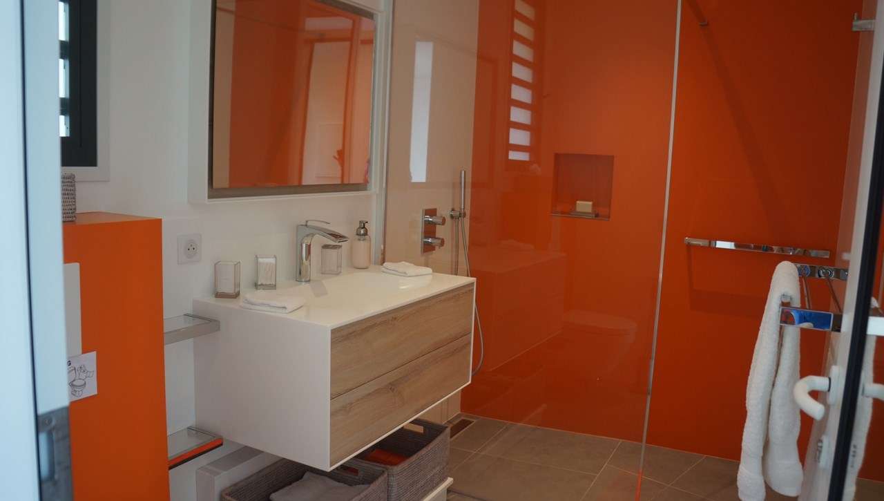 The interiors of Villa Claire are warm and inviting, offering the latest modern styles. High-end furnishings are chic in black and white while striking orange features add a lively touch of island color. Subtle design touches and the wonderful views combine to create a soothing atmosphere ideal for a low-key Caribbean getaway.