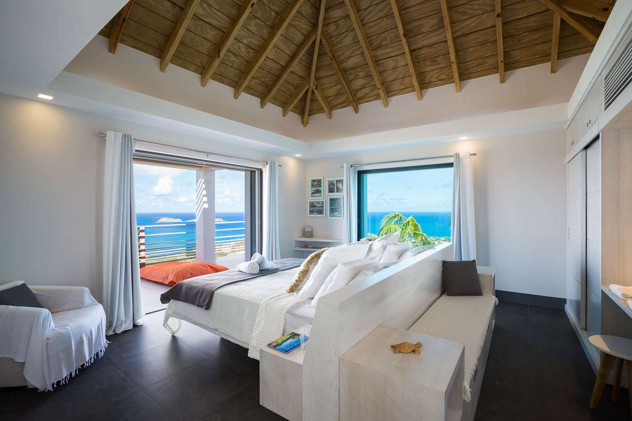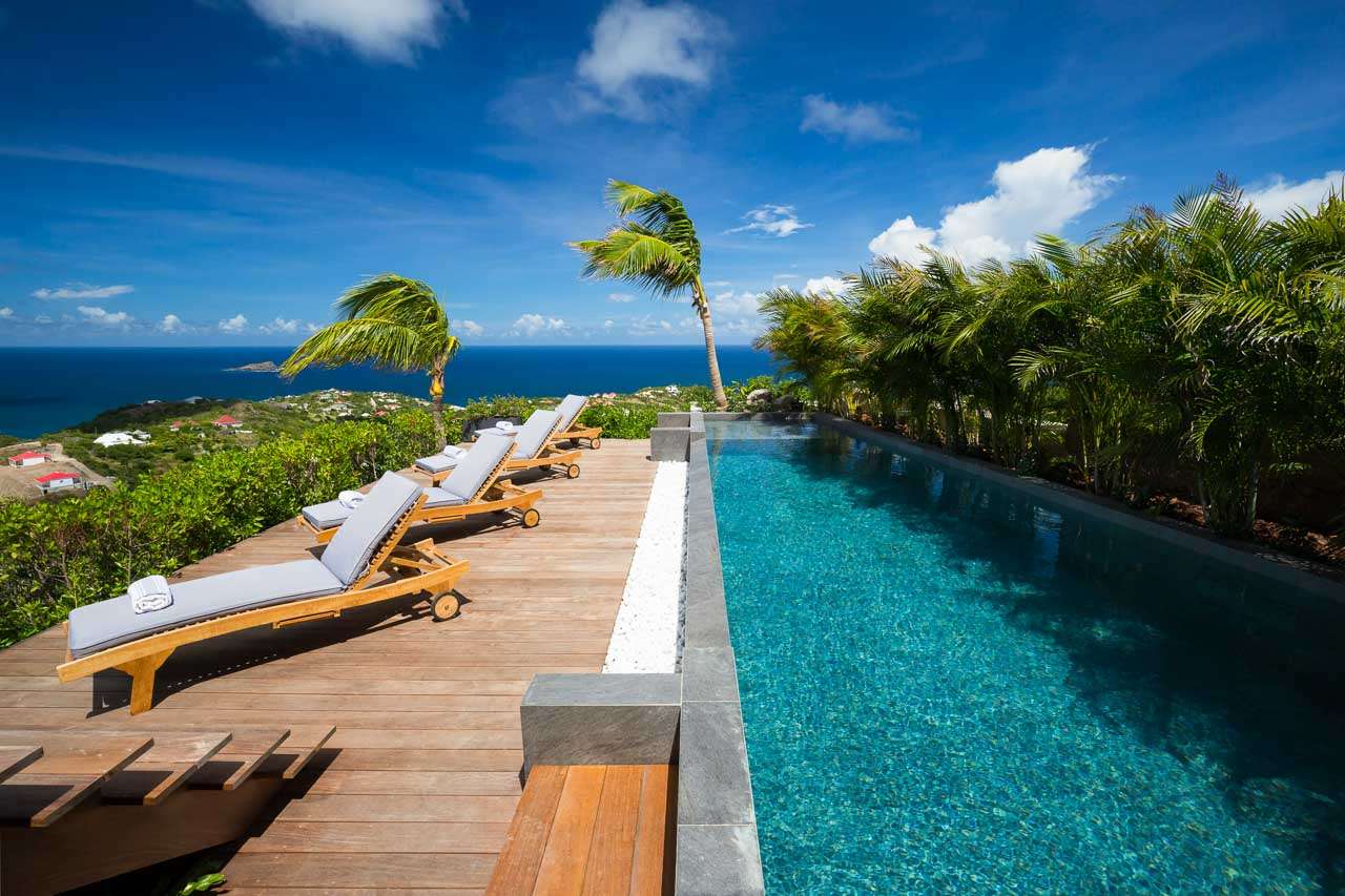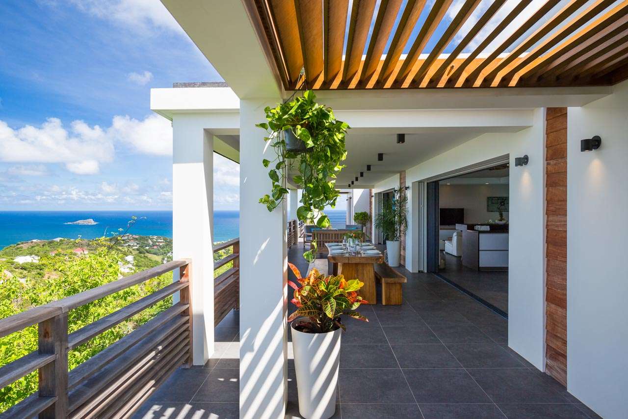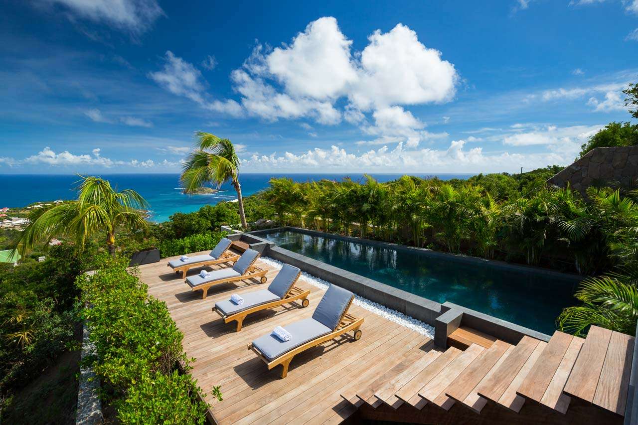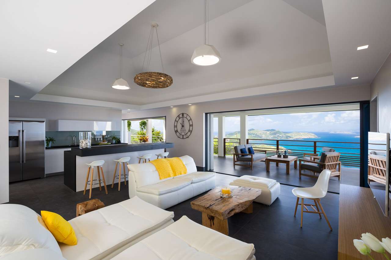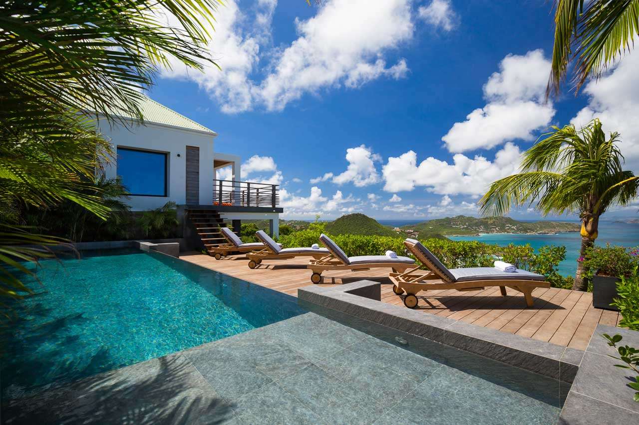 Castaway to Villa Clementine (villa code: WV CLM), a contemporary 3-bedroom villa high in the hills above Lorient, St. Barts. Offering stunning birds-eye views across the island, this island home enjoys spectacular sunrises and sunsets a 10-minute drive from the beach. The shops and restaurants of St. Jean are also a short drive away. The good life is easy to come by inside Villa Clementine, designed with pure luxury in mind. Modern, airy, and bright, the minimalist shades of white contrast with dark woods, while pops of citrus-orange and unique furnishings made from weathered wood add a sophisticated air to the home. Officially located in Vitet, at every turn, your gaze is met with incredible views over the emerald-green hills of St. Barts and the shimmering azure blues of the Caribbean Sea. The offshore islands of Fregate, Toc Vers, and Bonhomme are in full view, with St. Martin and Anguilla on the horizon. It comes as no surprise that Villa Clementine benefits from the natural breezes, which cool both the outdoor space and indoor living room. This makes the entire home a great place to lounge during the day, whether you’re chilling out by the heated pool or enjoying some downtime in the tastefully decorated living room. It’s the latter that acts as the heart of the home, a shared living space that’s a delightful spot to spend time with family and friends. Expect beautiful artwork on the wall, vaulted ceilings above, and a luxurious island atmosphere. To one side, sliding doors open to the wraparound terrace, welcoming those island views and enticing breezes inside. Next to the living area is Villa Clementine’s kitchen, with comfortable seating at a breakfast bar and a range of high-end appliances. Chic and stylish, foodies will feel right at home here. The dining table is on the covered terrace outside, enjoying one of the best views in the house. A meal here lets you pair your food with the beguiling coastline, sparkling bays, and golden beaches of the north coast. Villa Clementine is a great choice for both families with children or a group of friends traveling together. All three bedrooms inside the home are equal, with European king-sized beds, his-and-hers closets, and elegant ensuite bathrooms. There are two bedrooms on the main floor, on either side of the living room. Both enjoy incredible views over the Caribbean, and one of the bedrooms has direct access to a stairway descending to the heated pool on the terrace below. The third bedroom is accessed from a staircase behind the kitchen, leading you to the lower floor. This room has a large private terrace, a great spot for a quiet drink or an in-house massage, arranged by our concierge service. A fitness room with an elliptical, treadmill, stationary bike, and universal machine is next to this lower-floor bedroom. Villa Clementine’s large terrace immerses you in the Caribbean experience; fantastic views, fresh island air, and shimmering shades of blue in the water.Please fill out the form to begin your inquiry and we will connect you with a seasoned villa rental specialist.