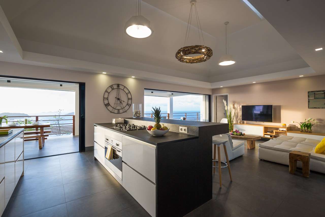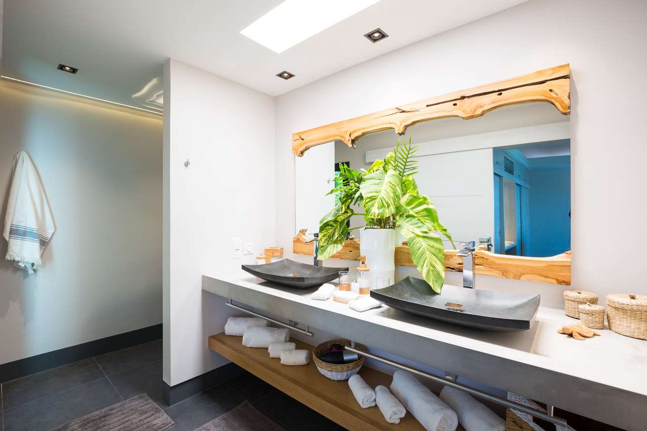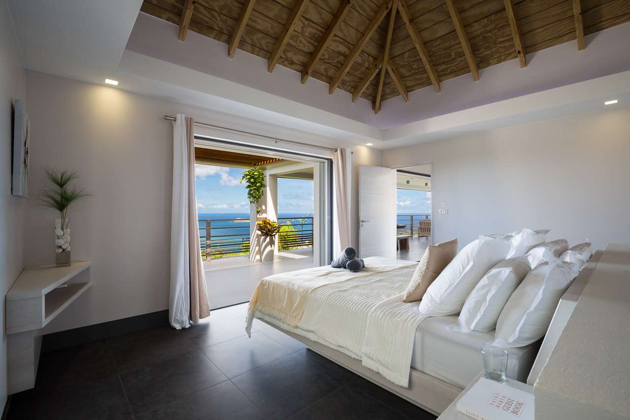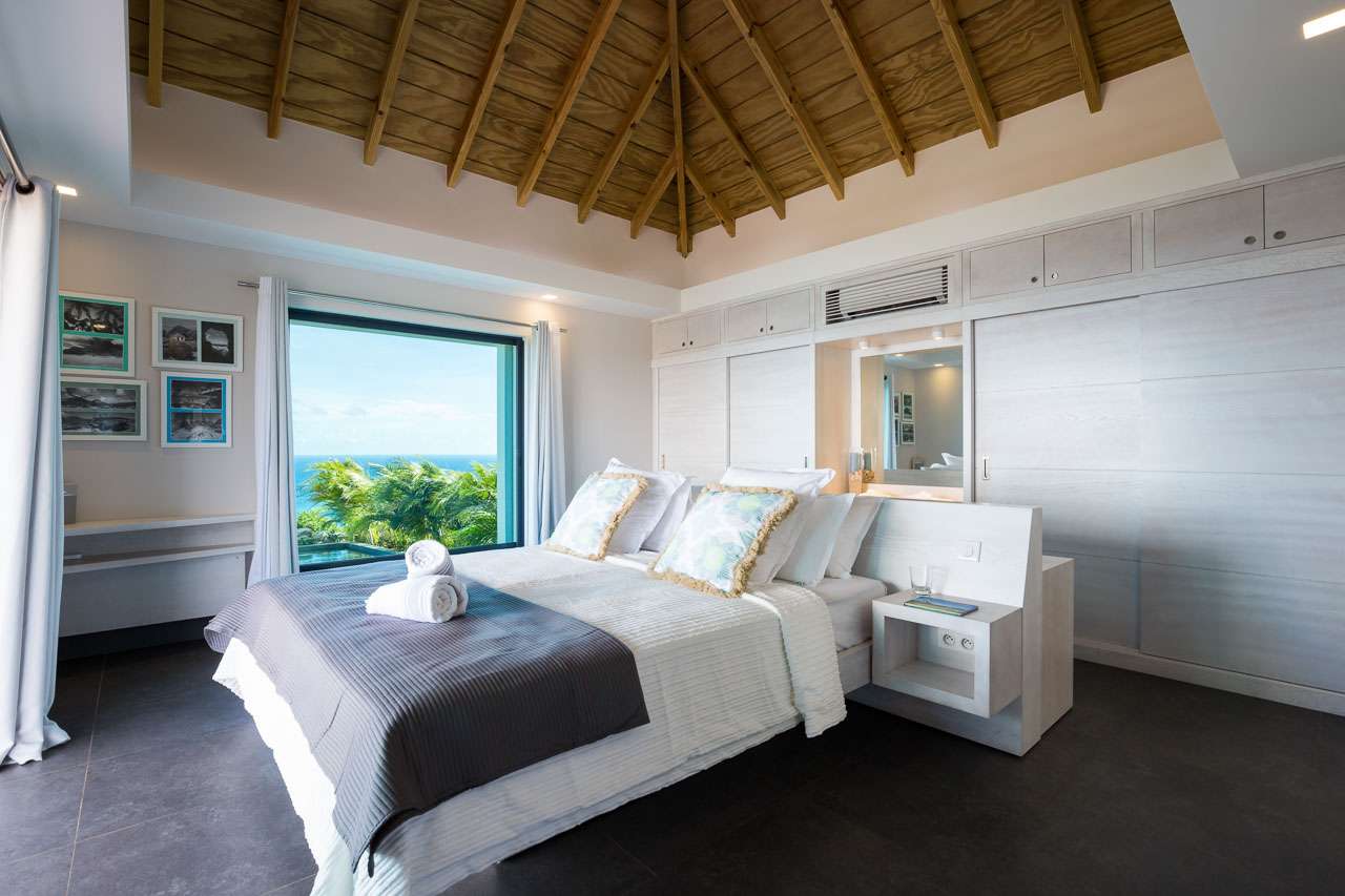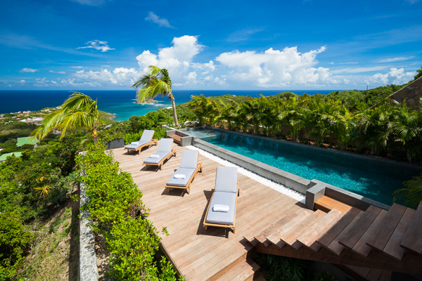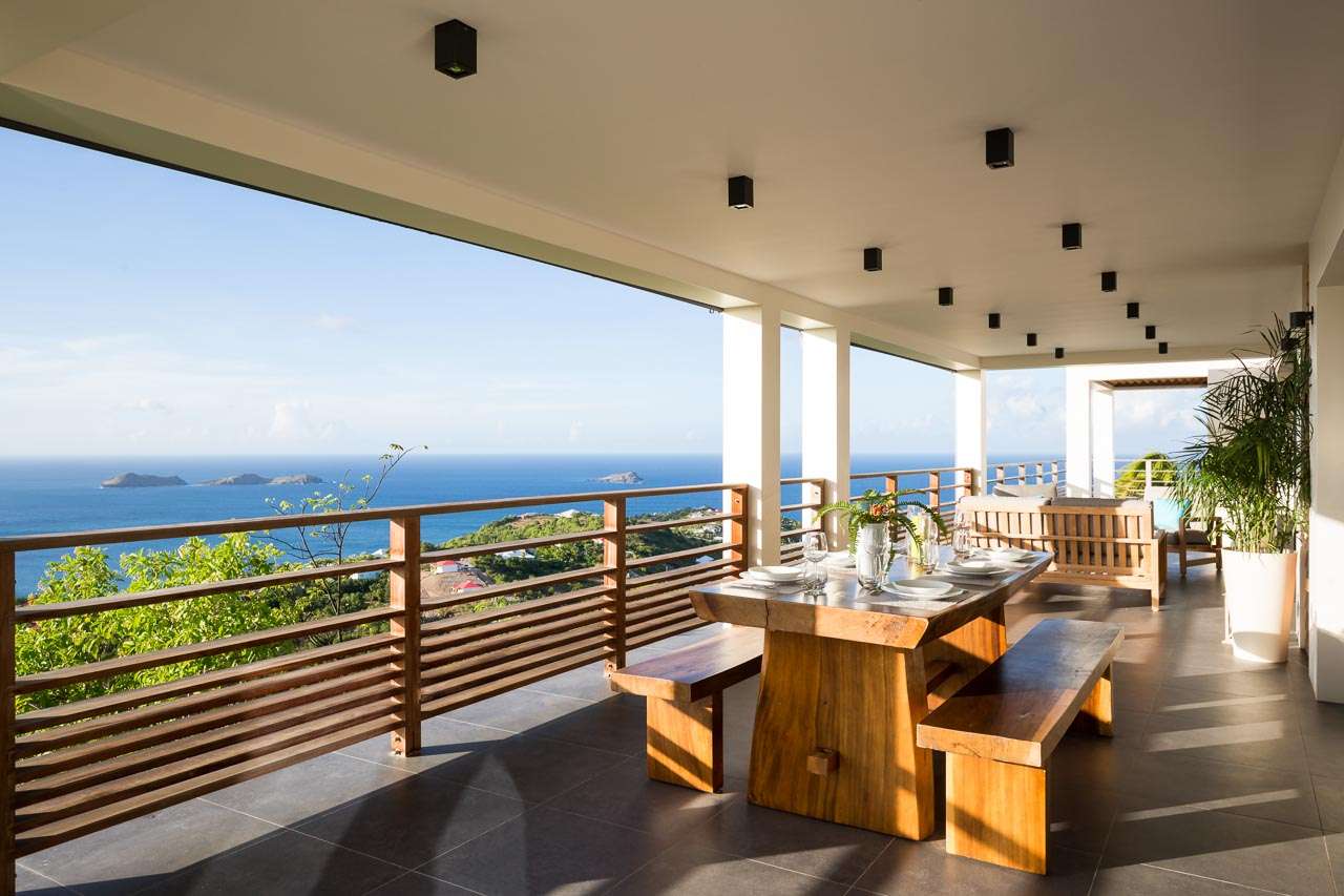 Castaway to Villa Clementine (villa code: WV CLM), a contemporary 3-bedroom villa high in the hills above Lorient, St. Barts. Offering stunning birds-eye views across the island, this island home enjoys spectacular sunrises and sunsets a 10-minute drive from the beach. The shops and restaurants of St. Jean are also a short drive away. The good life is easy to come by inside Villa Clementine, designed with pure luxury in mind. Modern, airy, and bright, the minimalist shades of white contrast with dark woods, while pops of citrus-orange and unique furnishings made from weathered wood add a sophisticated air to the home. Officially located in Vitet, at every turn, your gaze is met with incredible views over the emerald-green hills of St. Barts and the shimmering azure blues of the Caribbean Sea. The offshore islands of Fregate, Toc Vers, and Bonhomme are in full view, with St. Martin and Anguilla on the horizon. It comes as no surprise that Villa Clementine benefits from the natural breezes, which cool both the outdoor space and indoor living room. This makes the entire home a great place to lounge during the day, whether you’re chilling out by the heated pool or enjoying some downtime in the tastefully decorated living room. It’s the latter that acts as the heart of the home, a shared living space that’s a delightful spot to spend time with family and friends. Expect beautiful artwork on the wall, vaulted ceilings above, and a luxurious island atmosphere. To one side, sliding doors open to the wraparound terrace, welcoming those island views and enticing breezes inside. Next to the living area is Villa Clementine’s kitchen, with comfortable seating at a breakfast bar and a range of high-end appliances. Chic and stylish, foodies will feel right at home here. The dining table is on the covered terrace outside, enjoying one of the best views in the house. A meal here lets you pair your food with the beguiling coastline, sparkling bays, and golden beaches of the north coast. Villa Clementine is a great choice for both families with children or a group of friends traveling together. All three bedrooms inside the home are equal, with European king-sized beds, his-and-hers closets, and elegant ensuite bathrooms. There are two bedrooms on the main floor, on either side of the living room. Both enjoy incredible views over the Caribbean, and one of the bedrooms has direct access to a stairway descending to the heated pool on the terrace below. The third bedroom is accessed from a staircase behind the kitchen, leading you to the lower floor. This room has a large private terrace, a great spot for a quiet drink or an in-house massage, arranged by our concierge service. A fitness room with an elliptical, treadmill, stationary bike, and universal machine is next to this lower-floor bedroom. Villa Clementine’s large terrace immerses you in the Caribbean experience; fantastic views, fresh island air, and shimmering shades of blue in the water.Please fill out the form to begin your inquiry and we will connect you with a seasoned villa rental specialist.