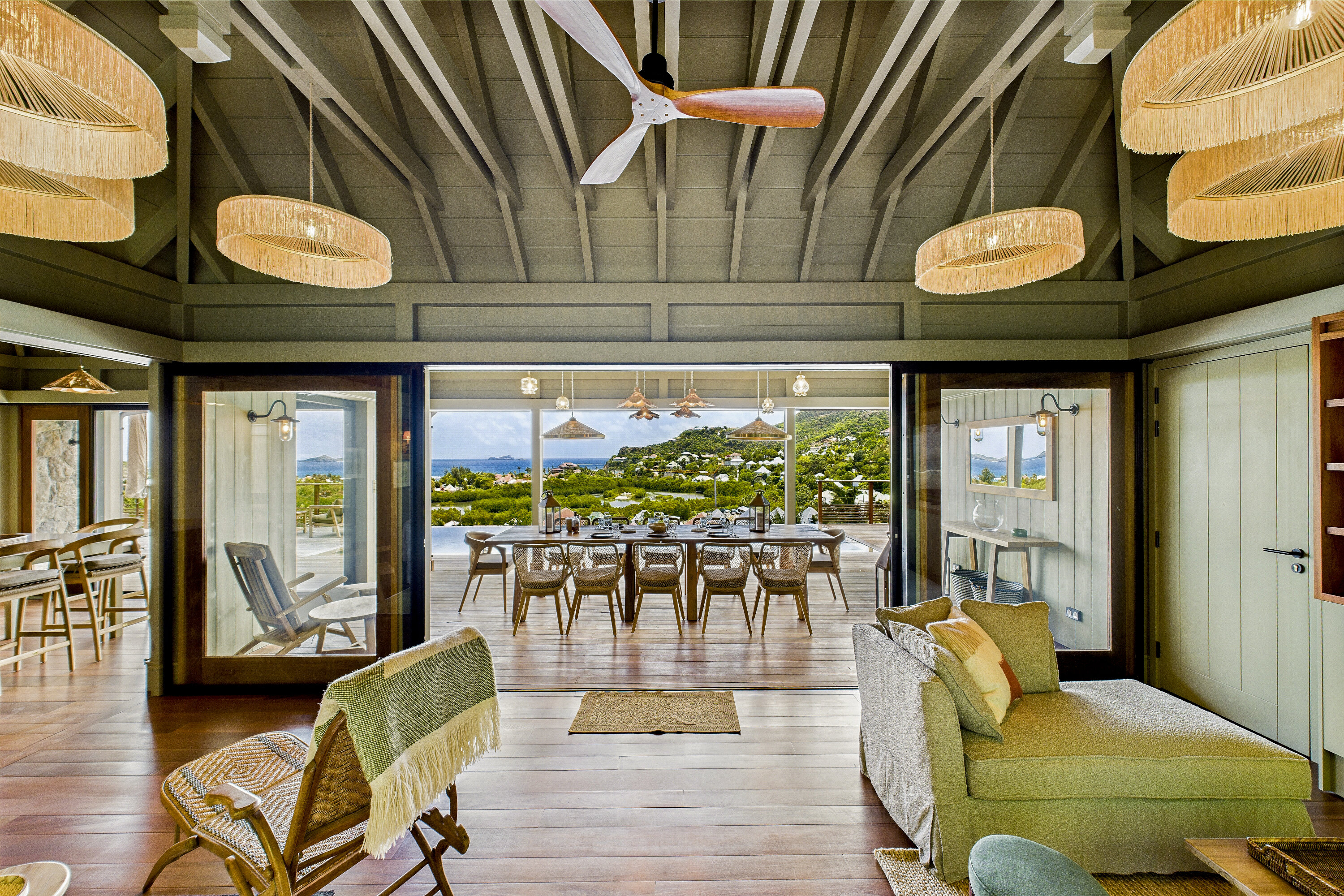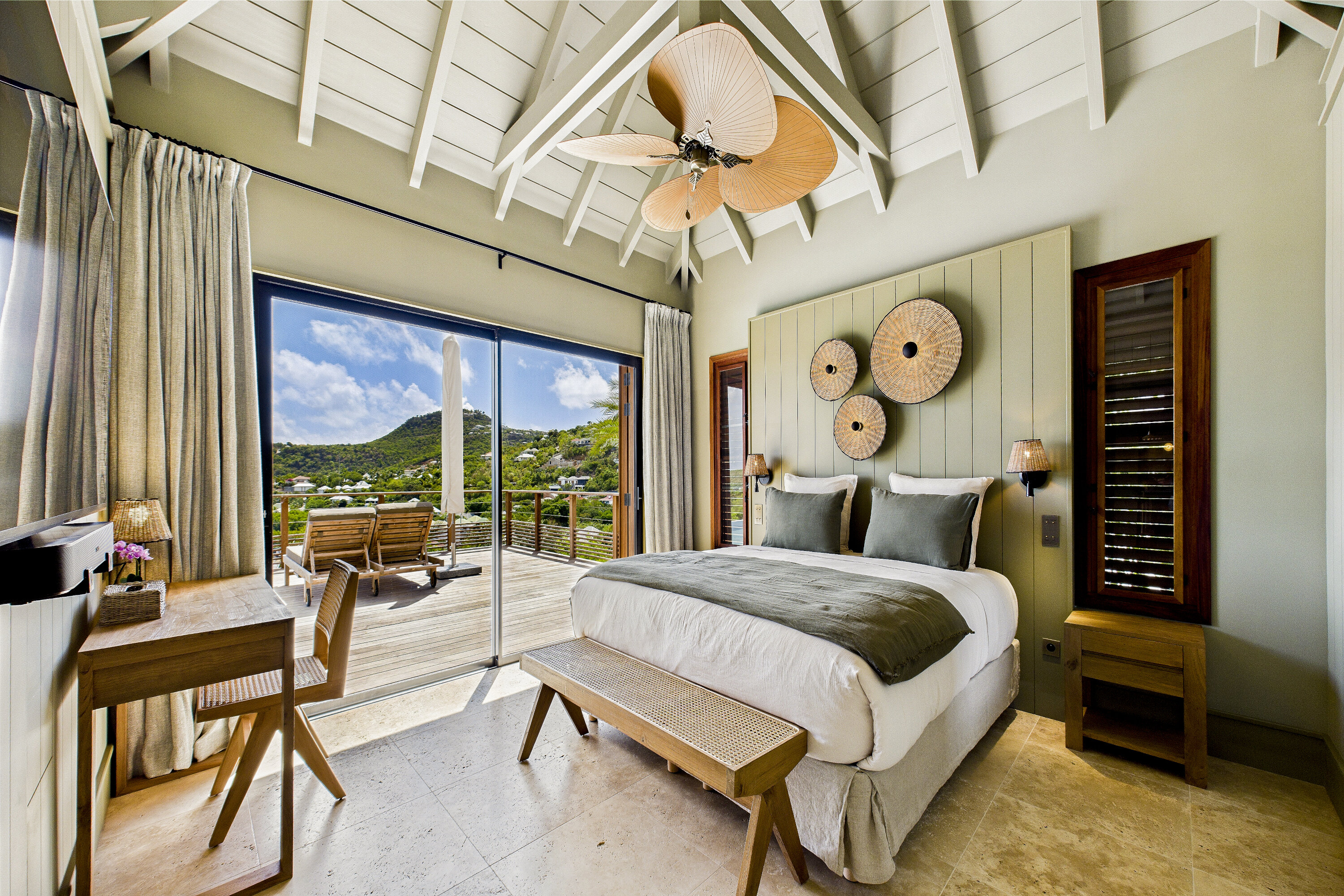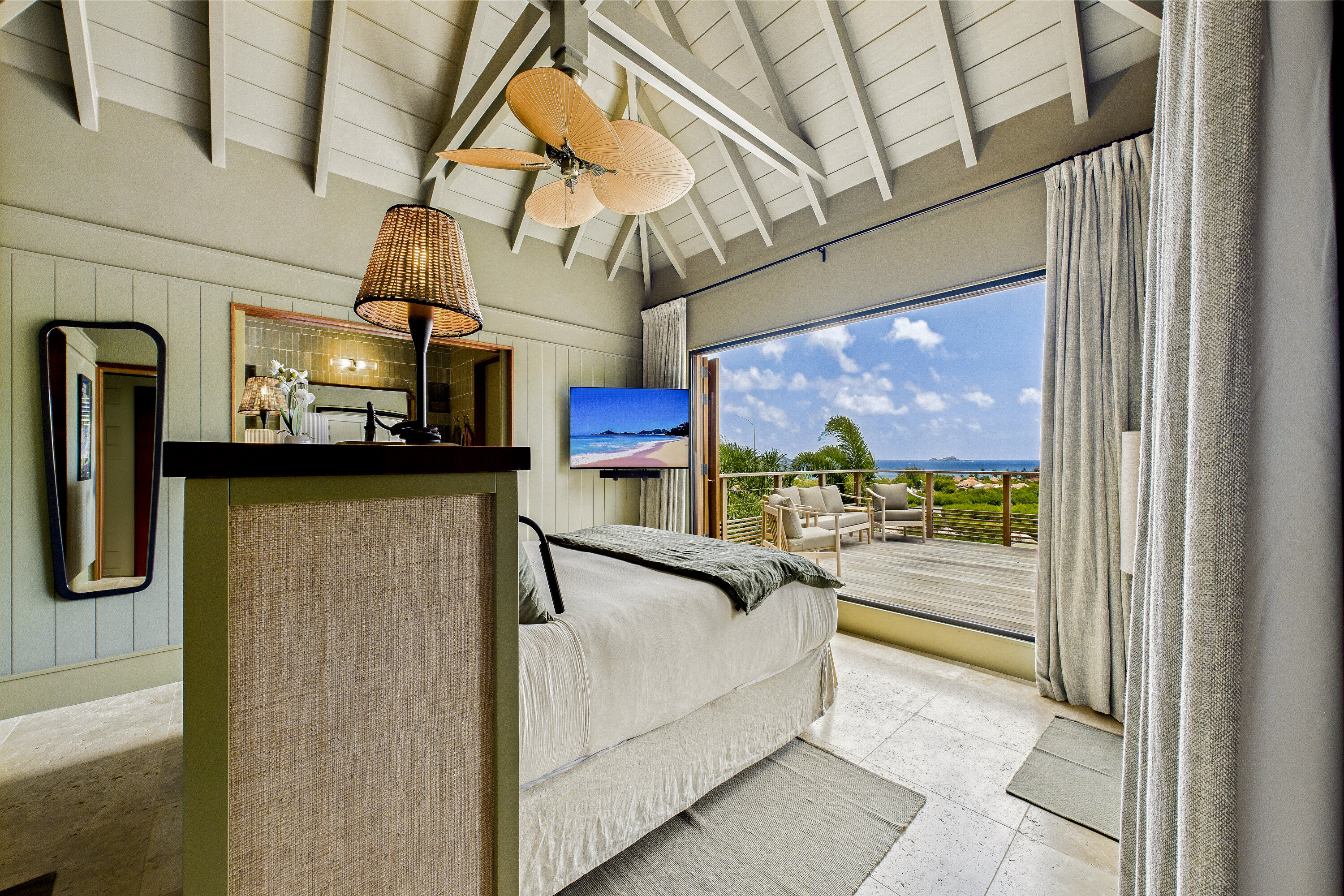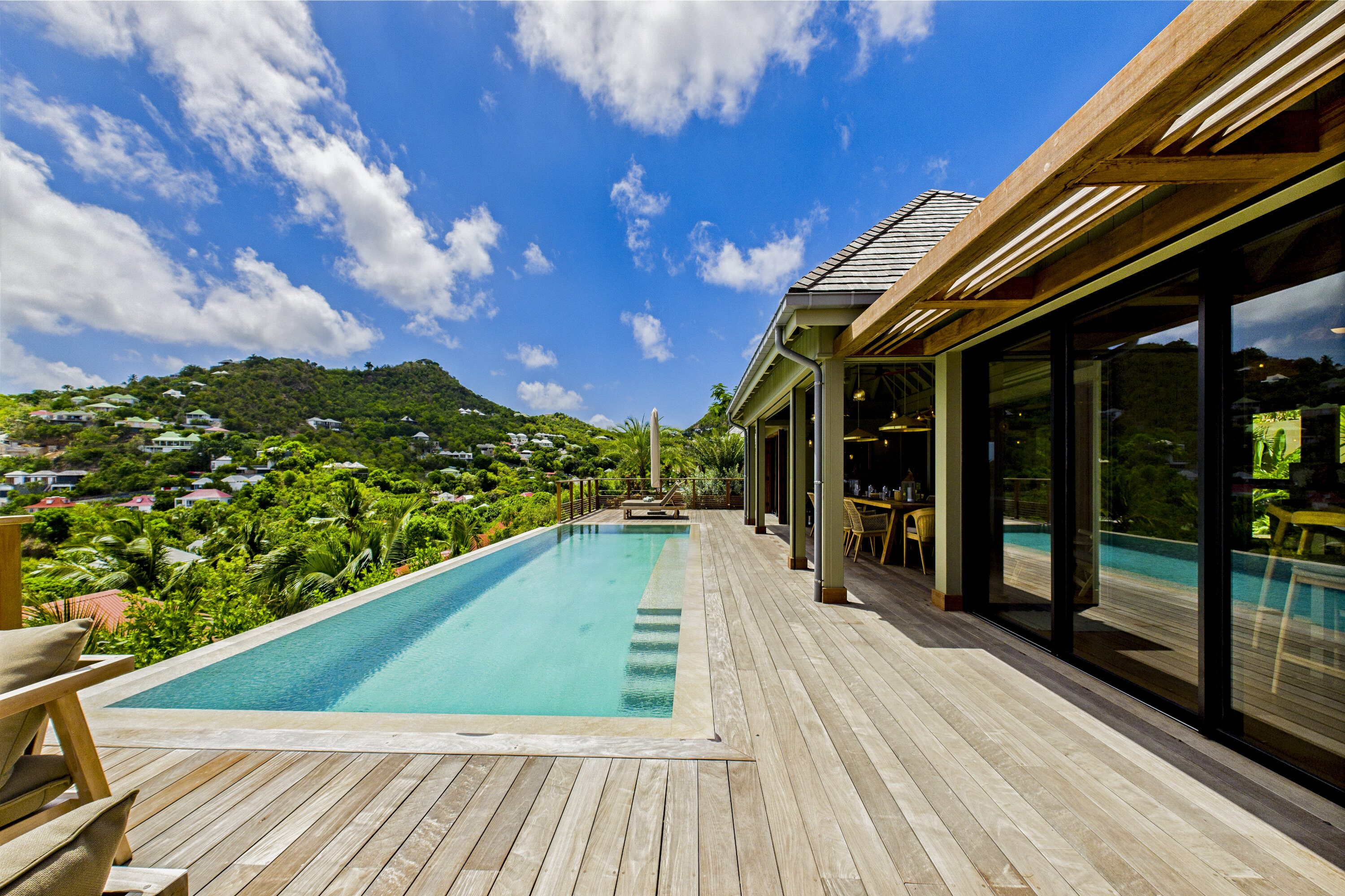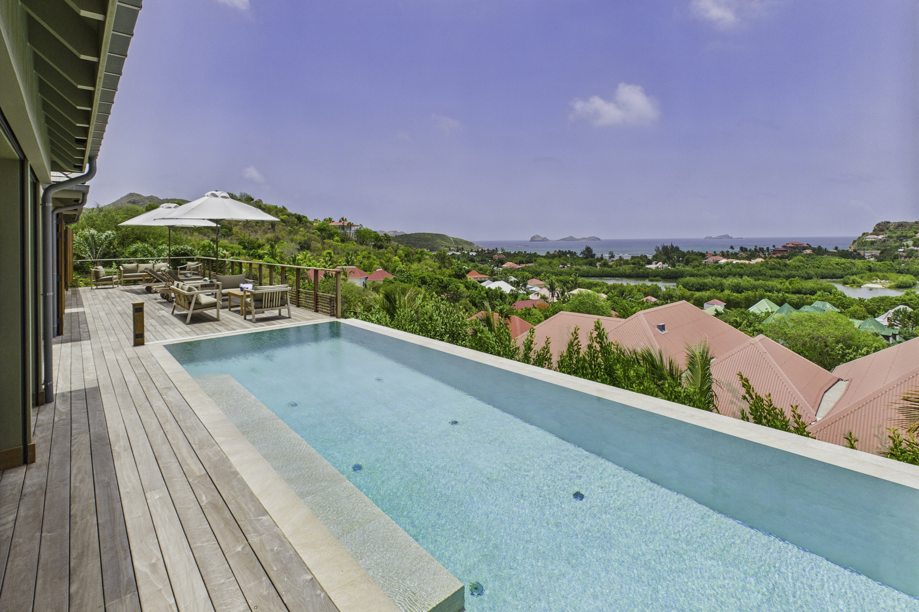 Welcome to Villa Clyde (villa code: WV CLY), the charming sister property to Villa Bonnie, offering breathtaking views of St. Jean Bay. This villa blends modern design with subtle Caribbean influences, creating an elegant and tranquil atmosphere. The spacious, air-conditioned living area opens onto a shaded terrace, perfect for intimate candlelit dinners or relaxed family meals. Nearby, a sun-drenched pool invites you to lounge comfortably or take a refreshing swim. The fully equipped kitchen features a generous central island, ideal for preparing meals and gathering with loved ones. High vaulted ceilings allow cooling breezes to circulate throughout, enhancing the serene ambiance. Each of the three air-conditioned bedrooms opens directly onto the terrace and is decorated in soothing natural tones and warm materials that complement the spectacular Caribbean surroundings. The bathrooms, with outdoor showers, add an exotic touch to your stay. Villa Clyde is the perfect retreat to unwind, recharge, and fully enjoy everything St. Barts has to offer. With its prime location, excellent amenities, and welcoming vibe, it promises a memorable Caribbean escape. The two twin villas—Clyde and Bonnie—can be rented separately or together, offering great flexibility to suit your needs.Please fill out the form to begin your inquiry and we will connect you with a seasoned villa rental specialist.