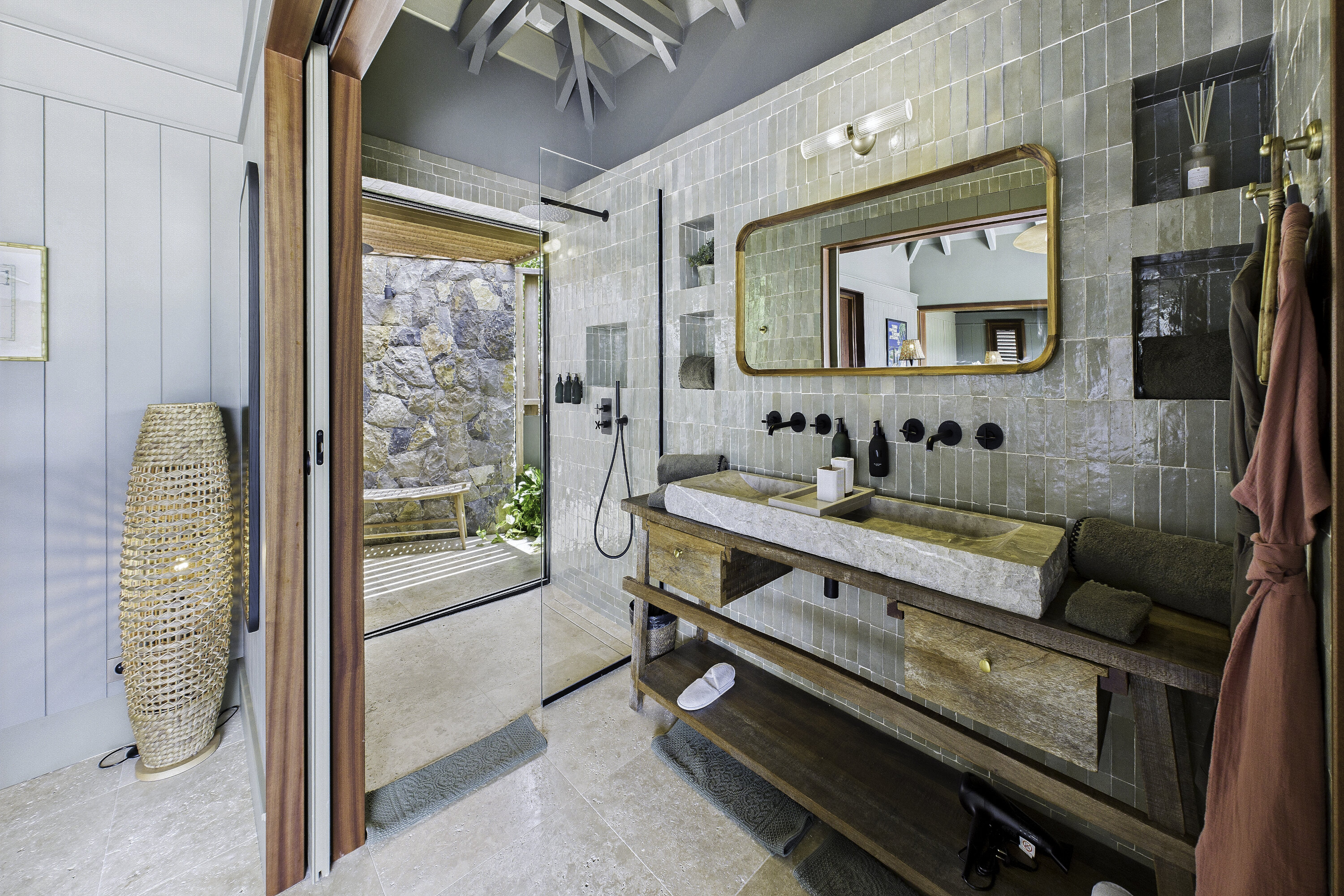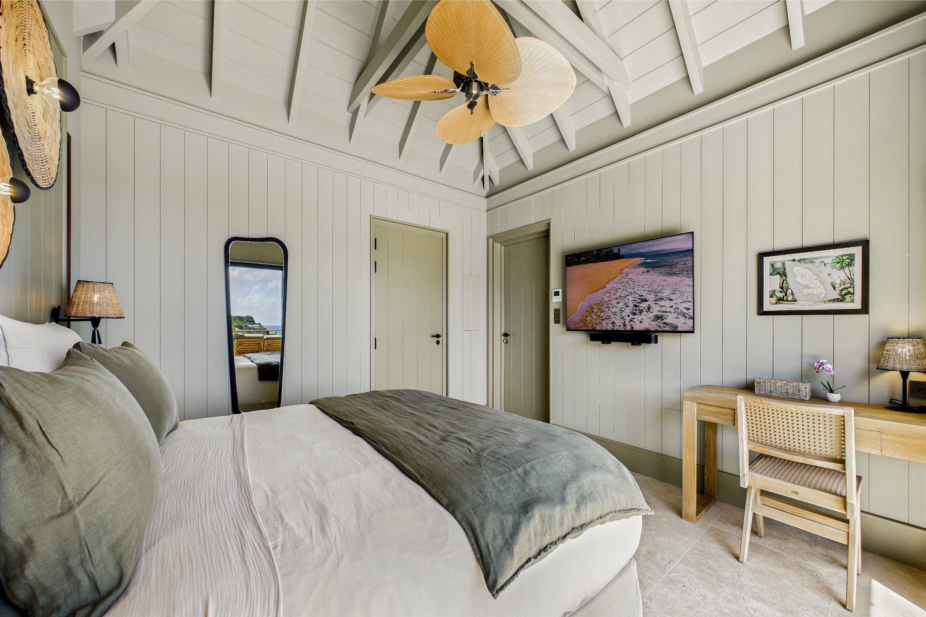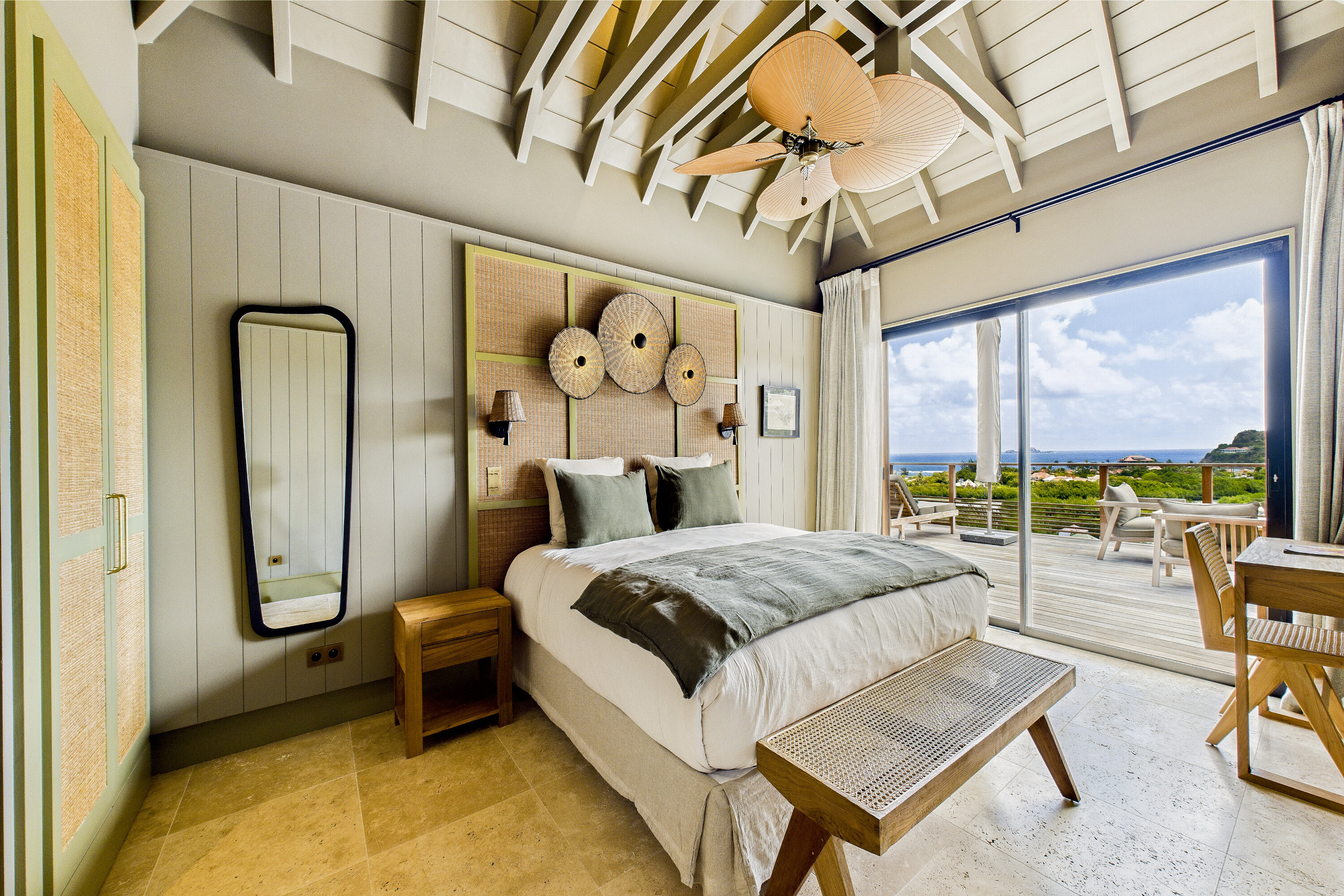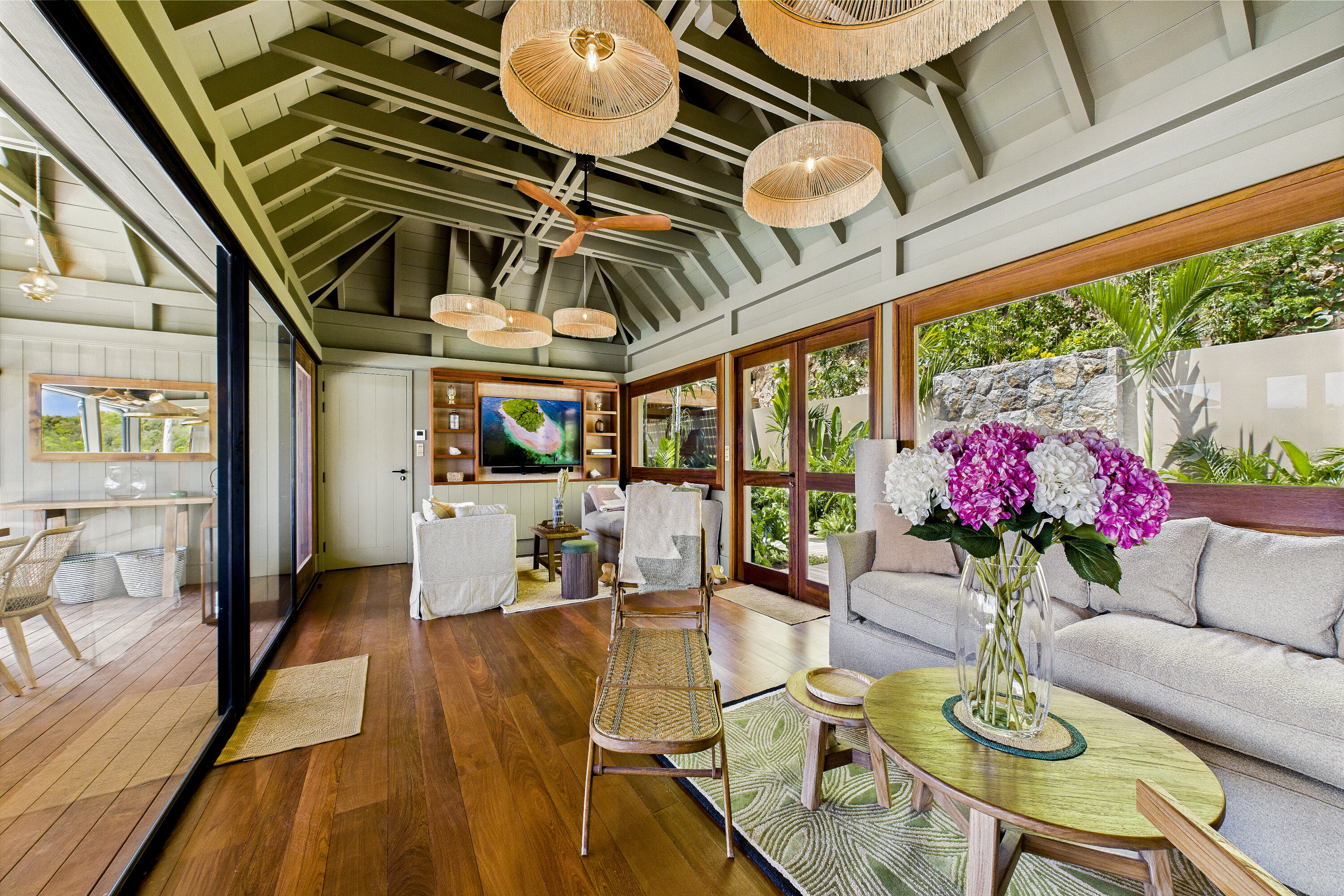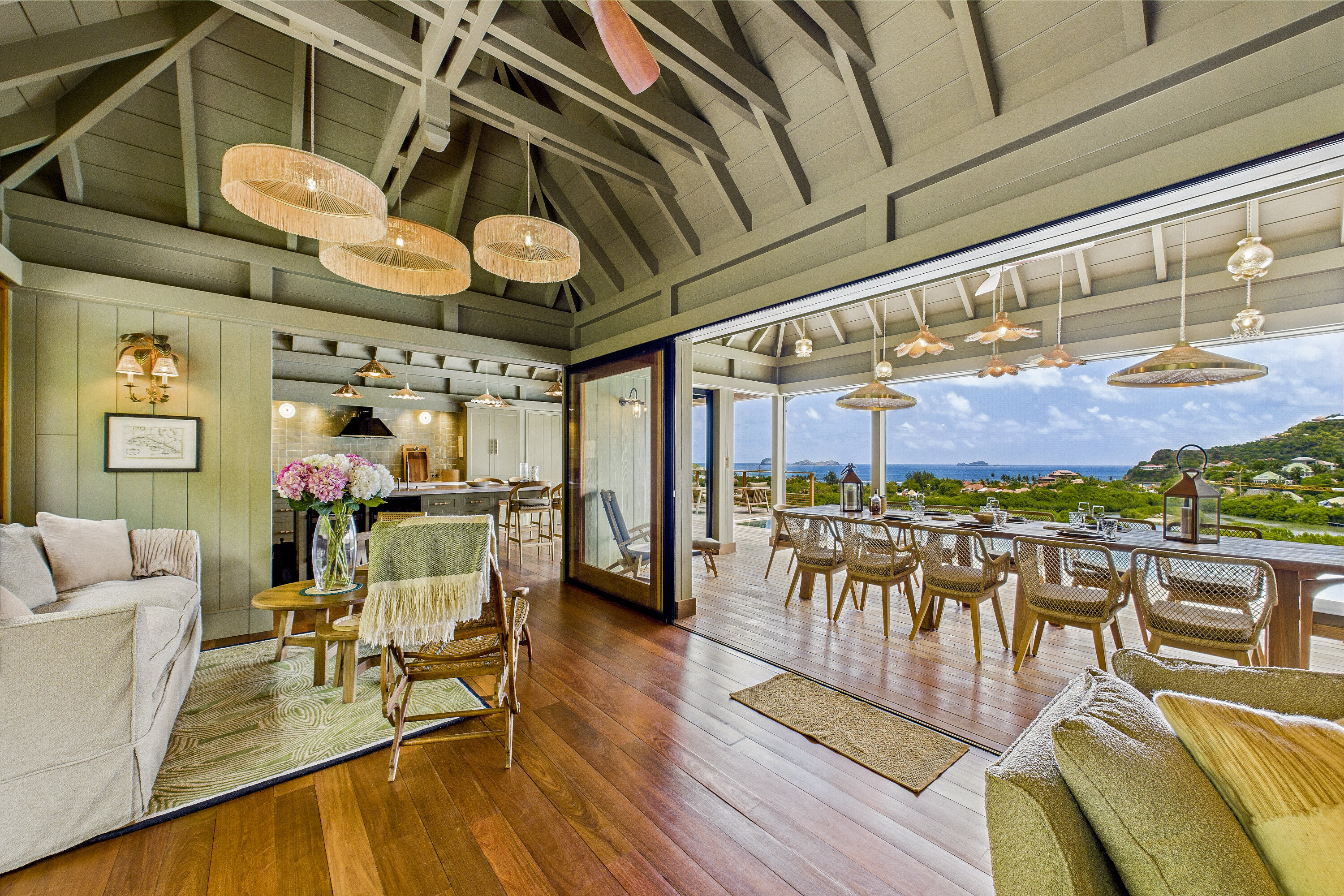 Welcome to Villa Clyde (villa code: WV CLY), the charming sister property to Villa Bonnie, offering breathtaking views of St. Jean Bay. This villa blends modern design with subtle Caribbean influences, creating an elegant and tranquil atmosphere. The spacious, air-conditioned living area opens onto a shaded terrace, perfect for intimate candlelit dinners or relaxed family meals. Nearby, a sun-drenched pool invites you to lounge comfortably or take a refreshing swim. The fully equipped kitchen features a generous central island, ideal for preparing meals and gathering with loved ones. High vaulted ceilings allow cooling breezes to circulate throughout, enhancing the serene ambiance. Each of the three air-conditioned bedrooms opens directly onto the terrace and is decorated in soothing natural tones and warm materials that complement the spectacular Caribbean surroundings. The bathrooms, with outdoor showers, add an exotic touch to your stay. Villa Clyde is the perfect retreat to unwind, recharge, and fully enjoy everything St. Barts has to offer. With its prime location, excellent amenities, and welcoming vibe, it promises a memorable Caribbean escape. The two twin villas—Clyde and Bonnie—can be rented separately or together, offering great flexibility to suit your needs.Please fill out the form to begin your inquiry and we will connect you with a seasoned villa rental specialist.