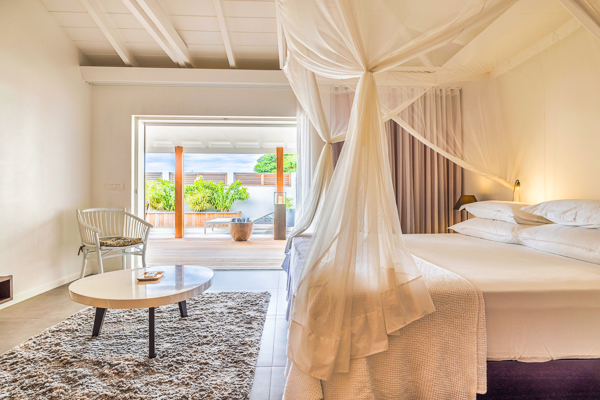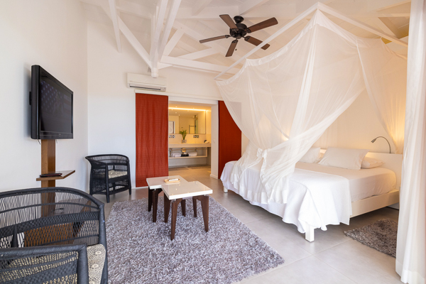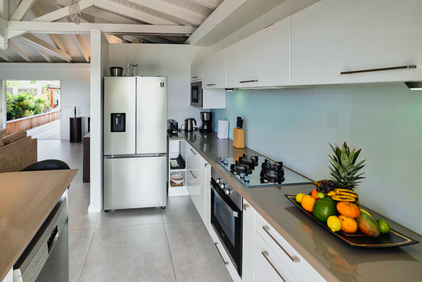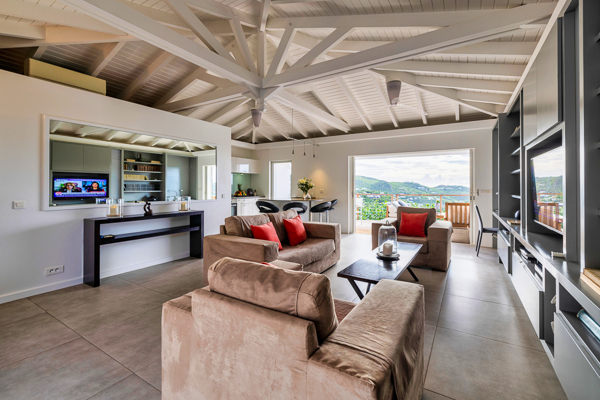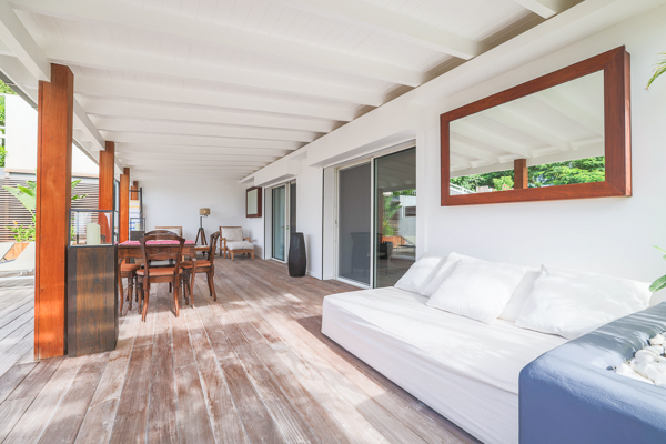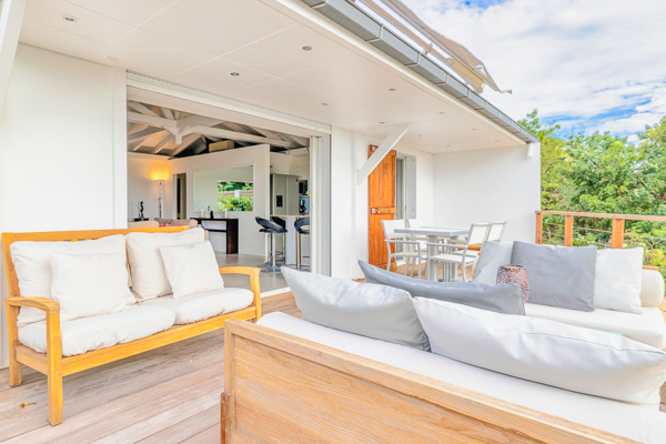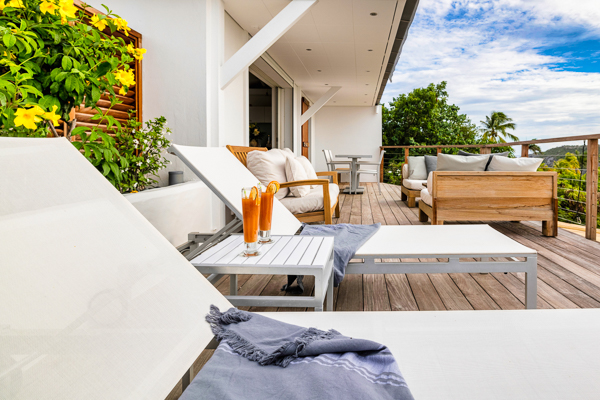 Villa Coco de Mer is a modern 2-bedroom villa located in St. Jean within minutes of the beach and shopping. This villa offers views of the ocean and landscape. The fully air-conditioned living area is comfortably furnished and connects to a well-equipped, modern kitchen with a bar and 4 stools. The living room opens to a large terrace with an outdoor living and dining area, which comfortably seats 4 guests. Each bedroom has a king-size bed with mosquito netting and an ensuite bathroom with shower. The bedrooms are located to the right of the courtyard, which features a cozy seating area, and a small waterfall. The house also has WiFi, a gated entry and U.S. satellite TV in the living room and bedrooms. Villa Coco de Mer comes with house cleaning services six days a week, except on holidays. During the December holidays, the villa rents at the full occupancy rate regardless of how many bedrooms are used. Pets are allowed upon request.Please fill out the form to begin your inquiry and we will connect you with a seasoned villa rental specialist.