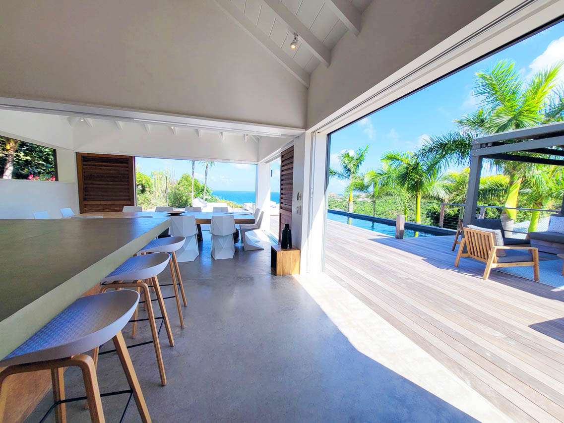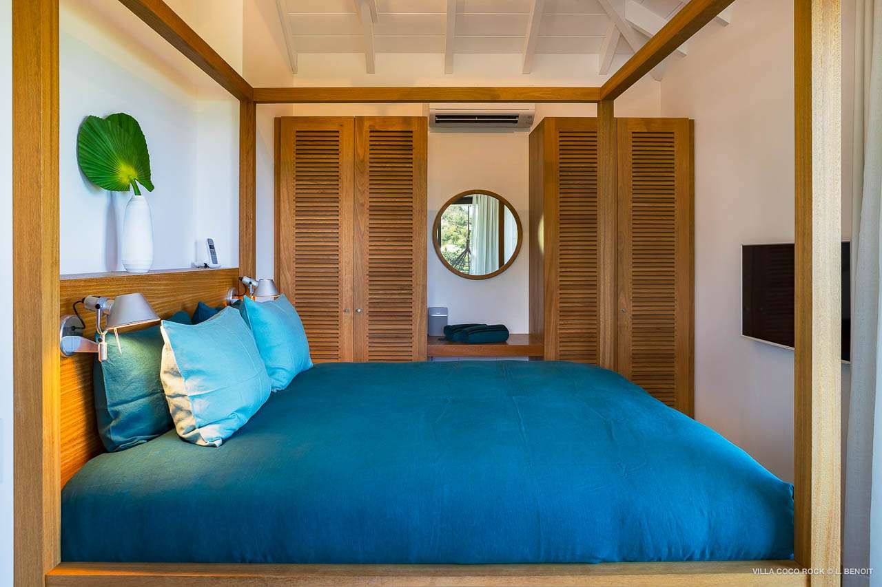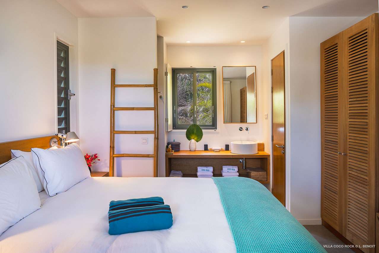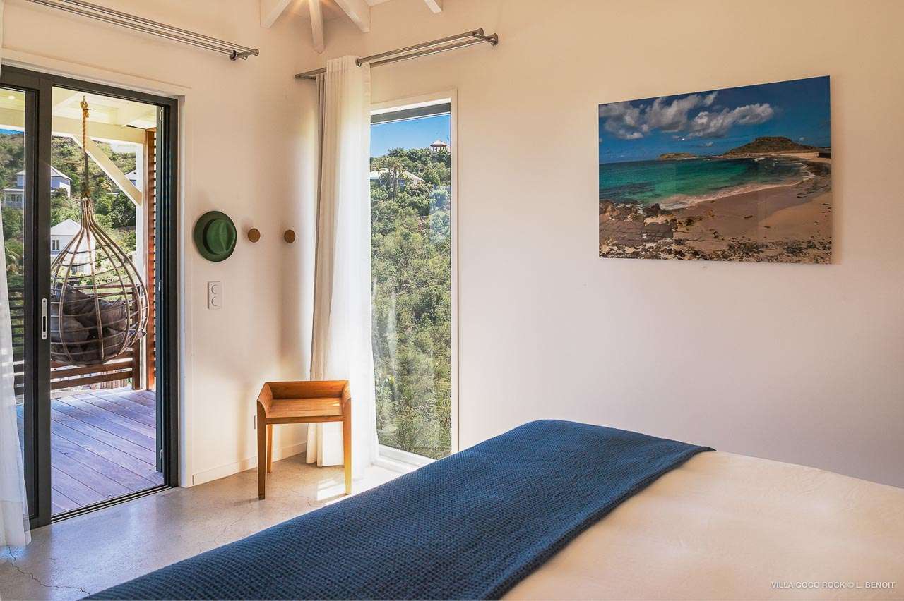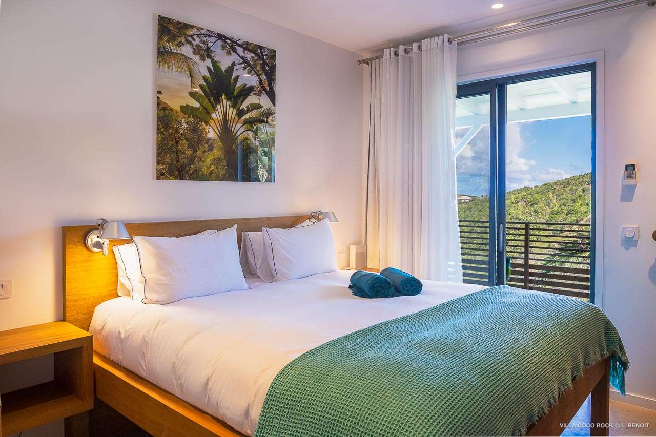 Welcome to Villa Coco Rock (villa code: WV CRK), a tranquil 6-bedroom villa located in Petit Cul de Sac, St. Barts. Within minutes of the beach, shops, and waterfront restaurants, locations don’t come much better than this for a laid-back and elegant Caribbean getaway. Effortlessly cool and contemporary, Villa Coco Rock is a masterpiece of design inside and out. From the dining chairs to the ceiling fans above, the décor is refined, natural, and organic, complementing the stunning island beauty surrounding the villa. Wooden tones are integrated into the design as well, keeping the whole home feeling warm and welcoming. Nestled in the hills amongst a beautiful tropical garden, Villa Coco Rock enjoys a fabulous and secluded location in Petit Cul de Sac. The beautiful and quiet beach is minutes away, as are the waterfront restaurants at Grand Cul de Sac to the west. Shops are a 10-minute drive, while Gustavia is around 20 minutes by car. Spread across the main building and several bedroom bungalows, the design of Villa Coco Rock coaxes you outside at every turn. Stairs from the parking area lead into the main living area, where wall-to-wall sliding doors open completely to the pool terrace to frame stunning views of the rolling green hills and sparkling turquoise sea. There’s a cozy living room here, featuring a comfortable sectional sofa in front of a flat-screen TV with U.S. satellite channels. It’s a great spot to retreat to after dinner, relaxing with a movie. The real centerpiece of Coco Rock’s living area is the open-plan kitchen, modern and well-equipped. The large island seats up to 12 guests, making it an idyllic spot to enjoy an aperitif and hors d’oeuvres before dinner. The graceful dining table sits next to the kitchen, a wonderful spot to spend an evening enjoying great food and even better company. You could also choose to dine outside, where a wooden slab table offers seating for 16 people under a covered terrace. The 6 tranquil bedrooms at Villa Coco Rock are spread across three separate bungalows. The master bedroom is in its own bungalow, with a private terrace with ocean views. The ensuite bathroom also features a lovely outdoor shower. On the other side of the parking area is the third unit with a terrace and two guest bedrooms, each with an outdoor shower. Above is the final unit, with three more bedrooms. This space also features a large terrace with an outdoor kitchen for when the late afternoon weather calls for island-style cookouts. All the bedrooms enjoy a plush European king-sized bed, a flat-screen TV with U.S. satellite channels, and an ensuite. The outdoor living spaces elegantly unfold from the main building, flowing toward the stunning swimming pool. It’s a tempting spot to spend a day, sunbathing on the loungers between lazy dips in the water to cool off. All the while, the views are sublime. The pool can also be heated for indulgent night-time swims. Underneath a gazebo is an outdoor living area, offering a lovely spot for your whole group to gather, relax, and enjoy a sunset cocktail hour. A large corner couch is complemented by bamboo chairs, coaxing you into cool down in the shade with a good book or an afternoon nap. Secluded and remote, you’ll feel as if you’re the only one on the island of St. Barts when spending time outside. Venturing down to the beach doesn’t do much to change that – Petit Cul de Sac is one of the most relaxed and uncrowded stretches of sand on the island. During the Thanksgiving and December holidays, the villa rents at full occupancy rates regardless of how many bedrooms are used.Please fill out the form to begin your inquiry and we will connect you with a seasoned villa rental specialist.