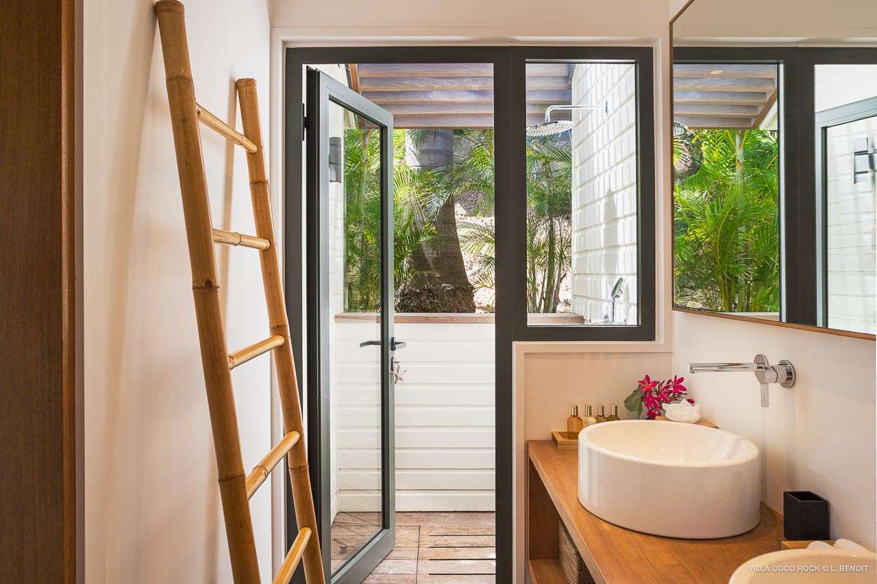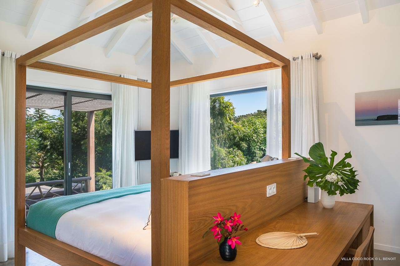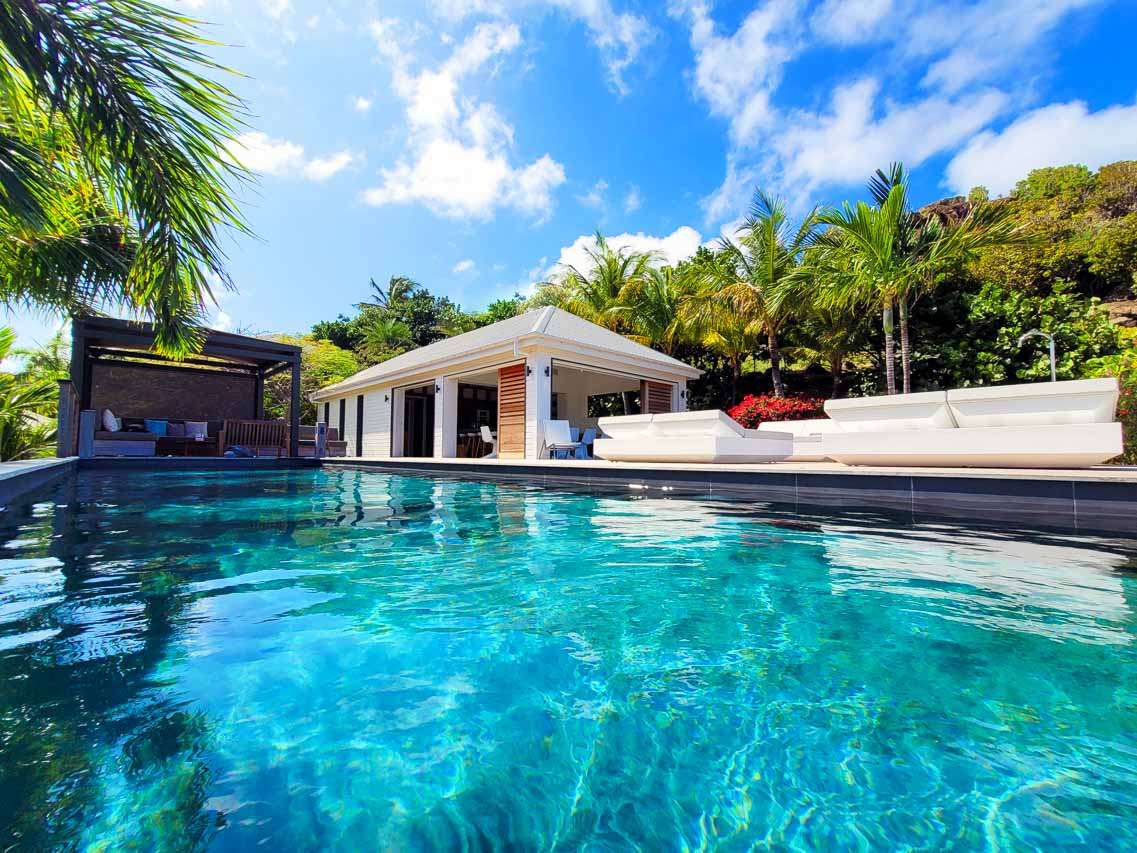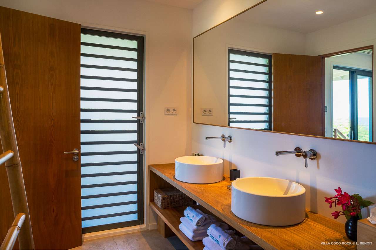 Welcome to Villa Coco Rock (villa code: WV CRK), a tranquil 6-bedroom villa located in Petit Cul de Sac, St. Barts. Within minutes of the beach, shops, and waterfront restaurants, locations don’t come much better than this for a laid-back and elegant Caribbean getaway. Effortlessly cool and contemporary, Villa Coco Rock is a masterpiece of design inside and out. From the dining chairs to the ceiling fans above, the décor is refined, natural, and organic, complementing the stunning island beauty surrounding the villa. Wooden tones are integrated into the design as well, keeping the whole home feeling warm and welcoming. Nestled in the hills amongst a beautiful tropical garden, Villa Coco Rock enjoys a fabulous and secluded location in Petit Cul de Sac. The beautiful and quiet beach is minutes away, as are the waterfront restaurants at Grand Cul de Sac to the west. Shops are a 10-minute drive, while Gustavia is around 20 minutes by car. Spread across the main building and several bedroom bungalows, the design of Villa Coco Rock coaxes you outside at every turn. Stairs from the parking area lead into the main living area, where wall-to-wall sliding doors open completely to the pool terrace to frame stunning views of the rolling green hills and sparkling turquoise sea. There’s a cozy living room here, featuring a comfortable sectional sofa in front of a flat-screen TV with U.S. satellite channels. It’s a great spot to retreat to after dinner, relaxing with a movie. The real centerpiece of Coco Rock’s living area is the open-plan kitchen, modern and well-equipped. The large island seats up to 12 guests, making it an idyllic spot to enjoy an aperitif and hors d’oeuvres before dinner. The graceful dining table sits next to the kitchen, a wonderful spot to spend an evening enjoying great food and even better company. You could also choose to dine outside, where a wooden slab table offers seating for 16 people under a covered terrace. The 6 tranquil bedrooms at Villa Coco Rock are spread across three separate bungalows. The master bedroom is in its own bungalow, with a private terrace with ocean views. The ensuite bathroom also features a lovely outdoor shower. On the other side of the parking area is the third unit with a terrace and two guest bedrooms, each with an outdoor shower. Above is the final unit, with three more bedrooms. This space also features a large terrace with an outdoor kitchen for when the late afternoon weather calls for island-style cookouts. All the bedrooms enjoy a plush European king-sized bed, a flat-screen TV with U.S. satellite channels, and an ensuite. The outdoor living spaces elegantly unfold from the main building, flowing toward the stunning swimming pool. It’s a tempting spot to spend a day, sunbathing on the loungers between lazy dips in the water to cool off. All the while, the views are sublime. The pool can also be heated for indulgent night-time swims. Underneath a gazebo is an outdoor living area, offering a lovely spot for your whole group to gather, relax, and enjoy a sunset cocktail hour. A large corner couch is complemented by bamboo chairs, coaxing you into cool down in the shade with a good book or an afternoon nap. Secluded and remote, you’ll feel as if you’re the only one on the island of St. Barts when spending time outside. Venturing down to the beach doesn’t do much to change that – Petit Cul de Sac is one of the most relaxed and uncrowded stretches of sand on the island. During the Thanksgiving and December holidays, the villa rents at full occupancy rates regardless of how many bedrooms are used.Please fill out the form to begin your inquiry and we will connect you with a seasoned villa rental specialist.