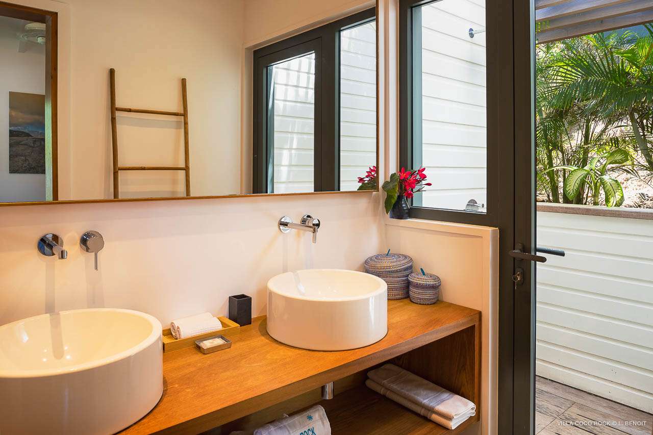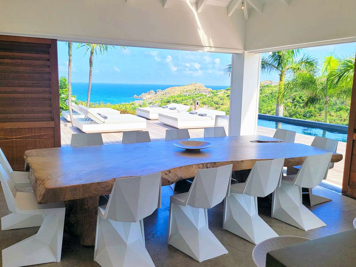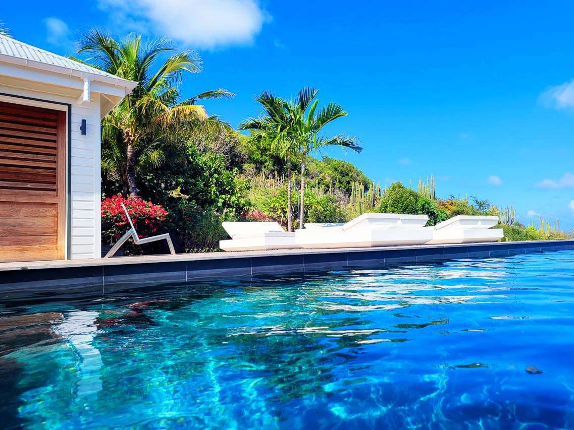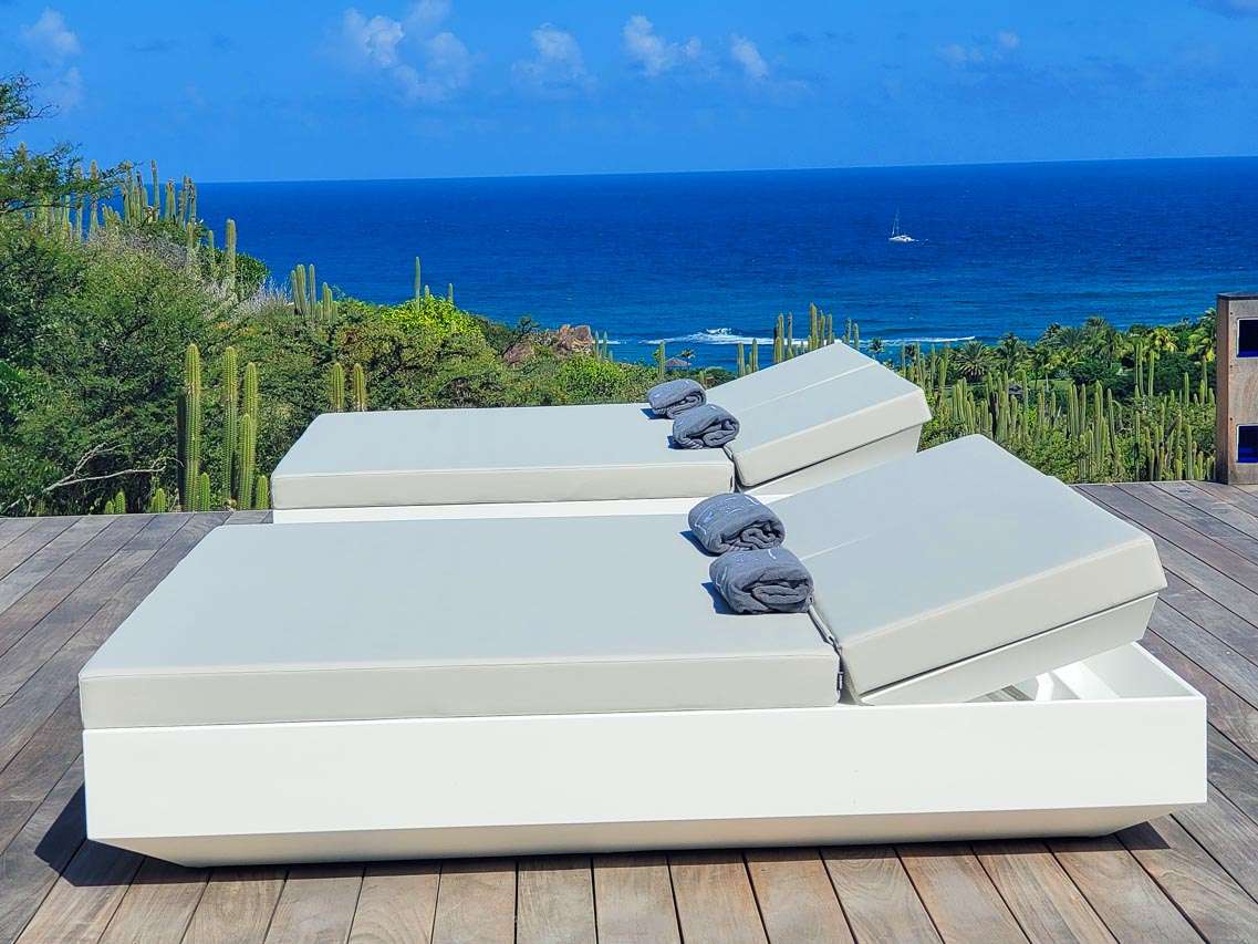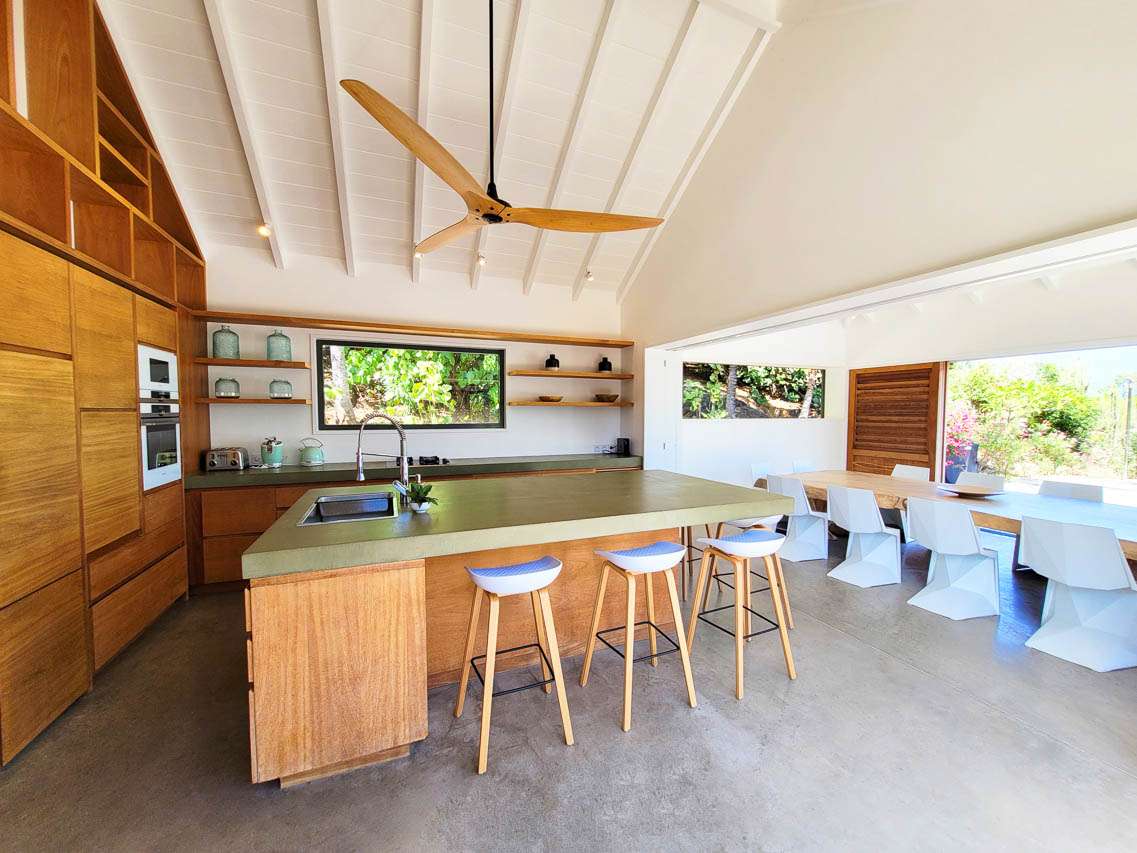Welcome to Villa Coco Rock (villa code: WV CRK), a tranquil 6-bedroom villa located in Petit Cul de Sac, St. Barts. Within minutes of the beach, shops, and waterfront restaurants, locations don’t come much better than this for a laid-back and elegant Caribbean getaway. Effortlessly cool and contemporary, Villa Coco Rock is a masterpiece of design inside and out. From the dining chairs to the ceiling fans above, the décor is refined, natural, and organic, complementing the stunning island beauty surrounding the villa. Wooden tones are integrated into the design as well, keeping the whole home feeling warm and welcoming. Nestled in the hills amongst a beautiful tropical garden, Villa Coco Rock enjoys a fabulous and secluded location in Petit Cul de Sac. The beautiful and quiet beach is minutes away, as are the waterfront restaurants at Grand Cul de Sac to the west. Shops are a 10-minute drive, while Gustavia is around 20 minutes by car. Spread across the main building and several bedroom bungalows, the design of Villa Coco Rock coaxes you outside at every turn. Stairs from the parking area lead into the main living area, where wall-to-wall sliding doors open completely to the pool terrace to frame stunning views of the rolling green hills and sparkling turquoise sea. There’s a cozy living room here, featuring a comfortable sectional sofa in front of a flat-screen TV with U.S. satellite channels. It’s a great spot to retreat to after dinner, relaxing with a movie. The real centerpiece of Coco Rock’s living area is the open-plan kitchen, modern and well-equipped. The large island seats up to 12 guests, making it an idyllic spot to enjoy an aperitif and hors d’oeuvres before dinner. The graceful dining table sits next to the kitchen, a wonderful spot to spend an evening enjoying great food and even better company. You could also choose to dine outside, where a wooden slab table offers seating for 16 people under a covered terrace. The 6 tranquil bedrooms at Villa Coco Rock are spread across three separate bungalows. The master bedroom is in its own bungalow, with a private terrace with ocean views. The ensuite bathroom also features a lovely outdoor shower. On the other side of the parking area is the third unit with a terrace and two guest bedrooms, each with an outdoor shower. Above is the final unit, with three more bedrooms. This space also features a large terrace with an outdoor kitchen for when the late afternoon weather calls for island-style cookouts. All the bedrooms enjoy a plush European king-sized bed, a flat-screen TV with U.S. satellite channels, and an ensuite. The outdoor living spaces elegantly unfold from the main building, flowing toward the stunning swimming pool. It’s a tempting spot to spend a day, sunbathing on the loungers between lazy dips in the water to cool off. All the while, the views are sublime. The pool can also be heated for indulgent night-time swims. Underneath a gazebo is an outdoor living area, offering a lovely spot for your whole group to gather, relax, and enjoy a sunset cocktail hour. A large corner couch is complemented by bamboo chairs, coaxing you into cool down in the shade with a good book or an afternoon nap. Secluded and remote, you’ll feel as if you’re the only one on the island of St. Barts when spending time outside. Venturing down to the beach doesn’t do much to change that – Petit Cul de Sac is one of the most relaxed and uncrowded stretches of sand on the island. During the Thanksgiving and December holidays, the villa rents at full occupancy rates regardless of how many bedrooms are used.Please fill out the form to begin your inquiry and we will connect you with a seasoned villa rental specialist.