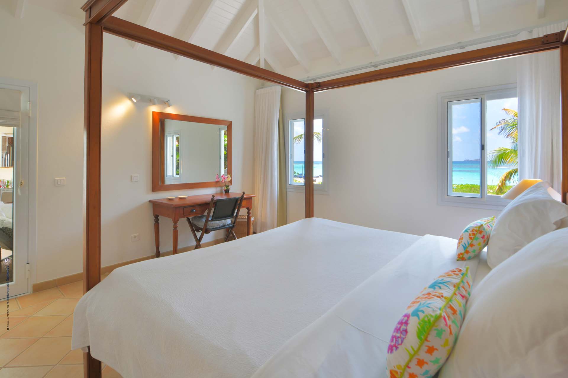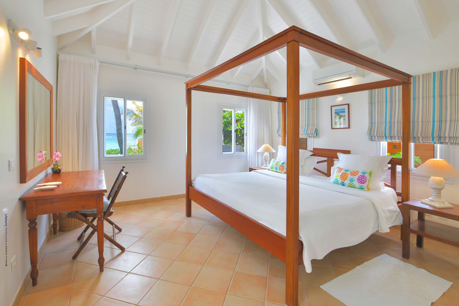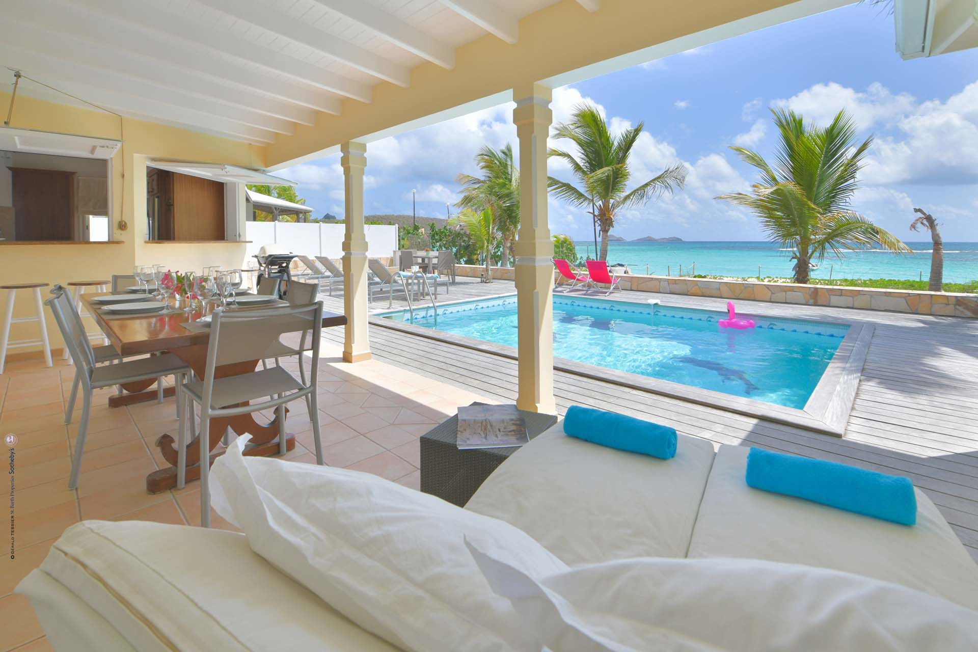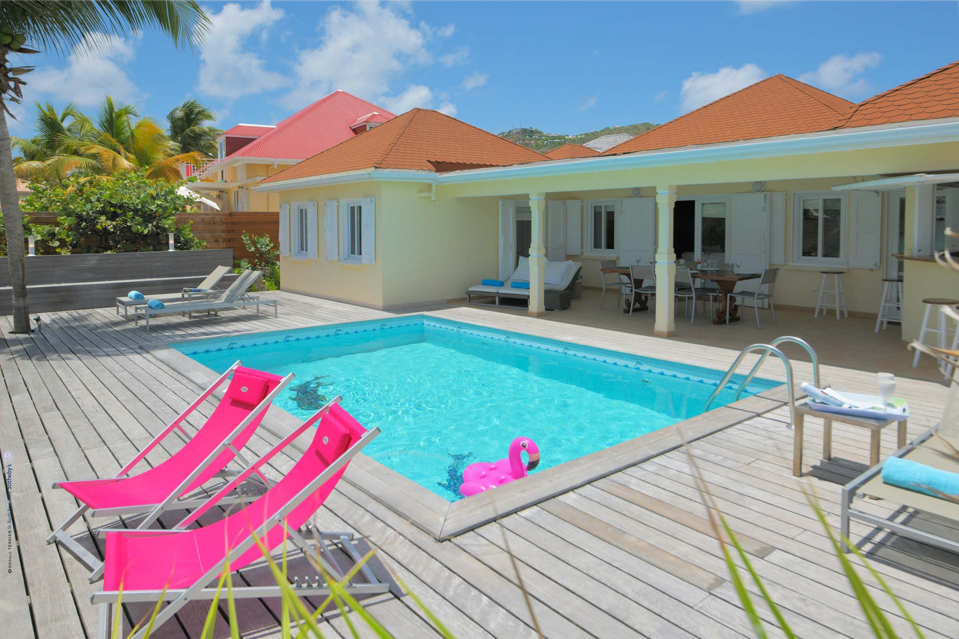 Barefoot, cottage-y casual Villa Crystal Dream sits right on sexy St. Jean Beach. It’s a beach-lovers fantasy come true. An air- conditioned comfortable living room sits adjacent to an open air compact kitchen, facing a spacious deck with a covered area for dining and relaxing. The kitchen has a pass-through that does double-duty as a pool bar. Guests can float toes up in the delightful pool or have their toes in that warm blue water in seconds. No flip-flops needed. A typical day includes an early morning run on the beach, followed by a swim, coffee, and French pastries, and then settling in on a poolside chaise to read, gaze, or people-watch, libation in hand. Care to eat in? A latticed area on the deck has a BBQ, Plancha, and a sink takes care of that. There are three (king) bedrooms and two full baths. The St. Jean location means proximity to Lil' Rock Beach restaurant and bar next door, Pearl Beach restaurant a few steps down the beach, as well as the village’s restaurants and boutiques. Crystal Dream is the ideal villa for those who want to be on the beach and in the middle of “the action”.Please fill out the form to begin your inquiry and we will connect you with a seasoned villa rental specialist.