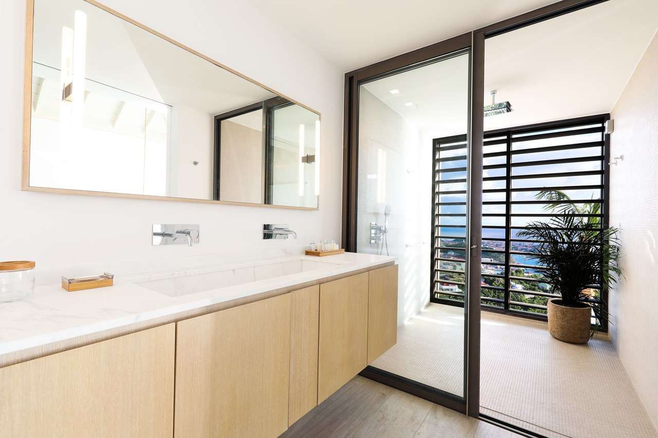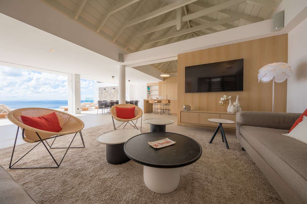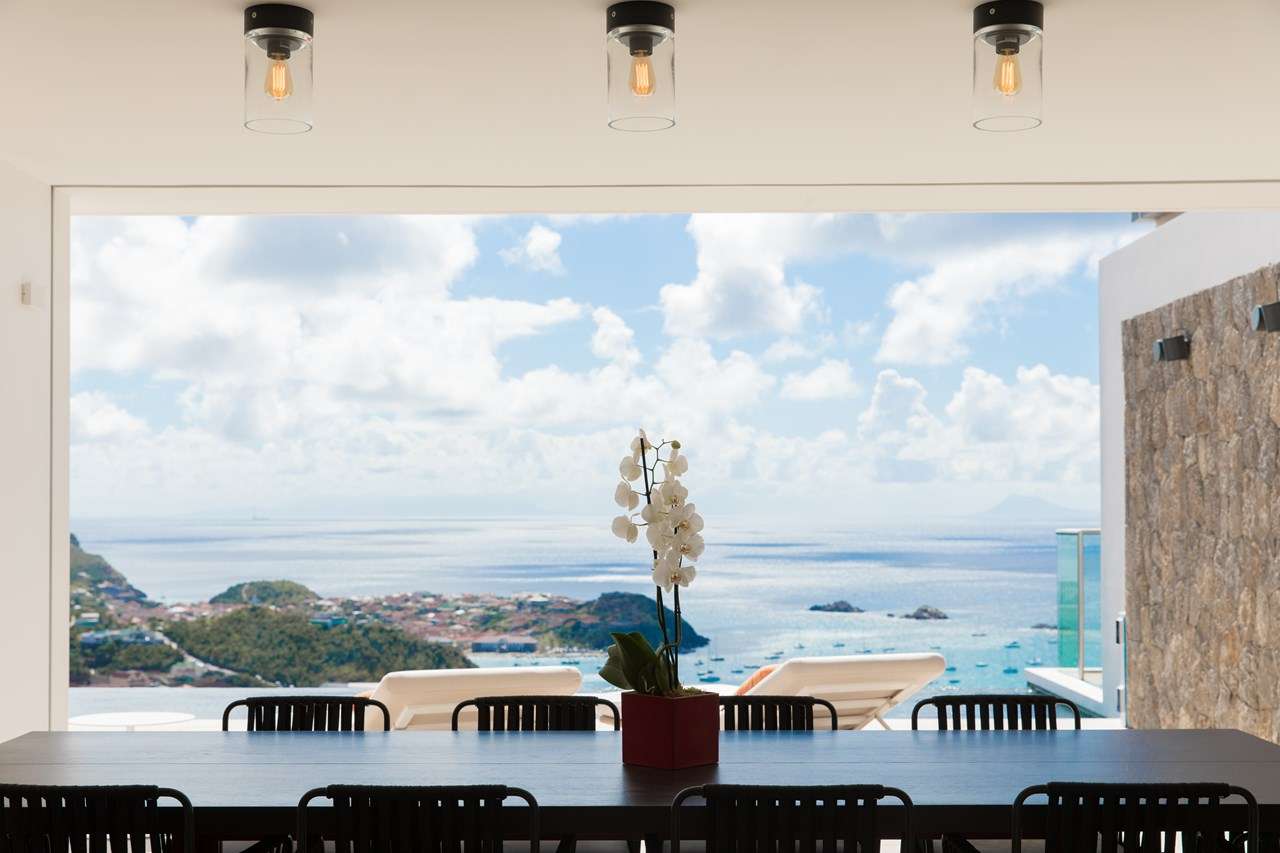 Embrace the glamour of St. Barts at Villa D’zir (villa code: WV DZR), a contemporary 3-bedroom villa in Colombier, St. Barts. Enjoying panoramic views over Gustavia and the Caribbean Sea, this property is also within driving distance of several beaches restaurants, and shops. Inside, wooden panels contrast with gray accents and white walls, creating a contemporary, beachy feel. Minimalist and chic, it’s at once relaxing and inspiring. This is a sophisticated Caribbean living at its best. Outdoor spaces take in stunning panoramic views over the Caribbean and the red-roofs of Gustavia. Flamands and Corossol Beach are both just a short drive away. As you enter the front door, you’re immediately delivered into Villa D’zir’s spacious great room. Wall-to-wall doors slide open to let in the ocean breeze, washing over the living room, dining area, and kitchen. The living room at D’zir Villa features plush, cushioned seating, ideal for unwinding. Whether you’re settling in with a book or enjoying a movie on the large flat screen, this is the best place in the house to relax. A large wooden partition can separate the living area from the kitchen next door. Speaking of the kitchen, foodies will love creating gourmet meals here. Classic wooden cabinetry is sleek and chic, while those views will inspire you to experiment with French and Creole flavors. Our concierge can organize grocery pre-stocking or delivery, catered meals, or arrange private chef service for a special occasion. A breakfast bar is a great perch to enjoy a morning espresso or some fresh fruit. A large dining room table with seating for 10 guests is the ideal setting for more formal meals. Gathering here with friends and family over a gourmet dinner will be a highlight of any island vacation. There are 3 bedrooms at Villa D’Zir, spread out across the property to ensure the utmost privacy for guests. Each room has a plush king-sized bed, ocean views, and a spacious ensuite bathroom. There’s even a hammock chair in each room, hanging from the ceiling. The first bedroom is next to Villa D’Zir’s great room, while the other two bedrooms are accessed via a hallway on the other side of the home. TVs in each room also let you go to bed early to watch your favorite movie from under the covers. A grand covered terrace provides a shady spot to enjoy the warm weather and cool island breezes. The lounge is magnificent for evening cocktail hours, watching the sunset cast rosy gold light across the islands Les Gros Islets, Le Pain de Sucre, and Les Petits Saints. In the distance, you can even glimpse St. Kitts. Loungers line the deck at D’Zir Villa, ideal for basking in the island rays. The heated infinity pool stretches to the edge of the terrace; you could happily laze all day long in the refreshing water. There are plenty of beaches nearby as well. Flamands Beach to the north is a picture-perfect sweep of white sand and turquoise waters, ideal for swimming and sunbathing. To the south is the pretty Corossol Beach, filled with traditional boats moored at the harbor. Thoughtful touches help elevate your stay at Villa D’Zir. There’s also a fitness room on a lower level of the property. Elegant shopping and restaurants in Gustavia are less than 10m minutes away. Within walking distance is one of the island’s best bakeries, La Petite Colombe, offering fresh pastries and baguettes each day, and Les Bananiers restaurant. During the Thanksgiving and December holidays, the villa rents at the full occupancy rate regardless of how many bedrooms are used.Please fill out the form to begin your inquiry and we will connect you with a seasoned villa rental specialist.