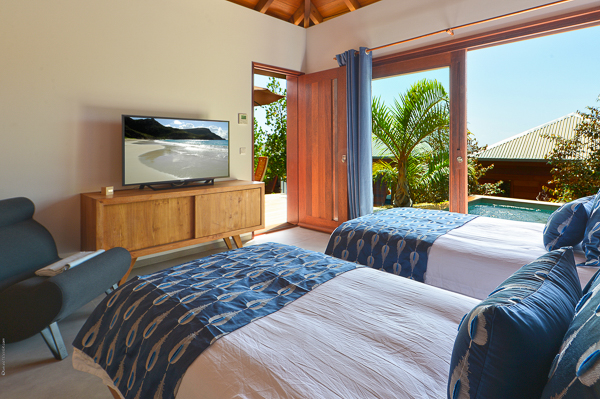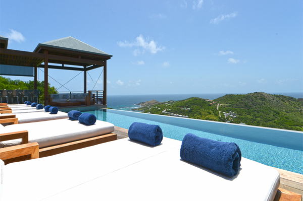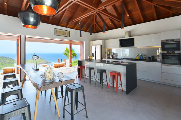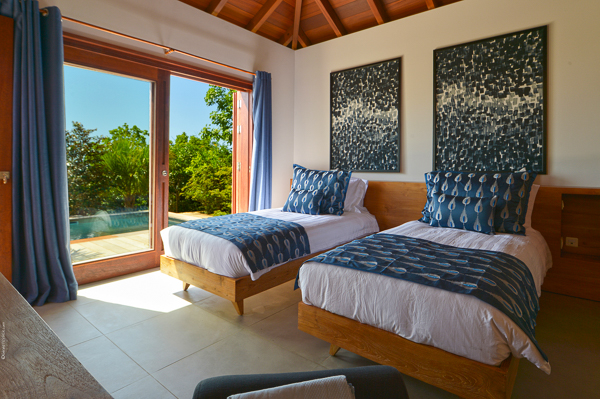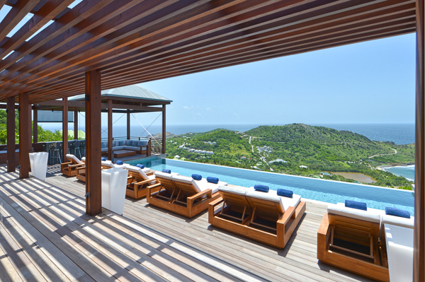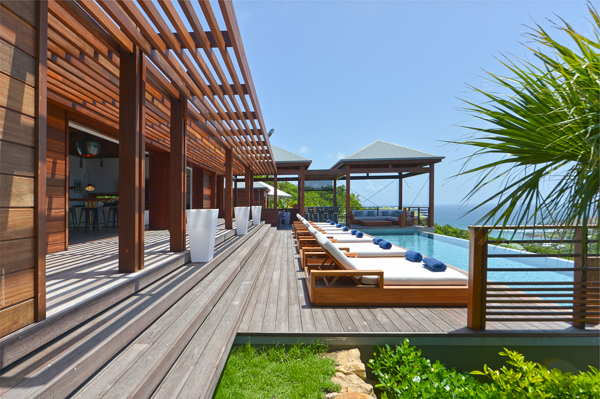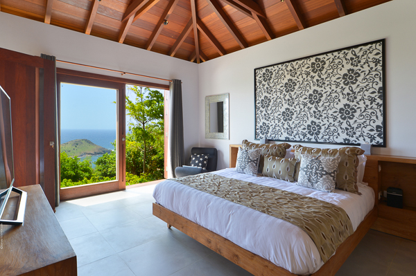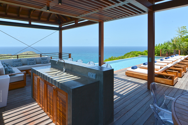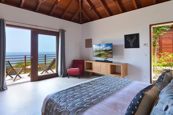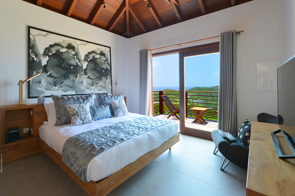 Villa Danse du Soleil, (villa code: WV DDS) is a 5-bedroom villa nestled amid lush tropical gardens and artisan-crafted stone pathways, this exquisite villa gracefully winds through the elevated terrain of Devé. It commands a sweeping seascape, treating early risers to captivating sunrises that are picture-perfect for sharing on social media. The interior living space, fully air-conditioned, encompasses a smart and inviting area designed for relaxed TV viewing, an elegant dining space, and a sleek galley-style kitchen featuring a breakfast island bar. All of this seamlessly connects to the expansive view and a sunny, two-level deck adorned with an elongated pool, lined with comfortable chaise lounges. Adjacent to the pool is a modern, spacious gazebo perfect for both leisure and dining, complete with a wet bar and a BBQ—a true haven for hosting gatherings. An appealing patio extends from the back of the living area, complete with built-in seating and a tranquil waterfall, evoking a serene retreat. A convenient BBQ station is located near the kitchen. Each of the bedrooms boasts an ensuite bathroom and a TV. Four of the bedrooms are furnished with King beds, while one offers a King bed that can be converted into twin beds. Additionally, there is a guest bathroom. The master suite and a guest bedroom are positioned on one side of the villa, each with its own terrace, while an extra bedroom on the opposite side opens onto the deck. The fourth and fifth bedrooms are located within a separate bungalow that features a kitchenette and a private plunge pool. Throughout the villa, a clean-lined modern aesthetic and a neutral color palette create a soothing ambiance with a Zen-like quality. Ample parking is available on-site. Villa Dans du Soleil is an excellent choice for a group of couples or an extended family. During the December holidays, the villa rents at the full occupancy rate regardless of how many bedrooms are used.Please fill out the form to begin your inquiry and we will connect you with a seasoned villa rental specialist.
