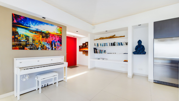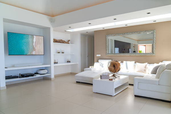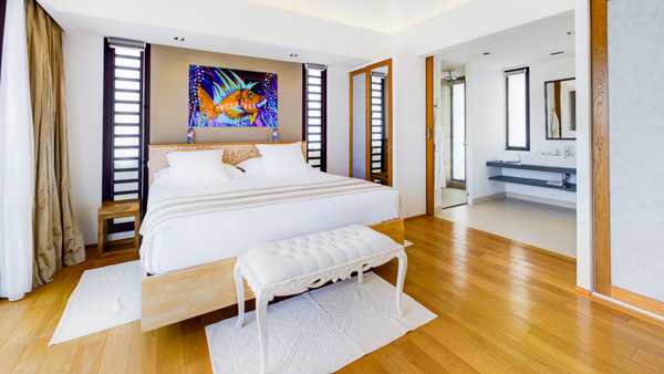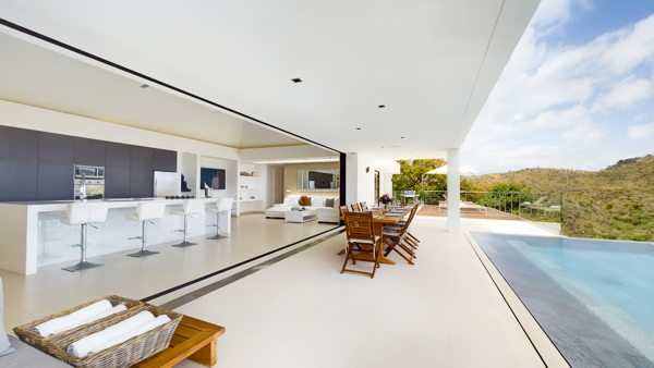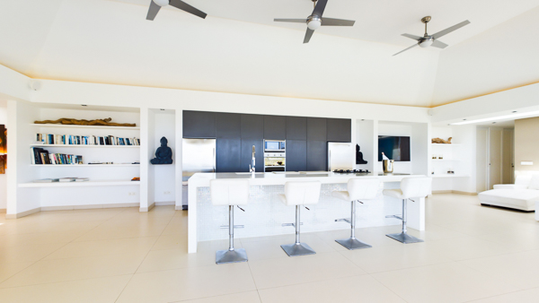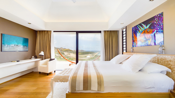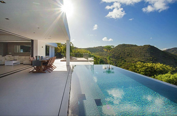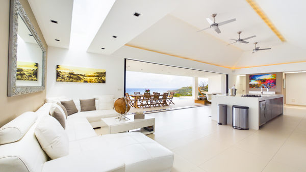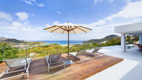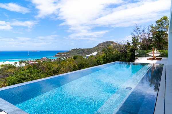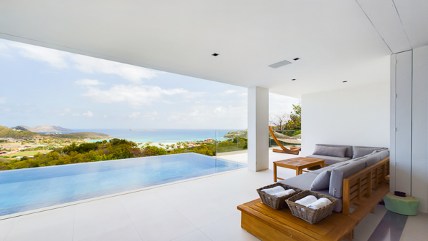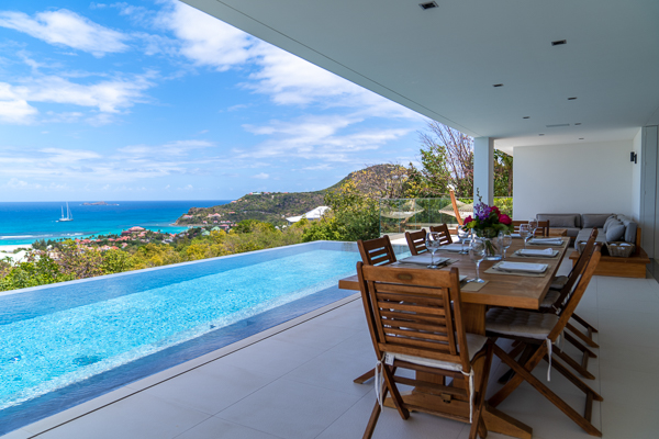 Castaway to Villa Diamond, a contemporary 2-bedroom villa located in St. Jean. Situated on the edge of a nature reserve, this hillside gem offers peerless privacy and sweeping views of the islands Île Toc Vers and Île Frégate. Inside is spacious, tranquil, and luxurious. Worldly and tasteful déco enhances the soothing atmosphere, from a large Buddha statue in the great room to artful pieces of reclaimed wood. But the real star of the show at this villa is the stunning vista over St. Barts, taking in the undulating hills, rugged coastline, and sparkling ocean. A few minutes away by car is the beach at St-Jean, where striking turquoise water laps at a soft white shore. Also within easy driving distance is the capital city of Gustavia, home to word class restaurants and shops. Living Spaces: A large and airy great room is at the heart of Villa Diamond, consisting of the living room and a large kitchen. The entire wall opens to the outdoor terrace, making the entire space feel as if it’s part of the outside. Nestled in the corner is a soft leather sofa, where you can enjoy the views or simply kick back and relax. From this vantage point, the soft sea breezes might just lull you asleep. Kitchen and Dining Room: The modern kitchen at Diamond Villa is a foodie’s dream. Sleek cabinetry hides away the high-end appliances, while the views will inspire you to experiment with local flavors. Our concierge can even organize grocery pre-stocking or delivery, catered meals, or arrange a private chef service for a special occasion. The large kitchen island also doubles as a breakfast bar, with five stools lining the bench. It’s a great spot for an espresso and some pastries in the morning. An outdoor dining table with seating for up to 8 guests is a magnificent setting for more formal meals, toasting to your island vacation with a bottle of French wine, gourmet food, and ocean views. Bedrooms: The 2 bedrooms at Villa Diamond are on either end of the great room, ensuring privacy between guests. Creamy neutral color schemes combine with light wooden hues, creating a contemporary feel. King-sized beds in both promise a fabulous night’s sleep. Doors lead onto the outdoor terrace in both rooms, with screens letting you fall asleep with the gentle breeze without the worry of insects finding their way inside. Both rooms also come with spacious ensuites, with rainfall showers and double vanities. Outdoor Features: The spacious outdoor living area features plenty of space to lounge about in the Caribbean sun. Immediately next to the dining table is an outdoor lounge, offering a great spot for an evening cocktail hour or aperitif. Sun-seekers will love the loungers on either side of the pool, overlooking the hills rolling down to meet the coast at St-Jean. If things get too hot, it’s as easy as slipping into the pool to cool off, the infinity-edge seemingly spilling over into the palm trees below. The beach at St-Jean is a few minutes away by car. Elegant beach bars and restaurants line the shore, offering a slice of the good life in St. Barts. Further afield, Lorient Beach is a only 5-minute drive away. Amenities: Exquisite details at Villa Diamond help make your stay excellent. This property also comes with a Sonos sound system, high-speed Wi-Fi, a gas grill, and U.S. satellite TV. Villa Diamond in St. Barts comes with house cleaning services six days a week, except on holidays. During the December holidays, the villa rents at full occupancy rates regardless of how many bedrooms are used. This villa is suitable for children aged 10 and older. * Note - A four-wheel drive is highly recommended. For more information, contact your villa specialist today at 800-449-1553.Please fill out the form to begin your inquiry and we will connect you with a seasoned villa rental specialist.