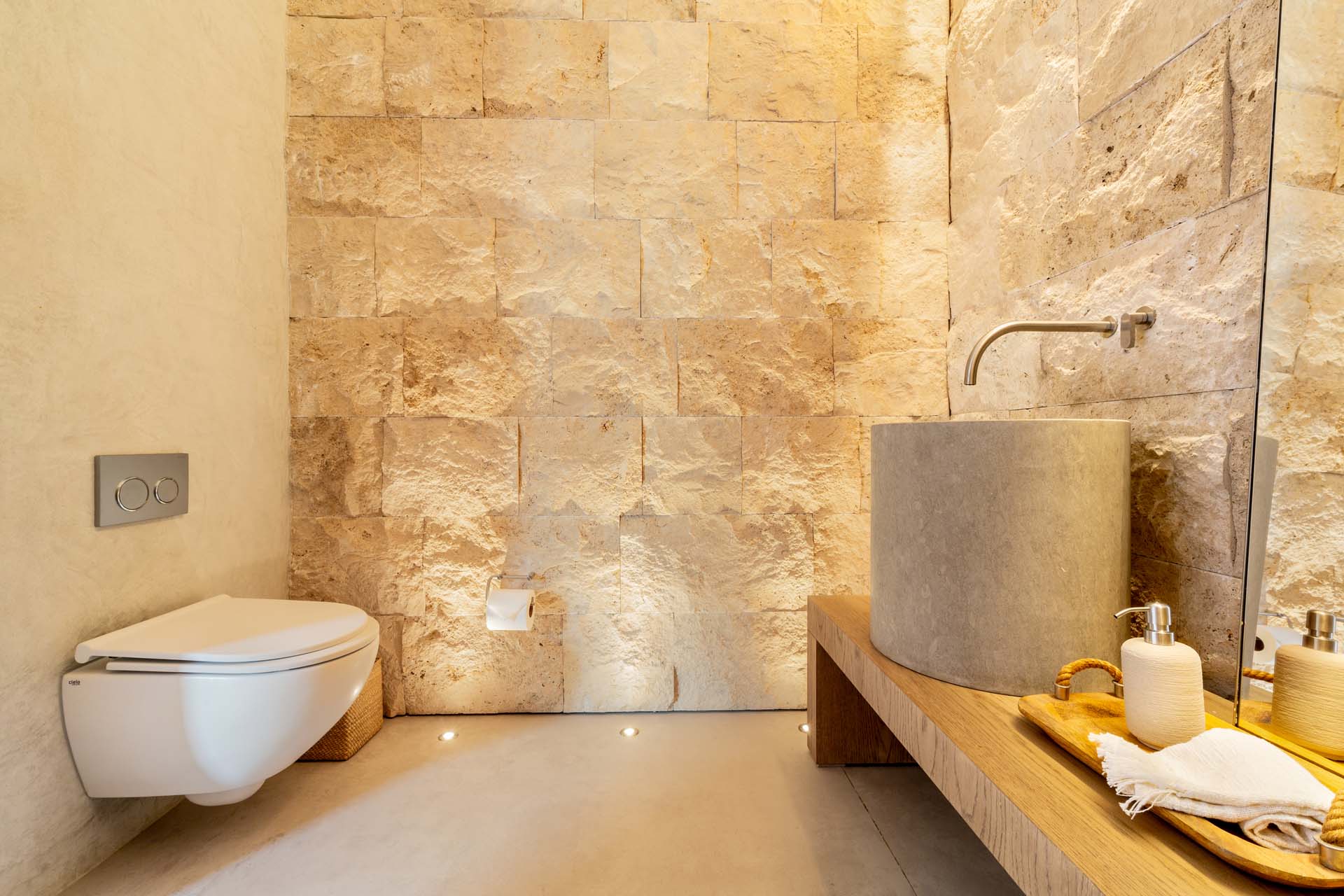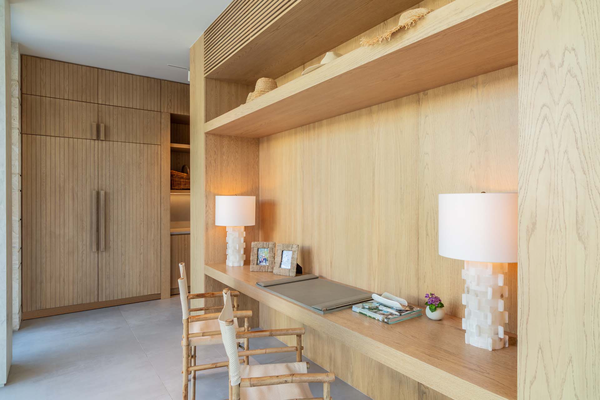 Each bedroom has been styled for maximum comfort and elegance. Whether you’re seeking solitude, a romantic getaway, or a family-friendly space, every room serves as a serene escape. On the upper floor of the main residence, you’ll find three bedrooms, each featuring private rain showers and serene ambiance—perfect for unwinding after a day in the sun.
