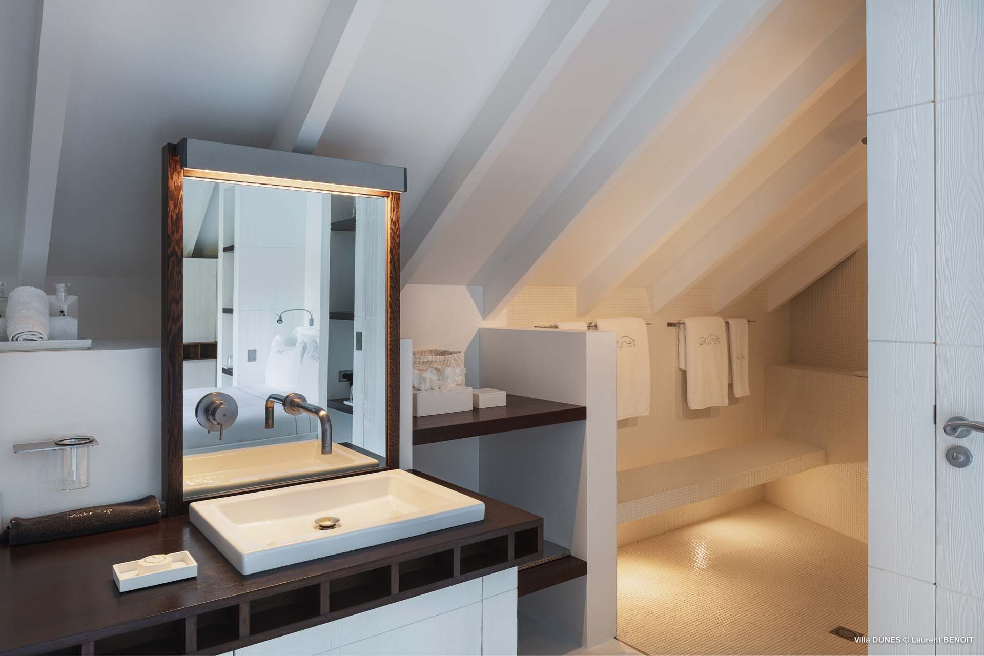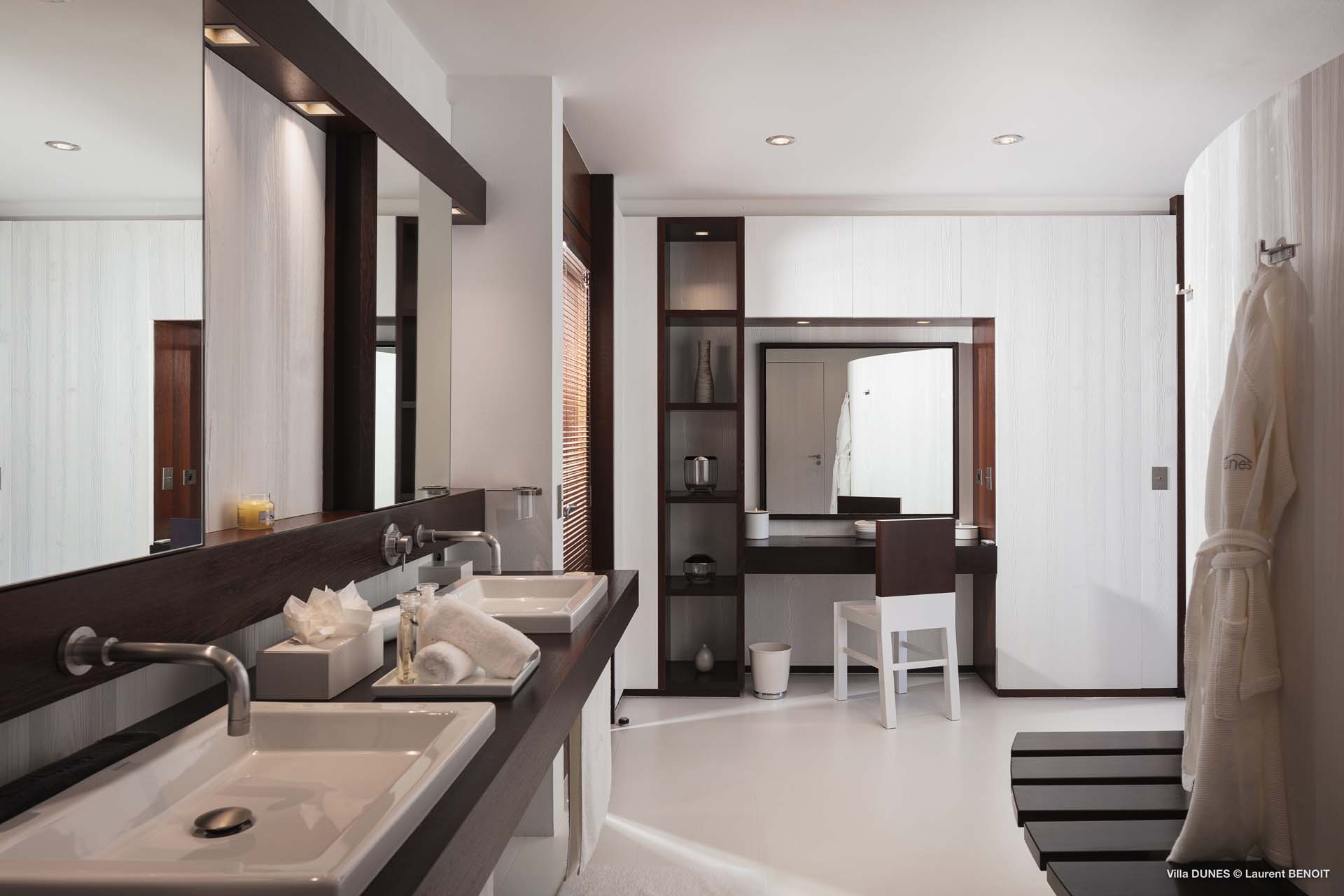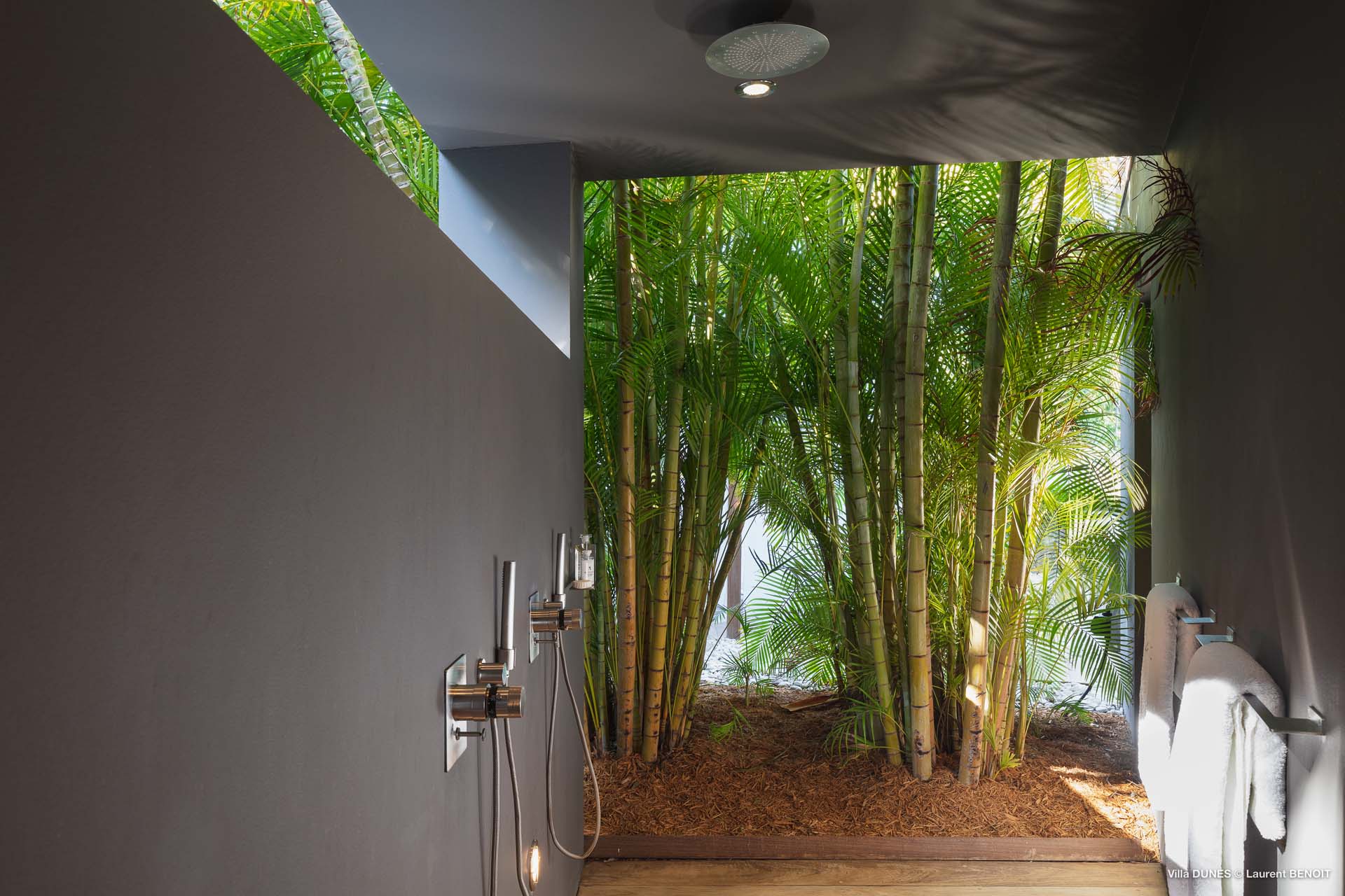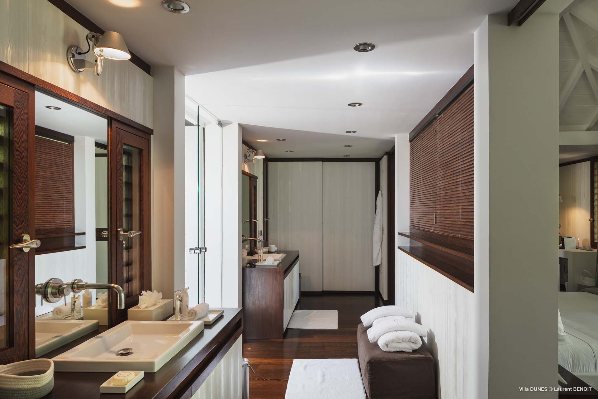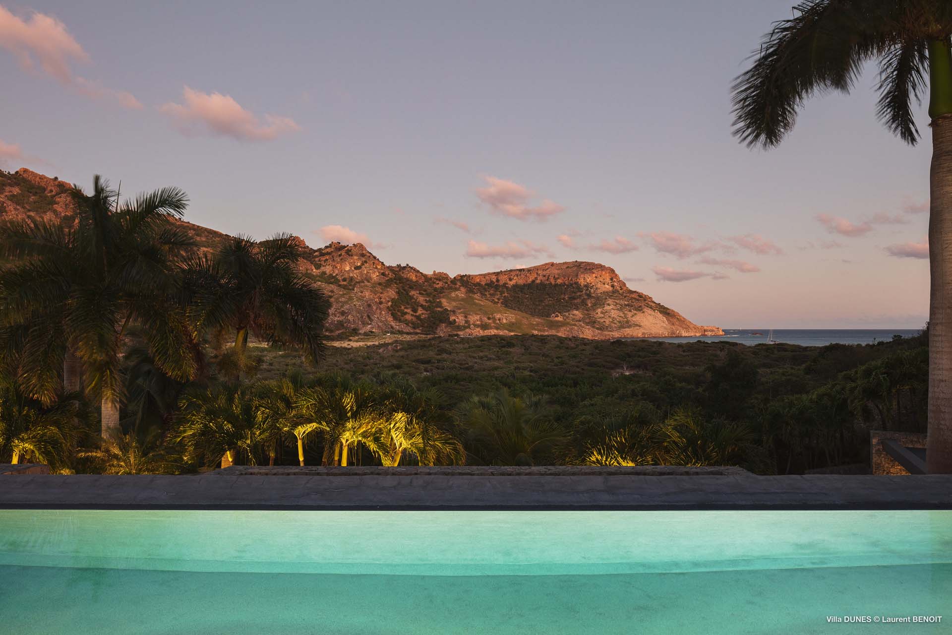 Outdoors, Villa Dunes truly shines. Two heated lap pools are surrounded by sun loungers, wooden and grass decks, and lush tropical gardens. An inner courtyard with casual beanbag seating, a massage area, and verdant bougainvillea-filled landscapes complete the experience. A short walk leads to the soft sands of Saline Beach, one of St. Barts’ most pristine and secluded shores.
