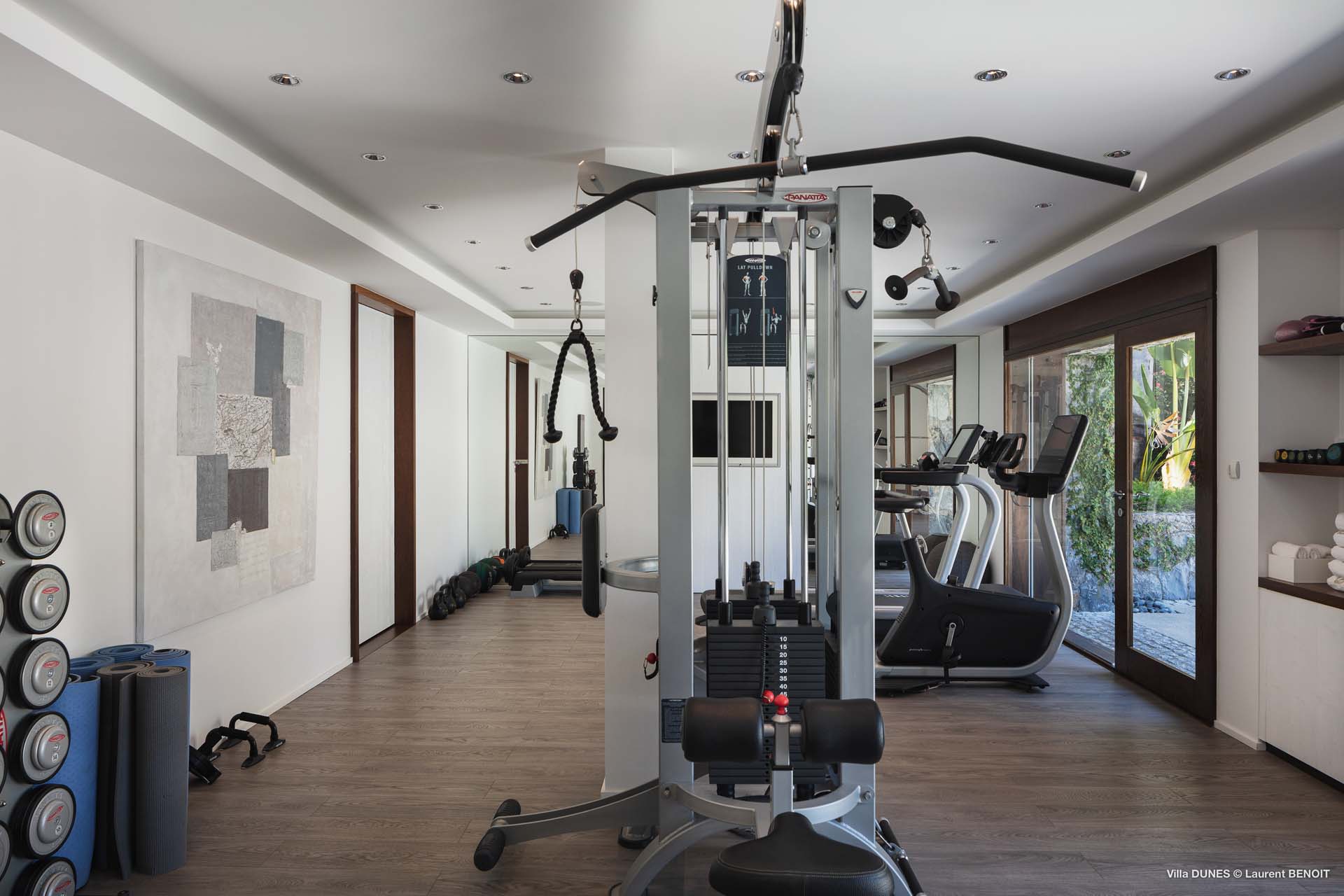 For entertainment and wellness, the lower level includes a game room and a fully equipped gym, allowing guests to enjoy both relaxation and activity during their stay. With easy access to nearby shops and restaurants yet complete seclusion on the hillside, Villa Dunes offers the perfect balance of privacy, luxury, and island life.