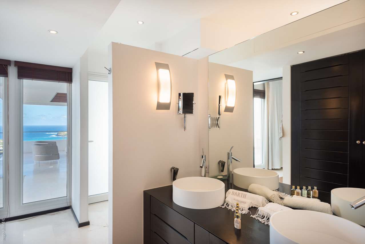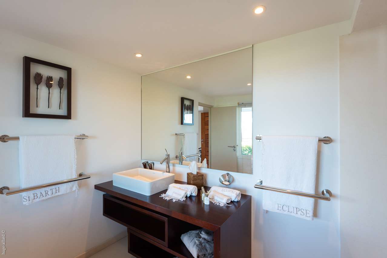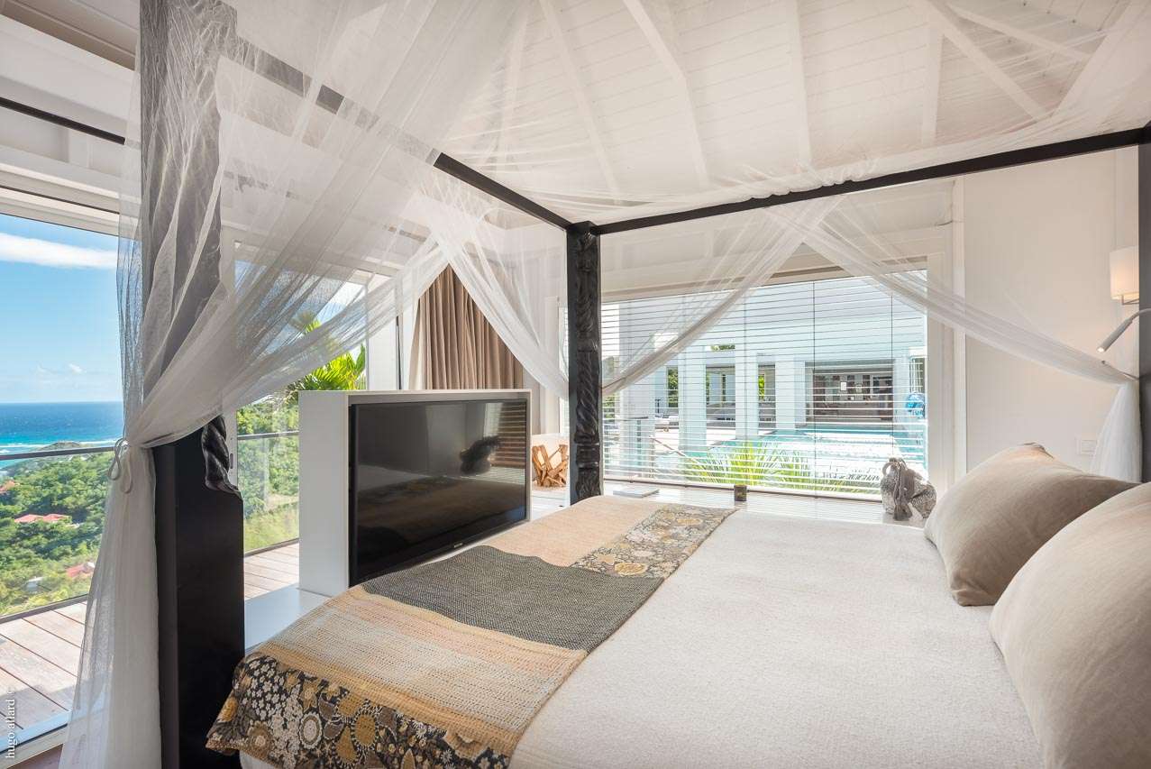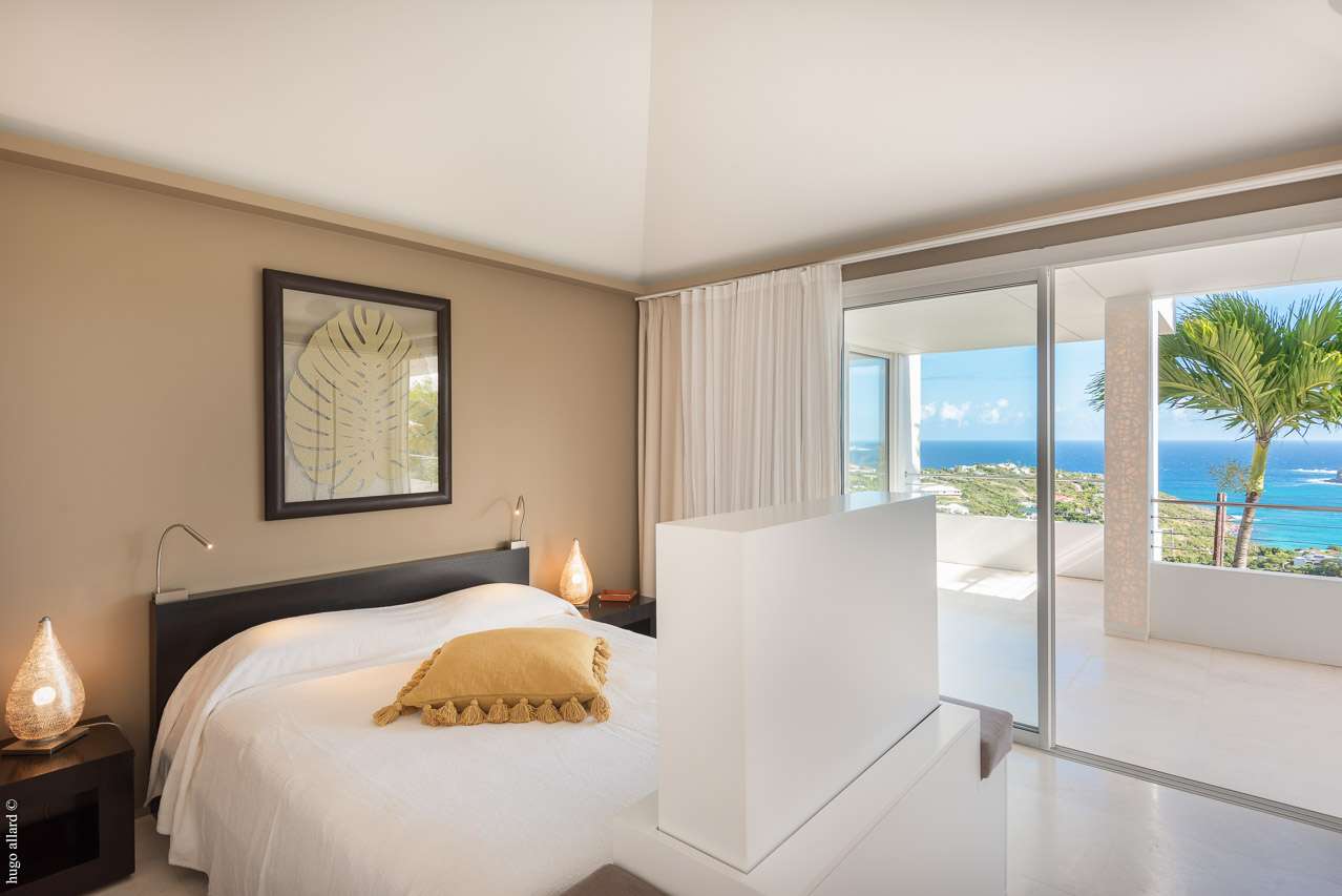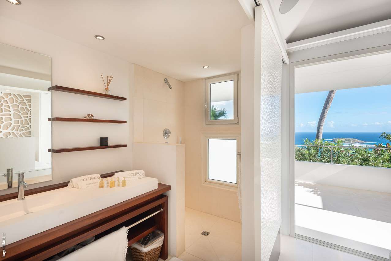 Welcome to Villa Eclipse (villa code: WV ECL), an impeccable 6-bedroom villa in Camaruche, St. Barts. This serene villa enjoys sprawling views over the countryside and ocean a short drive from the beach and shops. Clear-cut straight lines and angles in Villa Eclipse’s design make a strong impression, as does the use of natural materials on the inside. The style is a harmonious mix of traditional island style with contemporary updates, with warm earthy tones and several different shades of wood. With a perch above the bay of St. Jean, the ocean views from Villa Eclipse are incredible. A short drive down the hill brings you to the shops, restaurants, and the stunning beach at St. Jean. More drinking and dining options are in Gustavia, a short 10-minute drive away. The entrance into Villa Eclipse brings you into the courtyard, an alfresco space that opens into the main great room of the property. Bright, airy, and open on several sides, you’ll love the island breeze washing through the combined living room, dining area, and kitchen. Large, elegant beige sofas provide comfort and style to the living room. It’s a great spot to relax and unwind, gazing out at the ocean views with a drink in hand or settling in for a lazy afternoon nap. A large wall-mounted TV also lets you kick back with a movie or two. Nearby, the high-end kitchen at Villa Eclipse makes cooking a breeze. Beautiful wooden cabinetry contrasts with the stainless-steel appliances, creating a stylish and elegant feel to the space. For a night off, our concierge is happy to arrange a private chef for an evening. The open plan design then flows into the large dining room, a beautiful space that’s open to the view. The large table is an idyllic setting for meals with family and friends, enjoying some good conversation and a bottle of wine while the evening descends across the island. There are 6 spacious bedrooms inside Villa Eclipse, peaceful spaces with a minimalist style. Wooden accents in the furnishings continue the island atmosphere in the home. The master bedroom is off the pool and features elegant dark wooden floors, a sitting area, a dressing room, and a very large bathroom. Two more bedrooms are at the villa’s courtyard entrance, identical in style and décor except in color scheme. Both rooms have sliding glass doors that lead onto the terrace with views. The fourth bedroom is beyond the pool in a traditional St. Barth's "case”, with a mahogany four-poster king-sized bed and mosquito netting. A wooden stairway leads to another large bedroom on the lower level with a cactus garden. This spacious bedroom has its own sitting room and is adjoined by the well-equipped gym. The sixth bedroom is in an independent studio underneath the main villa and has its own sitting room, ensuite bathroom, and two twin beds that can be pushed together for a Euro king. The incredible views over the rolling hills of St. Barts, the sparkling Caribbean, and offshore islands will draw your gaze at every turn. Those views are magnified from the outdoor terrace, an expansive area that wraps around the entirety of Villa Eclipse. Covered areas blend with indoor living spaces, offering even more lounge space and shady areas for relaxing. At the heart of the outdoor terrace is the large swimming pool, featuring striking arches built over the water that creates small areas of shade in the water as well. Loungers are scattered across the terrace for sunbathing.Please fill out the form to begin your inquiry and we will connect you with a seasoned villa rental specialist.