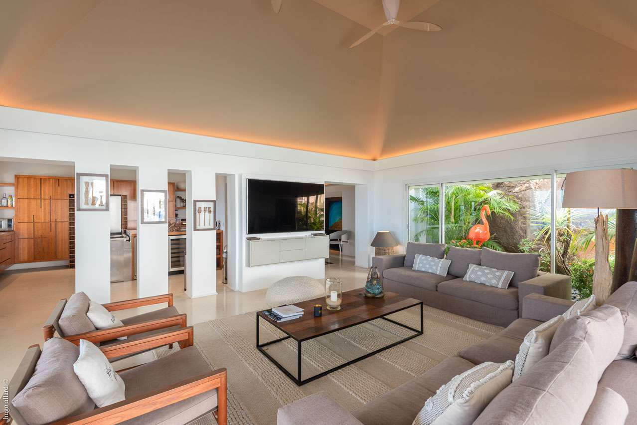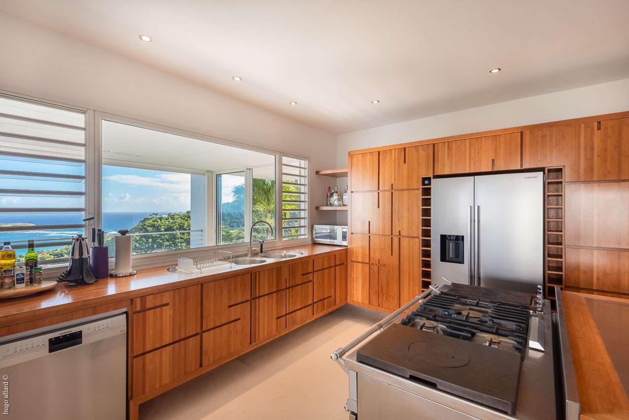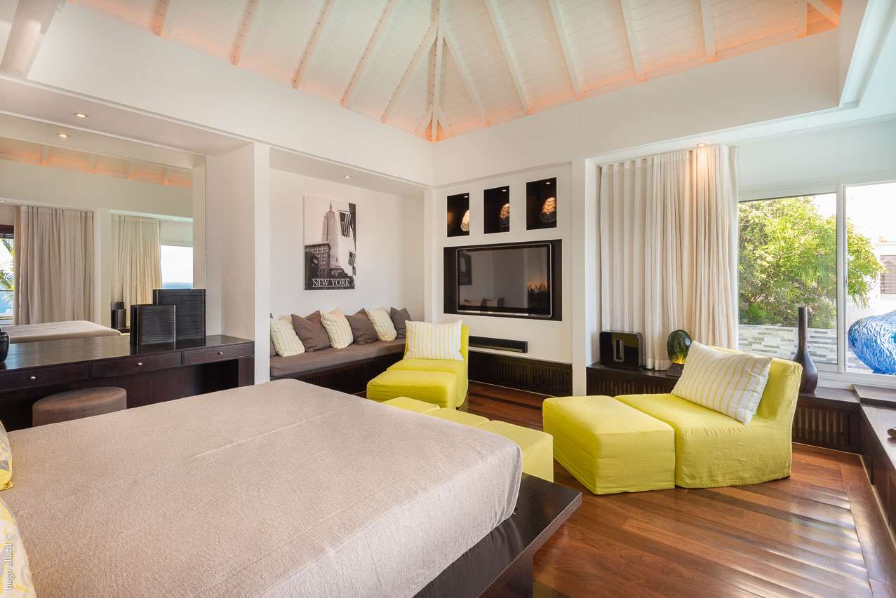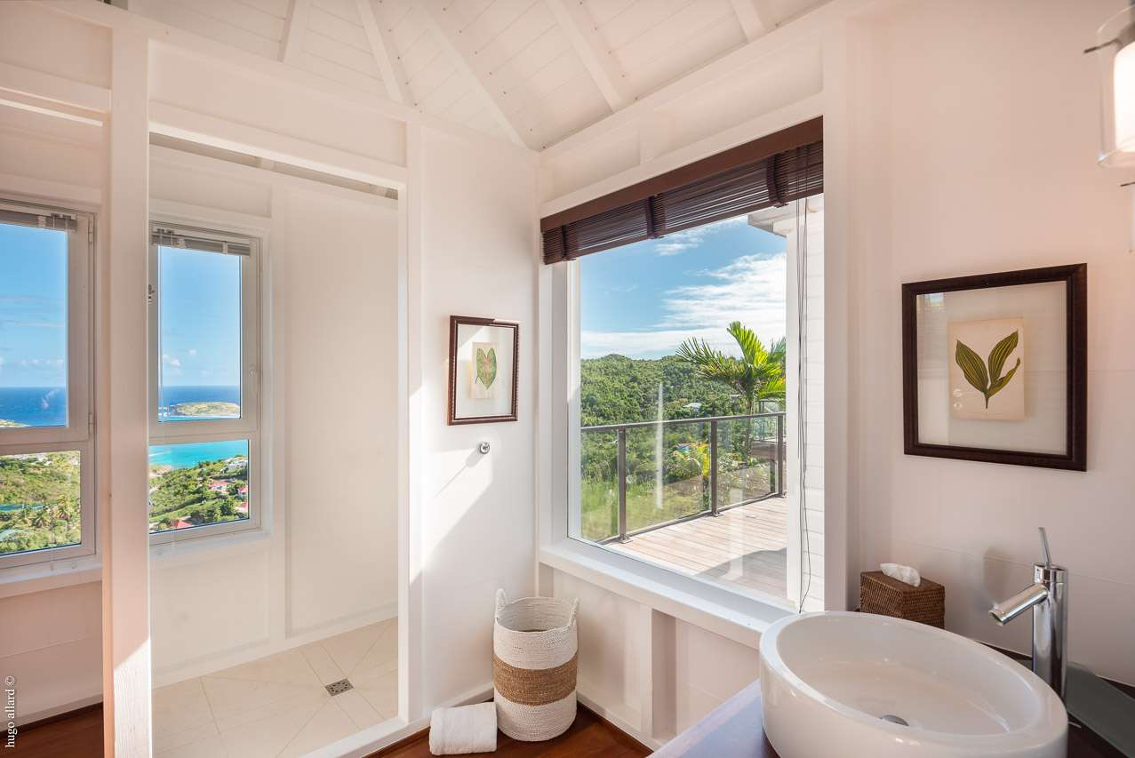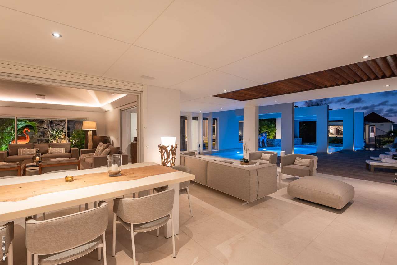 Welcome to Villa Eclipse (villa code: WV ECL), an impeccable 6-bedroom villa in Camaruche, St. Barts. This serene villa enjoys sprawling views over the countryside and ocean a short drive from the beach and shops. Clear-cut straight lines and angles in Villa Eclipse’s design make a strong impression, as does the use of natural materials on the inside. The style is a harmonious mix of traditional island style with contemporary updates, with warm earthy tones and several different shades of wood. With a perch above the bay of St. Jean, the ocean views from Villa Eclipse are incredible. A short drive down the hill brings you to the shops, restaurants, and the stunning beach at St. Jean. More drinking and dining options are in Gustavia, a short 10-minute drive away. The entrance into Villa Eclipse brings you into the courtyard, an alfresco space that opens into the main great room of the property. Bright, airy, and open on several sides, you’ll love the island breeze washing through the combined living room, dining area, and kitchen. Large, elegant beige sofas provide comfort and style to the living room. It’s a great spot to relax and unwind, gazing out at the ocean views with a drink in hand or settling in for a lazy afternoon nap. A large wall-mounted TV also lets you kick back with a movie or two. Nearby, the high-end kitchen at Villa Eclipse makes cooking a breeze. Beautiful wooden cabinetry contrasts with the stainless-steel appliances, creating a stylish and elegant feel to the space. For a night off, our concierge is happy to arrange a private chef for an evening. The open plan design then flows into the large dining room, a beautiful space that’s open to the view. The large table is an idyllic setting for meals with family and friends, enjoying some good conversation and a bottle of wine while the evening descends across the island. There are 6 spacious bedrooms inside Villa Eclipse, peaceful spaces with a minimalist style. Wooden accents in the furnishings continue the island atmosphere in the home. The master bedroom is off the pool and features elegant dark wooden floors, a sitting area, a dressing room, and a very large bathroom. Two more bedrooms are at the villa’s courtyard entrance, identical in style and décor except in color scheme. Both rooms have sliding glass doors that lead onto the terrace with views. The fourth bedroom is beyond the pool in a traditional St. Barth's "case”, with a mahogany four-poster king-sized bed and mosquito netting. A wooden stairway leads to another large bedroom on the lower level with a cactus garden. This spacious bedroom has its own sitting room and is adjoined by the well-equipped gym. The sixth bedroom is in an independent studio underneath the main villa and has its own sitting room, ensuite bathroom, and two twin beds that can be pushed together for a Euro king. The incredible views over the rolling hills of St. Barts, the sparkling Caribbean, and offshore islands will draw your gaze at every turn. Those views are magnified from the outdoor terrace, an expansive area that wraps around the entirety of Villa Eclipse. Covered areas blend with indoor living spaces, offering even more lounge space and shady areas for relaxing. At the heart of the outdoor terrace is the large swimming pool, featuring striking arches built over the water that creates small areas of shade in the water as well. Loungers are scattered across the terrace for sunbathing.Please fill out the form to begin your inquiry and we will connect you with a seasoned villa rental specialist.