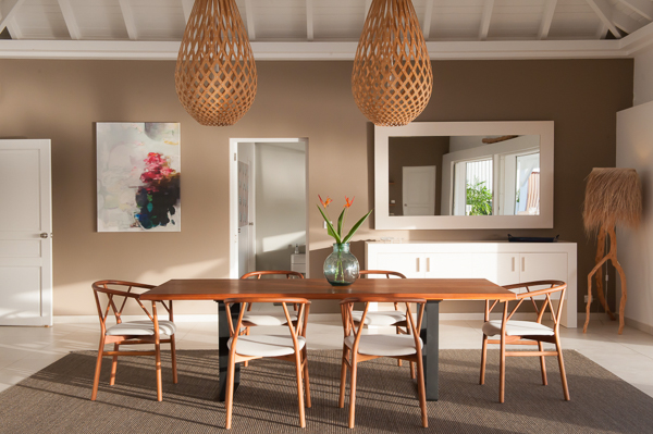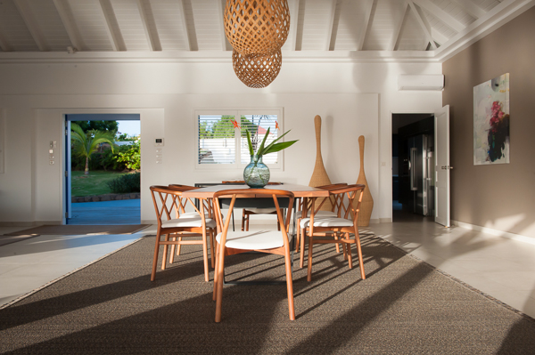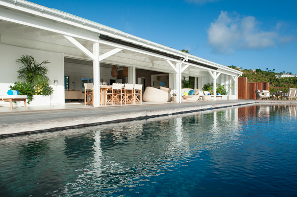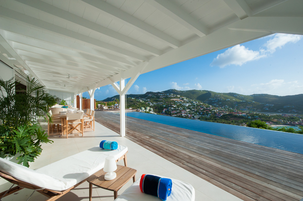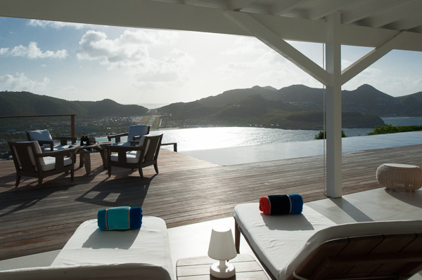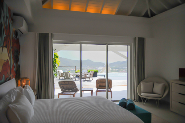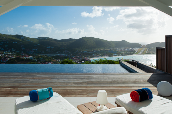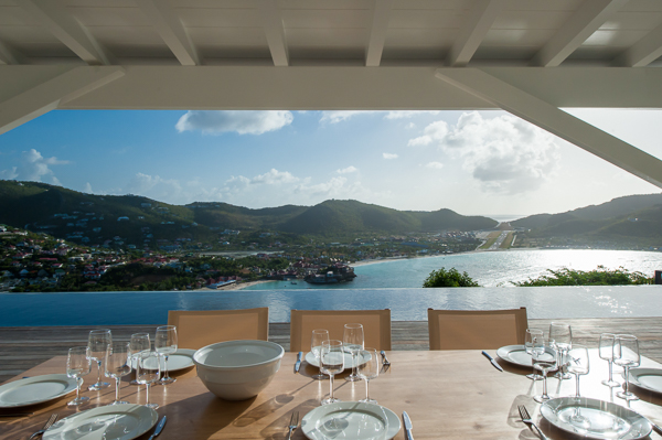 Luxurious, spacious, and airy, 2 bedroom air-conditioned Villa Eden View offers a delightful vacation experience for one or two couples—the privacy level is optimum. The vista of St. Jean Bay is breathtaking, and the view of the island’s notorious little airport is fun. Enjoy cocktails while watching the sun as it sets behind the hillside across the bay. A sleek, state-of-the-art kitchen is housed separately, but conveniently in the rear. The interior living and dining areas open to a portico-covered terrace that runs the length of an extra-long infinity pool. Furnished for relaxing and dining in the shade, the terrace flows into an expansive, and sunny, pool deck. Contemporary in design and décor, comfortable seating and artisanal touches add to the ambiance. Both bedrooms, located on opposite ends of the villa, have beautifully appointed en suite baths and open to the terrace, the pool, and the view!Please fill out the form to begin your inquiry and we will connect you with a seasoned villa rental specialist.