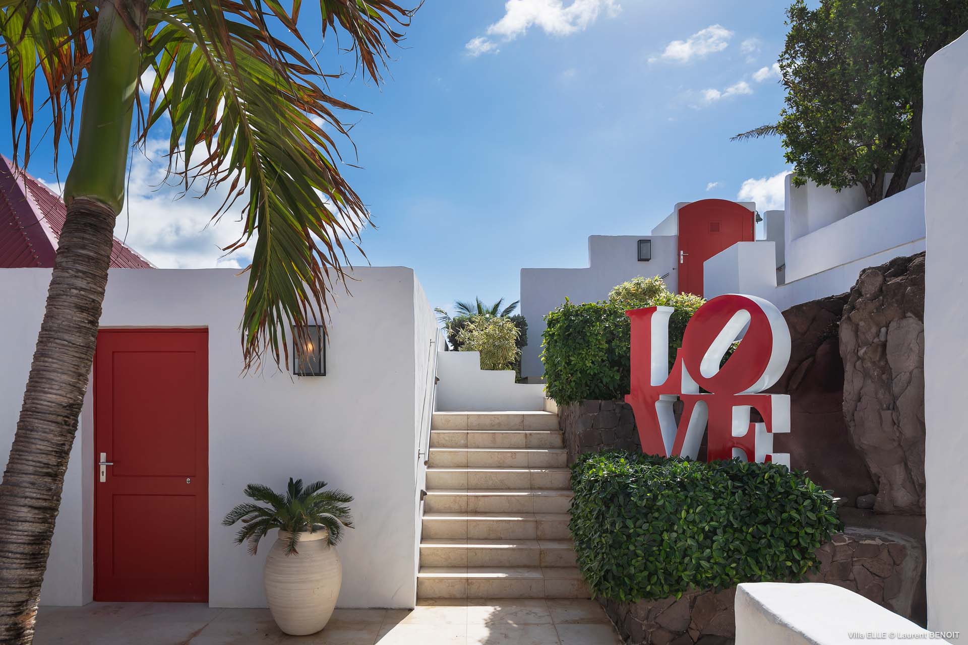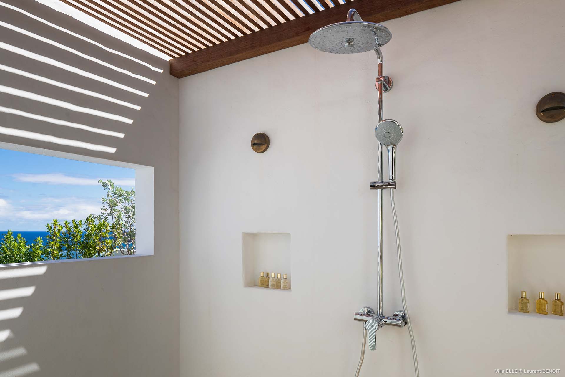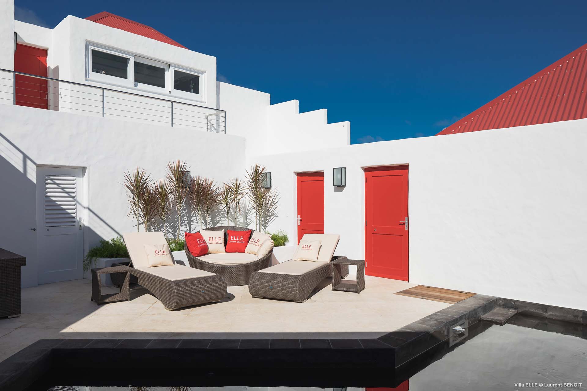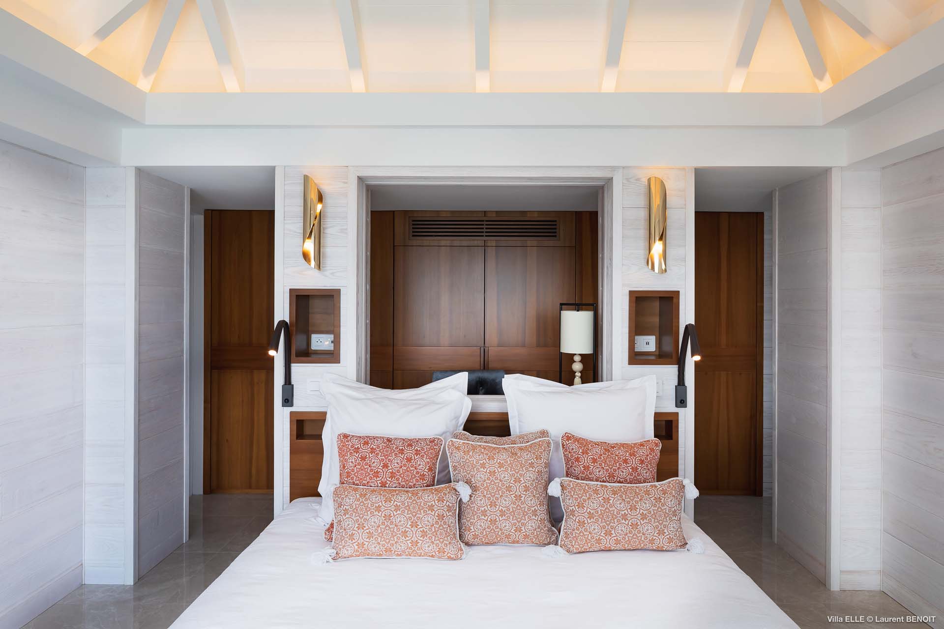 Villa Elle is a spacious, 4-bedroom villa situated in Pointe Milou with great amenities and incredible ocean views. Perched on the cliffs on the north eastern side of Pointe Milou, Villa Elle benefits from all day sun and truly stunning panoramic ocean views. The villa feels like a cocoon, a safe harbor, where guests can shut out the world and almost feel like being alone on a deserted island. Several seating areas are scattered around the property, both in shade and sun, with the main outdoor gathering space situated underneath a gazebo in between the kitchen and the living room, close to the heated pool. For some extra relaxation, or a late afternoon cocktail, a heated jacuzzi is located in the corner of the front terrace. The villa was designed to offer ample opportunity to spend time outside and enjoy the views, even on the windier days, thanks to the glass fencing. The kitchen is a large and bright space in a separate pavilion that can be fully air-conditioned, with the fully-equipped, gourmet kitchen on one side, and a dining area on the other. Across from the kitchen is the air-conditioned living room, with 3 comfortable sofas and a fully stocked entertainment center, and which connects with the well-equipped fitness. All bedrooms are equally equipped and offer gorgeous ocean views. On either side of the main level are two master bungalows, each has a spacious room with a European king-sized bed, U.S. and French satellite as well as Apple TV, his-and-hers closets, and an ensuite bathroom with shower and an outdoor shower. One level above is a third master bedroom and a slightly smaller room, which has the same amenities as all others: a European king-sized bed, U.S. and French satellite and Apple TV, his-and-hers closets, and ensuite bathroom with shower. Tucked in the back, in between the upper bedrooms, is a massage room with a heated table, and a full home theater. Villa Elle is a perfect family villa, but will also suit couples vacationing together.Please fill out the form to begin your inquiry and we will connect you with a seasoned villa rental specialist.