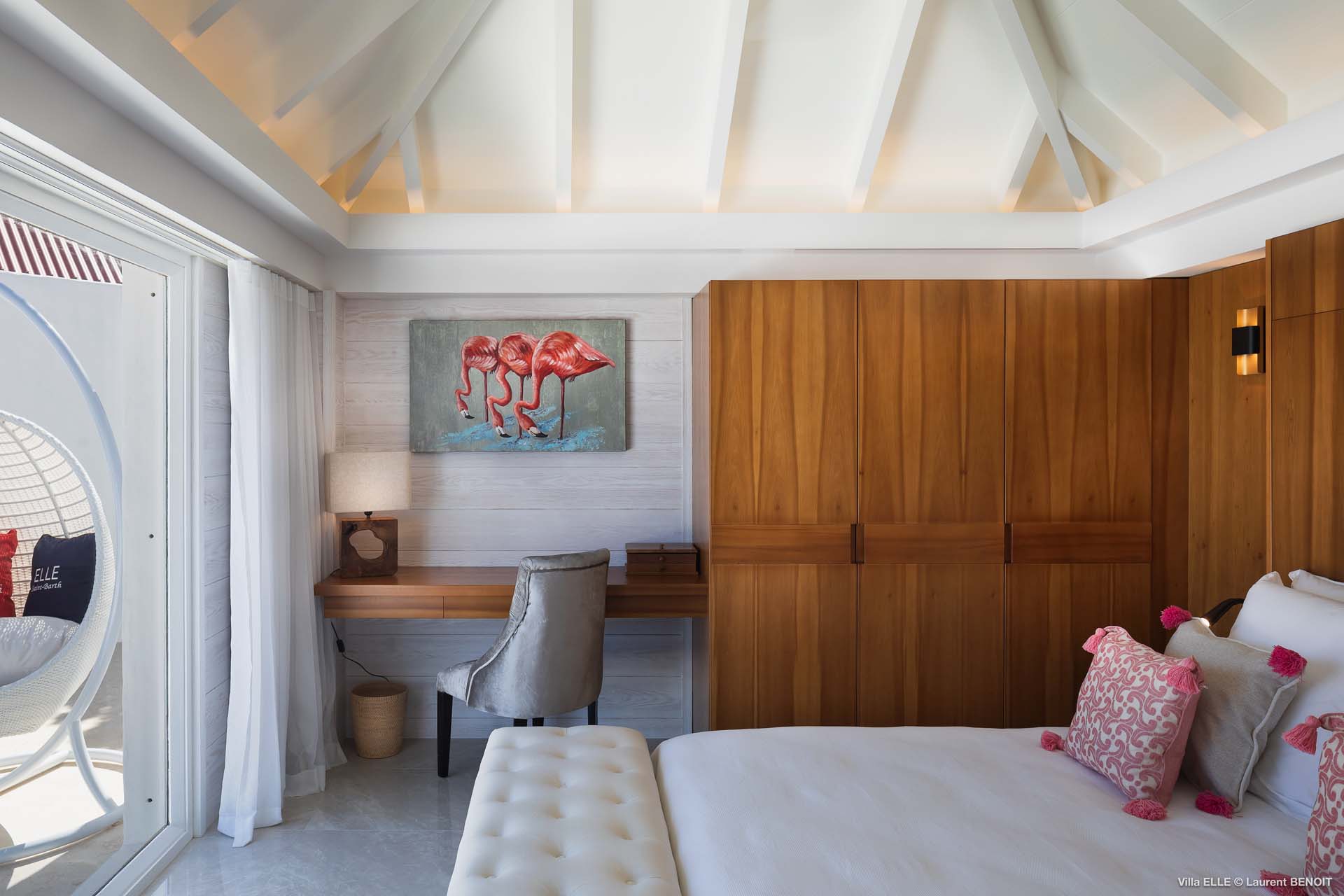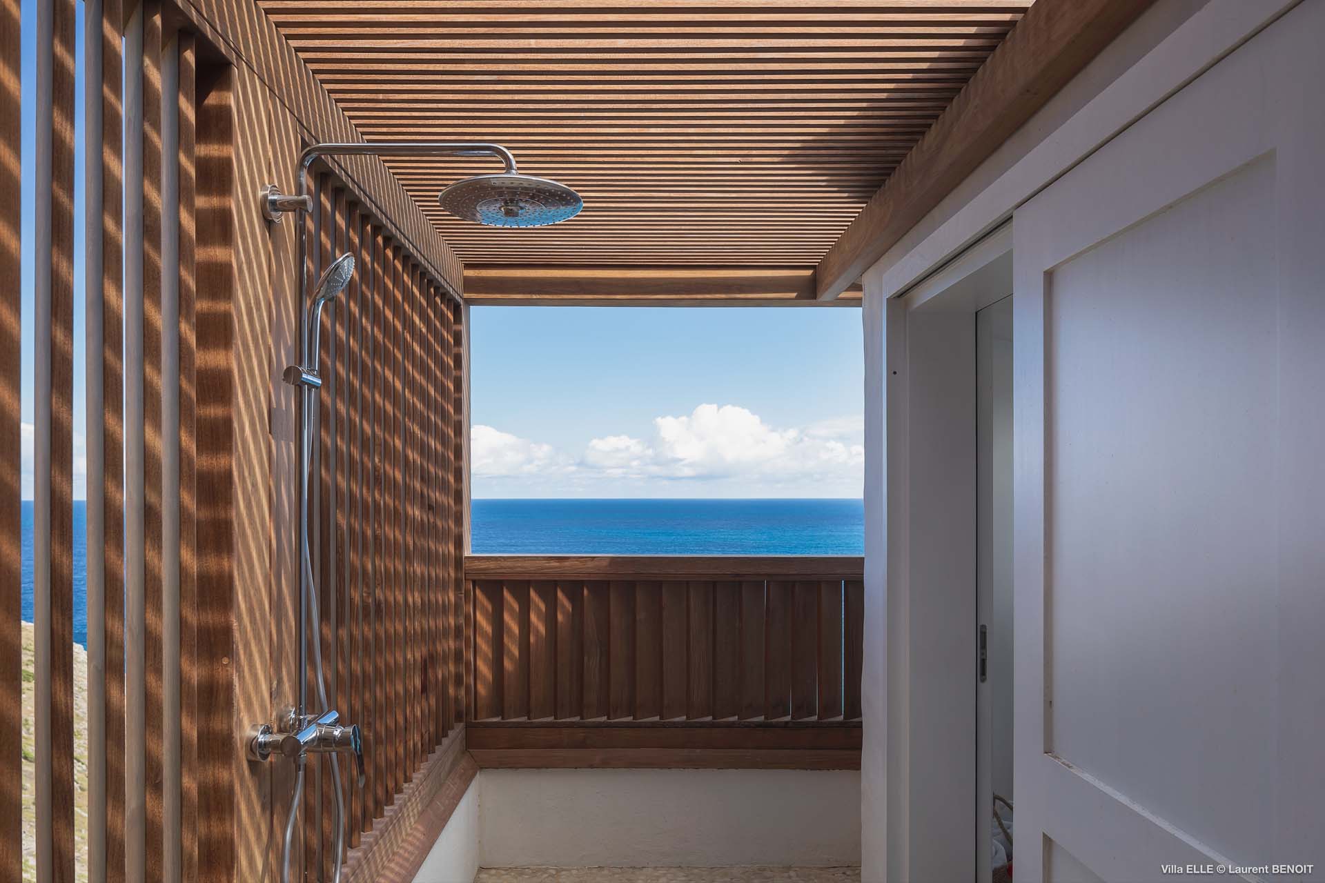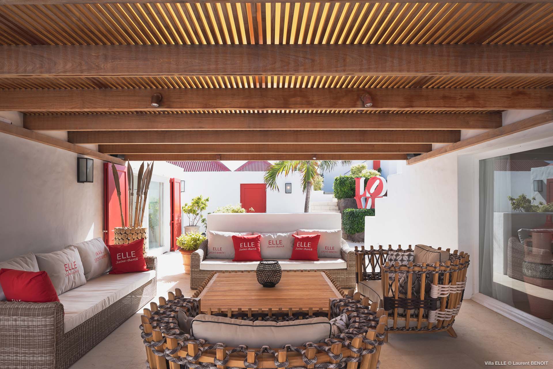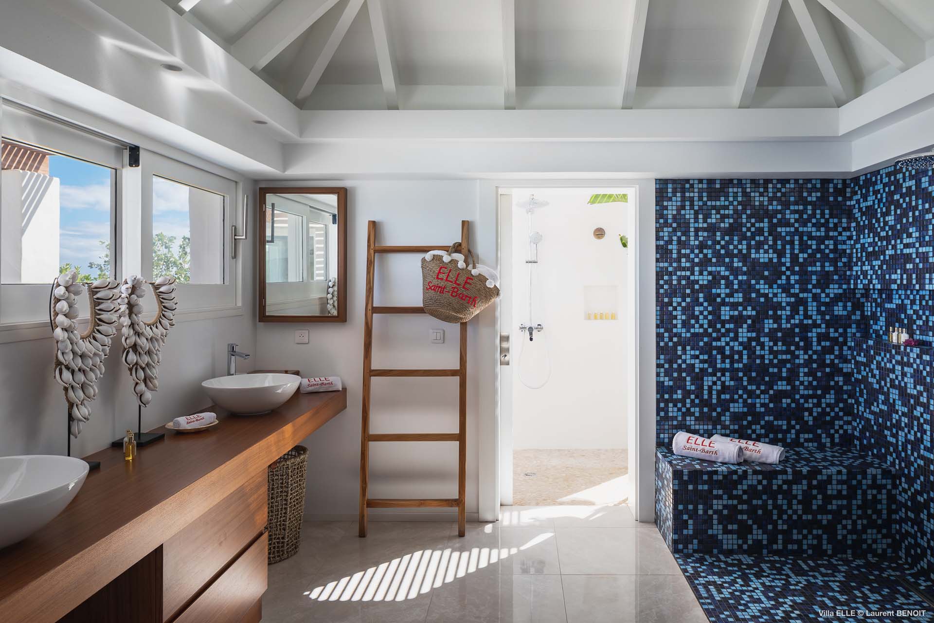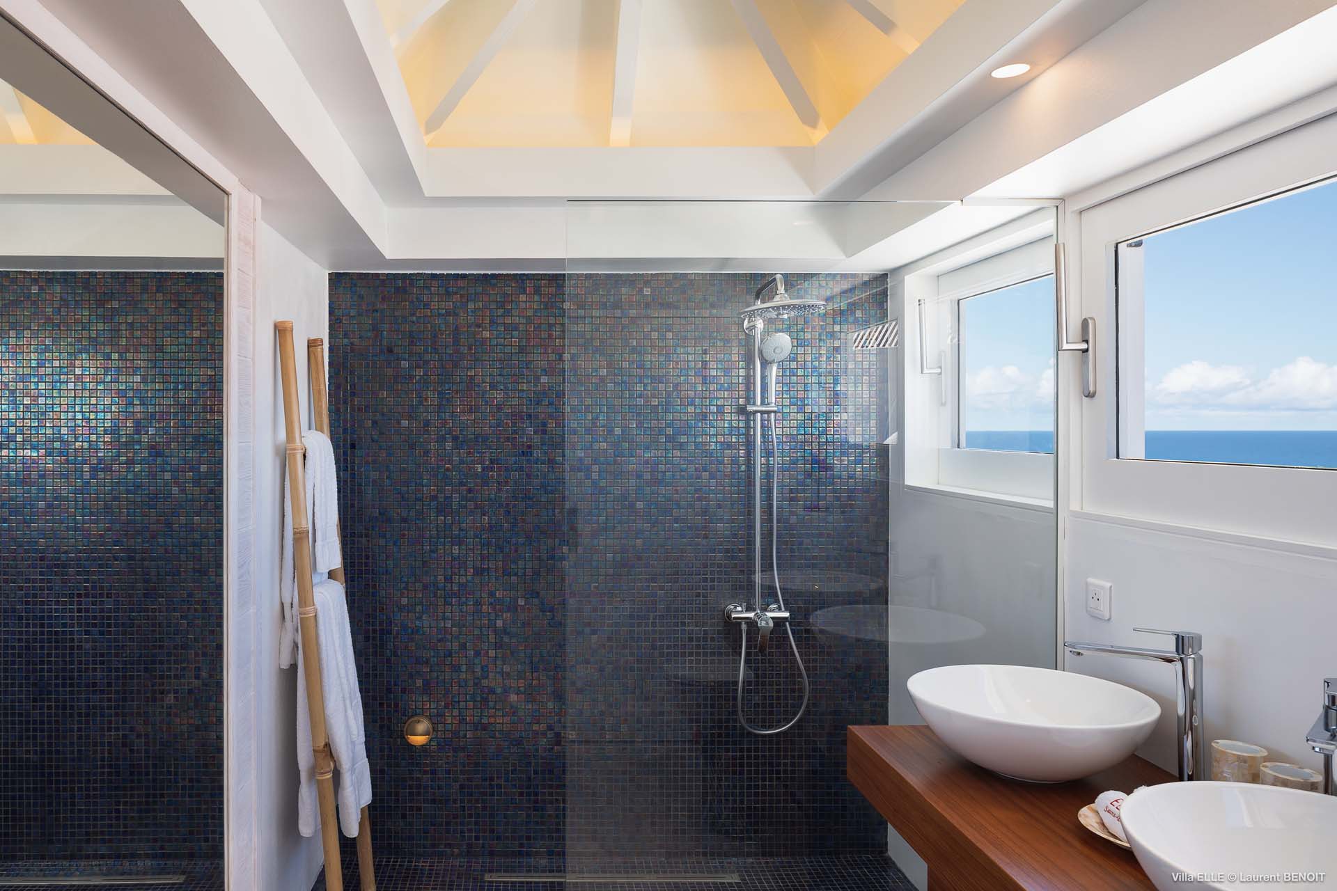 Villa Elle is a spacious, 4-bedroom villa situated in Pointe Milou with great amenities and incredible ocean views. Perched on the cliffs on the north eastern side of Pointe Milou, Villa Elle benefits from all day sun and truly stunning panoramic ocean views. The villa feels like a cocoon, a safe harbor, where guests can shut out the world and almost feel like being alone on a deserted island. Several seating areas are scattered around the property, both in shade and sun, with the main outdoor gathering space situated underneath a gazebo in between the kitchen and the living room, close to the heated pool. For some extra relaxation, or a late afternoon cocktail, a heated jacuzzi is located in the corner of the front terrace. The villa was designed to offer ample opportunity to spend time outside and enjoy the views, even on the windier days, thanks to the glass fencing. The kitchen is a large and bright space in a separate pavilion that can be fully air-conditioned, with the fully-equipped, gourmet kitchen on one side, and a dining area on the other. Across from the kitchen is the air-conditioned living room, with 3 comfortable sofas and a fully stocked entertainment center, and which connects with the well-equipped fitness. All bedrooms are equally equipped and offer gorgeous ocean views. On either side of the main level are two master bungalows, each has a spacious room with a European king-sized bed, U.S. and French satellite as well as Apple TV, his-and-hers closets, and an ensuite bathroom with shower and an outdoor shower. One level above is a third master bedroom and a slightly smaller room, which has the same amenities as all others: a European king-sized bed, U.S. and French satellite and Apple TV, his-and-hers closets, and ensuite bathroom with shower. Tucked in the back, in between the upper bedrooms, is a massage room with a heated table, and a full home theater. Villa Elle is a perfect family villa, but will also suit couples vacationing together.Please fill out the form to begin your inquiry and we will connect you with a seasoned villa rental specialist.