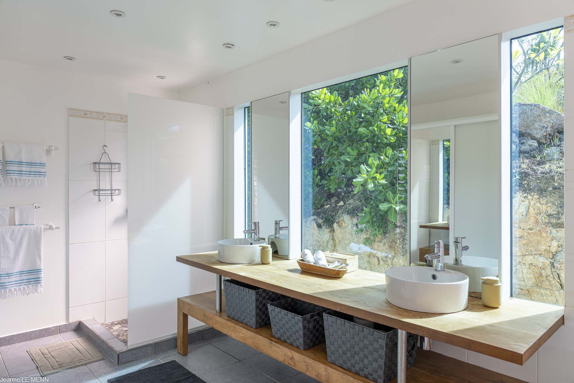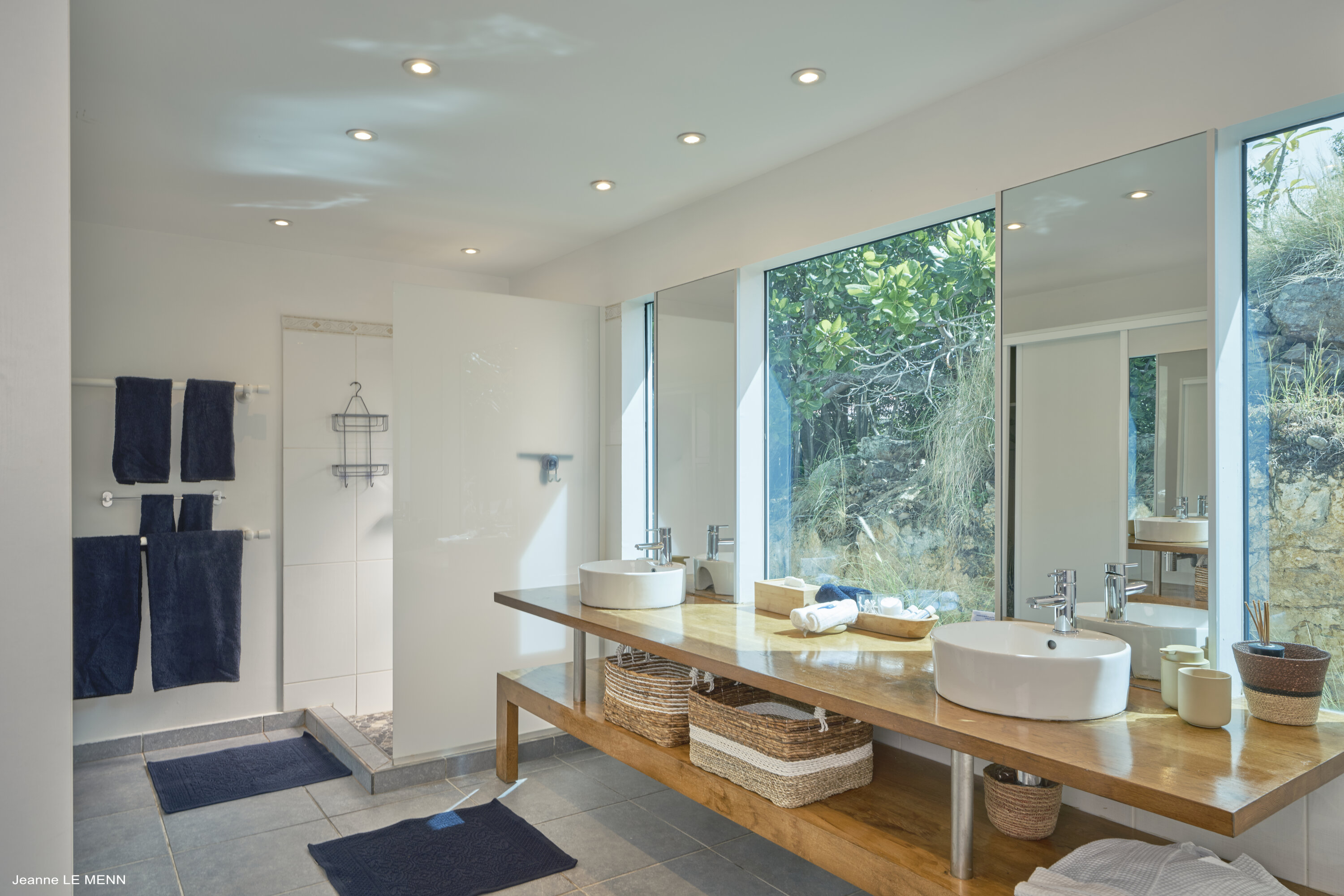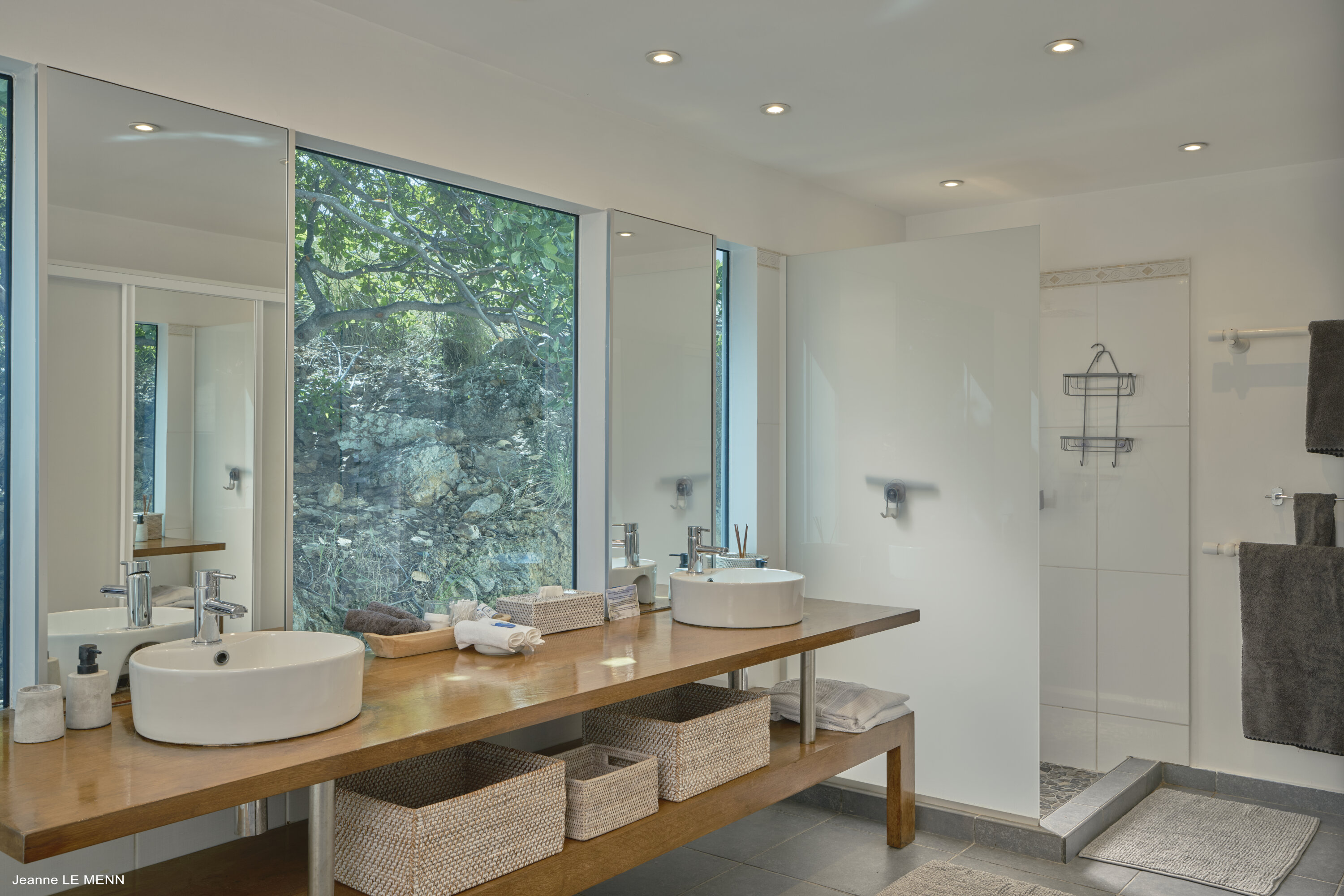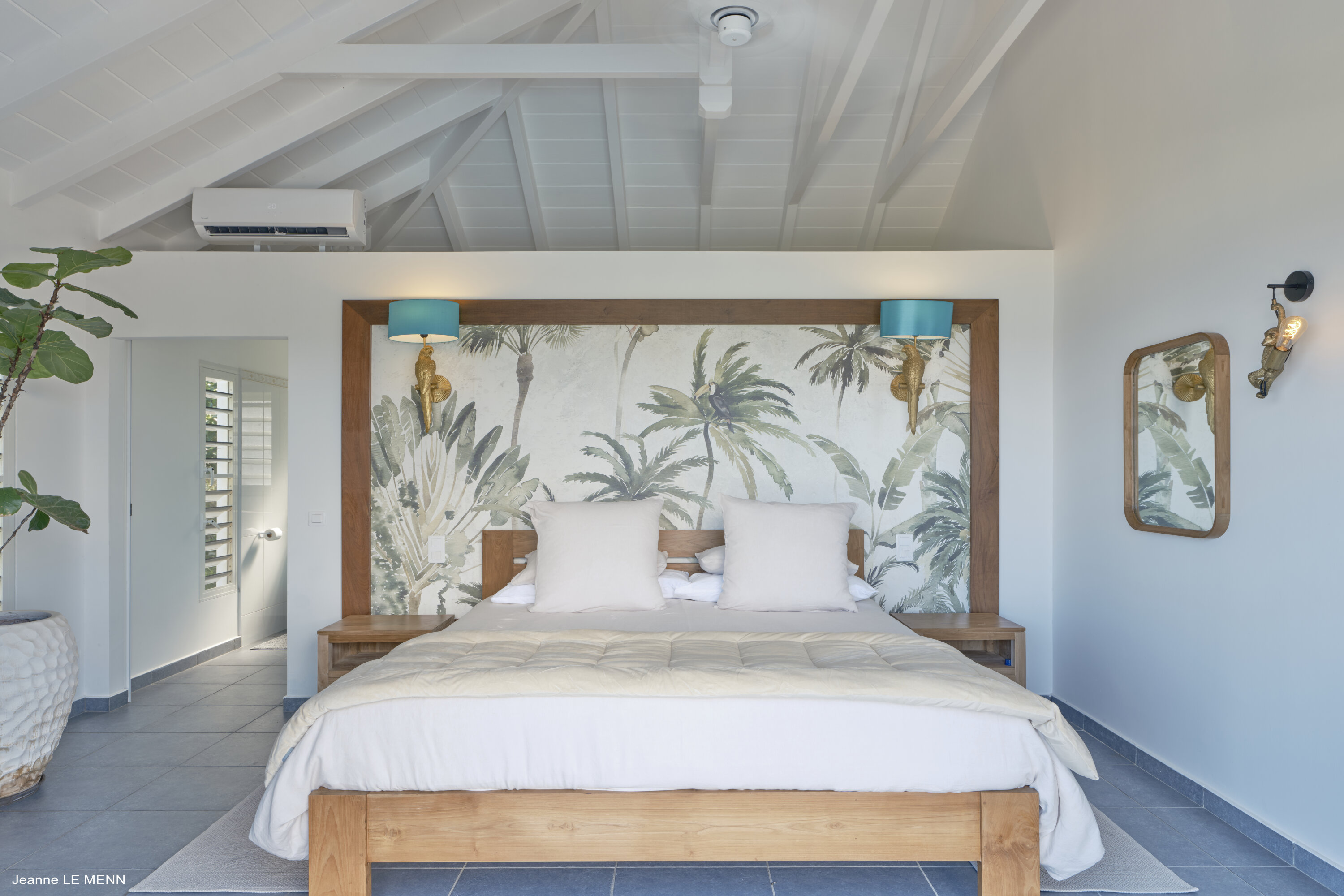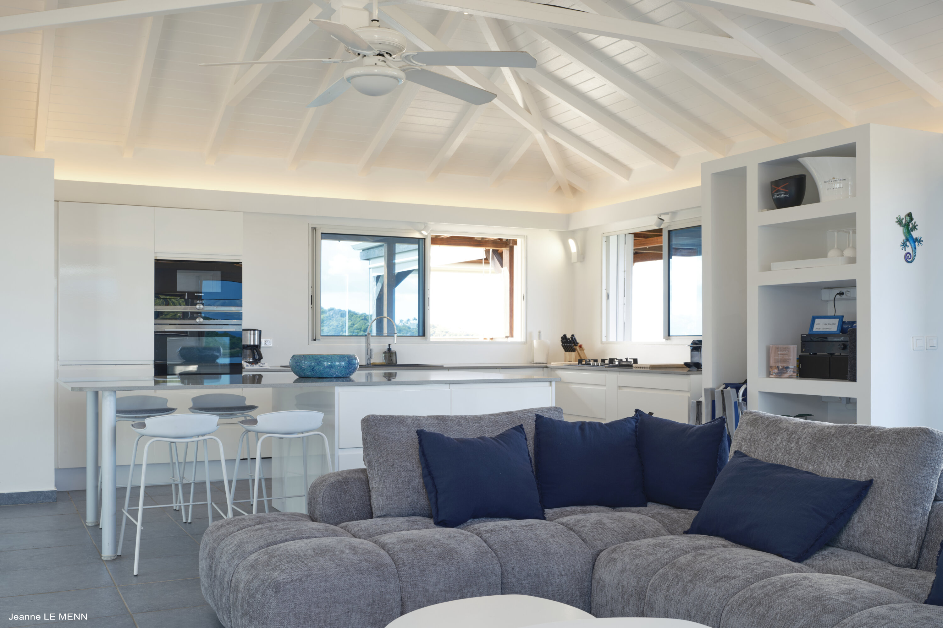 Poised high on the St. Jean hillside, this two bedroom deluxe villa offers privacy and a spectacular view of St. Jean Beach and the bustling little airport’s arrivals and departures in the distance. The entrance is graced with a lily pond, and the main house includes airy living spaces with contemporary décor in an all-white palette. A well-equipped kitchen, an adjoining dining area, and a guest bath are all in the main house as well. Two of the bedrooms (king platform beds) are in an adjacent pavilion and are identical in size. They feature en suite baths with double vanities and vessel sinks, access to the pool terrace and a fabulous view. The 3rd en suite bedroom, also with an ocean view, has a deck, and is privately situated on the lower levelThe focal point of the sunny terrace is a delightful infinity pool, heated in winter and chlorine-free; there are loads of outdoor living-and-relaxing spaces, including a covered dining terrace and a gazebo. Villa Ellede also features a fitness room. Techno amenities include U.S. Satellite, Wifi, and surround sound. Romantic enough for honeymooners, it would also be a great choice for vacationing friends.Please fill out the form to begin your inquiry and we will connect you with a seasoned villa rental specialist.