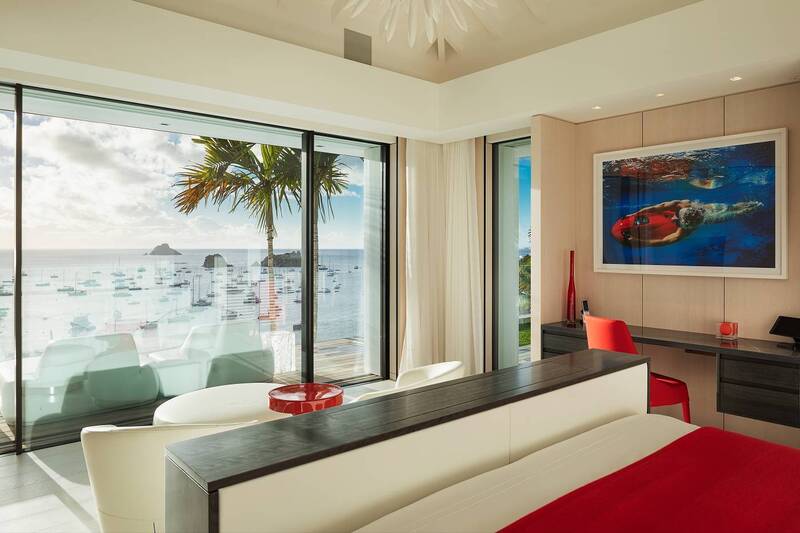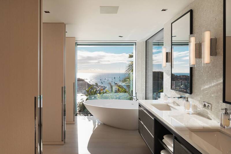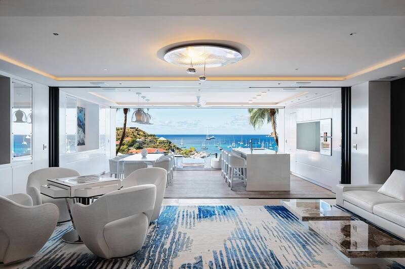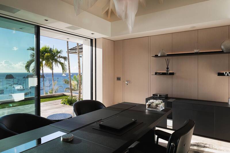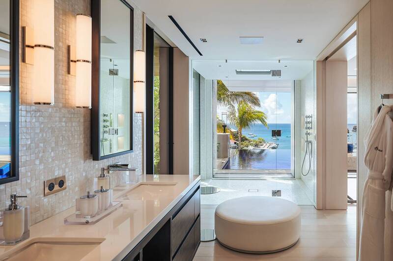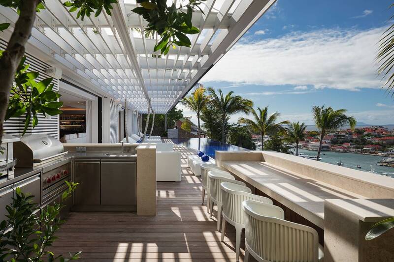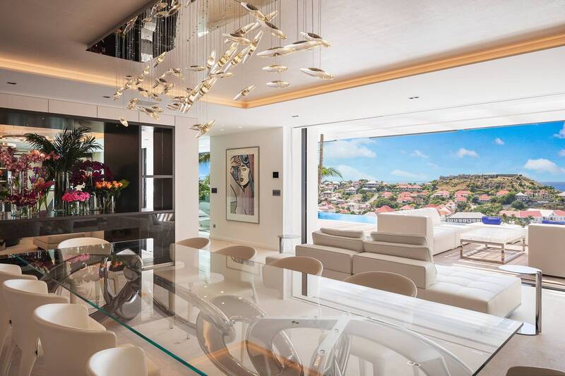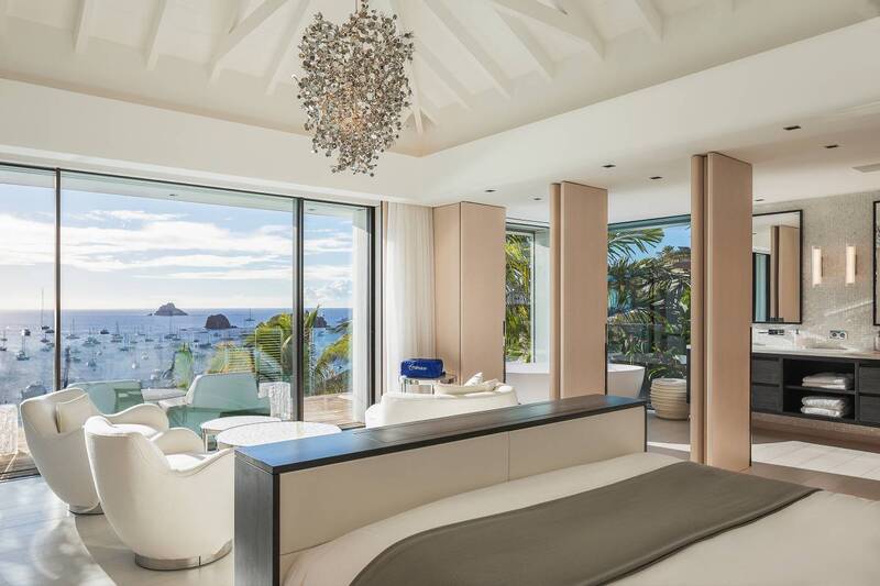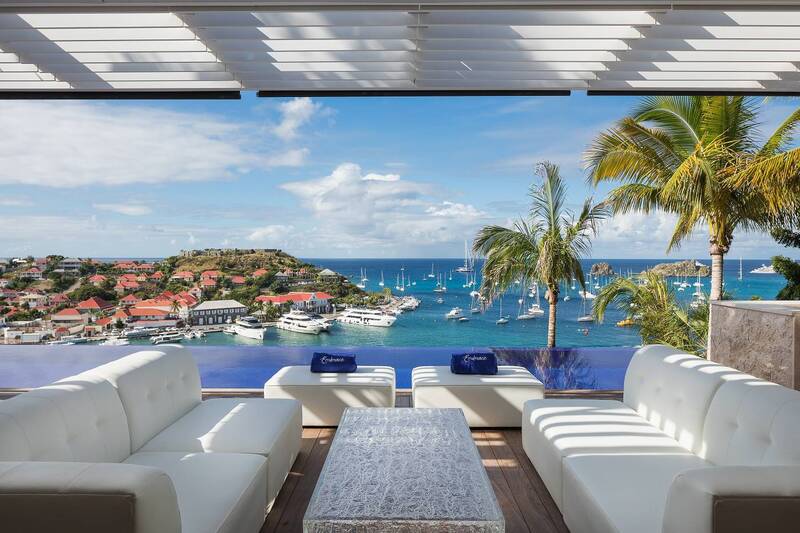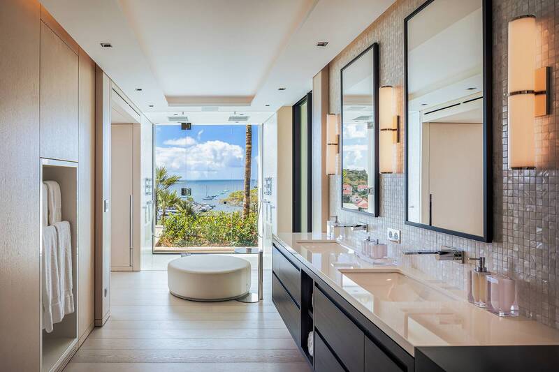 Villa Embrace, (villa code: WV EMB) is a 5-bedroom residence seamlessly integrated into the mountainside, conveniently close to Gustavia Harbor. This spacious, four-level dwelling boasts sweeping views of the sea and harbor, complemented by two infinity edge pools. Villa Embrace pays homage to art, architecture, and design, blending contemporary style with subtle elegance to present a unique interpretation of an island retreat. Villa Embrace’s expansive interiors provide spaces for hosting movie nights in the theater, exploring the world through the extensive wine cellar. All of the suites are crafted to seamlessly integrate nature, featuring clean lines, natural materials, and a focus on both form and function. Outdoor showers are enveloped by lush foliage, and floor-to-ceiling windows vanish into the walls, offering breathtaking sea views and direct access to one of the two infinity-edge pools. Villa Embrace's sought-after location, etched into the mountainside overlooking Gustavia's yacht-filled harbor, offers a balance of tranquility and proximity. The city's upscale dining, designer boutiques, and lively nightlife are just a short stroll away. Across the island, pristine white-sand beaches and verdant sloping hills provide abundant opportunities for both adventure and relaxation.Please fill out the form to begin your inquiry and we will connect you with a seasoned villa rental specialist.