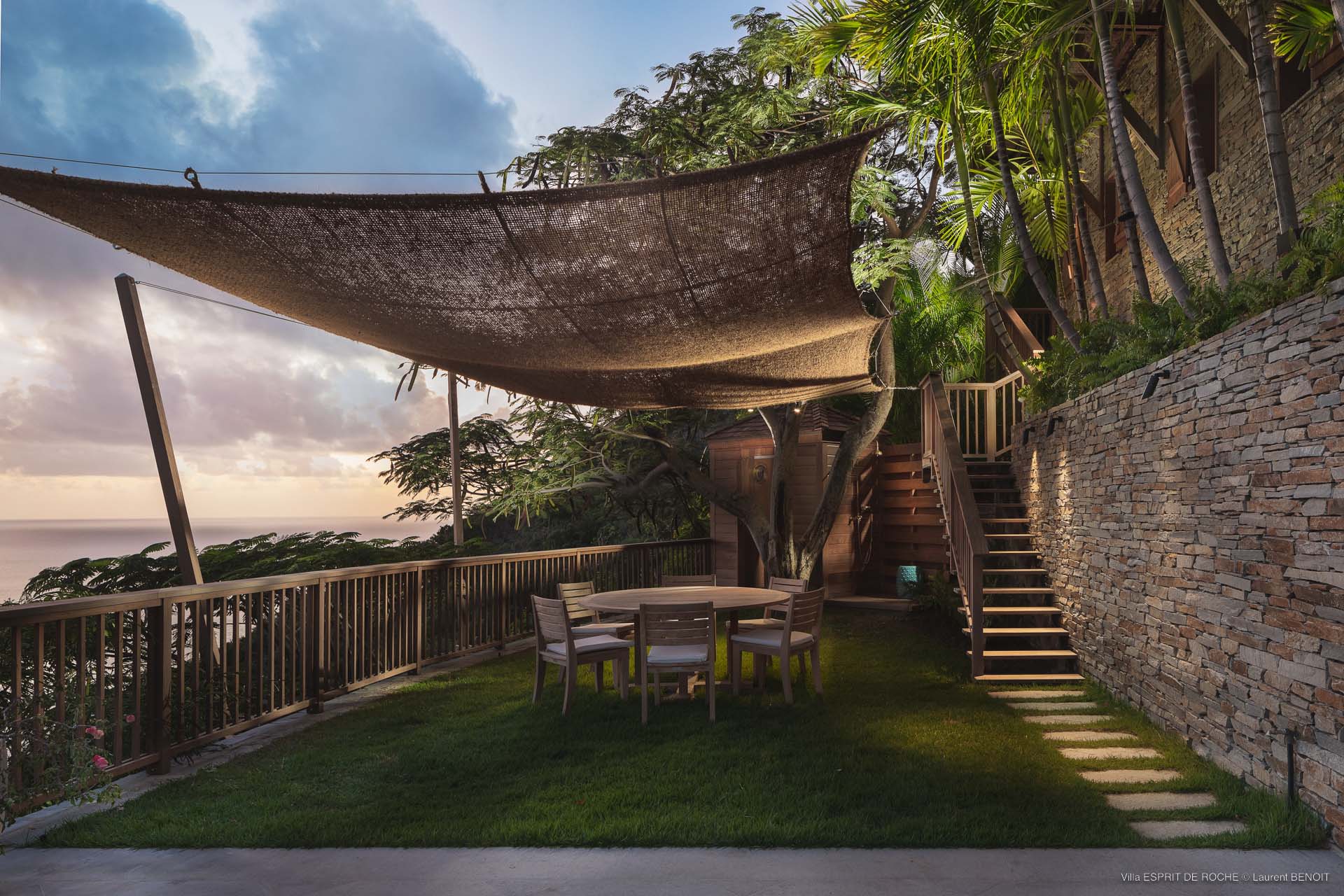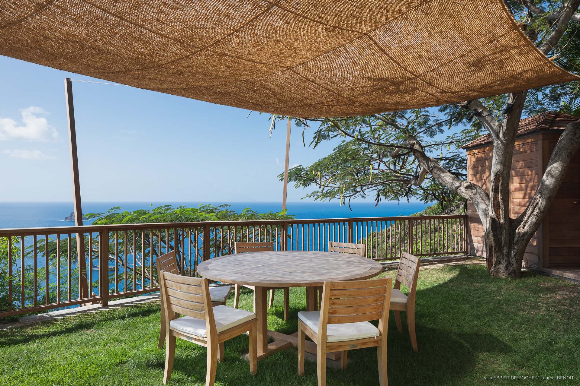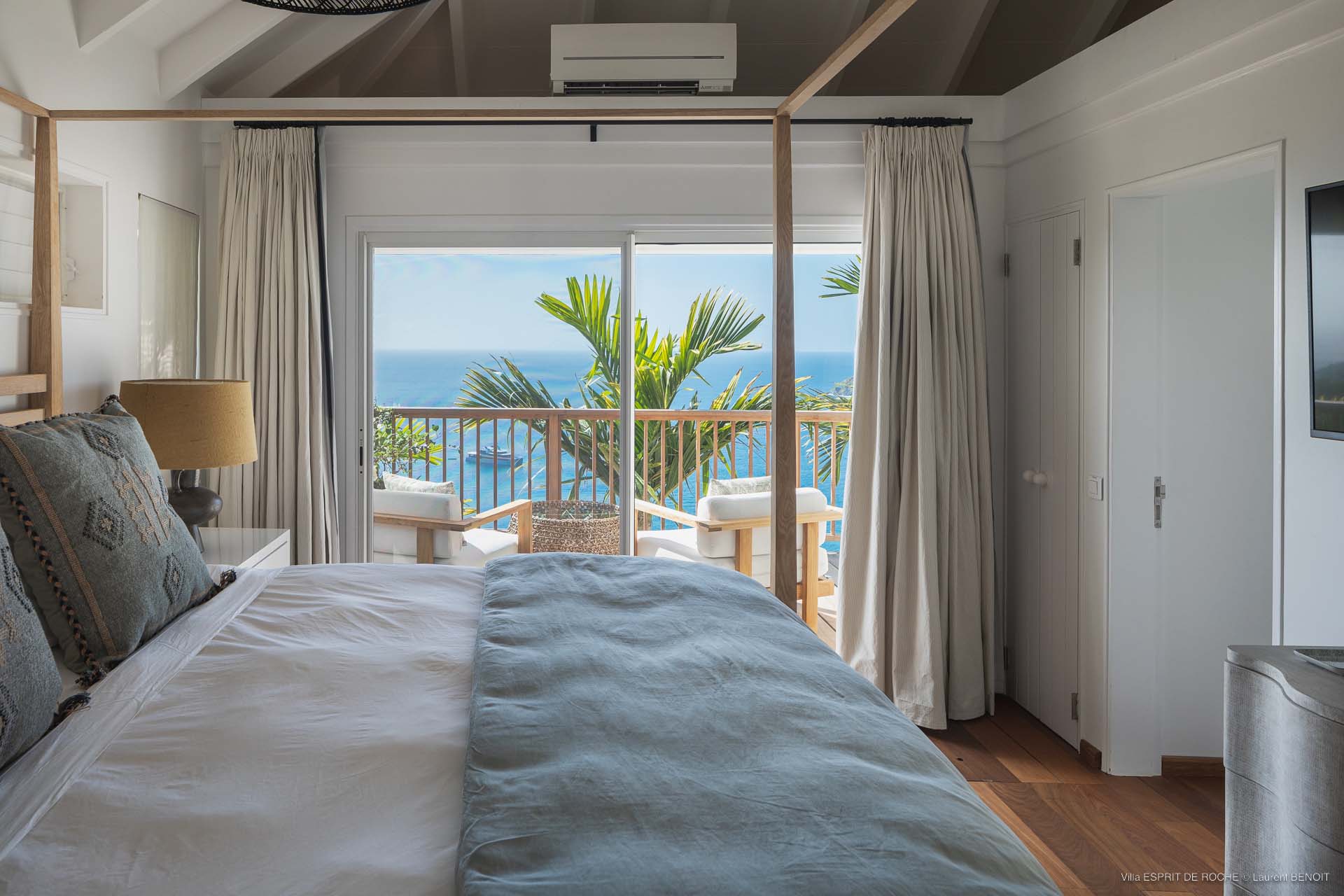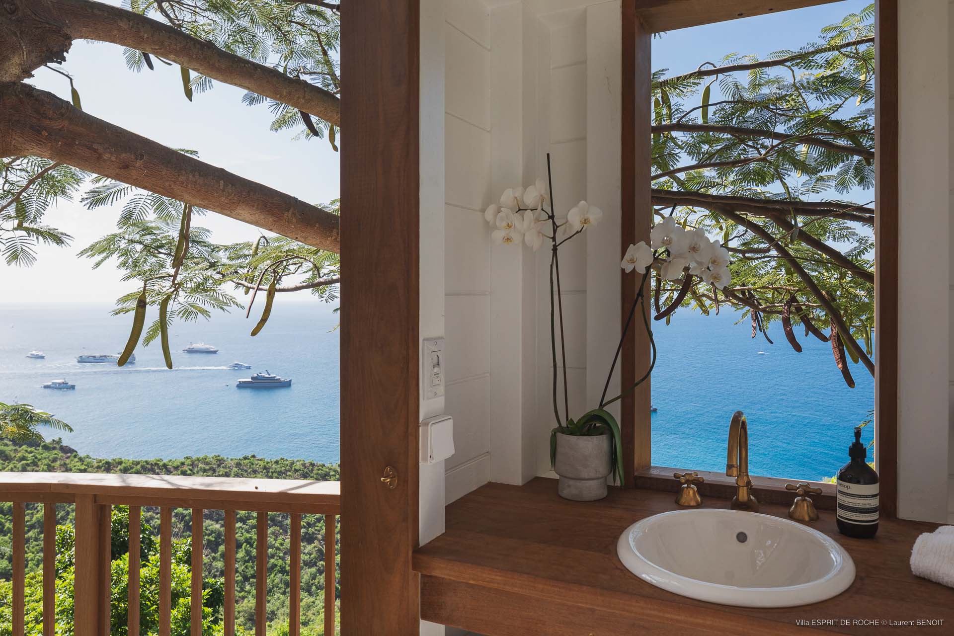 Ideally located in Colombier, a 3-bedroom Villa Esprit de Roche (villa code: WV EDR), treats its guests to a panoramic seascape that encompasses the neighboring islands of Nevis, St. Kitts, Statia, and Saba. Fiery sunsets are a bonus with an opportunity to witness the “green flash.” Totally renovated, and beautifully decorated, the villa’s main level encompasses a living room, kitchen with a breakfast bar, and a covered dining terrace, all with a stunning view of the sea. All three air-conditioned bedrooms have en suite baths and TVs. One bedroom is on the main level with a king bed and features a terrace. The second bedroom has a king or 2 twin beds and is located a few steps down in a separate pavilion with a private terrace. The lower-level master suite has a king bed and a terrace as well and is near the extra-large swimming pool. The pool area affords abundant space for sunning and outdoor living. Parking is ample.Please fill out the form to begin your inquiry and we will connect you with a seasoned villa rental specialist.