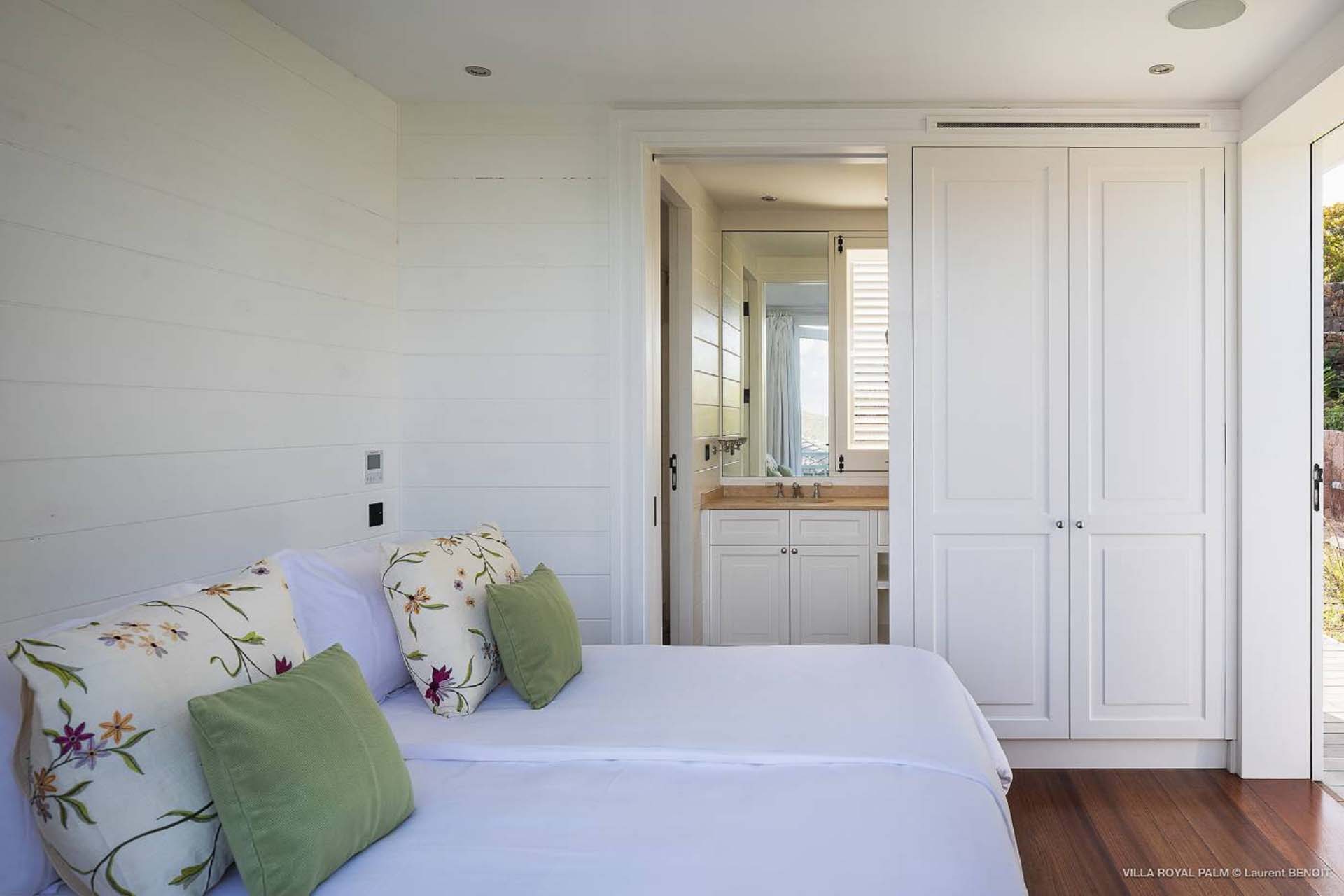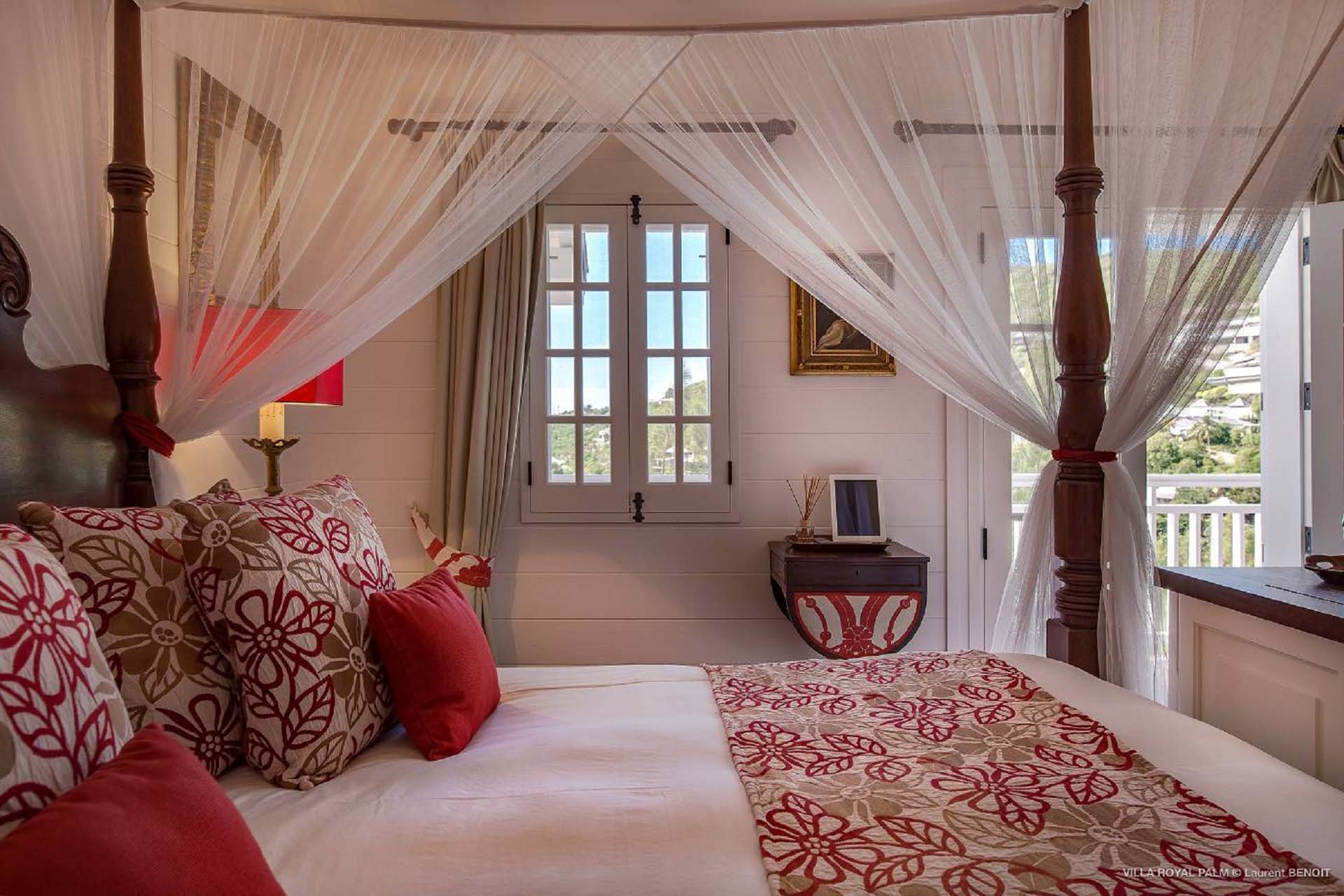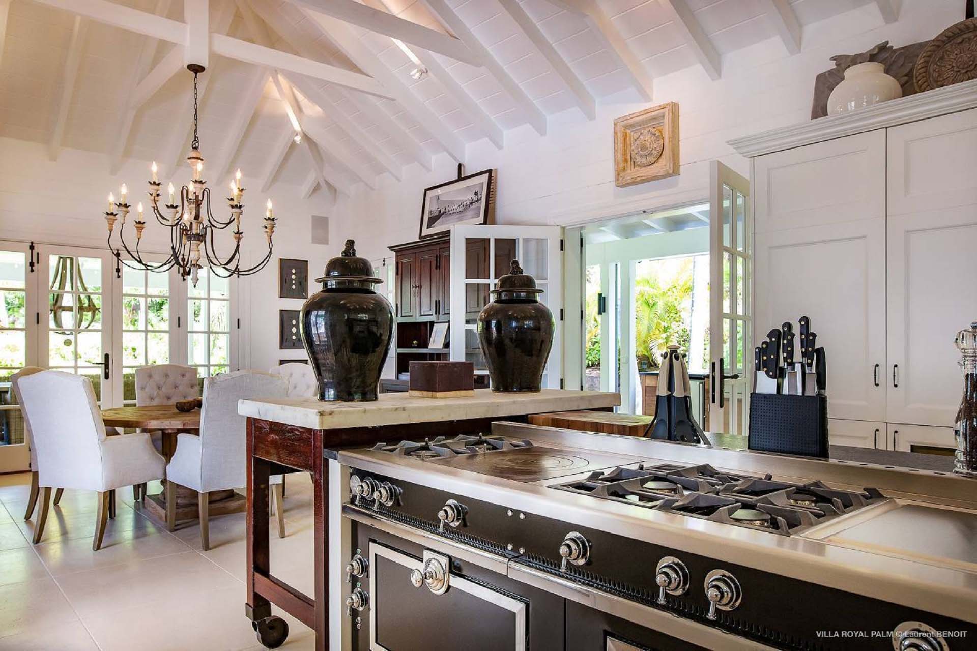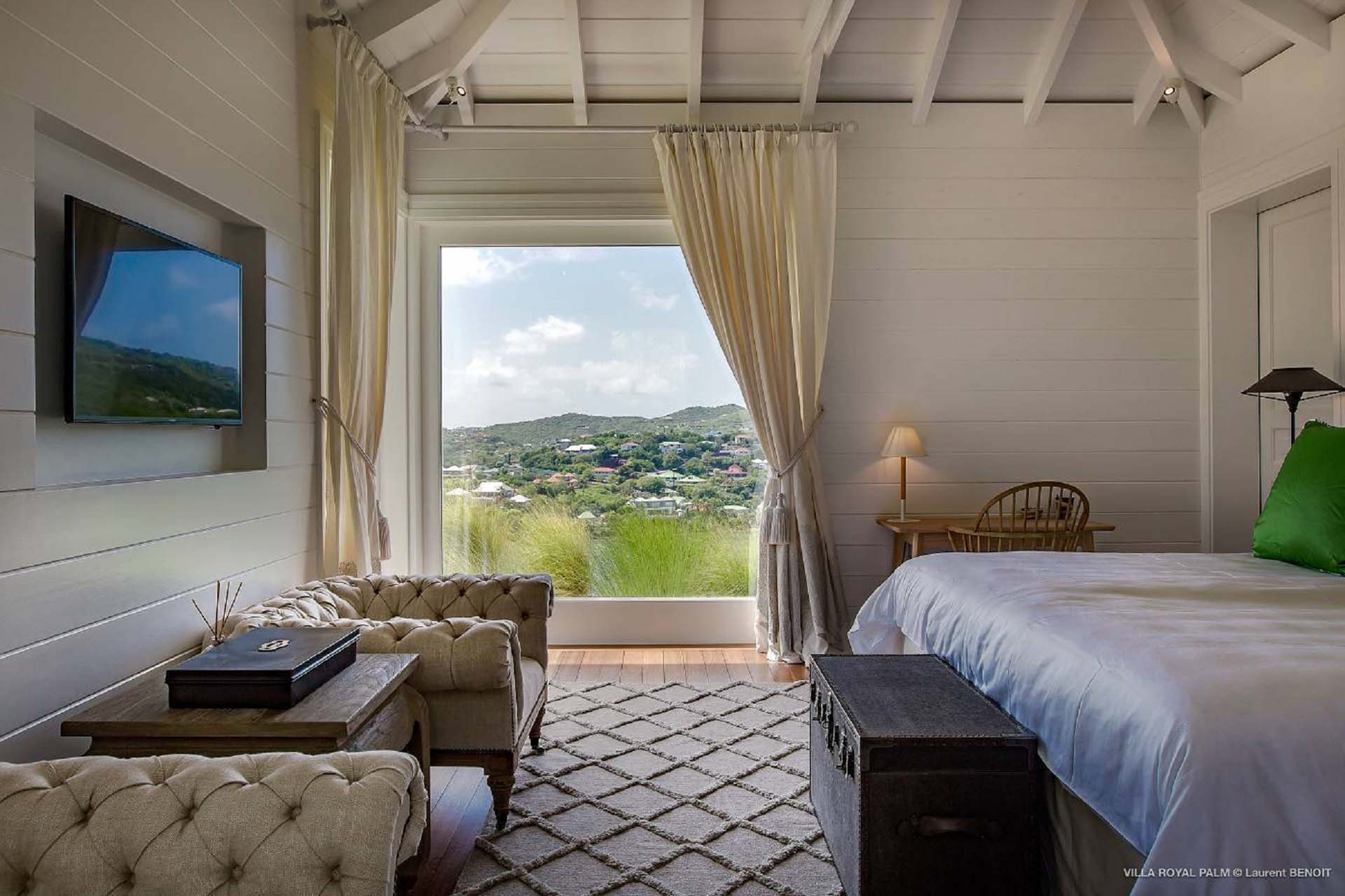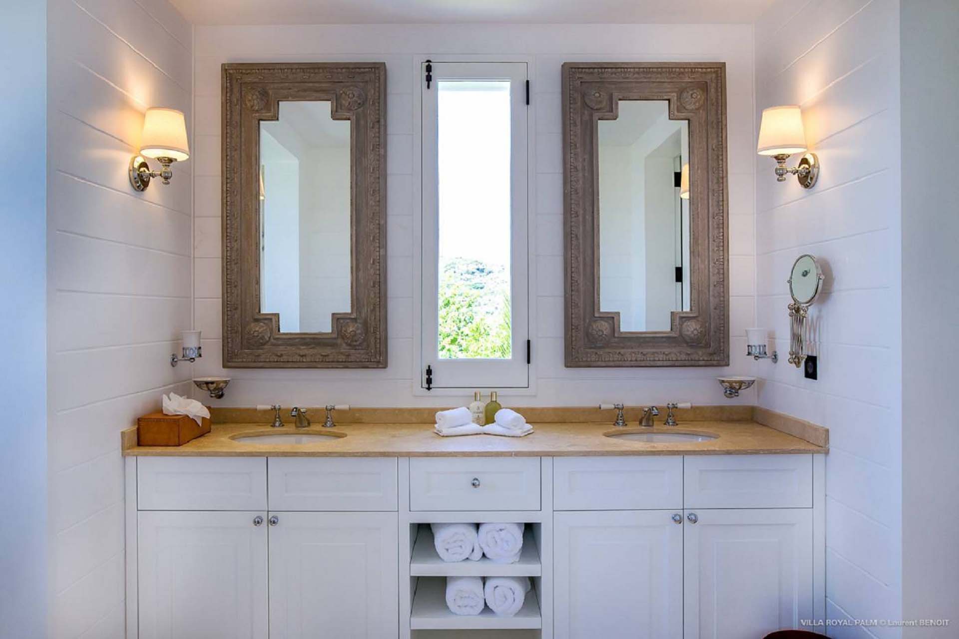 Palmier Royal Estate, (villa code: WV EPR) is a large compound, consisting of 2 large villas with a total of 11 bedrooms, 3 pools, and direct water access to the protected bay of Marigot. Palmier Royal Estate is not just a villa, it's a statement and the epitome of luxury. With fitness and massage rooms, 2 gourmet kitchens, and a beautiful terrace just above the water which allows access to the water for swimming, or to explore the nature reserve that is Marigot Bay on a paddleboard or canoe. The estate consists of 2 separate villas with annexes, built in a contemporary West Indies style, and are all connected by wooden walkways adorned by tropical gardens. One villa has 4 bedrooms, of which 2 are full masters and 2 guest rooms, the other has 7 bedrooms, 2 are master suites, 3 guest rooms, and 2 smaller rooms, for a total of 11 bedrooms. Gorgeous views can be enjoyed from almost every corner of the estate and are arguably amongst the best views of Marigot Bay. The first villa has a large, air-conditioned main room consisting of a gourmet kitchen, a living area, and a loft/TV area for kids. A large, heated pool is the centerpiece of the spacious terrace along with a pool house and covered dining area. Comfortable seating underneath a gazebo allows you to enjoy the breezes and views, while in the shade. The 2 master bedrooms are accessed from the covered terrace. Each has a Euro king-sized bed and ensuite bathroom with both shower and bathtub, dressing area, U.S. satellite, Apple TV, and Sonos. Directly below the 2 master bedrooms are 2 bedrooms each with a Euro king-sized bed, ensuite bathroom with and U.S. satellite, Apple TV, and Sonos. All the way down the path is a large deck, just above the water with direct access to the protected bay, where turtles swim freely. There's ample seating on the deck, with loungers and a large table for waterfront dining. The second villa is just a few steps above the main level of the first. This villa includes a large fitness room with a bathroom and massage room. On the main level are two separate bungalows that are fully air-conditioned. The first is the spacious living room with comfortable seating and the second is a large gourmet kitchen with a breakfast corner and a large grilling area outside with covered dining. The deck ends in a heated infinity pool and a separate gazebo. The bedrooms of the 2nd villa are in 6 separate pavilions. 2 master suites are on the lowest level, each in a separate bungalow. Both come with a Euro king-sized bed, dressing area, and an ensuite bathroom with a shower, as well as an outdoor bathroom with a shower and bathtub. A cozy balcony out front is perfect to enjoy the view. There are 3 guest bedrooms, all with Euro king-sized beds and ensuite bathrooms; and 2 smaller guest rooms are situated in a separate pavilion at street level and separated by a common area. Each room has a Euro king-sized bed, dressing area, and an ensuite bathroom with a shower, as well as a private balcony with seating. During the high season only, guests at the villa enjoy the services of a private chef and waitress (food not included), along with two maids providing daily service and turndown, seven days a week. A mini fridge is stocked with still and sparkling water for your convenience. For on-the-water adventures, guests have access to two paddle boards, two kayaks, and four life jackets. Please note: a security deposit of $10,000 is required.Please fill out the form to begin your inquiry and we will connect you with a seasoned villa rental specialist.