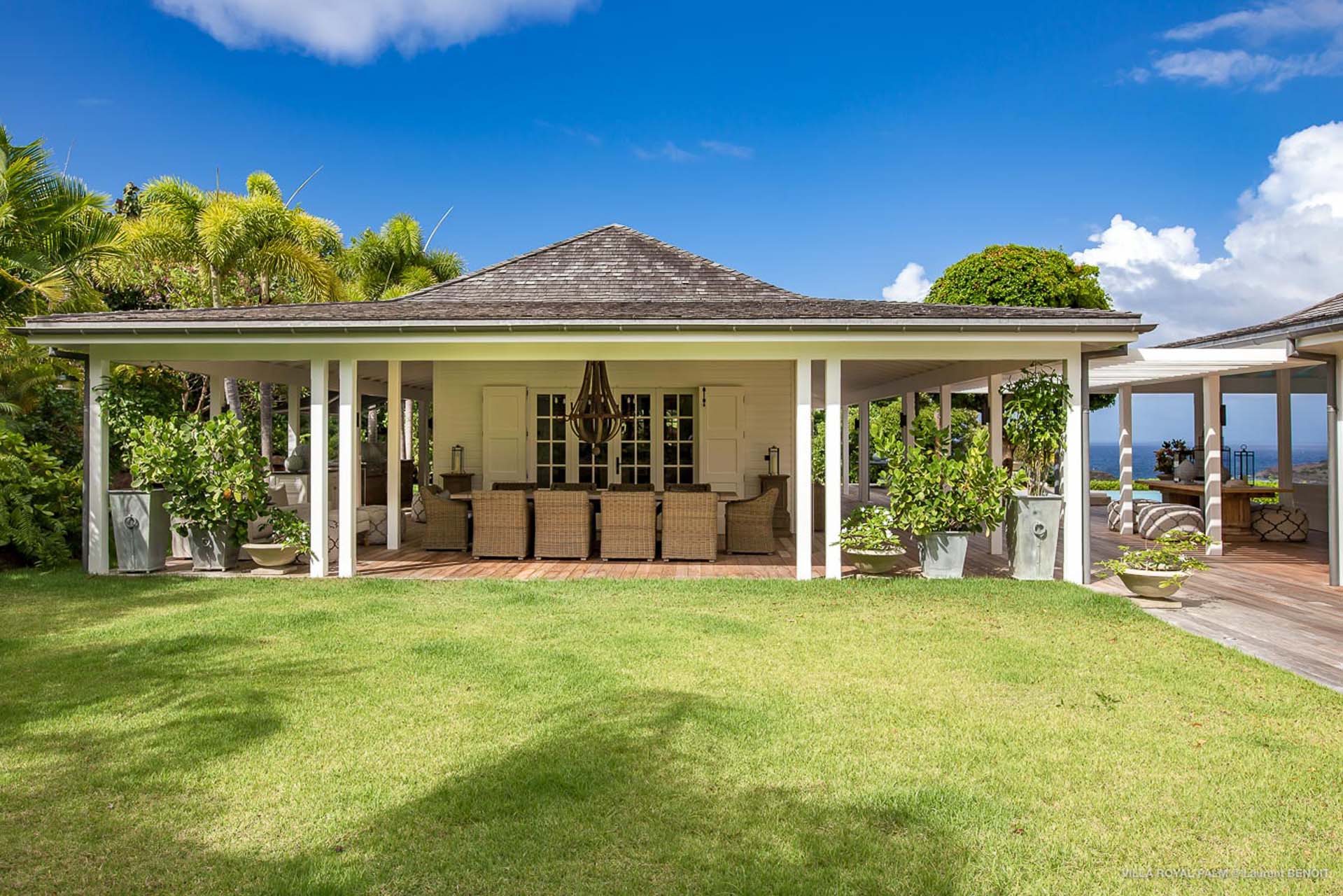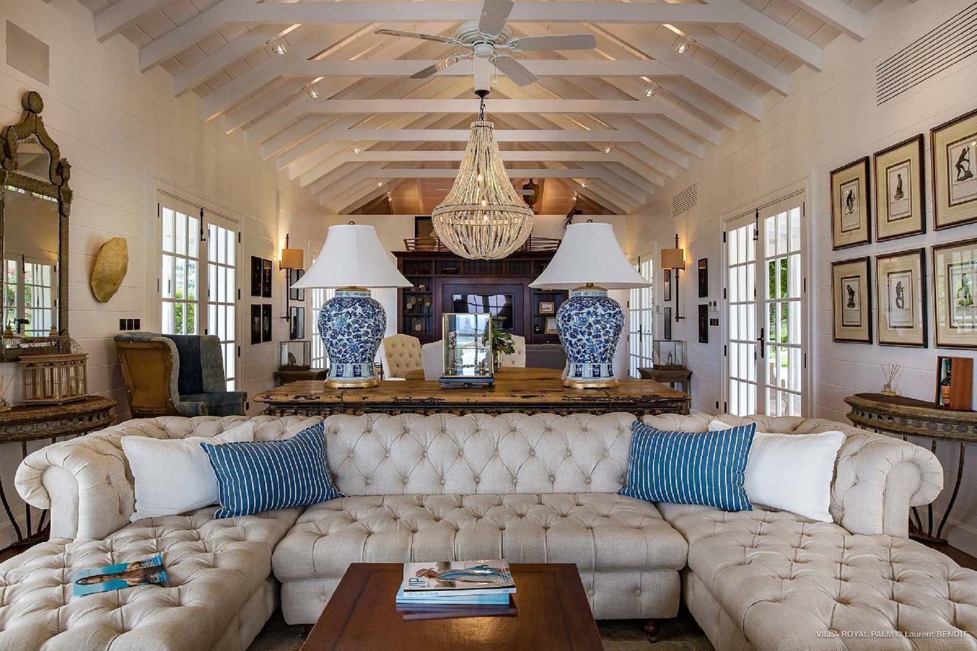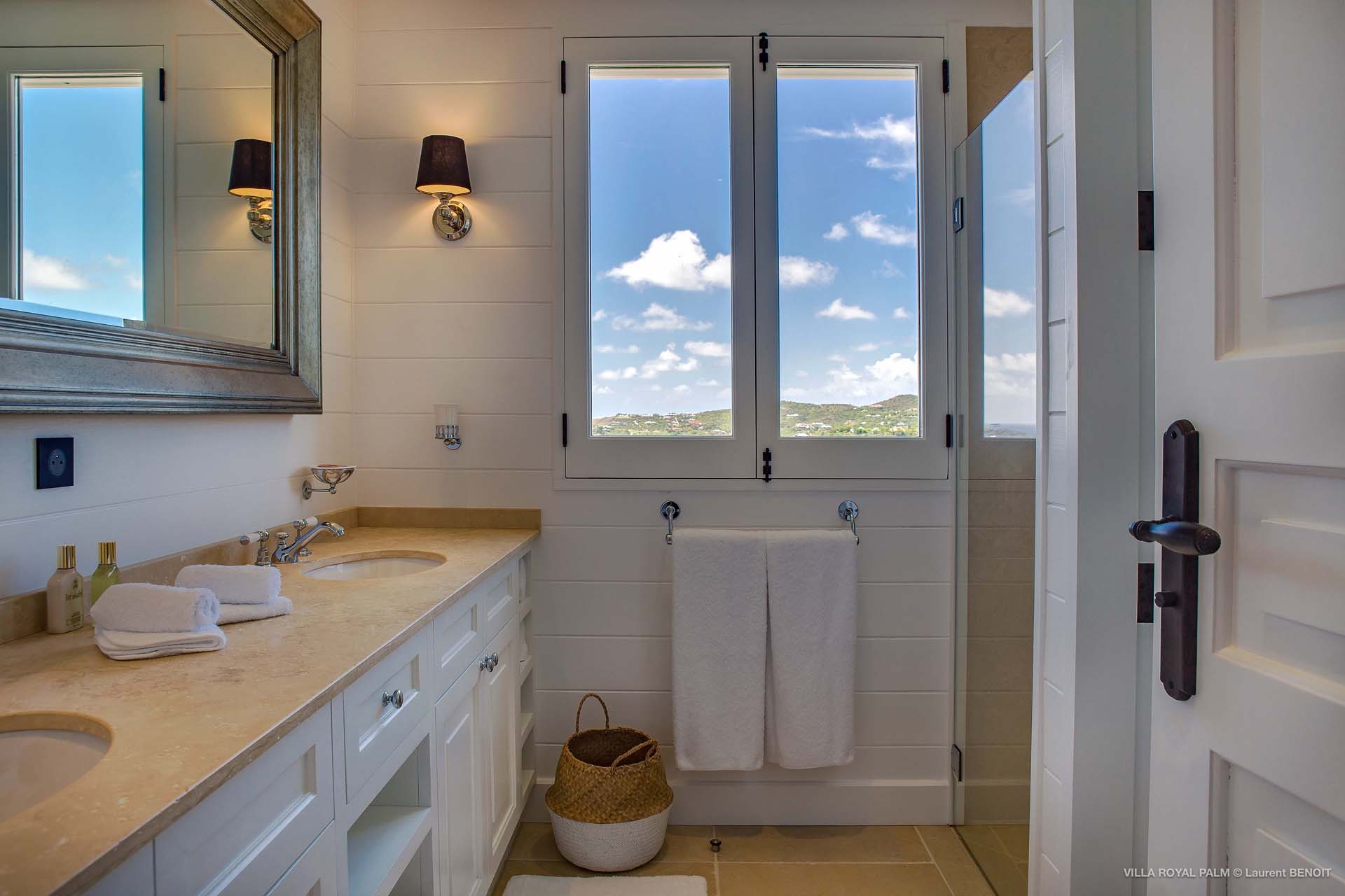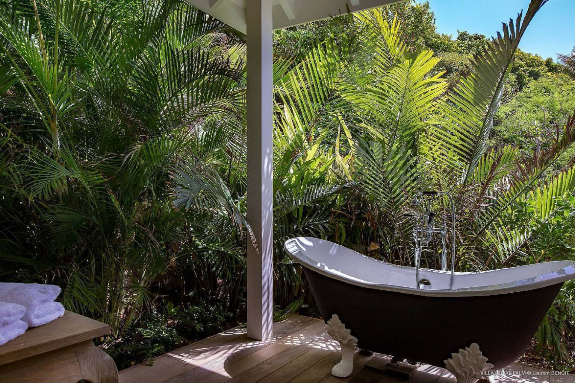 Palmier Royal Estate, (villa code: WV EPR) is a large compound, consisting of 2 large villas with a total of 11 bedrooms, 3 pools, and direct water access to the protected bay of Marigot. Palmier Royal Estate is not just a villa, it's a statement and the epitome of luxury. With fitness and massage rooms, 2 gourmet kitchens, and a beautiful terrace just above the water which allows access to the water for swimming, or to explore the nature reserve that is Marigot Bay on a paddleboard or canoe. The estate consists of 2 separate villas with annexes, built in a contemporary West Indies style, and are all connected by wooden walkways adorned by tropical gardens. One villa has 4 bedrooms, of which 2 are full masters and 2 guest rooms, the other has 7 bedrooms, 2 are master suites, 3 guest rooms, and 2 smaller rooms, for a total of 11 bedrooms. Gorgeous views can be enjoyed from almost every corner of the estate and are arguably amongst the best views of Marigot Bay. The first villa has a large, air-conditioned main room consisting of a gourmet kitchen, a living area, and a loft/TV area for kids. A large, heated pool is the centerpiece of the spacious terrace along with a pool house and covered dining area. Comfortable seating underneath a gazebo allows you to enjoy the breezes and views, while in the shade. The 2 master bedrooms are accessed from the covered terrace. Each has a Euro king-sized bed and ensuite bathroom with both shower and bathtub, dressing area, U.S. satellite, Apple TV, and Sonos. Directly below the 2 master bedrooms are 2 bedrooms each with a Euro king-sized bed, ensuite bathroom with and U.S. satellite, Apple TV, and Sonos. All the way down the path is a large deck, just above the water with direct access to the protected bay, where turtles swim freely. There's ample seating on the deck, with loungers and a large table for waterfront dining. The second villa is just a few steps above the main level of the first. This villa includes a large fitness room with a bathroom and massage room. On the main level are two separate bungalows that are fully air-conditioned. The first is the spacious living room with comfortable seating and the second is a large gourmet kitchen with a breakfast corner and a large grilling area outside with covered dining. The deck ends in a heated infinity pool and a separate gazebo. The bedrooms of the 2nd villa are in 6 separate pavilions. 2 master suites are on the lowest level, each in a separate bungalow. Both come with a Euro king-sized bed, dressing area, and an ensuite bathroom with a shower, as well as an outdoor bathroom with a shower and bathtub. A cozy balcony out front is perfect to enjoy the view. There are 3 guest bedrooms, all with Euro king-sized beds and ensuite bathrooms; and 2 smaller guest rooms are situated in a separate pavilion at street level and separated by a common area. Each room has a Euro king-sized bed, dressing area, and an ensuite bathroom with a shower, as well as a private balcony with seating. During the high season only, guests at the villa enjoy the services of a private chef and waitress (food not included), along with two maids providing daily service and turndown, seven days a week. A mini fridge is stocked with still and sparkling water for your convenience. For on-the-water adventures, guests have access to two paddle boards, two kayaks, and four life jackets. Please note: a security deposit of $10,000 is required.Please fill out the form to begin your inquiry and we will connect you with a seasoned villa rental specialist.