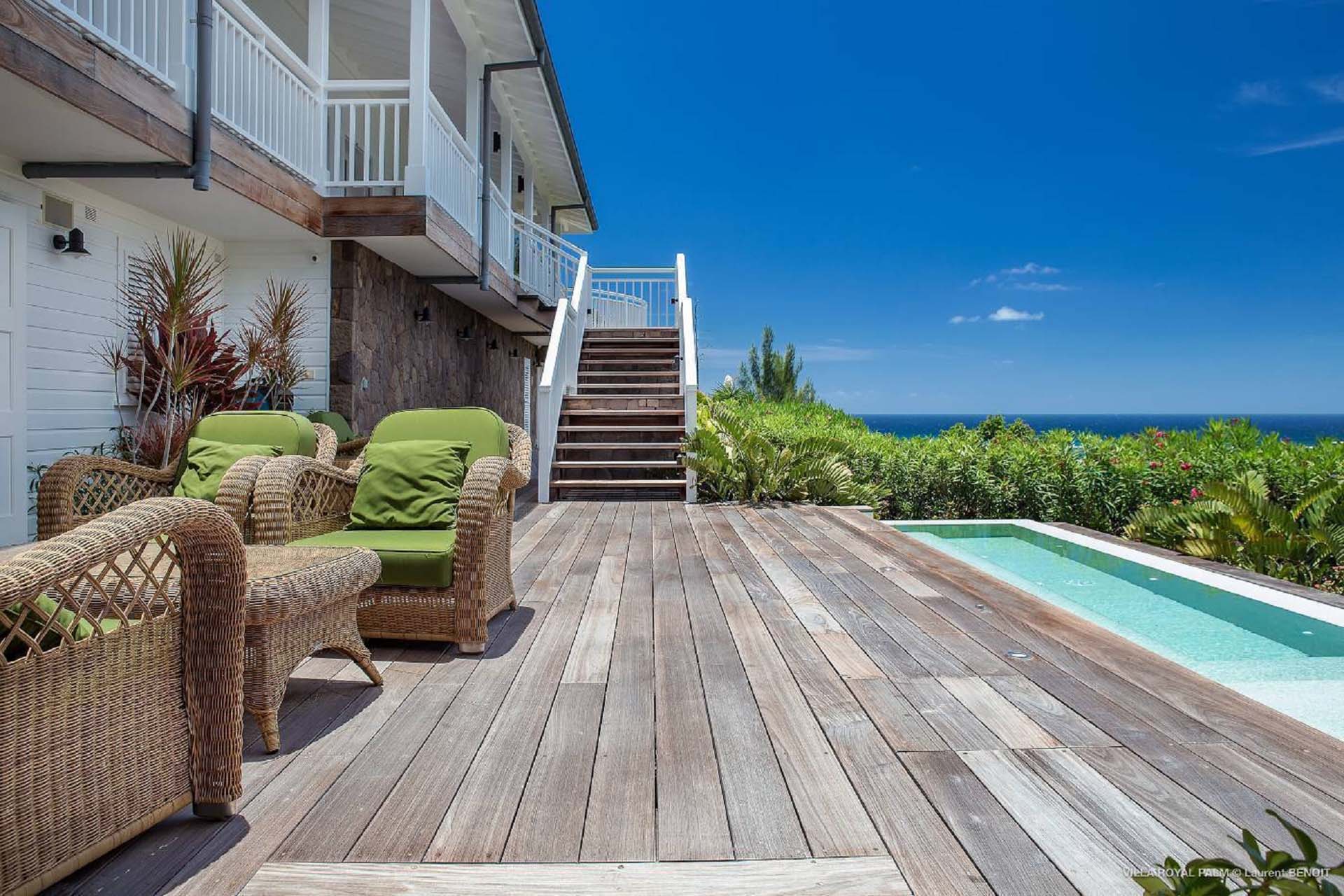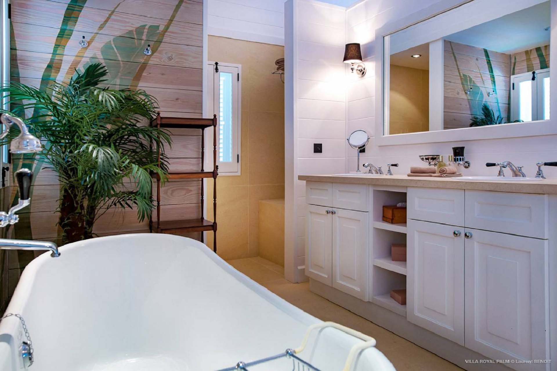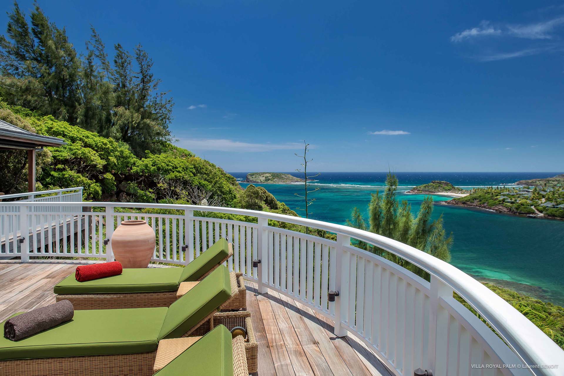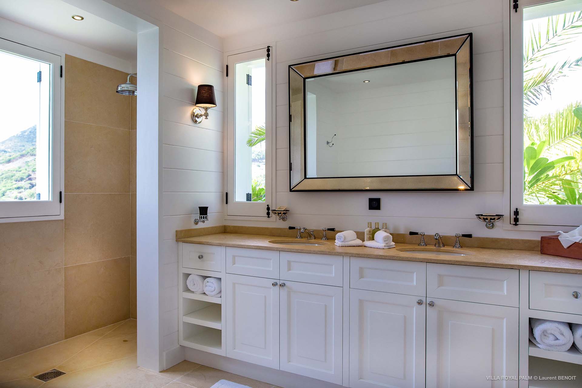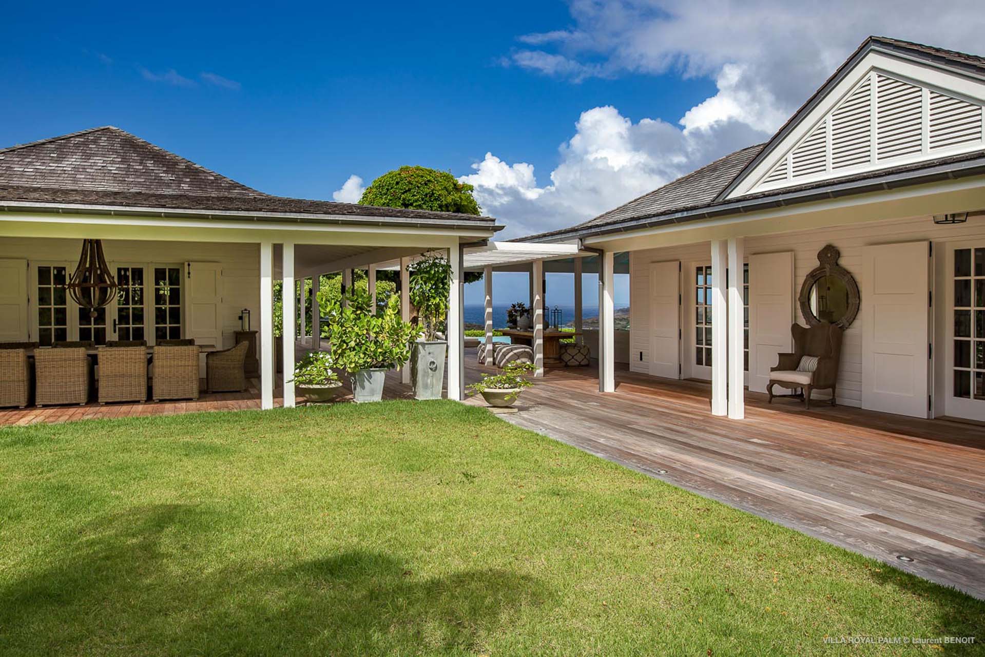 Palmier Royal Estate, (villa code: WV EPR) is a large compound, consisting of 2 large villas with a total of 11 bedrooms, 3 pools, and direct water access to the protected bay of Marigot. Palmier Royal Estate is not just a villa, it's a statement and the epitome of luxury. With fitness and massage rooms, 2 gourmet kitchens, and a beautiful terrace just above the water which allows access to the water for swimming, or to explore the nature reserve that is Marigot Bay on a paddleboard or canoe. The estate consists of 2 separate villas with annexes, built in a contemporary West Indies style, and are all connected by wooden walkways adorned by tropical gardens. One villa has 4 bedrooms, of which 2 are full masters and 2 guest rooms, the other has 7 bedrooms, 2 are master suites, 3 guest rooms, and 2 smaller rooms, for a total of 11 bedrooms. Gorgeous views can be enjoyed from almost every corner of the estate and are arguably amongst the best views of Marigot Bay. The first villa has a large, air-conditioned main room consisting of a gourmet kitchen, a living area, and a loft/TV area for kids. A large, heated pool is the centerpiece of the spacious terrace along with a pool house and covered dining area. Comfortable seating underneath a gazebo allows you to enjoy the breezes and views, while in the shade. The 2 master bedrooms are accessed from the covered terrace. Each has a Euro king-sized bed and ensuite bathroom with both shower and bathtub, dressing area, U.S. satellite, Apple TV, and Sonos. Directly below the 2 master bedrooms are 2 bedrooms each with a Euro king-sized bed, ensuite bathroom with and U.S. satellite, Apple TV, and Sonos. All the way down the path is a large deck, just above the water with direct access to the protected bay, where turtles swim freely. There's ample seating on the deck, with loungers and a large table for waterfront dining. The second villa is just a few steps above the main level of the first. This villa includes a large fitness room with a bathroom and massage room. On the main level are two separate bungalows that are fully air-conditioned. The first is the spacious living room with comfortable seating and the second is a large gourmet kitchen with a breakfast corner and a large grilling area outside with covered dining. The deck ends in a heated infinity pool and a separate gazebo. The bedrooms of the 2nd villa are in 6 separate pavilions. 2 master suites are on the lowest level, each in a separate bungalow. Both come with a Euro king-sized bed, dressing area, and an ensuite bathroom with a shower, as well as an outdoor bathroom with a shower and bathtub. A cozy balcony out front is perfect to enjoy the view. There are 3 guest bedrooms, all with Euro king-sized beds and ensuite bathrooms; and 2 smaller guest rooms are situated in a separate pavilion at street level and separated by a common area. Each room has a Euro king-sized bed, dressing area, and an ensuite bathroom with a shower, as well as a private balcony with seating. During the high season only, guests at the villa enjoy the services of a private chef and waitress (food not included), along with two maids providing daily service and turndown, seven days a week. A mini fridge is stocked with still and sparkling water for your convenience. For on-the-water adventures, guests have access to two paddle boards, two kayaks, and four life jackets. Please note: a security deposit of $10,000 is required.Please fill out the form to begin your inquiry and we will connect you with a seasoned villa rental specialist.