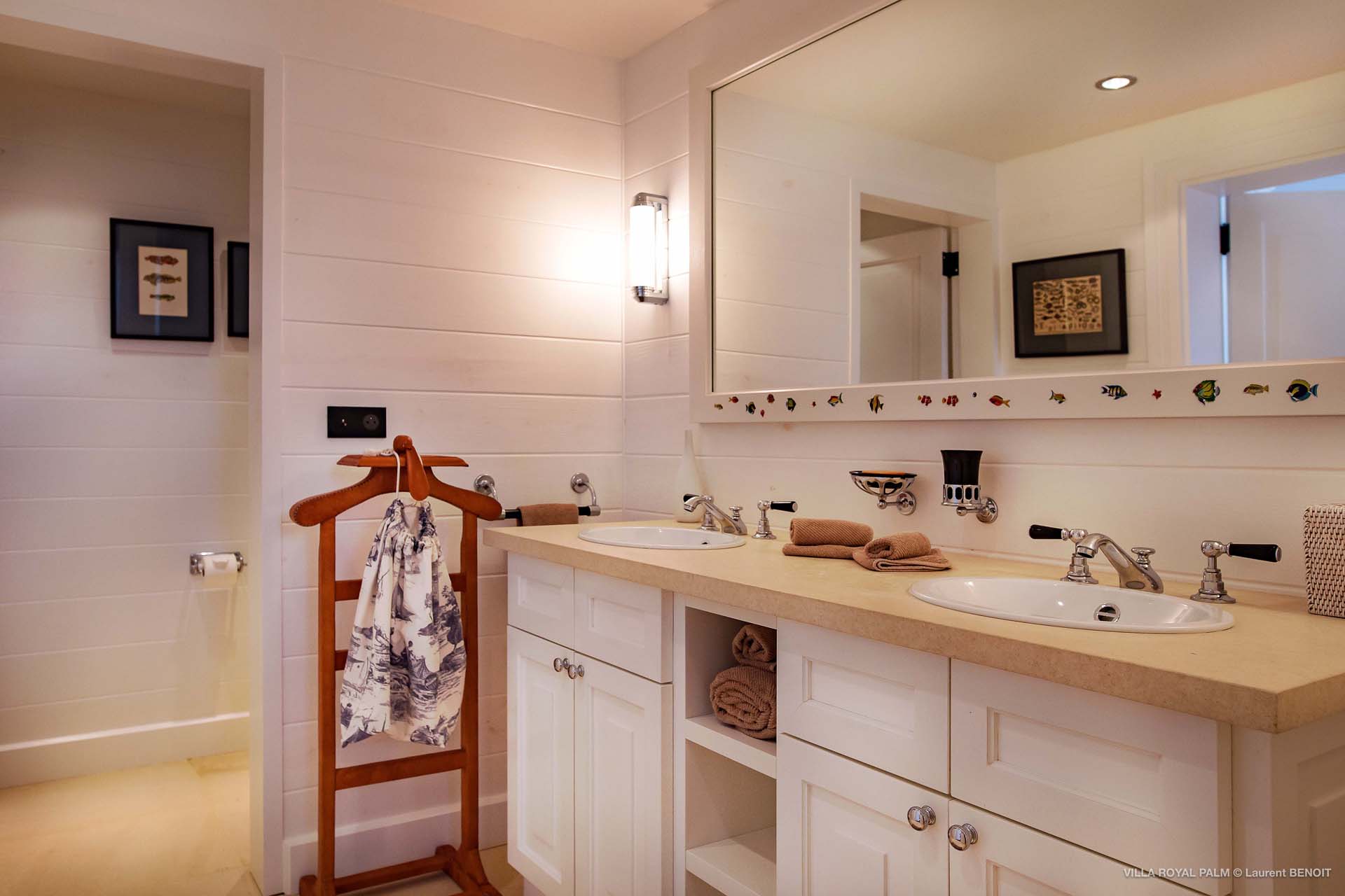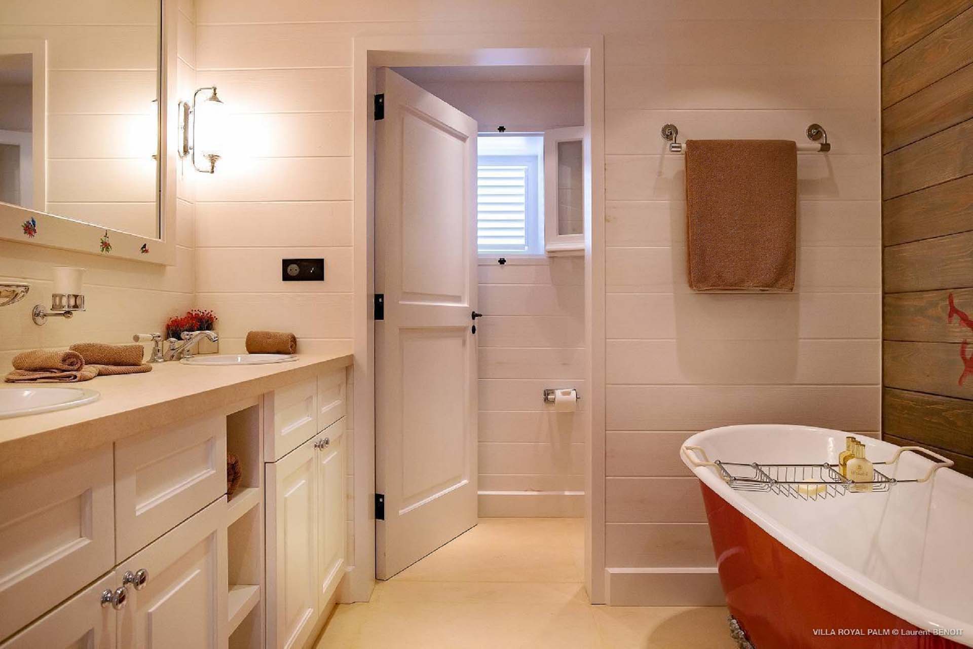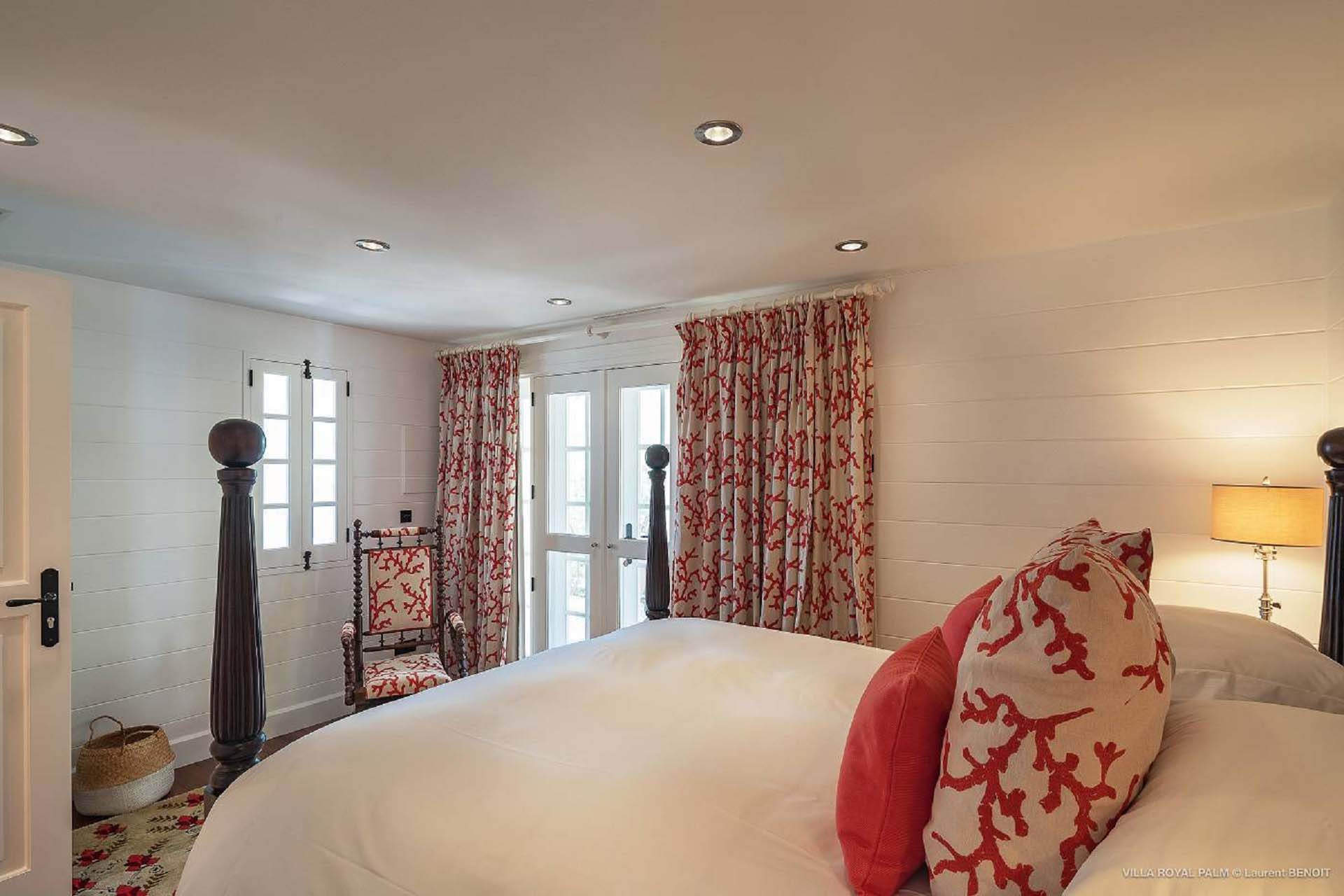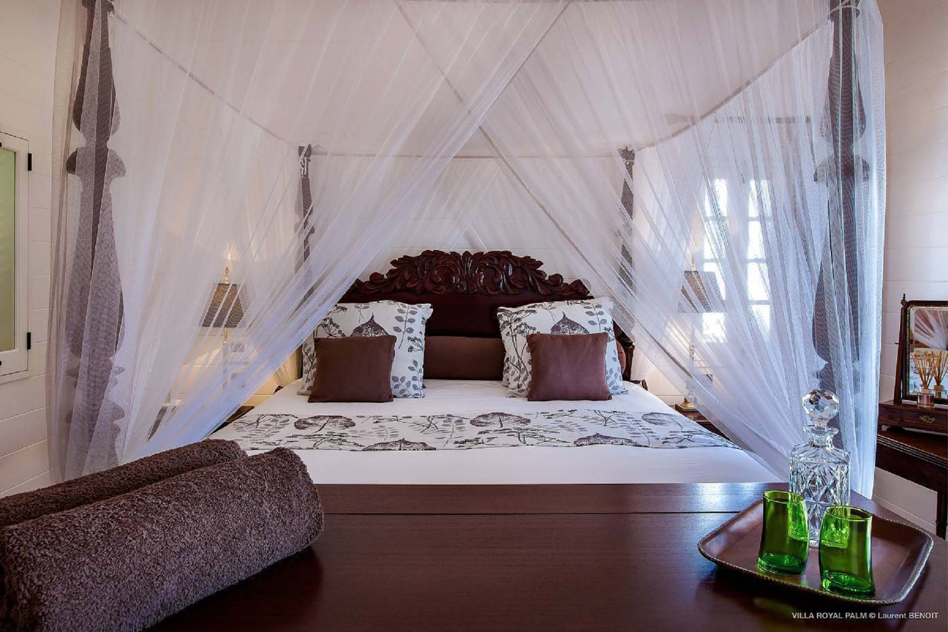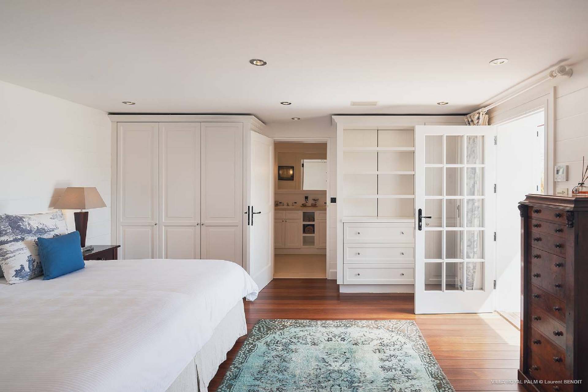 Palmier Royal Estate, (villa code: WV EPR) is a large compound, consisting of 2 large villas with a total of 11 bedrooms, 3 pools, and direct water access to the protected bay of Marigot. Palmier Royal Estate is not just a villa, it's a statement and the epitome of luxury. With fitness and massage rooms, 2 gourmet kitchens, and a beautiful terrace just above the water which allows access to the water for swimming, or to explore the nature reserve that is Marigot Bay on a paddleboard or canoe. The estate consists of 2 separate villas with annexes, built in a contemporary West Indies style, and are all connected by wooden walkways adorned by tropical gardens. One villa has 4 bedrooms, of which 2 are full masters and 2 guest rooms, the other has 7 bedrooms, 2 are master suites, 3 guest rooms, and 2 smaller rooms, for a total of 11 bedrooms. Gorgeous views can be enjoyed from almost every corner of the estate and are arguably amongst the best views of Marigot Bay. The first villa has a large, air-conditioned main room consisting of a gourmet kitchen, a living area, and a loft/TV area for kids. A large, heated pool is the centerpiece of the spacious terrace along with a pool house and covered dining area. Comfortable seating underneath a gazebo allows you to enjoy the breezes and views, while in the shade. The 2 master bedrooms are accessed from the covered terrace. Each has a Euro king-sized bed and ensuite bathroom with both shower and bathtub, dressing area, U.S. satellite, Apple TV, and Sonos. Directly below the 2 master bedrooms are 2 bedrooms each with a Euro king-sized bed, ensuite bathroom with and U.S. satellite, Apple TV, and Sonos. All the way down the path is a large deck, just above the water with direct access to the protected bay, where turtles swim freely. There's ample seating on the deck, with loungers and a large table for waterfront dining. The second villa is just a few steps above the main level of the first. This villa includes a large fitness room with a bathroom and massage room. On the main level are two separate bungalows that are fully air-conditioned. The first is the spacious living room with comfortable seating and the second is a large gourmet kitchen with a breakfast corner and a large grilling area outside with covered dining. The deck ends in a heated infinity pool and a separate gazebo. The bedrooms of the 2nd villa are in 6 separate pavilions. 2 master suites are on the lowest level, each in a separate bungalow. Both come with a Euro king-sized bed, dressing area, and an ensuite bathroom with a shower, as well as an outdoor bathroom with a shower and bathtub. A cozy balcony out front is perfect to enjoy the view. There are 3 guest bedrooms, all with Euro king-sized beds and ensuite bathrooms; and 2 smaller guest rooms are situated in a separate pavilion at street level and separated by a common area. Each room has a Euro king-sized bed, dressing area, and an ensuite bathroom with a shower, as well as a private balcony with seating. During the high season only, guests at the villa enjoy the services of a private chef and waitress (food not included), along with two maids providing daily service and turndown, seven days a week. A mini fridge is stocked with still and sparkling water for your convenience. For on-the-water adventures, guests have access to two paddle boards, two kayaks, and four life jackets. Please note: a security deposit of $10,000 is required.Please fill out the form to begin your inquiry and we will connect you with a seasoned villa rental specialist.