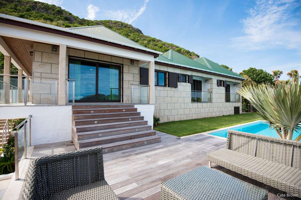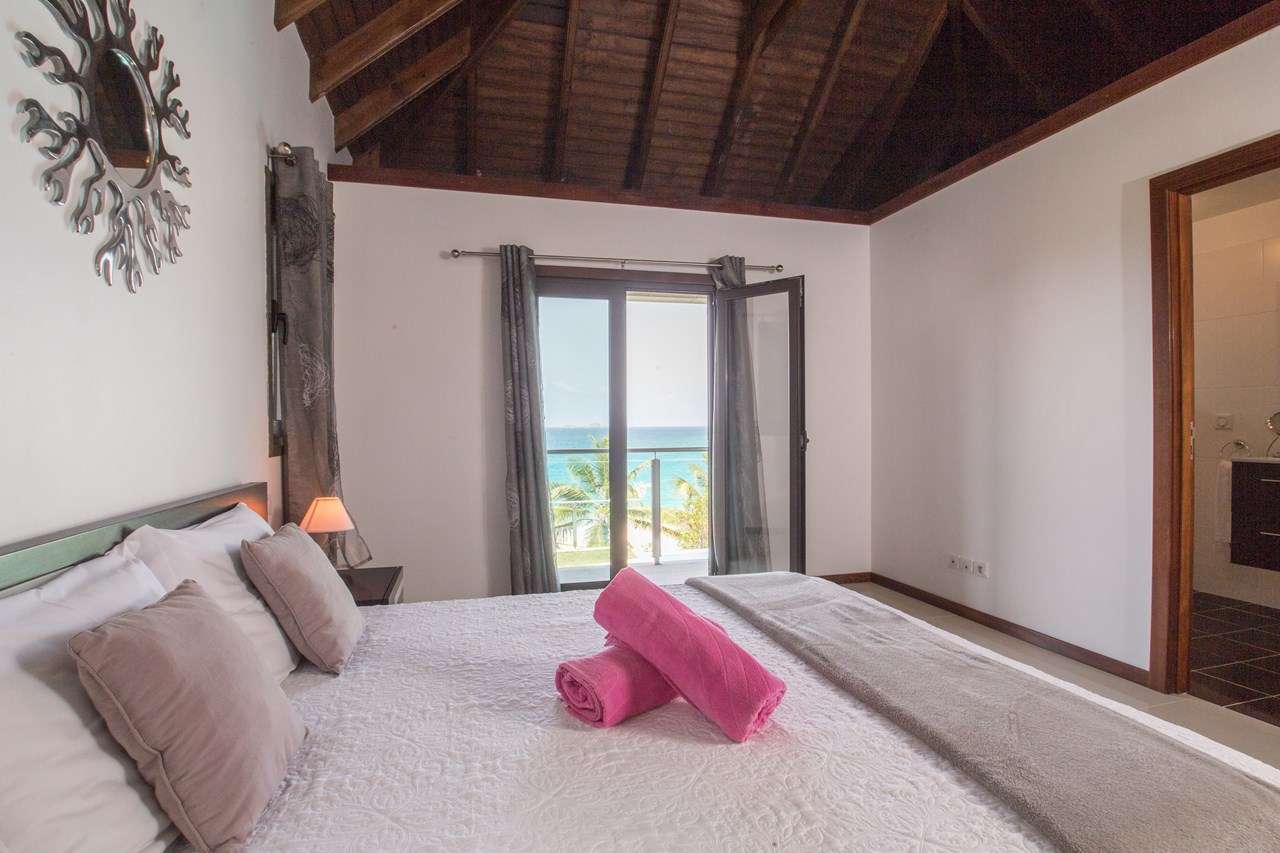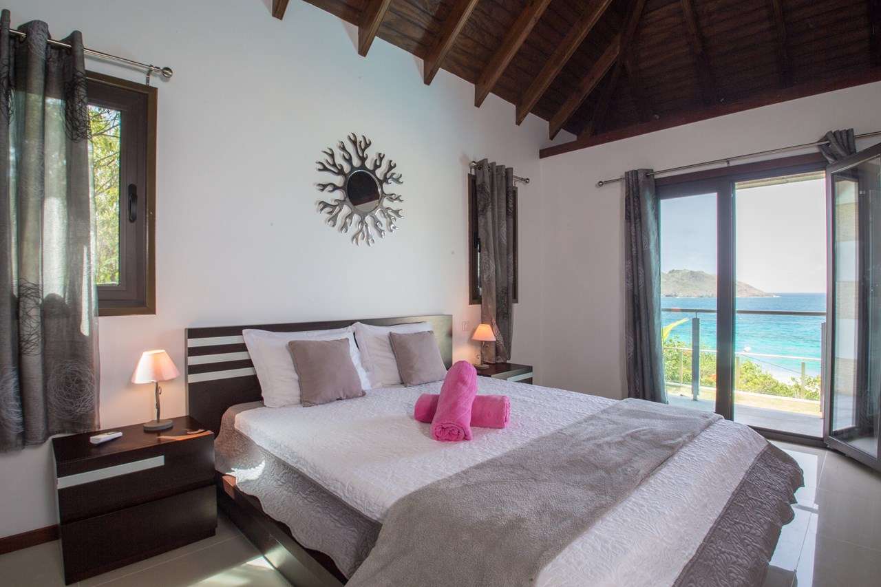 Welcome to Villa Estrela (villa code: WV ISA), a 4-bedroom villa located in Flamands within a short walk of the beach. This brand-new villa enjoys splendid views along the length of the beach, Flamands Bay, and the offshore islands of Île Toc Vers, Île Fregate, and Île Bonhomme. Inside it’s all about classic Caribbean living. Warm, mahogany tones feature heavily, while the vaulted ceilings and an open plan capture plenty of natural light. Modern furnishings, as well as a few mid-century pieces, help give the entire home a timeless feel. Relaxed and elegant, Villa Estrela is one of the finest rentals in the area. Flamands Beach is a short walk down a path, while the secluded Colombiers Beach is about a 25-minute trek. As an added bonus the restaurant at Baie des Anges hotel is within walking distance. The shops and restaurants in St-Jean are just a short drive away. A spacious and airy great room comprises the living area, dining table, and kitchen. Opening to the outdoor terrace, the entire space is washed in the salty sea breeze and enjoys great ocean views. The living room features a comfortable sofa facing a rustic, slate stone feature wall. Collapsing here at the end of a long day on the beach is a great way to unwind. A large TV also lets you kick back with your favorite film or TV series. The modern kitchen at Estrela Villa has everything you’ll need to create meals during your stay. Whether it’s a snack or gourmet dinner, the high-end appliances can handle any culinary challenge. Our concierge can even organize grocery pre-stocking or delivery, catered meals, or arrange a private chef service for a special occasion. The large, mahogany dining table is ideal for social dinners, late-night card games, or a night-cap before bed. A hallway leads from the living area to the 4 bedrooms at Villa Estrela. Each bedroom has a plush queen-sized bed and minimalist style. Two of the bedrooms overlook the ocean with a small balcony, while the other two face the back garden. Three of the bedrooms have spacious ensuite bathrooms. The fourth bedroom has a bathroom next door, which can also serve as the guest bathroom. Outside Villa Estrela, a large terrace features stunning views over the beach and Flamands Bay. In the distance, you can also see the offshore islands rising out of the ocean. A lawn with loungers surrounds the pool, a great place to relax, cool off and listen to the rustle of palms in the gentle breeze. Next to the pool is a deck area, with a comfortable lounge fabulous for cocktail hours at sunset. On the side of Estrela Villa is another elevated outdoor area. An outdoor dining table lets you enjoy meals in the open air, accompanied by the gentle sound of the nearby waves. Lounges and sunbeds here also make it a great place to relax in the gorgeous Caribbean weather. For days on the sand, just across the street is Flamands Beach. With golden sand and crystalline waters, we wouldn’t blame you for spending all day here. For something more gently sloping footpath brings you to secluded Colombier Beach. This unspoiled beach on the northwest coast of St. Barts is only accessible on foot or by boat. A handful of restaurants and shops are within walking distance along the Flamands beachfront. Even more can be found in St. Jean, an 8-minute drive, or the capital Gustavia, 10 minutes away. During the Thanksgiving and December holidays, the villa rents at full occupancy rates regardless of how many bedrooms are used.Please fill out the form to begin your inquiry and we will connect you with a seasoned villa rental specialist.