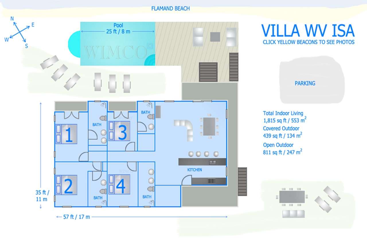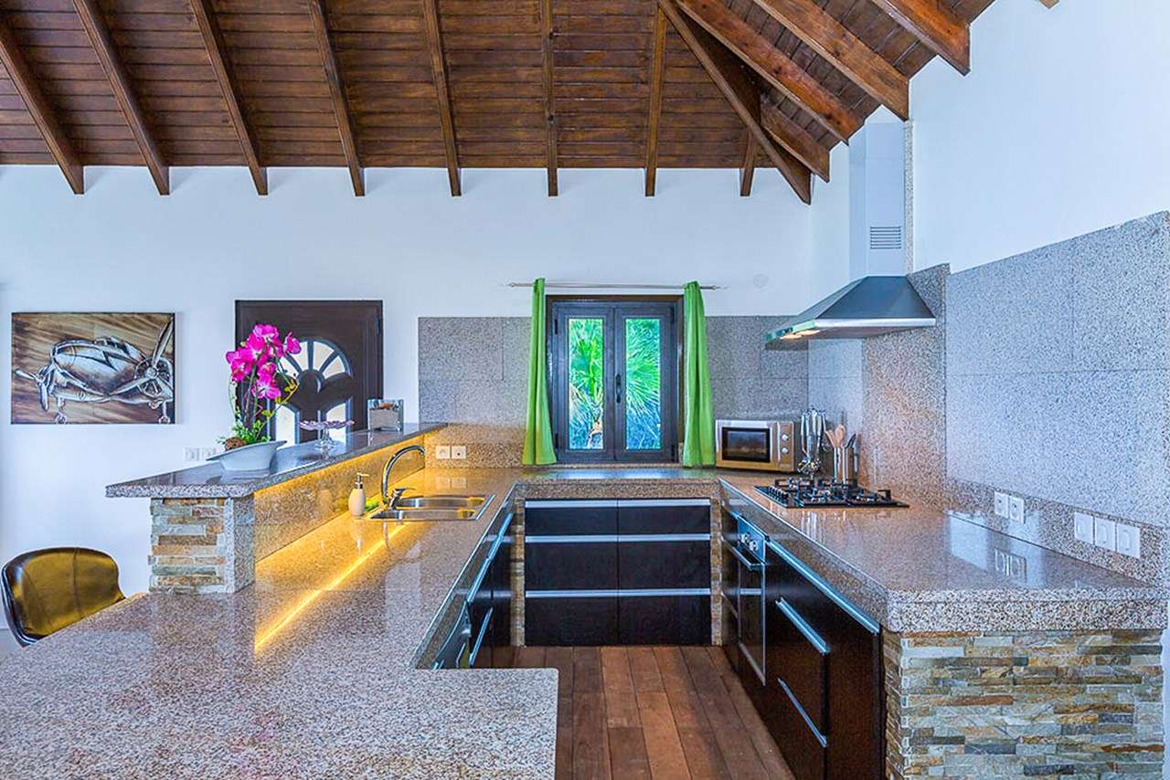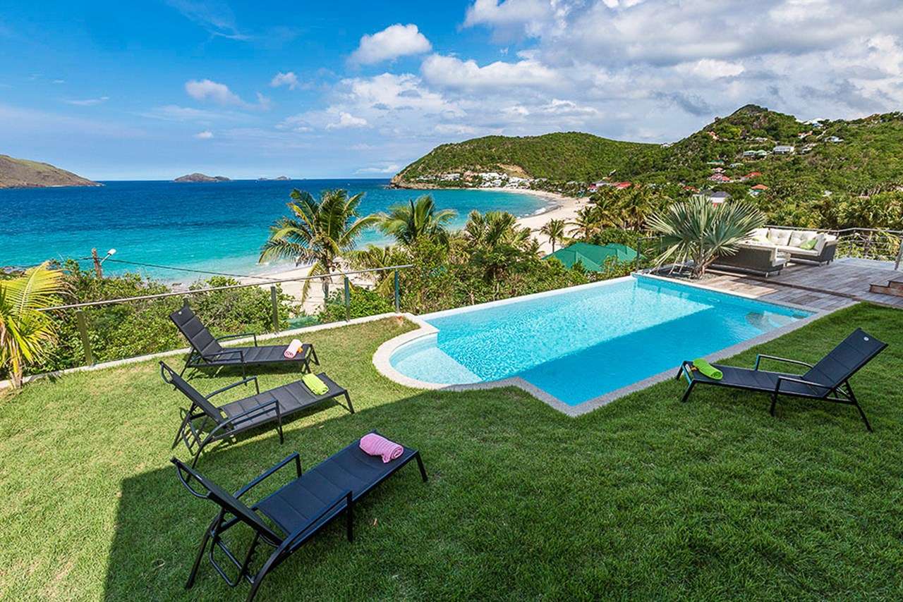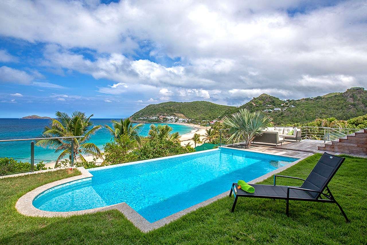 Welcome to Villa Estrela (villa code: WV ISA), a 4-bedroom villa located in Flamands within a short walk of the beach. This brand-new villa enjoys splendid views along the length of the beach, Flamands Bay, and the offshore islands of Île Toc Vers, Île Fregate, and Île Bonhomme. Inside it’s all about classic Caribbean living. Warm, mahogany tones feature heavily, while the vaulted ceilings and an open plan capture plenty of natural light. Modern furnishings, as well as a few mid-century pieces, help give the entire home a timeless feel. Relaxed and elegant, Villa Estrela is one of the finest rentals in the area. Flamands Beach is a short walk down a path, while the secluded Colombiers Beach is about a 25-minute trek. As an added bonus the restaurant at Baie des Anges hotel is within walking distance. The shops and restaurants in St-Jean are just a short drive away. A spacious and airy great room comprises the living area, dining table, and kitchen. Opening to the outdoor terrace, the entire space is washed in the salty sea breeze and enjoys great ocean views. The living room features a comfortable sofa facing a rustic, slate stone feature wall. Collapsing here at the end of a long day on the beach is a great way to unwind. A large TV also lets you kick back with your favorite film or TV series. The modern kitchen at Estrela Villa has everything you’ll need to create meals during your stay. Whether it’s a snack or gourmet dinner, the high-end appliances can handle any culinary challenge. Our concierge can even organize grocery pre-stocking or delivery, catered meals, or arrange a private chef service for a special occasion. The large, mahogany dining table is ideal for social dinners, late-night card games, or a night-cap before bed. A hallway leads from the living area to the 4 bedrooms at Villa Estrela. Each bedroom has a plush queen-sized bed and minimalist style. Two of the bedrooms overlook the ocean with a small balcony, while the other two face the back garden. Three of the bedrooms have spacious ensuite bathrooms. The fourth bedroom has a bathroom next door, which can also serve as the guest bathroom. Outside Villa Estrela, a large terrace features stunning views over the beach and Flamands Bay. In the distance, you can also see the offshore islands rising out of the ocean. A lawn with loungers surrounds the pool, a great place to relax, cool off and listen to the rustle of palms in the gentle breeze. Next to the pool is a deck area, with a comfortable lounge fabulous for cocktail hours at sunset. On the side of Estrela Villa is another elevated outdoor area. An outdoor dining table lets you enjoy meals in the open air, accompanied by the gentle sound of the nearby waves. Lounges and sunbeds here also make it a great place to relax in the gorgeous Caribbean weather. For days on the sand, just across the street is Flamands Beach. With golden sand and crystalline waters, we wouldn’t blame you for spending all day here. For something more gently sloping footpath brings you to secluded Colombier Beach. This unspoiled beach on the northwest coast of St. Barts is only accessible on foot or by boat. A handful of restaurants and shops are within walking distance along the Flamands beachfront. Even more can be found in St. Jean, an 8-minute drive, or the capital Gustavia, 10 minutes away. During the Thanksgiving and December holidays, the villa rents at full occupancy rates regardless of how many bedrooms are used.Please fill out the form to begin your inquiry and we will connect you with a seasoned villa rental specialist.