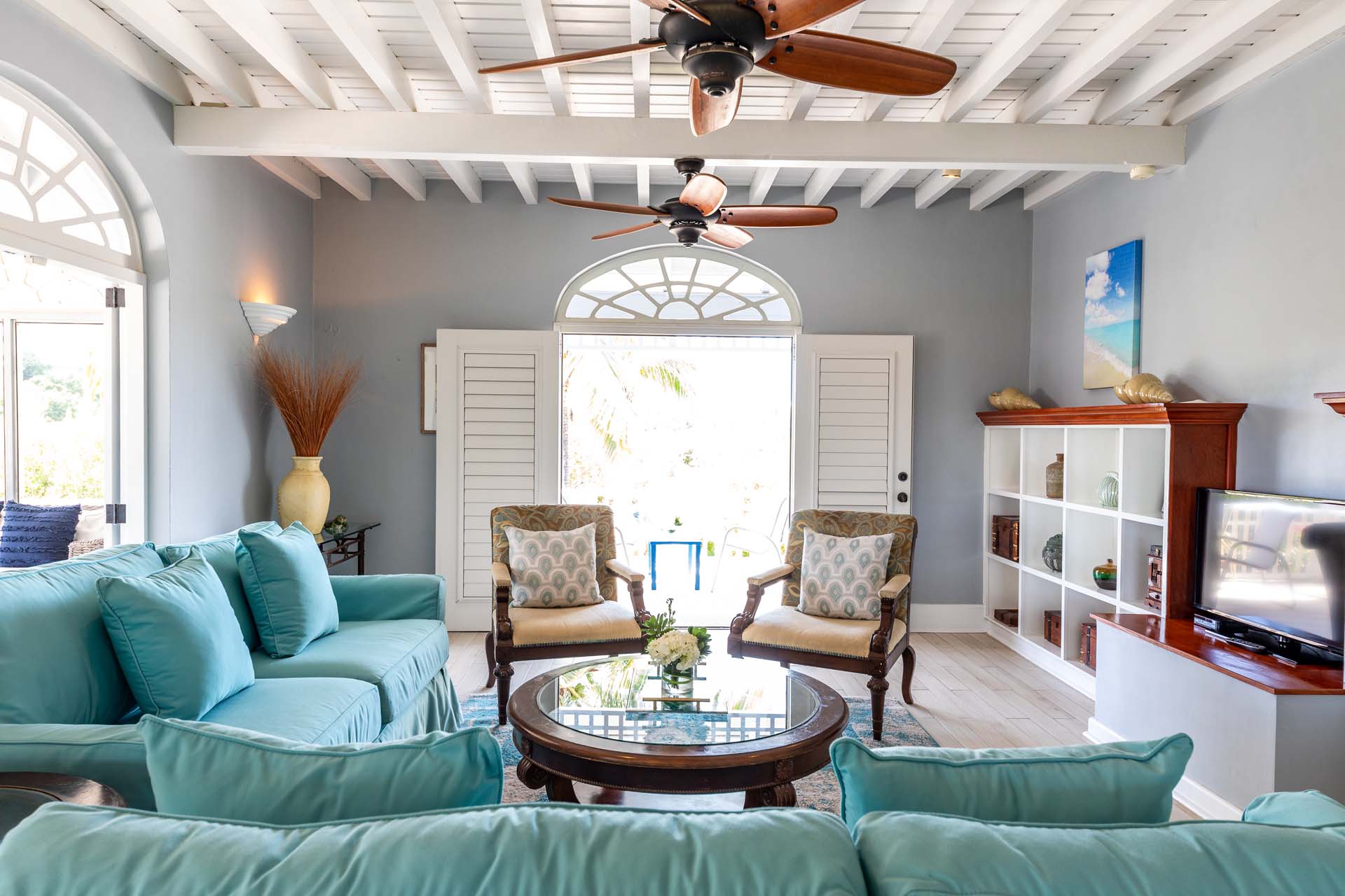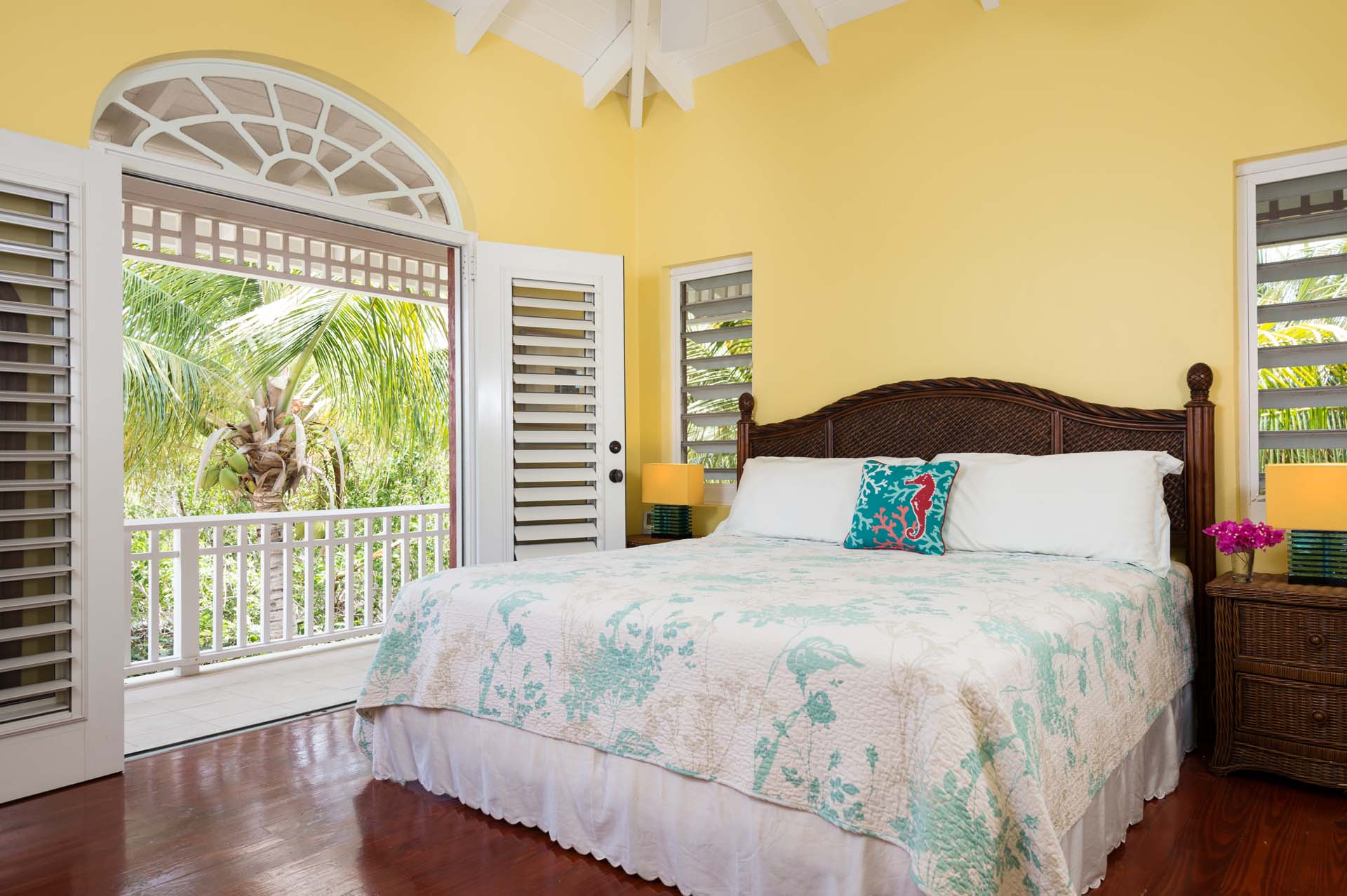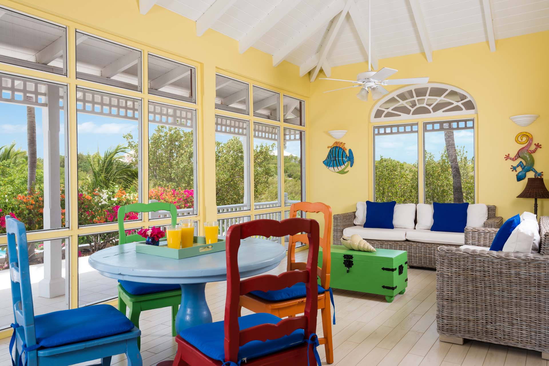 Welcome to Villa Etoile de Mer (villa code: IE ETO), a charming 4-bedroom beachfront villa in the Taylor Bay Beach area of Providenciales. Surrounded by lush palm trees and just a short walk from the beach, this villa is an ideal choice for a relaxing getaway in Turks and Caicos. Relaxing is easy in the flowing, open-plan design of Villa Etoile de Mer. Designed to be open to make the most of the gentle island breeze, it’s overflowing with bright colors and Caribbean charms.