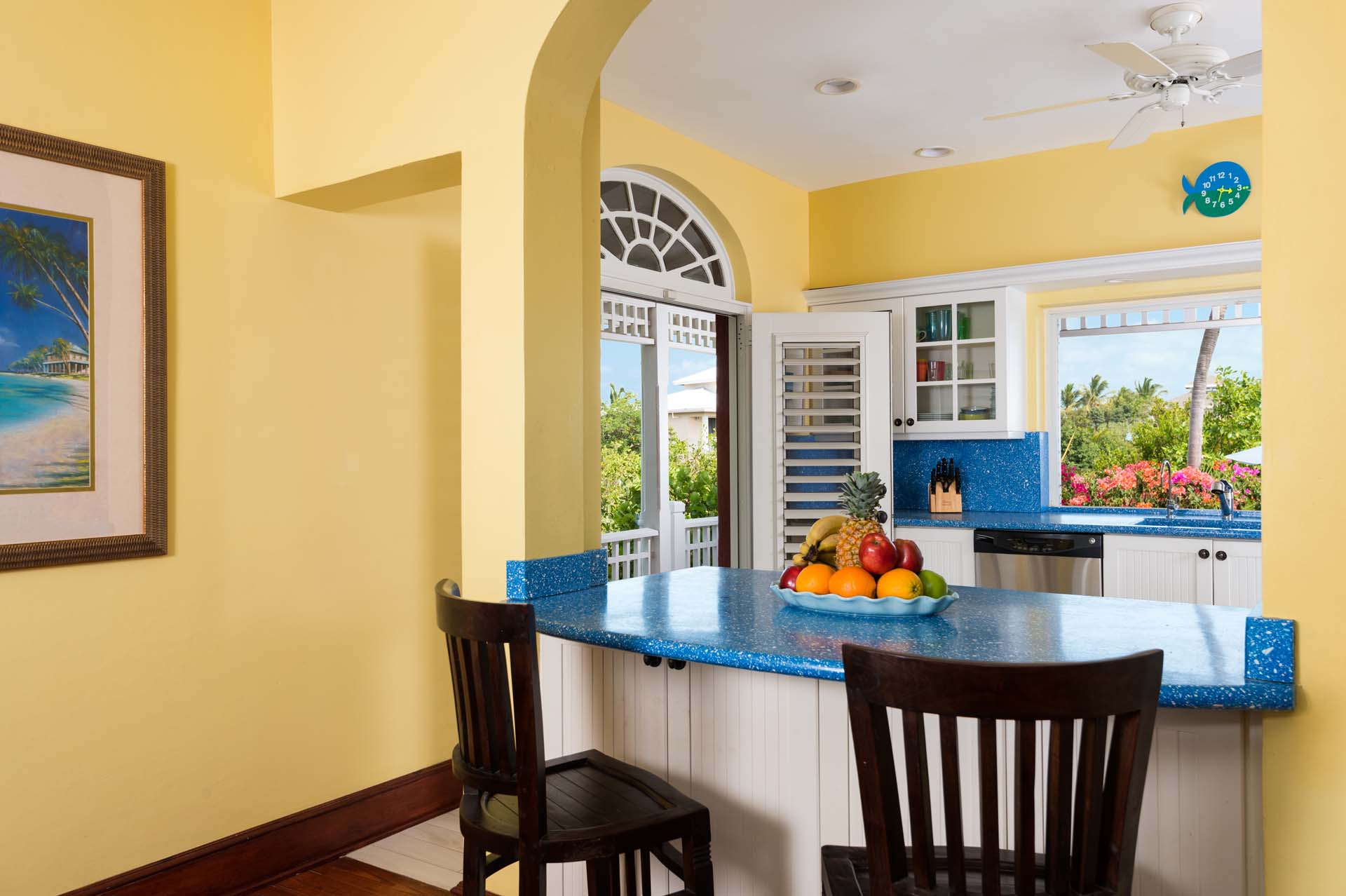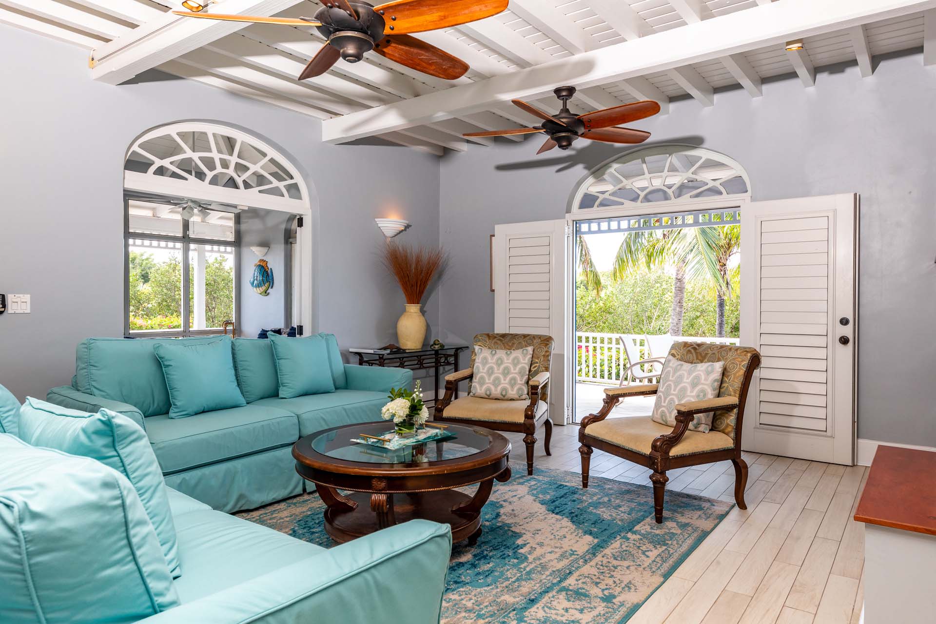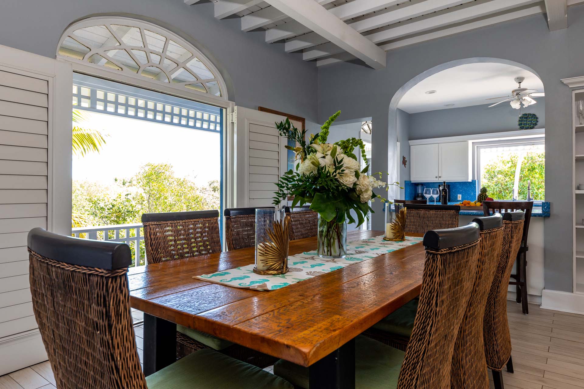 Welcome to Villa Etoile de Mer (villa code: IE ETO), a charming 4-bedroom beachfront villa in the Taylor Bay Beach area of Providenciales. Surrounded by lush palm trees and just a short walk from the beach, this villa is an ideal choice for a relaxing getaway in Turks and Caicos. Relaxing is easy in the flowing, open-plan design of Villa Etoile de Mer. Designed to be open to make the most of the gentle island breeze, it’s overflowing with bright colors and Caribbean charms.