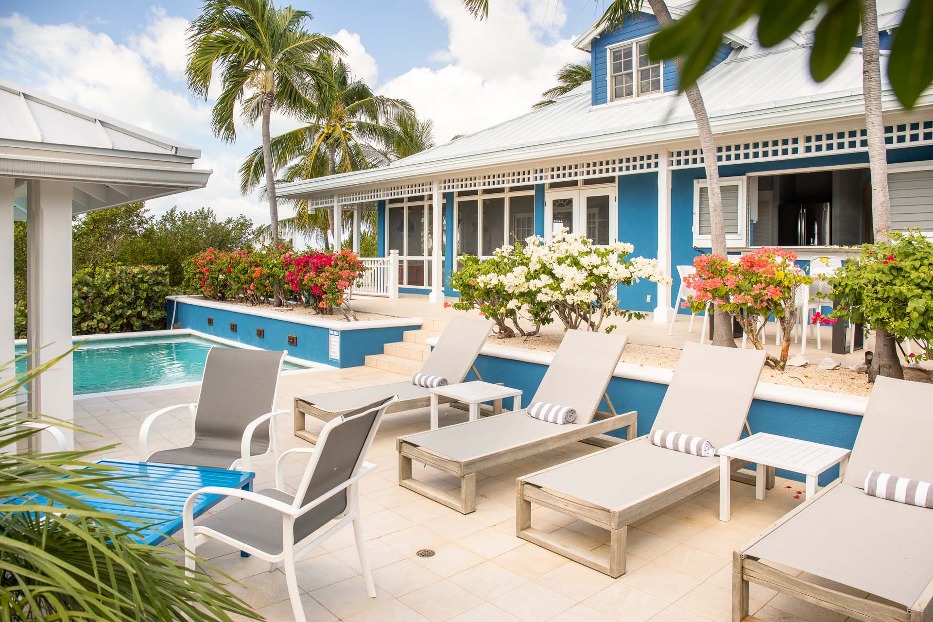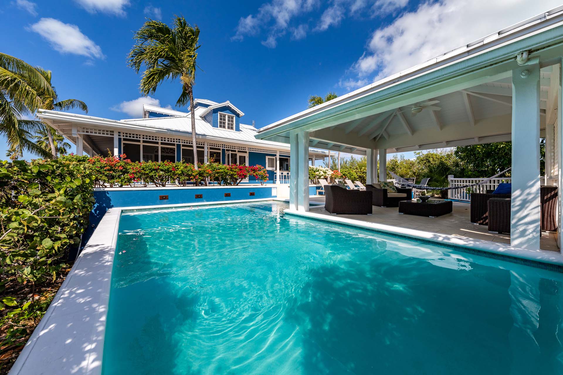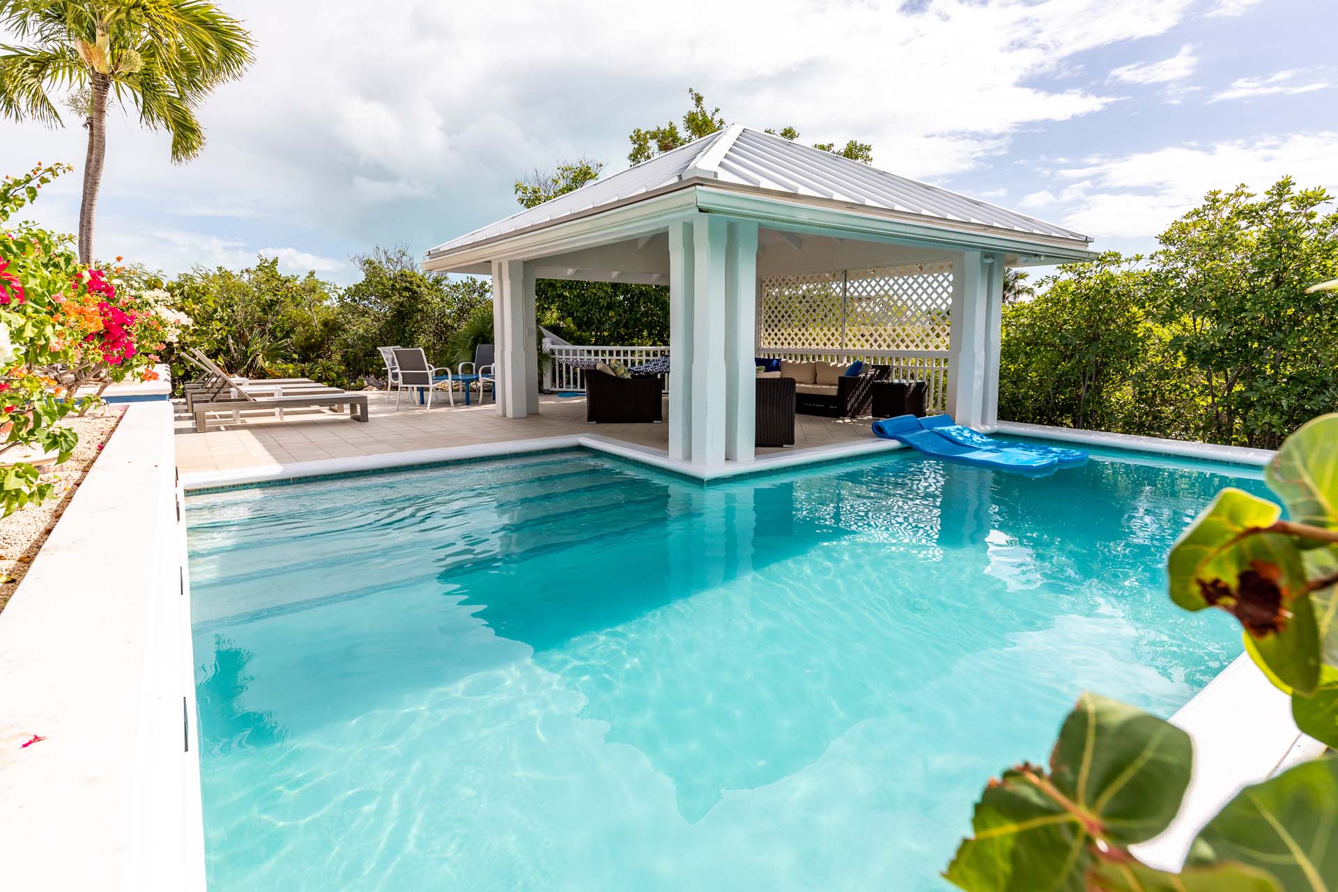 A beautiful wraparound deck outside lets you make the most of the gorgeous weather on Turks and Caicos. With plenty of space to enjoy both sun and shade, your group will love spending time here during your stay at Etoile de Mer Villa. A shaded gazebo next to the pool features a comfortable lounge, a great place for some refreshing drinks in the heat of the day. Or why not simply cool off with a dip in the water itself? Crisp and invigorating, it’s great at any time of the day. Sunbeds lining the water let you dry off, work on your tan, or curl up with your favorite book. A short walk away are the soft sands of Taylor Bay beach, offering plenty of opportunities to swim, snorkel, or kayak. Scrunching the soft sand between your toes is divine, encouraging you to take a long walk along the shore or simply sit back and admire the rosy island sunset.