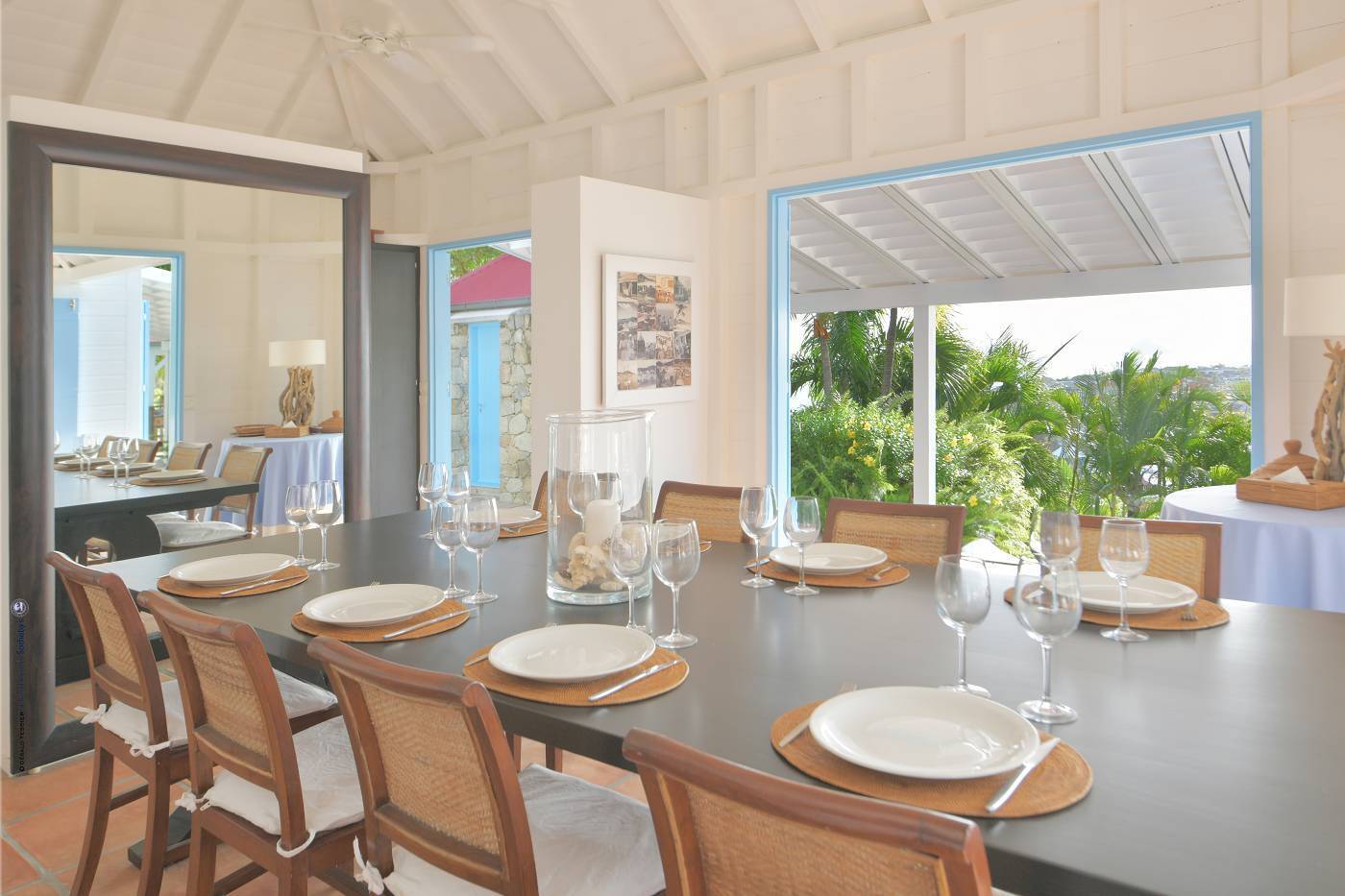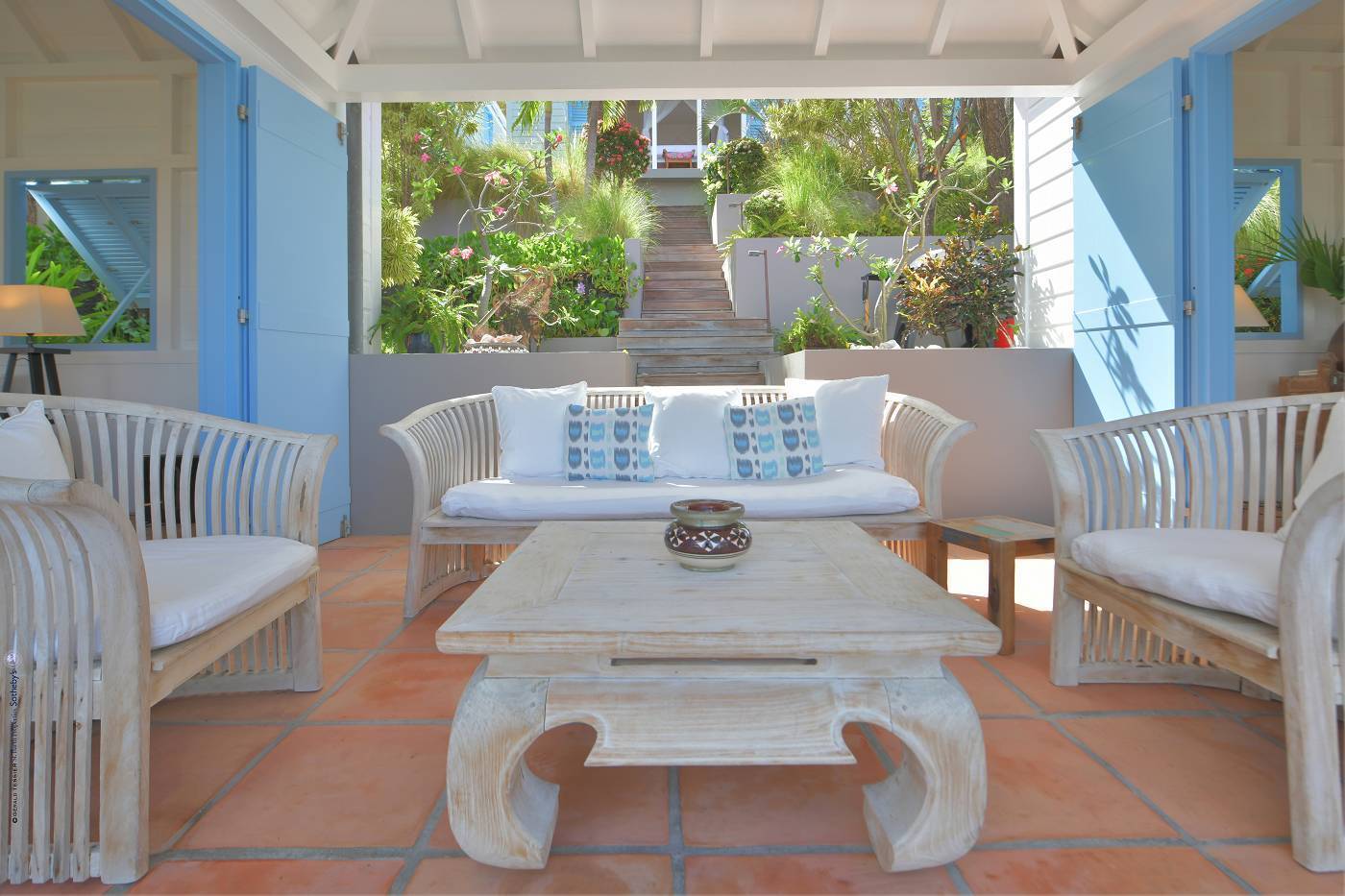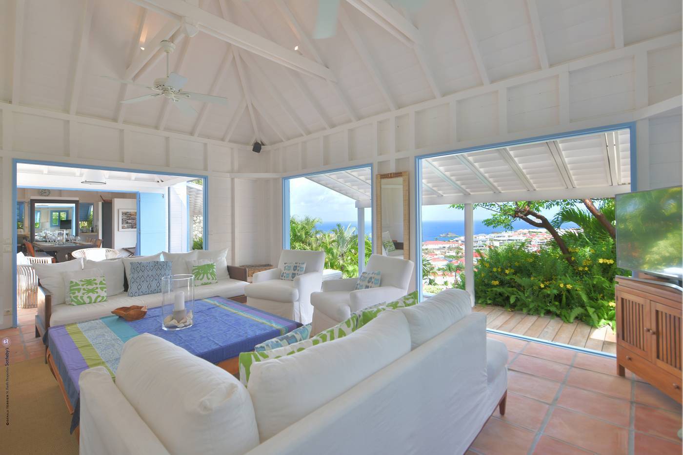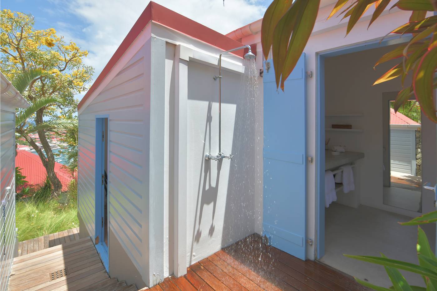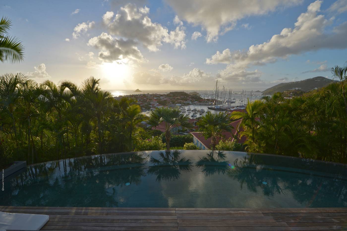 Castaway to Villa Fabrizia (villa code: WV FAB), a magnificent 8-bedroom villa located in Gustavia, St. Barts. This hillside villa offers panoramic views of the harbor and spectacular sunsets, all within a short walk of restaurants, shopping, and nightlife. Bright, colorful, and luxurious, this property is all about Caribbean chic. Casual yet elegant décor adds tropical touches to each room, connected with a breezy open-plan design. Split between a series of Creole-style pavilions, Villa Fabrizia is a gorgeous mix of comfortable interiors, lush gardens, and sunny terraces. Located in the hills above the capital city, Villa Fabrizia provides easy access to the boutiques, restaurants, and nightlife of Gustavia. Shell Beach is just a short walk away, while Gouverneur Beach is a 5-minute drive. The living spaces at Villa Fabrizia are split across a series of pavilions on a hillside, all open to outdoor terraces. On the middle level of the property is the main pavilion, with the living room on one side and the kitchen and dining room on the other. The living room has comfortable sofas and vibrant pops of color. The doors open to the harbor views and ocean breeze, making this a great spot to relax with friends and family. If you’re after some quiet time, in a separate pavilion is the villa’s library, with a cozy sofa and a great selection of books. The modern kitchen at Villa Fabrizia is well-equipped to handle any culinary challenge thrown its way. Our concierge can organize grocery pre-stocking or delivery, catered meals, or arrange private chef service for a special occasion. When it’s time to dine, all that’s left to do is to choose where. An indoor dining area next to the kitchen is a fantastic choice, while outside a dining gazebo offers a chance for open-air meals. Enjoying dinner with the twinkling lights of Gustavia Harbor below is a fabulous way to make the most of your vacation. There’s a total of 8 bedrooms at Villa Fabrizia, spread out in pavilions across the upper and lower levels. Dual staircases (approximately 24 steps) lead you to the upper level, where there are four bedrooms. All of these bedrooms feature double beds. Four more bedrooms are located on the lower level (approximately 44 steps). Two bedrooms have double beds while the third has twin beds. These bedrooms feature their own furnished terrace overlooking the Caribbean. The fourth room has 6 twin beds, a great option for kids. On the main level, a gorgeous boardwalk surrounds the inviting infinity pool. Steps leading down towards the water each have a comfortable sunbed, ideal for soaking up the island rays after a refreshing swim. From here, the views over Gustavia are amazing. As the sun starts to set, a covered lounge area between the living room and kitchen is a fabulous spot to admire the sunset. In the distance, you can see the islands of Saba, St. Kitts, and St. Eustatius twinkle to life. For days on the sand, the popular Shell Beach is a 5-minute walk away. Jumping in the car lets you explore the rest of St. Bart’s beaches with ease. On the south side of the island is Gouverneur Beach, a remote stretch of pristine sand just 5 minutes away by car. On the north side is St. Jean, where beach bars and restaurants line the water. During the December holidays, the villa rents at the full occupancy rate regardless of how many bedrooms are used. * Please note: Villa Fabrizia has numerous steps leading to the bedrooms so please be aware if there are young kids or people with mobility issues in your party.Please fill out the form to begin your inquiry and we will connect you with a seasoned villa rental specialist.
