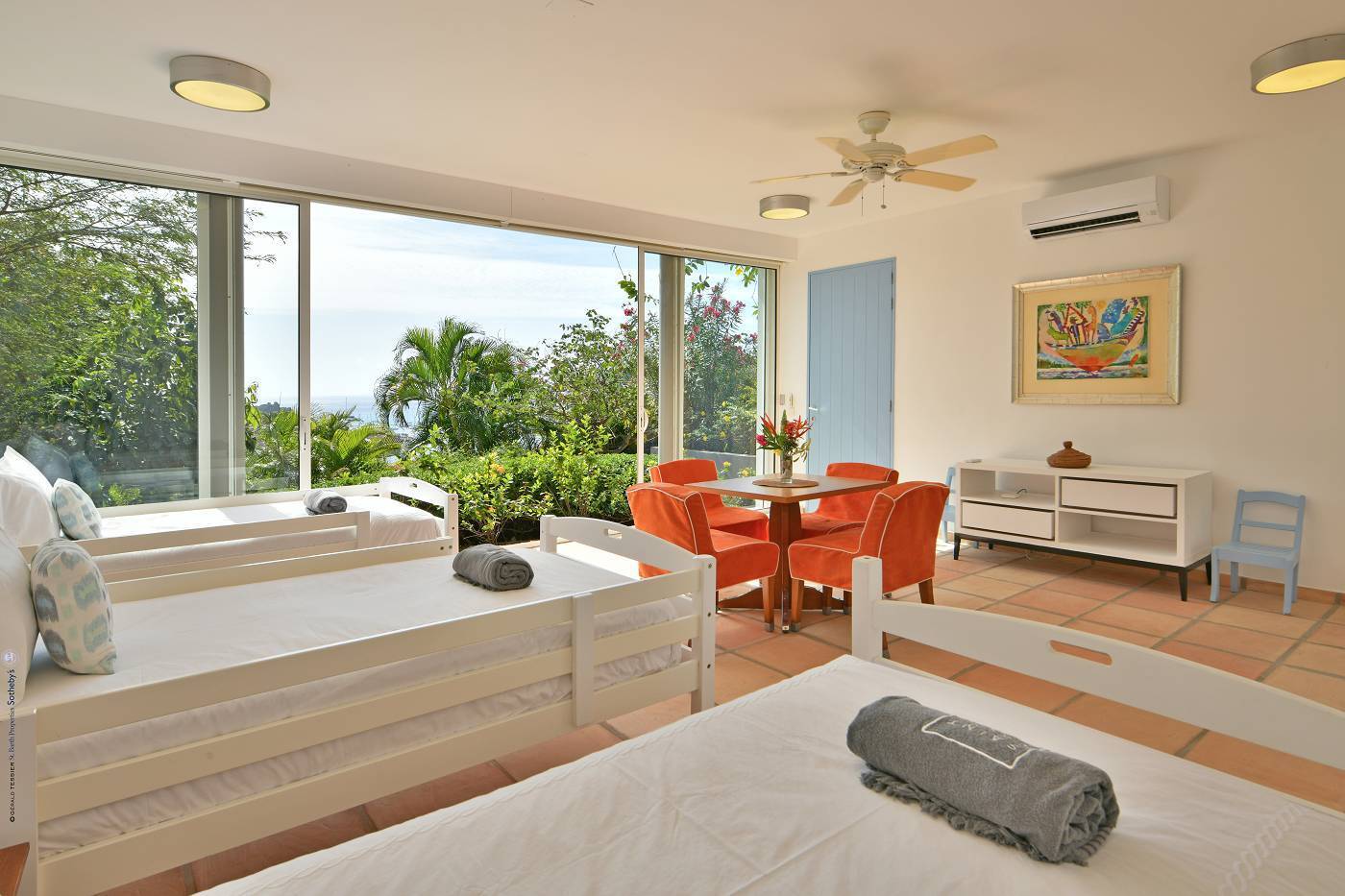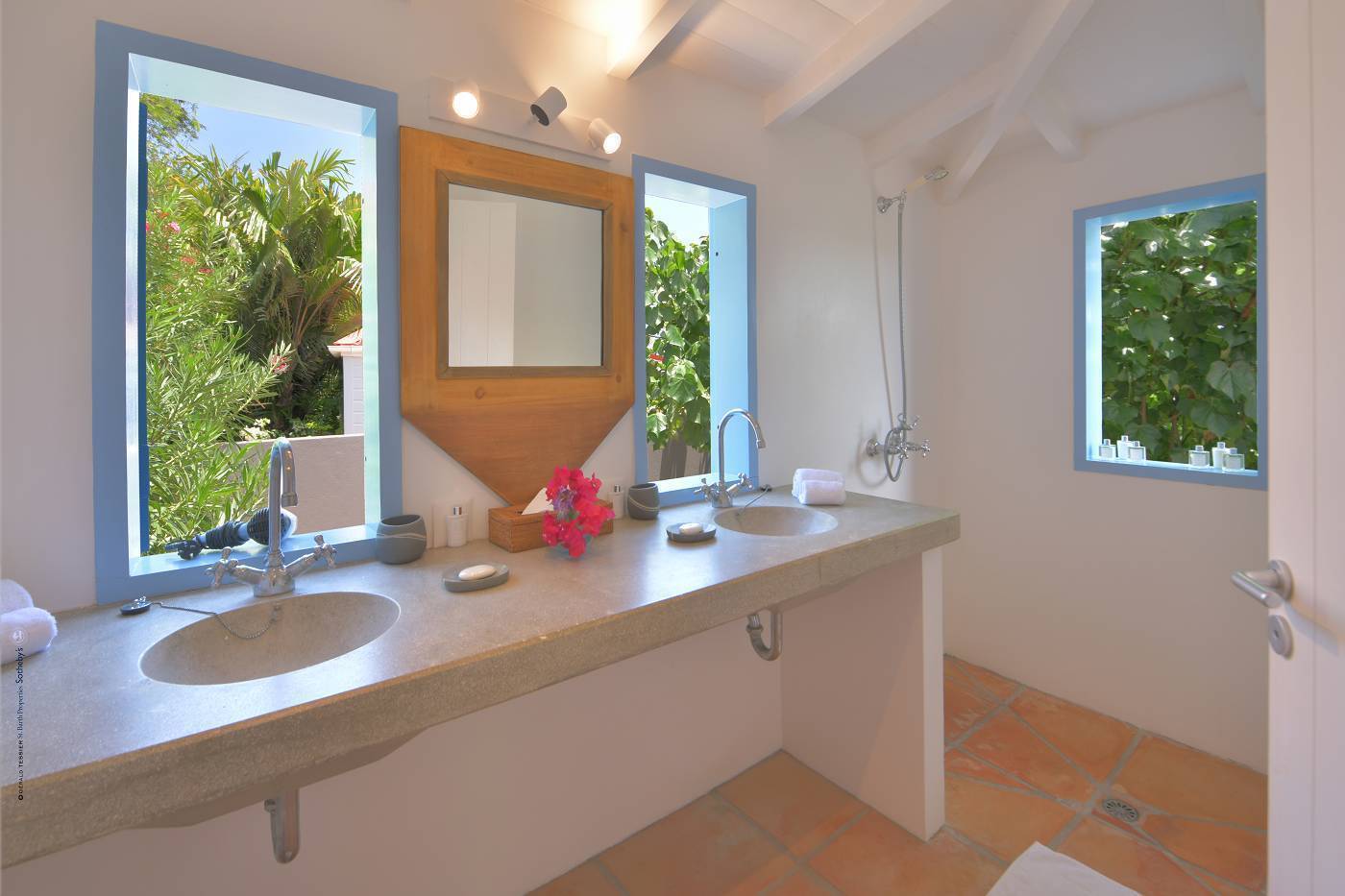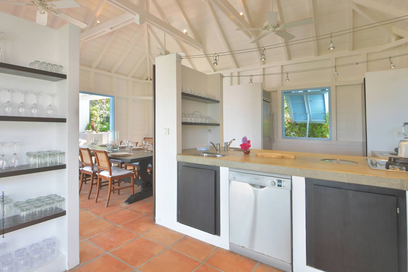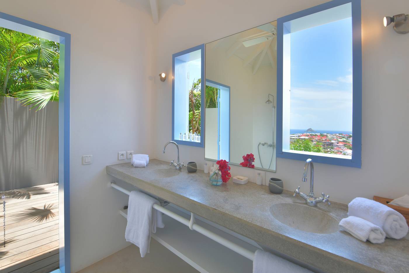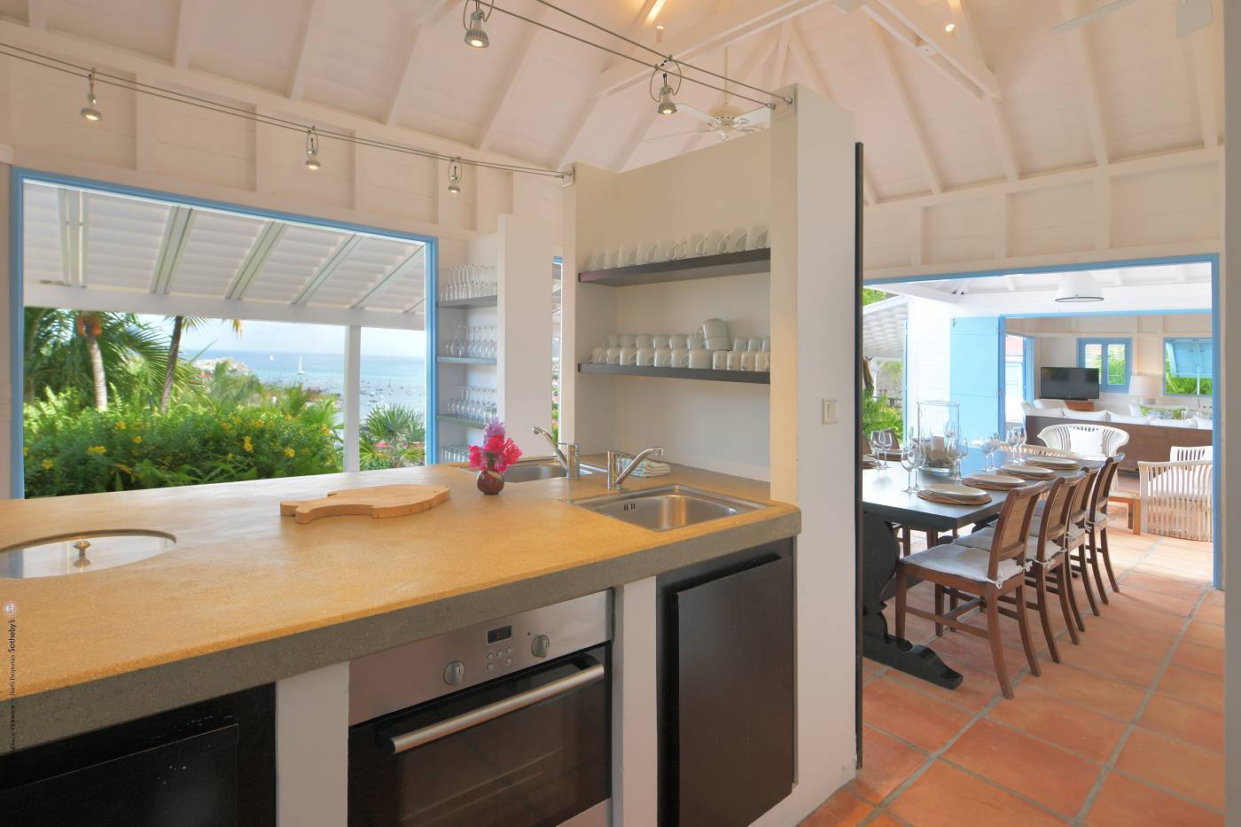 Castaway to Villa Fabrizia (villa code: WV FAB), a magnificent 8-bedroom villa located in Gustavia, St. Barts. This hillside villa offers panoramic views of the harbor and spectacular sunsets, all within a short walk of restaurants, shopping, and nightlife. Bright, colorful, and luxurious, this property is all about Caribbean chic. Casual yet elegant décor adds tropical touches to each room, connected with a breezy open-plan design. Split between a series of Creole-style pavilions, Villa Fabrizia is a gorgeous mix of comfortable interiors, lush gardens, and sunny terraces. Located in the hills above the capital city, Villa Fabrizia provides easy access to the boutiques, restaurants, and nightlife of Gustavia. Shell Beach is just a short walk away, while Gouverneur Beach is a 5-minute drive. The living spaces at Villa Fabrizia are split across a series of pavilions on a hillside, all open to outdoor terraces. On the middle level of the property is the main pavilion, with the living room on one side and the kitchen and dining room on the other. The living room has comfortable sofas and vibrant pops of color. The doors open to the harbor views and ocean breeze, making this a great spot to relax with friends and family. If you’re after some quiet time, in a separate pavilion is the villa’s library, with a cozy sofa and a great selection of books. The modern kitchen at Villa Fabrizia is well-equipped to handle any culinary challenge thrown its way. Our concierge can organize grocery pre-stocking or delivery, catered meals, or arrange private chef service for a special occasion. When it’s time to dine, all that’s left to do is to choose where. An indoor dining area next to the kitchen is a fantastic choice, while outside a dining gazebo offers a chance for open-air meals. Enjoying dinner with the twinkling lights of Gustavia Harbor below is a fabulous way to make the most of your vacation. There’s a total of 8 bedrooms at Villa Fabrizia, spread out in pavilions across the upper and lower levels. Dual staircases (approximately 24 steps) lead you to the upper level, where there are four bedrooms. All of these bedrooms feature double beds. Four more bedrooms are located on the lower level (approximately 44 steps). Two bedrooms have double beds while the third has twin beds. These bedrooms feature their own furnished terrace overlooking the Caribbean. The fourth room has 6 twin beds, a great option for kids. On the main level, a gorgeous boardwalk surrounds the inviting infinity pool. Steps leading down towards the water each have a comfortable sunbed, ideal for soaking up the island rays after a refreshing swim. From here, the views over Gustavia are amazing. As the sun starts to set, a covered lounge area between the living room and kitchen is a fabulous spot to admire the sunset. In the distance, you can see the islands of Saba, St. Kitts, and St. Eustatius twinkle to life. For days on the sand, the popular Shell Beach is a 5-minute walk away. Jumping in the car lets you explore the rest of St. Bart’s beaches with ease. On the south side of the island is Gouverneur Beach, a remote stretch of pristine sand just 5 minutes away by car. On the north side is St. Jean, where beach bars and restaurants line the water. During the December holidays, the villa rents at the full occupancy rate regardless of how many bedrooms are used. * Please note: Villa Fabrizia has numerous steps leading to the bedrooms so please be aware if there are young kids or people with mobility issues in your party.Please fill out the form to begin your inquiry and we will connect you with a seasoned villa rental specialist.