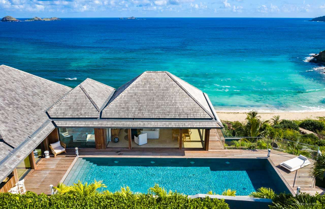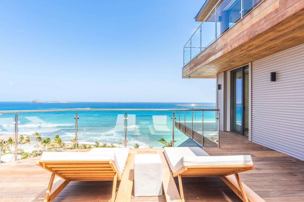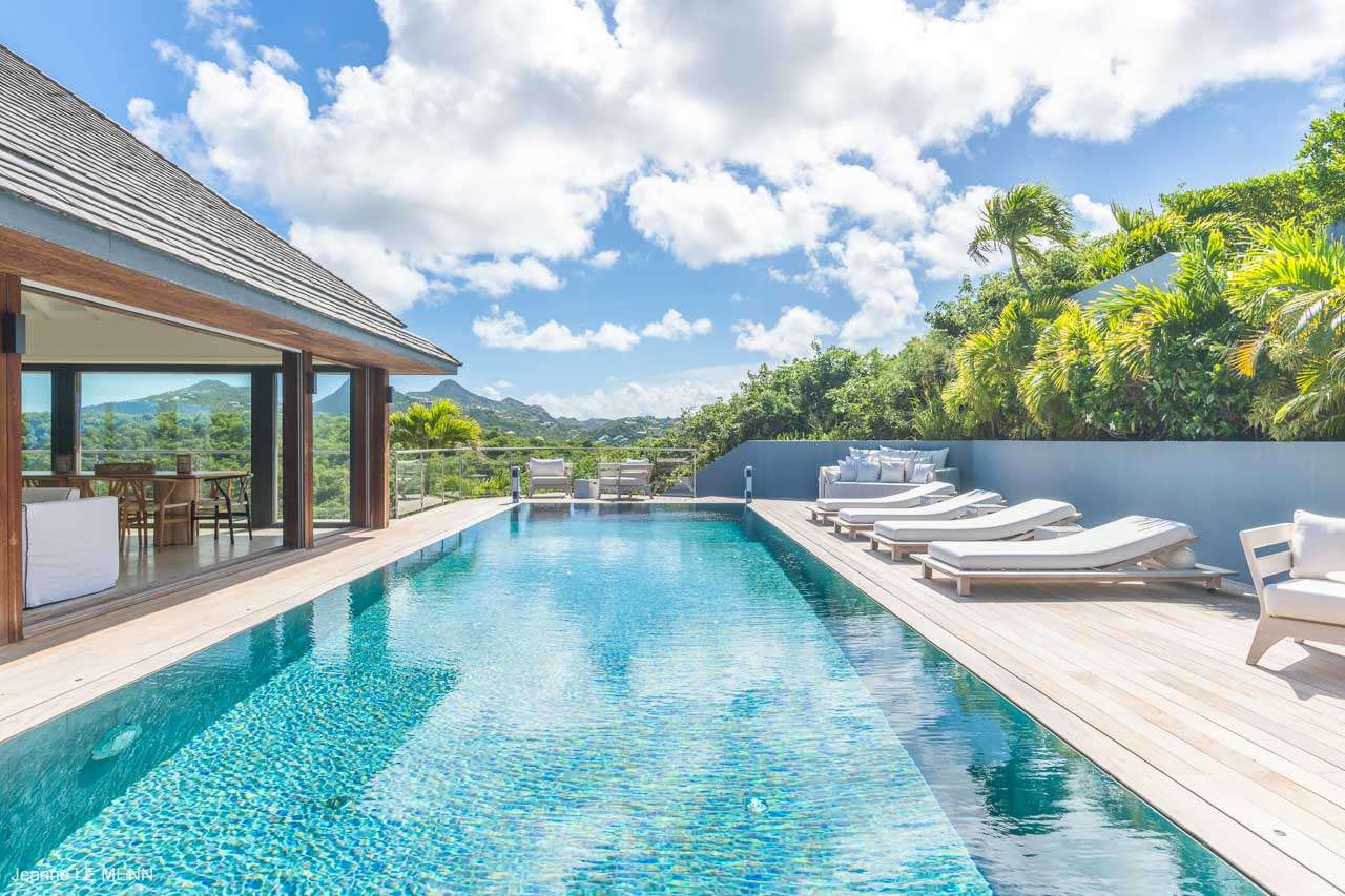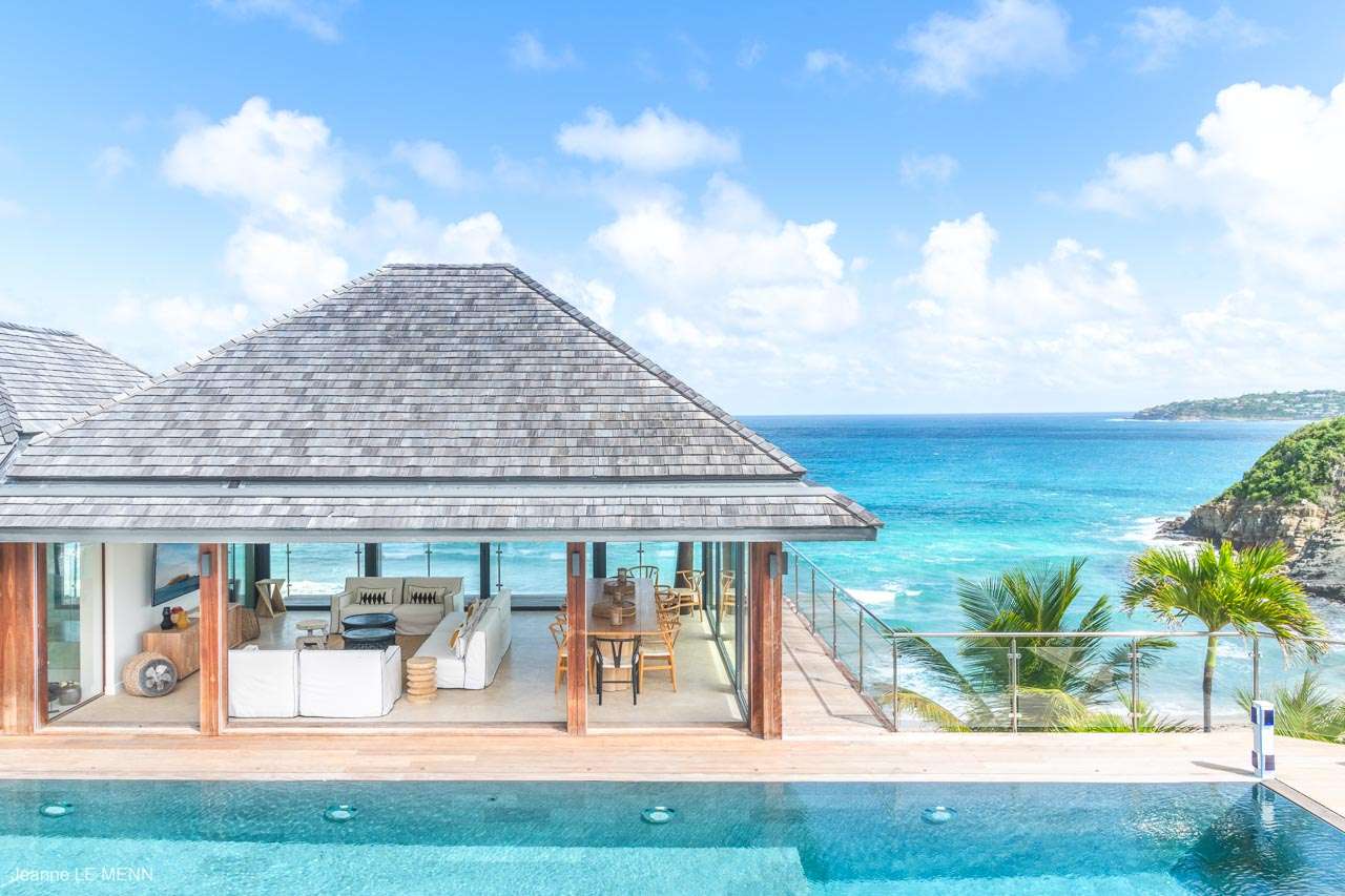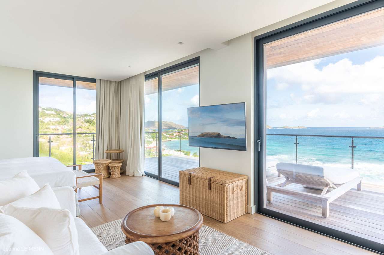 Villa Firefly, (villa code: WV FLY) is a 7-bedroom villa located in Anse des Cayes. This brand-new villa perched above the beach offers panoramic ocean views. The living room connects to the well-equipped kitchen and has ample seating. The dining room also serves as an annex living room with seating around a TV. The dining room, which has floor-to-ceiling glass doors, can be fully opened or closed off. The large gourmet kitchen has a bar, which leads out to the pool. Behind the living room is a separate bungalow with a master bedroom, which has a king-size bed, dressing area, an ensuite bathroom with an outdoor shower, and a small private terrace with seating. In between the living and dining rooms is a stairway descending to the other bedrooms, which are located on 2 different levels. The middle level has 2 spacious bedrooms mirrored across a hallway, each with a king-size bed, dressing area, and bathroom with an indoor shower, which has a sliding door to the outside. On the lowest level are 4 smaller bedrooms with king-size bed and a small bathroom with an indoor shower. The dining room protects the large pool from the prevailing winds. A deck with loungers surrounds the pool, making this an ideal spot for sunbathing. Due to the abundant use of glass, views are visible from the living and dining areas, stairs, and bedrooms. Two manicured lawns adorn the grounds. During the December holidays, the villa rents at full occupancy rates regardless of how many bedrooms are used. * Please note - No arrivals/departures on the same day.Please fill out the form to begin your inquiry and we will connect you with a seasoned villa rental specialist.
