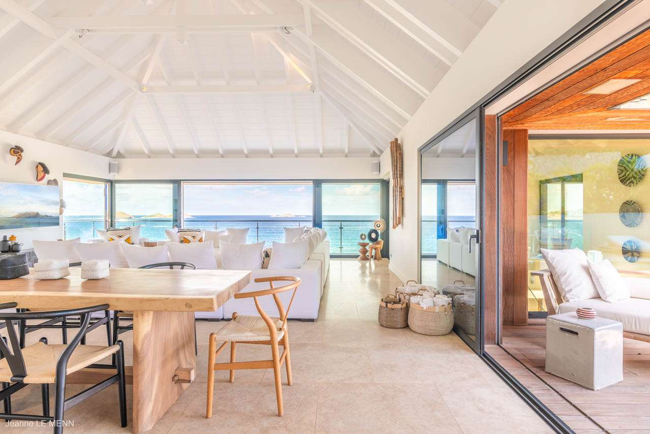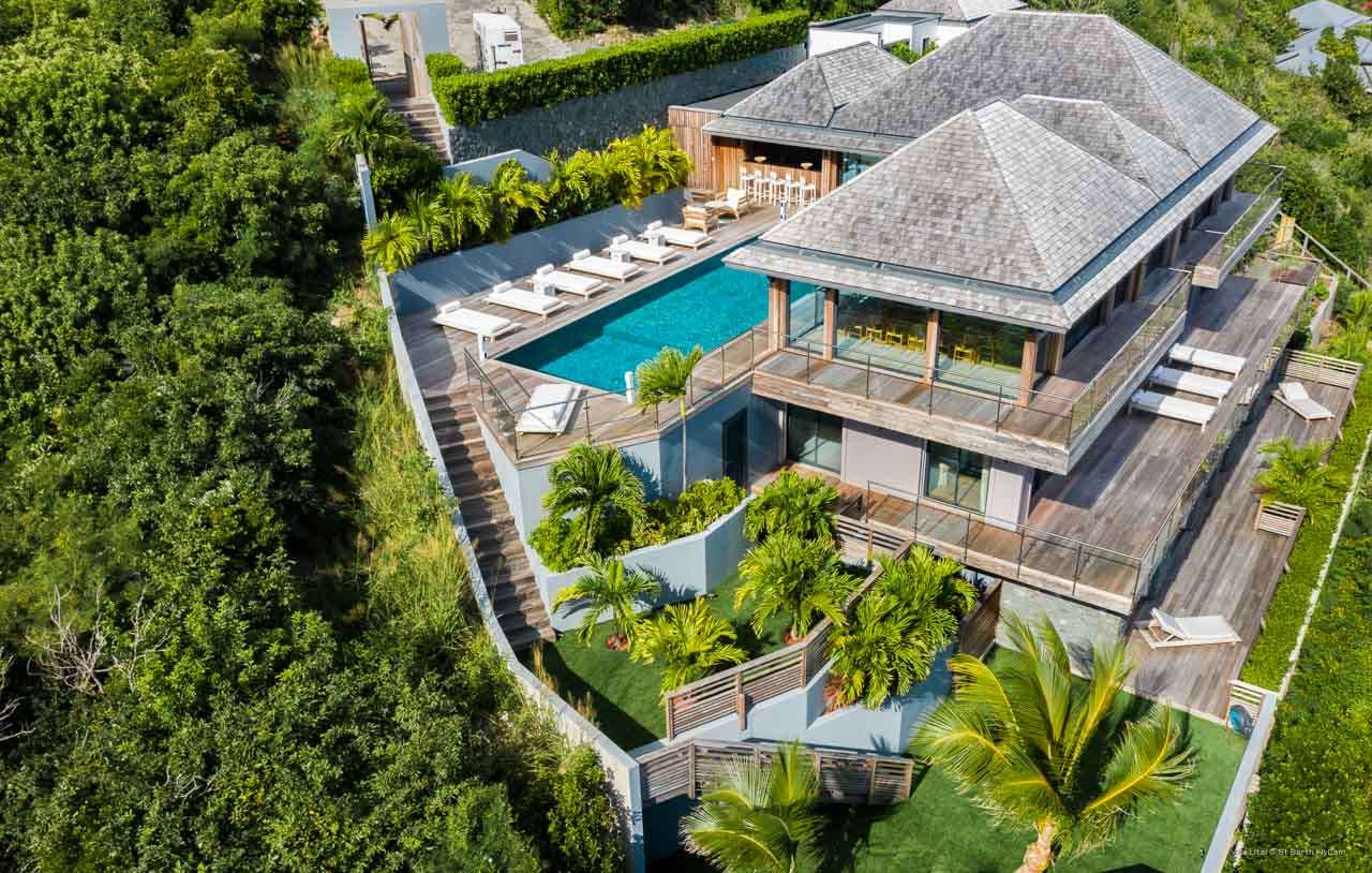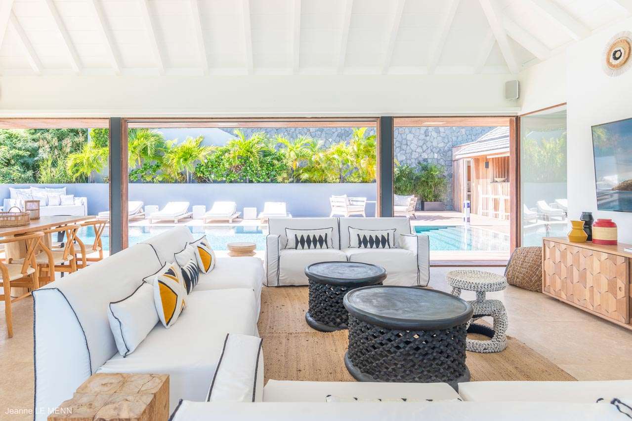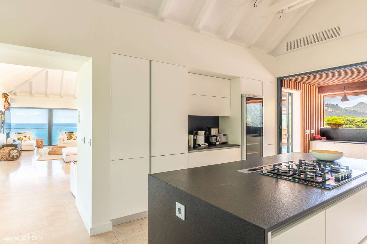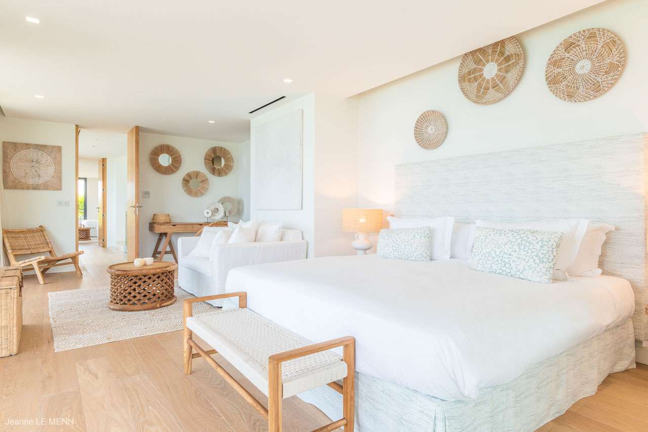 Villa Firefly, (villa code: WV FLY) is a 7-bedroom villa located in Anse des Cayes. This brand-new villa perched above the beach offers panoramic ocean views. The living room connects to the well-equipped kitchen and has ample seating. The dining room also serves as an annex living room with seating around a TV. The dining room, which has floor-to-ceiling glass doors, can be fully opened or closed off. The large gourmet kitchen has a bar, which leads out to the pool. Behind the living room is a separate bungalow with a master bedroom, which has a king-size bed, dressing area, an ensuite bathroom with an outdoor shower, and a small private terrace with seating. In between the living and dining rooms is a stairway descending to the other bedrooms, which are located on 2 different levels. The middle level has 2 spacious bedrooms mirrored across a hallway, each with a king-size bed, dressing area, and bathroom with an indoor shower, which has a sliding door to the outside. On the lowest level are 4 smaller bedrooms with king-size bed and a small bathroom with an indoor shower. The dining room protects the large pool from the prevailing winds. A deck with loungers surrounds the pool, making this an ideal spot for sunbathing. Due to the abundant use of glass, views are visible from the living and dining areas, stairs, and bedrooms. Two manicured lawns adorn the grounds. During the December holidays, the villa rents at full occupancy rates regardless of how many bedrooms are used. * Please note - No arrivals/departures on the same day.Please fill out the form to begin your inquiry and we will connect you with a seasoned villa rental specialist.