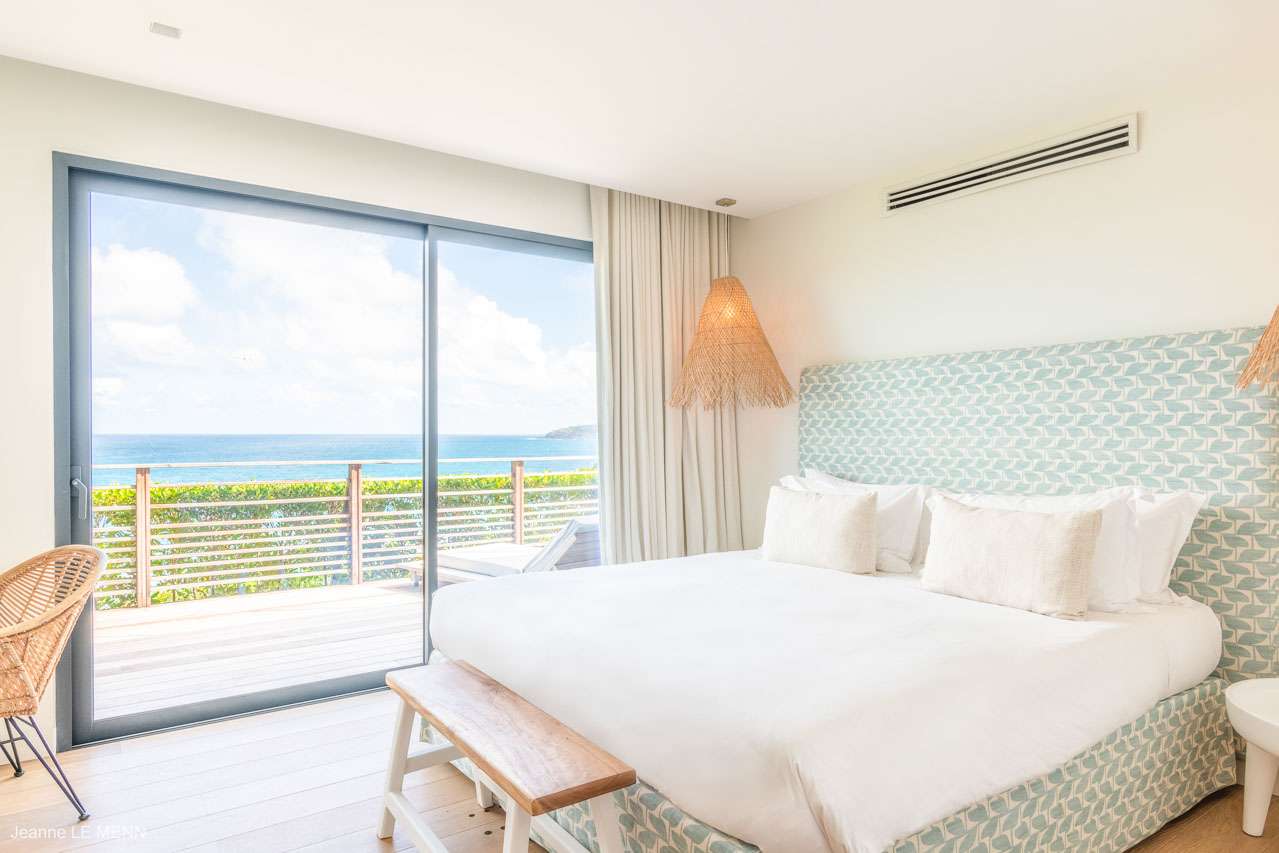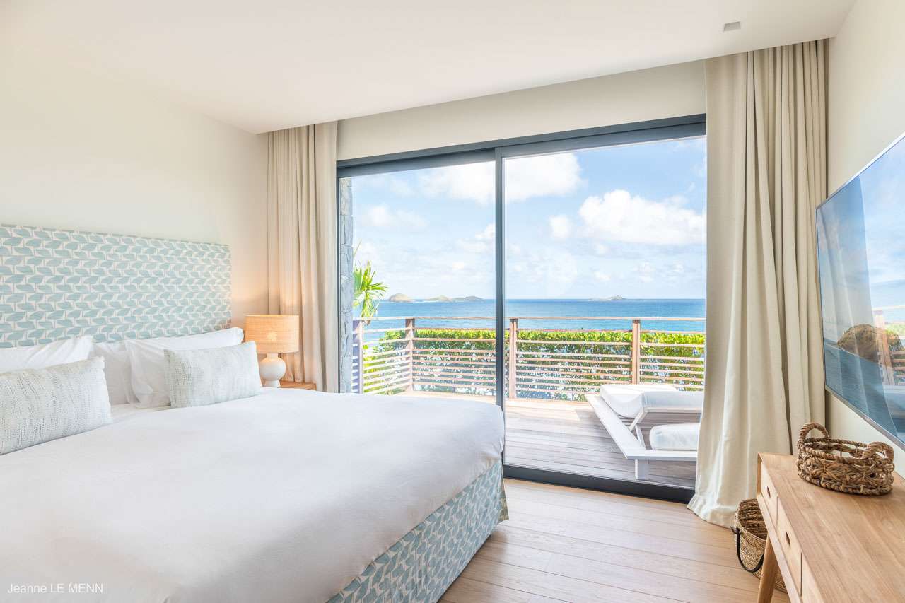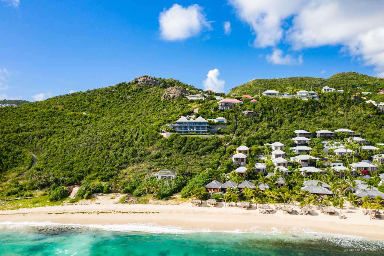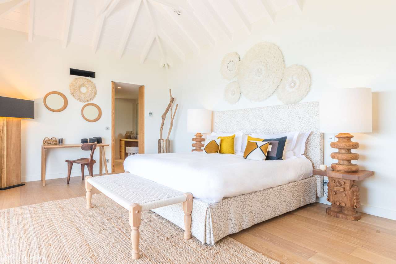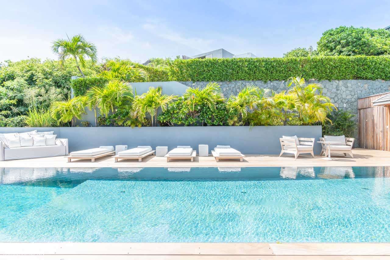 Villa Firefly, (villa code: WV FLY) is a 7-bedroom villa located in Anse des Cayes. This brand-new villa perched above the beach offers panoramic ocean views. The living room connects to the well-equipped kitchen and has ample seating. The dining room also serves as an annex living room with seating around a TV. The dining room, which has floor-to-ceiling glass doors, can be fully opened or closed off. The large gourmet kitchen has a bar, which leads out to the pool. Behind the living room is a separate bungalow with a master bedroom, which has a king-size bed, dressing area, an ensuite bathroom with an outdoor shower, and a small private terrace with seating. In between the living and dining rooms is a stairway descending to the other bedrooms, which are located on 2 different levels. The middle level has 2 spacious bedrooms mirrored across a hallway, each with a king-size bed, dressing area, and bathroom with an indoor shower, which has a sliding door to the outside. On the lowest level are 4 smaller bedrooms with king-size bed and a small bathroom with an indoor shower. The dining room protects the large pool from the prevailing winds. A deck with loungers surrounds the pool, making this an ideal spot for sunbathing. Due to the abundant use of glass, views are visible from the living and dining areas, stairs, and bedrooms. Two manicured lawns adorn the grounds. During the December holidays, the villa rents at full occupancy rates regardless of how many bedrooms are used. * Please note - No arrivals/departures on the same day.Please fill out the form to begin your inquiry and we will connect you with a seasoned villa rental specialist.