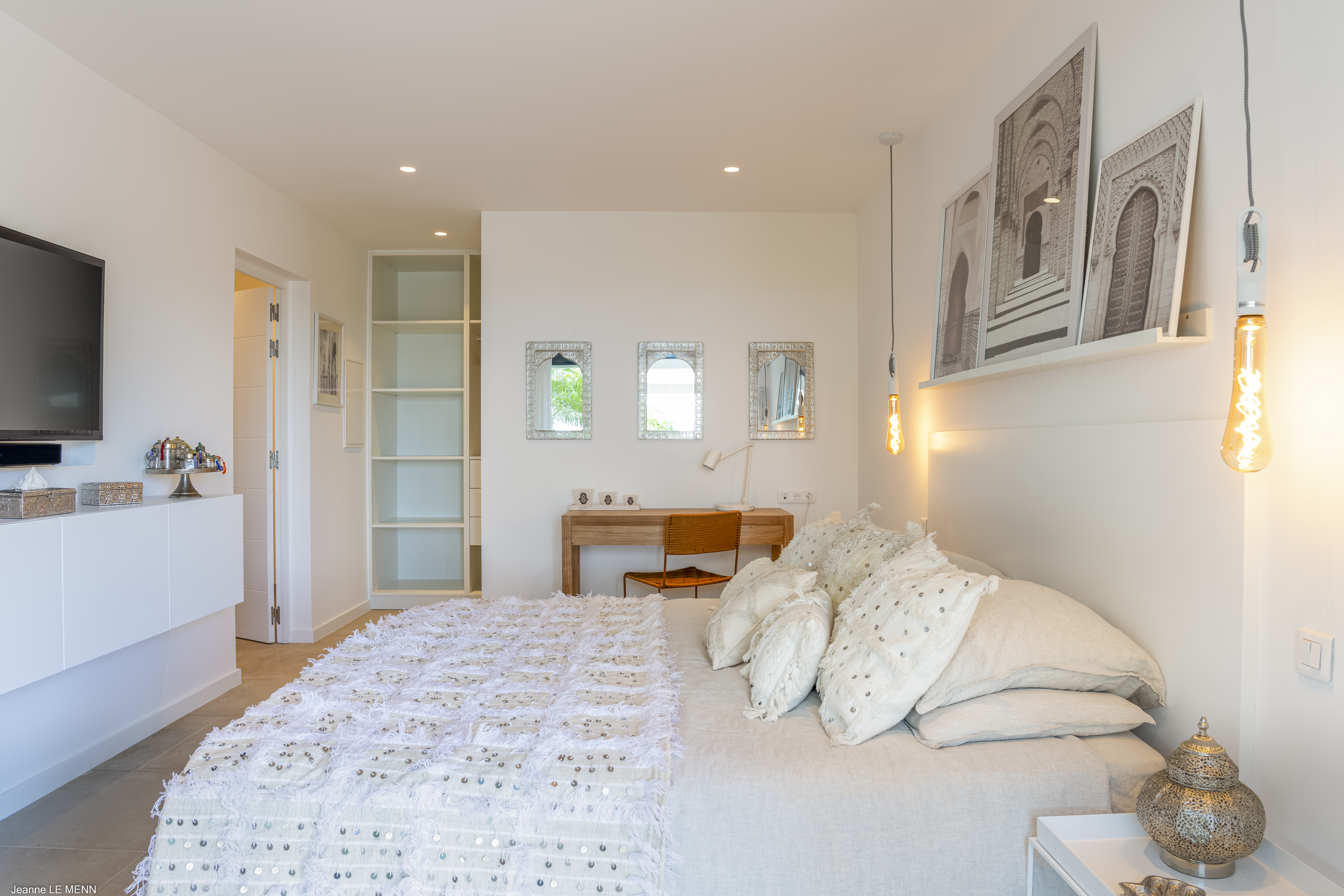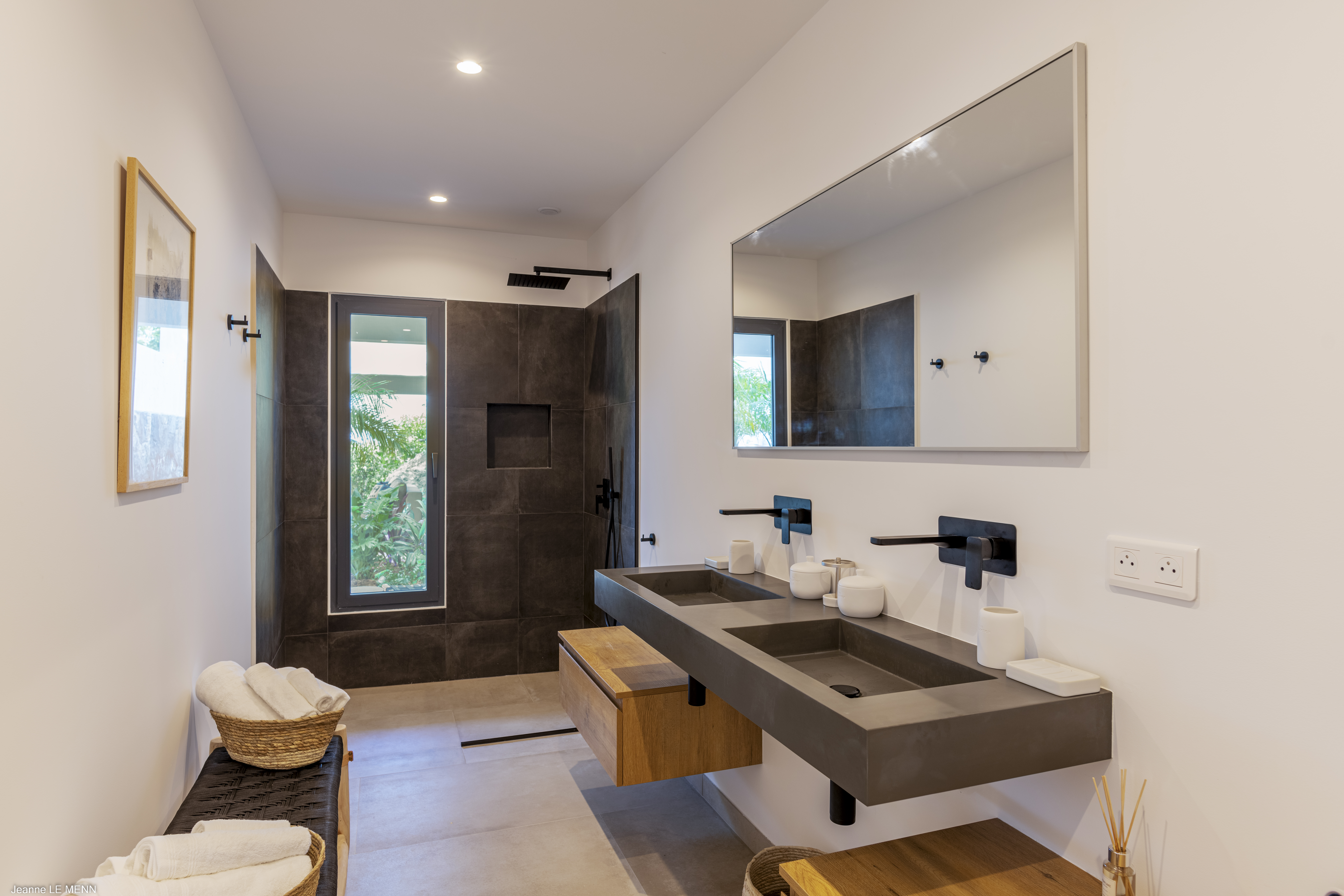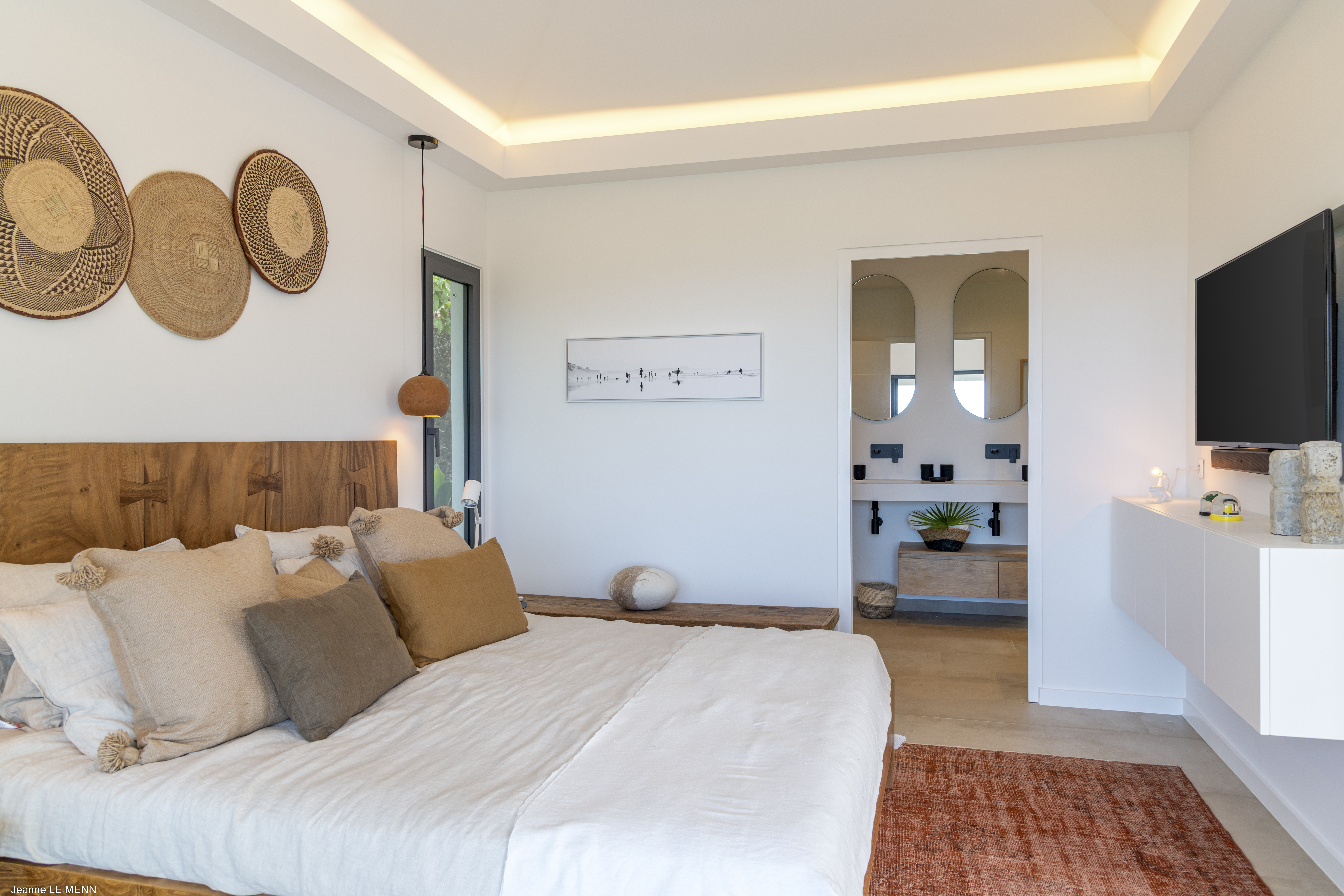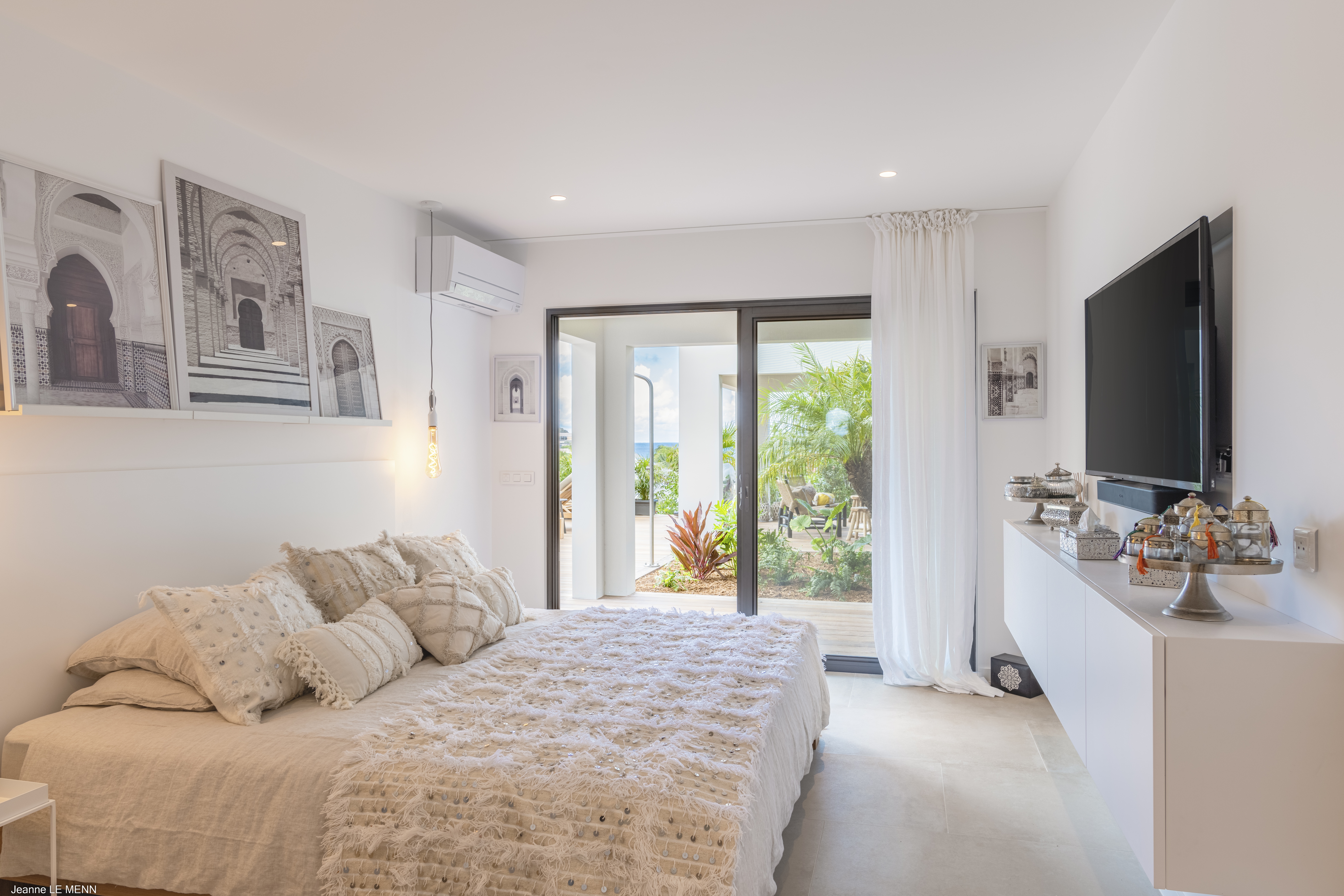 Welcome to Villa Flamands Bay (villa code: WV FLA), a contemporary 2-bedroom villa located in Flamands, St. Barts. With a standout design and panoramic sea views, this island home is a charming spot for a laid-back Caribbean getaway. The unique oval shape of Villa Flamands Bay makes this home unique amongst the vacation homes in St. Barts. Inside is sophisticated and comfortable, with a tropical aesthetic to the décor. Splashes of sea blue in the furnishings and accent walls throughout mirror the ocean outside, while elegant island details lend the villa a warm and homey atmosphere. Villa Flamands Bay also enjoys a wonderful location overlooking the beach of Flamands. Within a 2-minute drive, you could be lounging on the silky sands or wading into the water, while restaurants and shops in Gustavia are around a 10-minute drive. The open floor plan of the main living area blurs the line between the indoors and out, enhancing the endless sea views. Modern tropical details and natural materials throughout make these spaces ideal for relaxing, and shrugging off the rushes of modern life. A great room combines the living room, kitchen, and dining area. An ornate room divider creates a well-defined living room, where cozy blue sofas invite you to sink in and unwind. A large flat-screen TV also provides some entertainment, but just as tempting are the remarkable views to one side. At the other end of the room is the kitchen at Villa Flamands Bay. There’s a splash of blue on the feature wall here as well, continuing with the ocean theme of the home. High-end appliances make cooking a breeze, and our concierge is also happy to organize a grocery delivery or a private chef for an evening. The dining table is a wonderful setting for elegant island meals, and gathering with family and friends over some gourmet food. With uninterrupted views out over the bay, the backdrop is an idyllic accompaniment to any meal. A stairway next to the small indoor pond leads down to 2 bedrooms inside Villa Flamands Bay. Located at either end of the home, both rooms enjoy a European king-sized bed, a dressing area, and an ensuite bathroom with a large shower. Each bedroom also features an outdoor terrace set in a quarter circle, providing wonderful views over the ocean. Back upstairs, the outdoor terrace is graceful and chic, a wonderful spot to let the island breeze wash over you during the sunny Caribbean days. The small infinity pool stretches out to the middle of the living room and is flanked by two quarter-circles of terrace space, each with loungers for sunbathing, reading, or sipping a cool drink. Venturing outside Villa Flamands Bay immediately delivers you into some of the most stunning landscapes in St. Barts. It’s a short drive down to Flamands Beach, a quiet and pristine stretch of sand. From here, you can also tackle the Colombier beach trail, leading you to the island’s most remote beach in the far northwest corner. Since the property is located on a steep road, a 4x4 vehicle is highly recommended. During the Thanksgiving and December holidays, the villa rents at full occupancy rates regardless of how many bedrooms are used.Please fill out the form to begin your inquiry and we will connect you with a seasoned villa rental specialist.