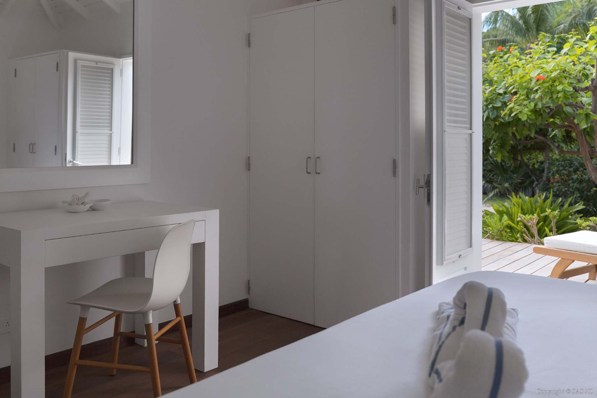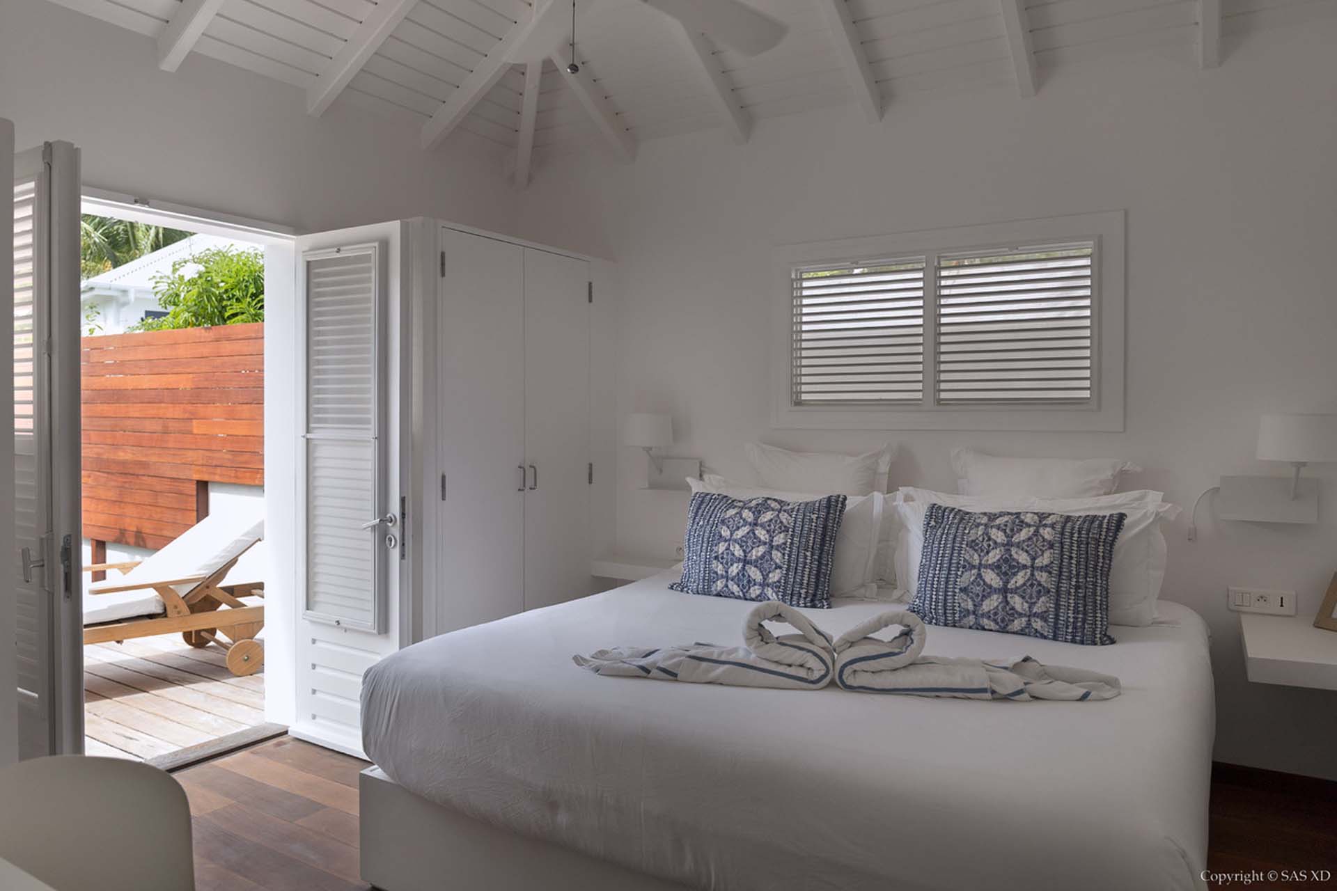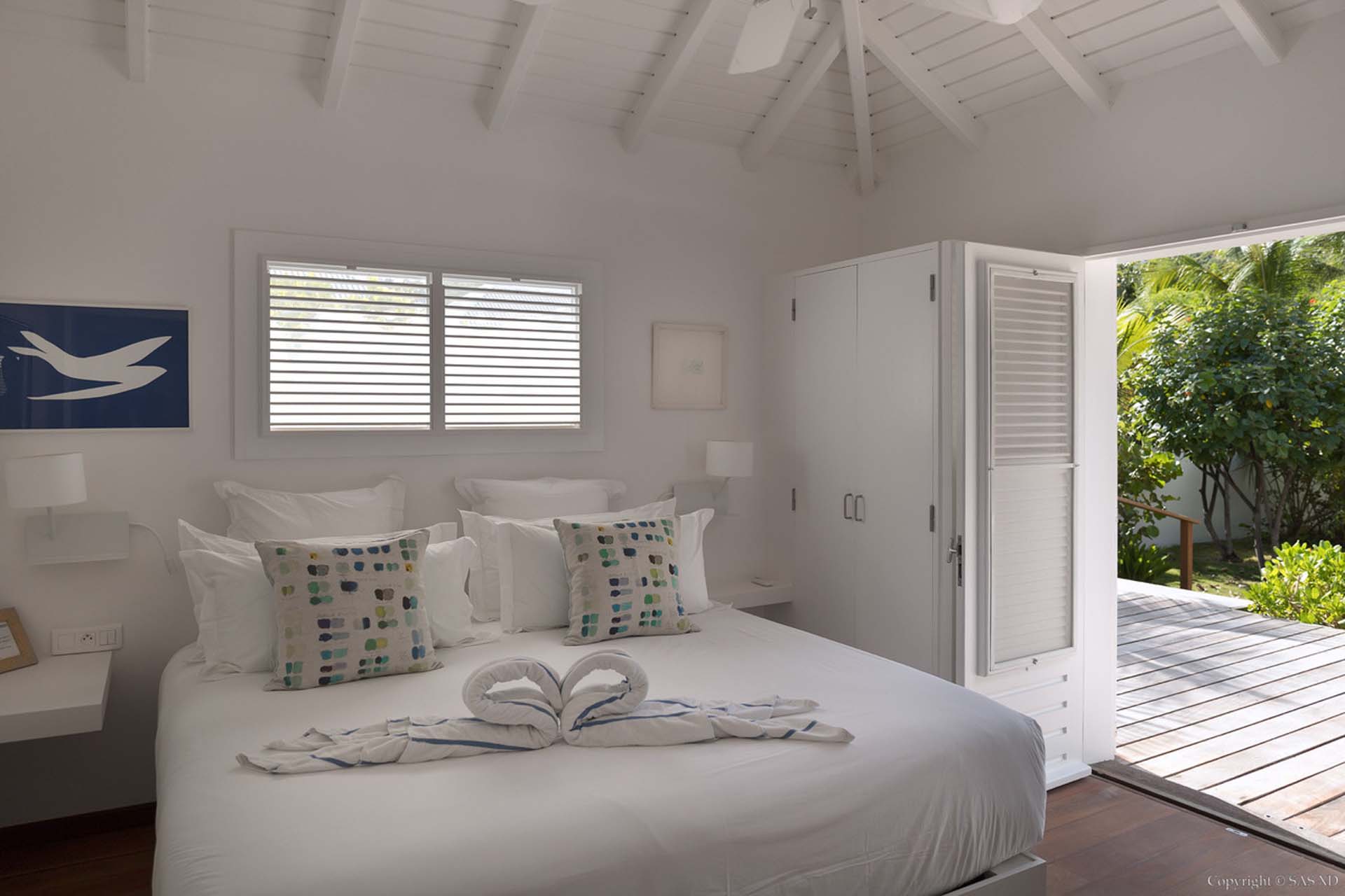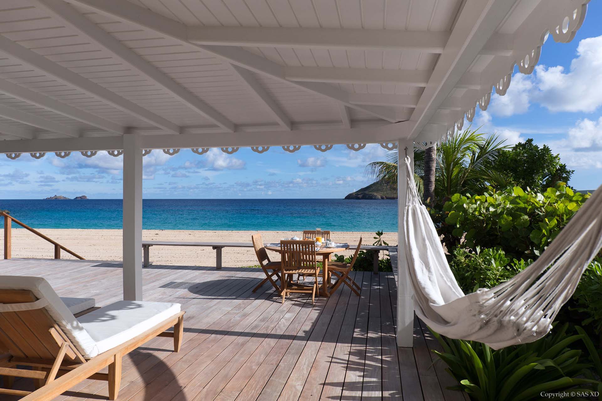 Welcome to Villa Flamands Beach (villa code: WV FAY), a comfortable 2-bedroom beach house in a superb location right on Flamands Beach. Within seconds you can be lounging on the powder-soft sand or diving in crystalline waters. Beach vacations on St. Barts don’t get much better than this. Inside, designer furnishings and a superb design create a luxurious feel. With a stripped-back décor and pops of ocean color, it’s a gorgeous mix of sophisticated living and beachy charm. The entire space flows seamlessly to the outdoors, where the sand and sea await. The entire home enjoys views of the offshore islands Île Toc Vers, Île Fregate, and Île Bonhomme. As an added bonus the beachfront restaurants at Cheval Blanc hotel and Baie des Anges are within walking distance. Chic and stylish, the living room at Flamands Beach Villa features creamy white sofas contrasted by accents of wicker. Splashes of blue in artwork and cushions bring a warm, coastal vibe into the room. The relaxing room reflects the pristine sand and turquoise waters of Flamands Beach, just outside. Next to the living area is the galley-style kitchen, where the high-end appliances make cooking a breeze. Our concierge can even organize grocery pre-stocking or delivery, catered meals, or arrange a private chef service for a special occasion. For elegant island dinners, the outdoor dining area is a magnificent setting. With seating for up to 10 guests, there’s also plenty of room to host your own dinner party or cocktail hour. There are 2 bedrooms at Villa Flamands Beach, one with a king-sized bed, one with a king or 2 twins, ensuite bathroom, and air-conditioning. One bedroom is on the ground floor, with double glass doors that open to the ocean outside. The gentle sound of the tide washing against the shore is a fabulous way to lull yourself to sleep each night. Upstairs on the second level is a spacious master bedroom. With its own private sundeck, you can easily enjoy stunning views of the glimmering Caribbean each morning. After dark, it’s also a great spot for some stargazing and a late-night drink. A large deck runs the length of Villa Flamands Beach. Furnished with loungers and armchairs, there’s plenty of space to spread out and enjoy the glorious weather. Palms and other tropical plants shroud the deck in privacy. Steps lead straight onto the soft sand of the beach, where a small dining table sits under swaying palms. A hammock is a relaxing spot to enjoy the sunset, watching as the sky turns hues of pink, purple, and gold. The inviting water is seconds away. Nearby is the trailhead for the trek to Colombiers Beach. Accessible only on foot or by boat, it’s a gorgeous and rugged beach that is well worth the effort to get there. A short drive to the east is St Jean Beach, while the towns of Corrosol and Gustavia are both around 10 minutes away. A stay at Flamands Beach Villa also includes easy access to the Cheval Blanc Isle de France Hotel. Home to award-winning restaurants, a gym, a pool, and a luxurious spa, the facilities here help take your beachfront holiday to the next level.Please fill out the form to begin your inquiry and we will connect you with a seasoned villa rental specialist.