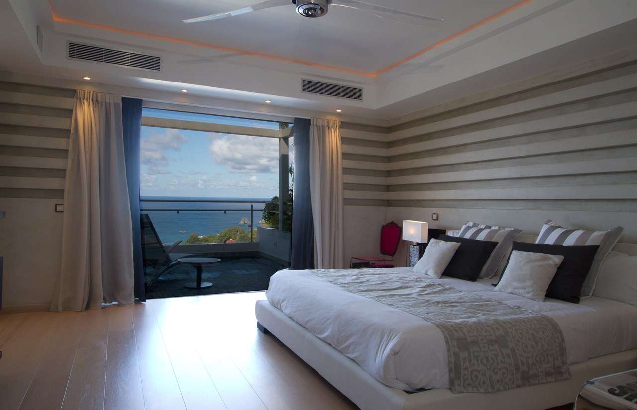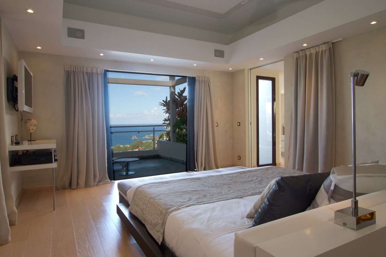 This stylish property offers views of Le Pain de Sucre island and the outer harbor of Gustavia.
